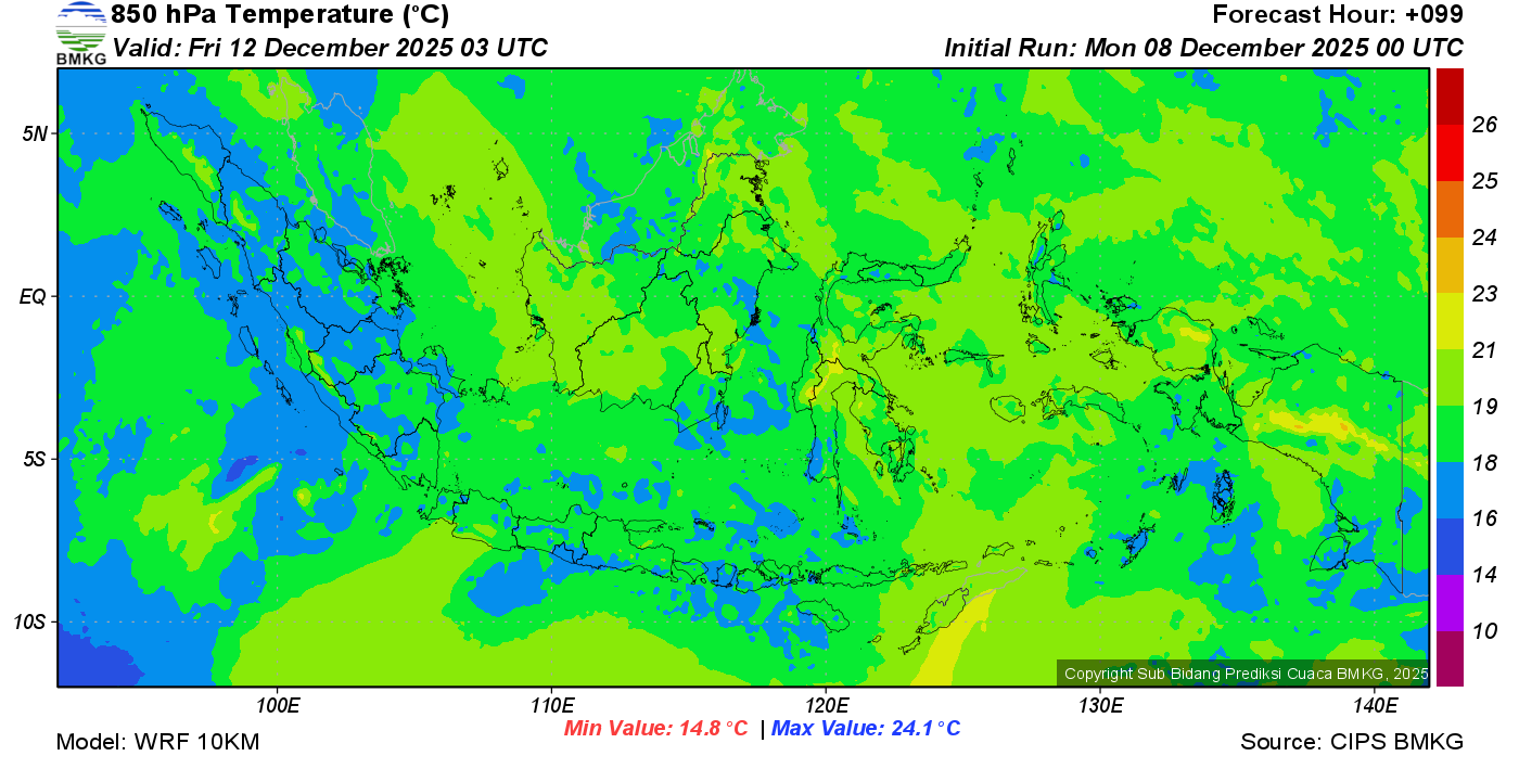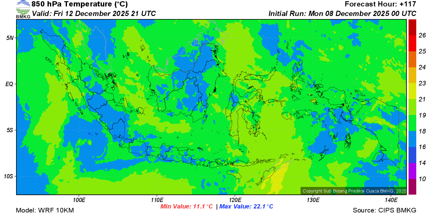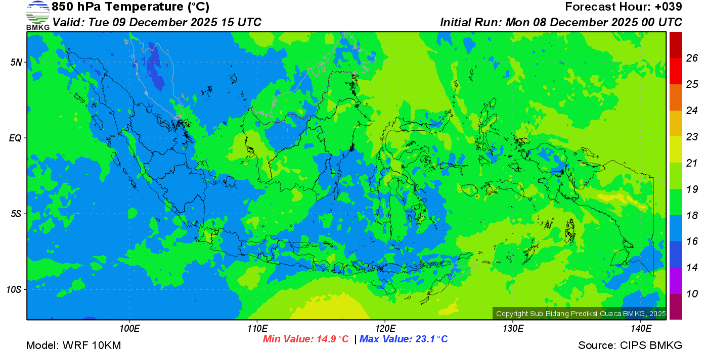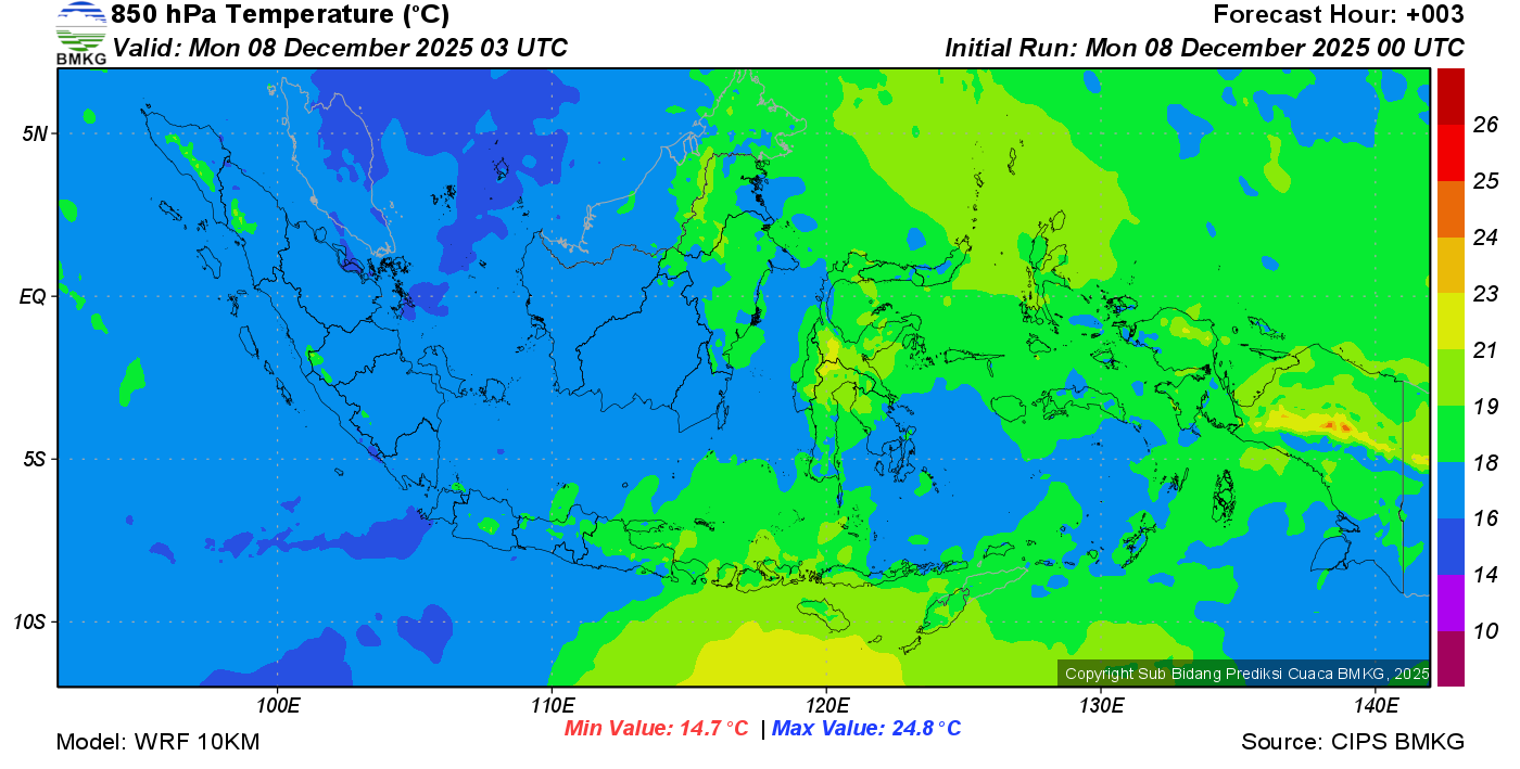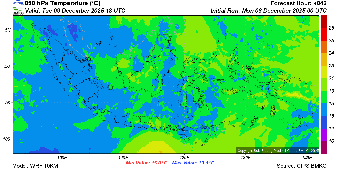 Prakiraan Angin Lapisan 850 Gunung Awu