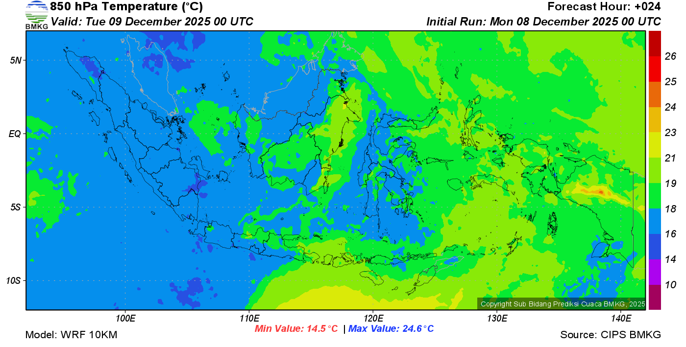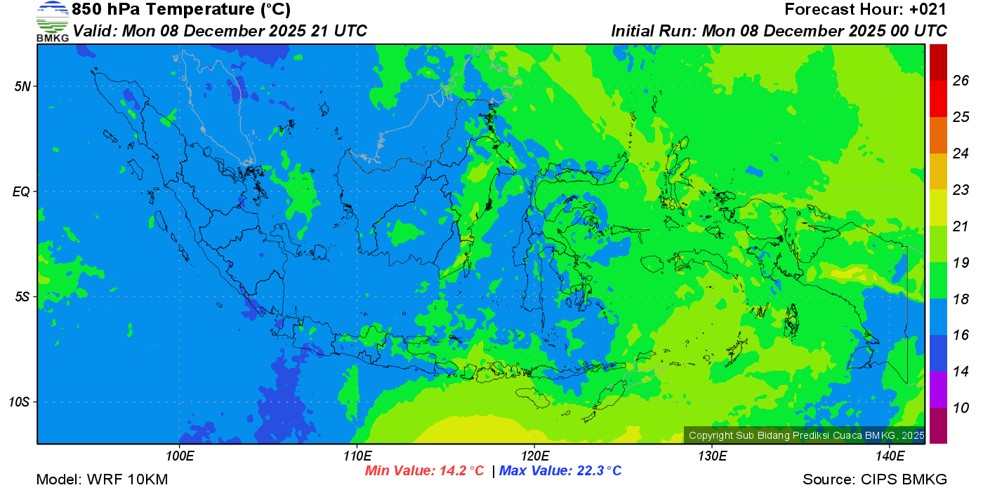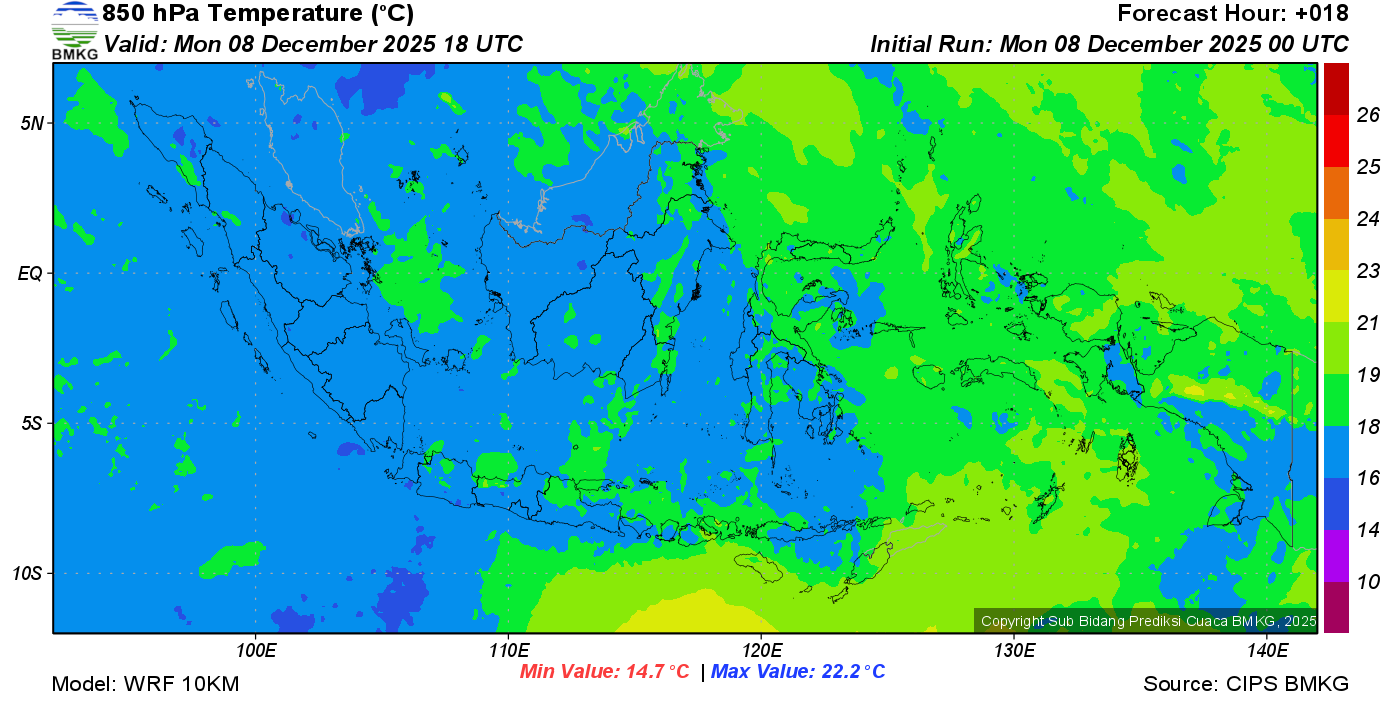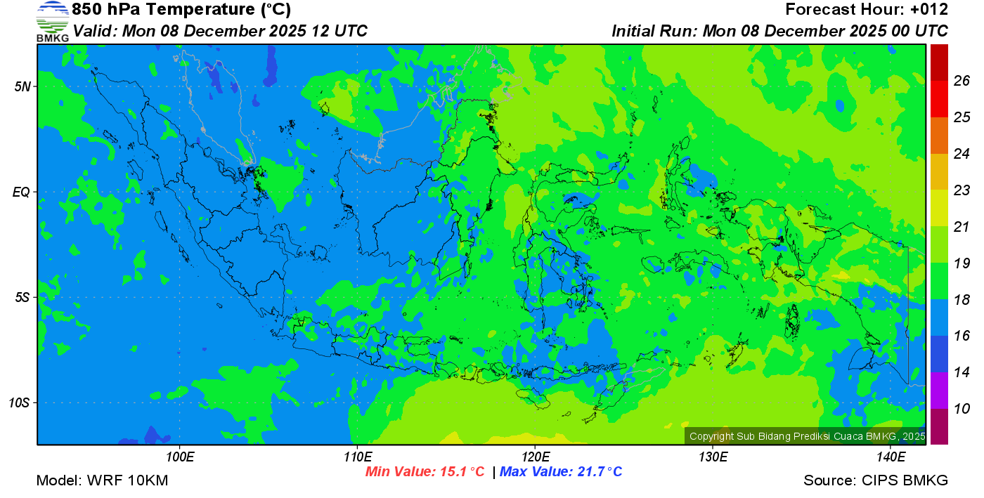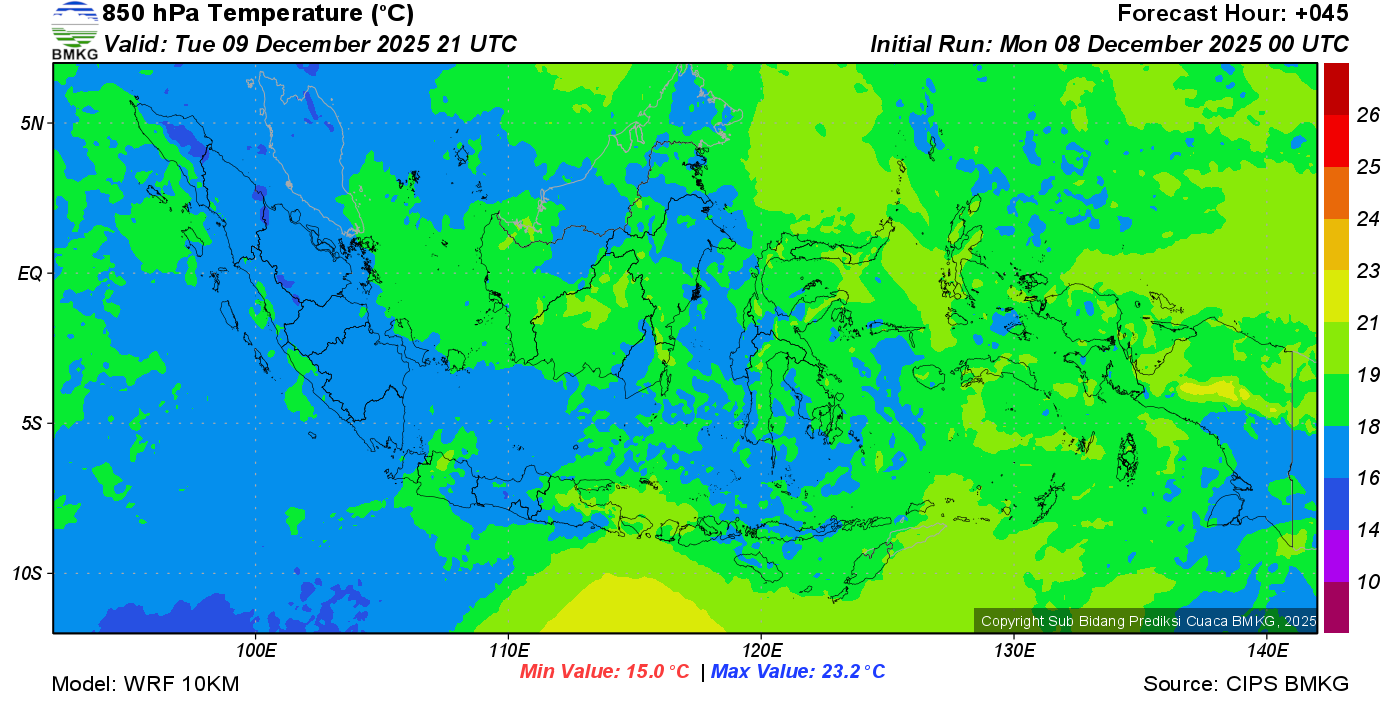 Prakiraan Angin Lapisan 850 Gunung Awu
