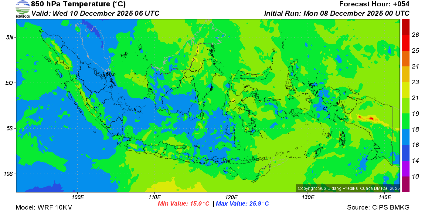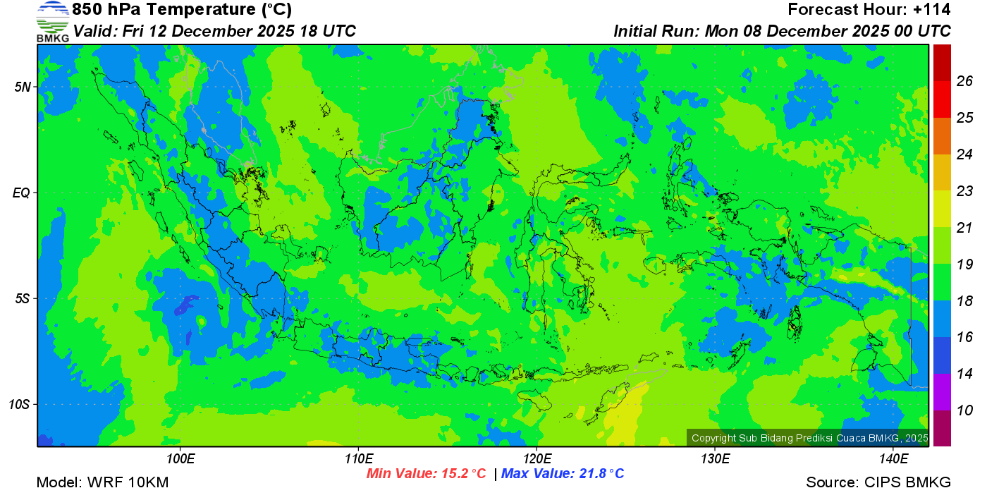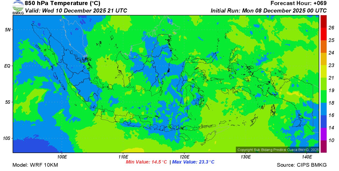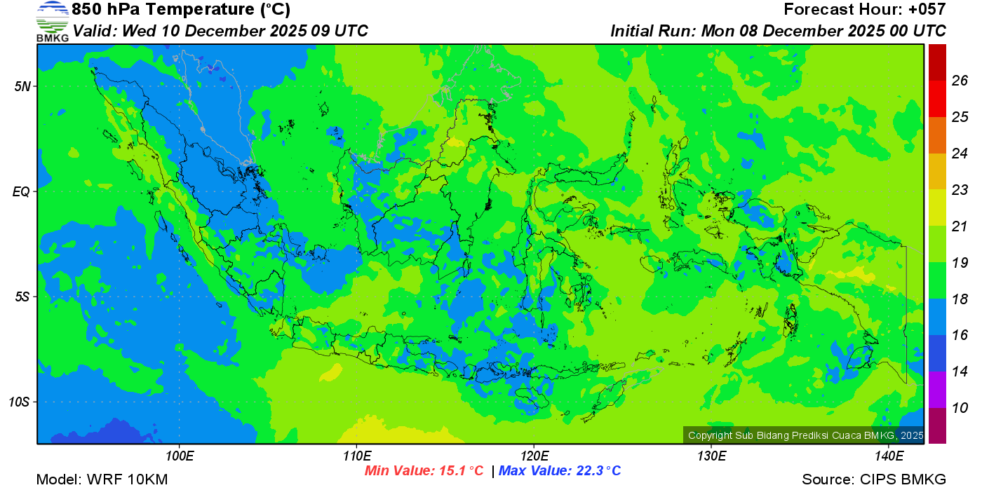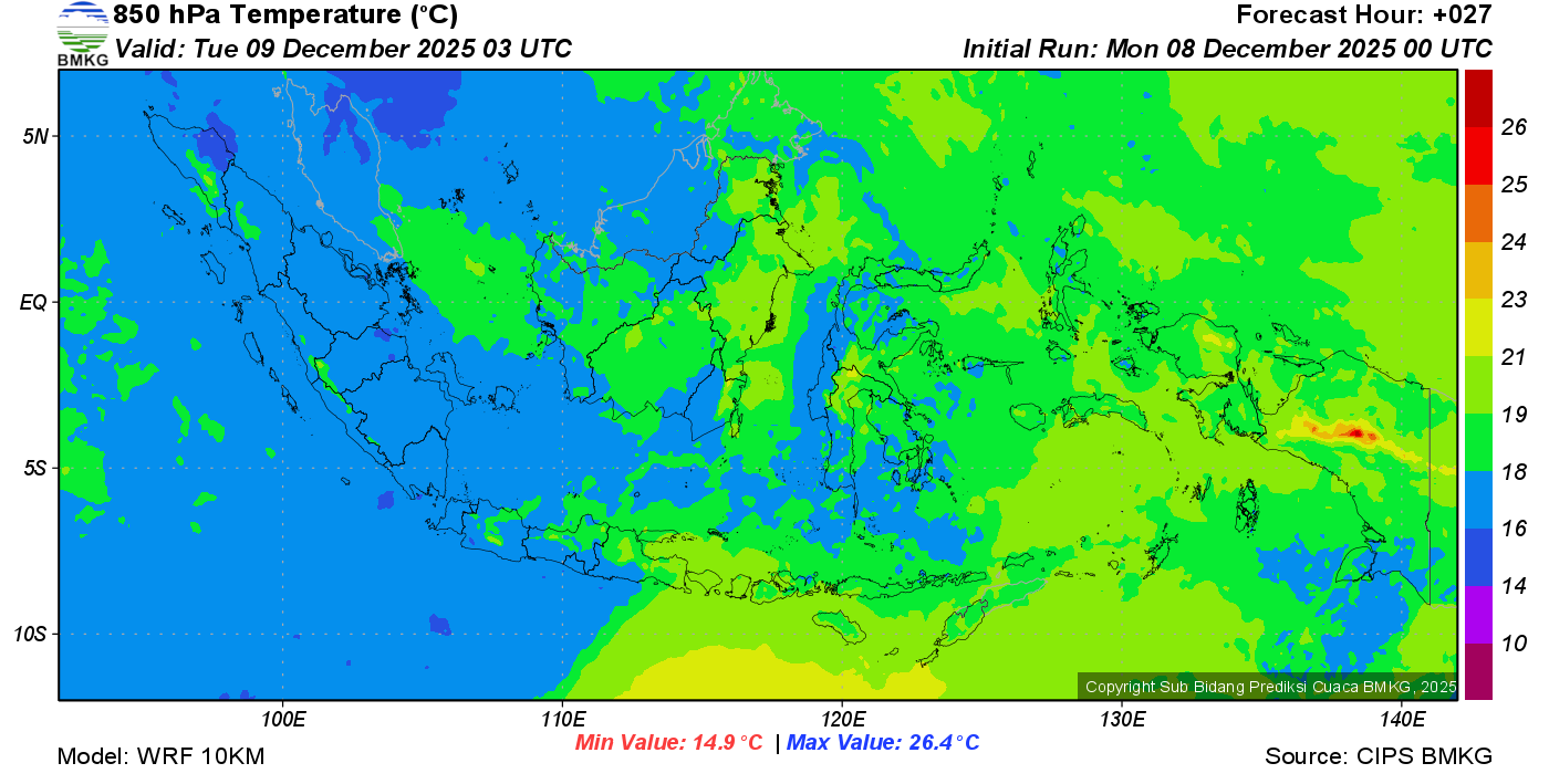 Prakiraan Angin Lapisan 850 Gunung Awu
