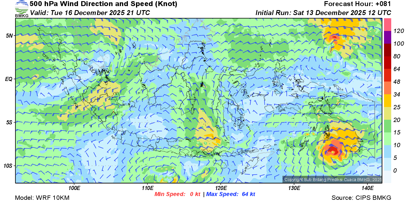Prakiraan Angin Lapisan 10m Gunung Awu