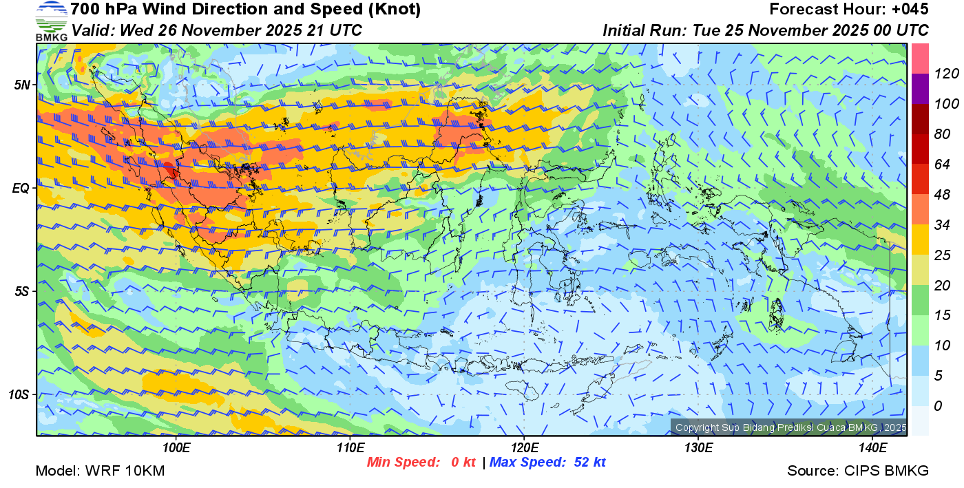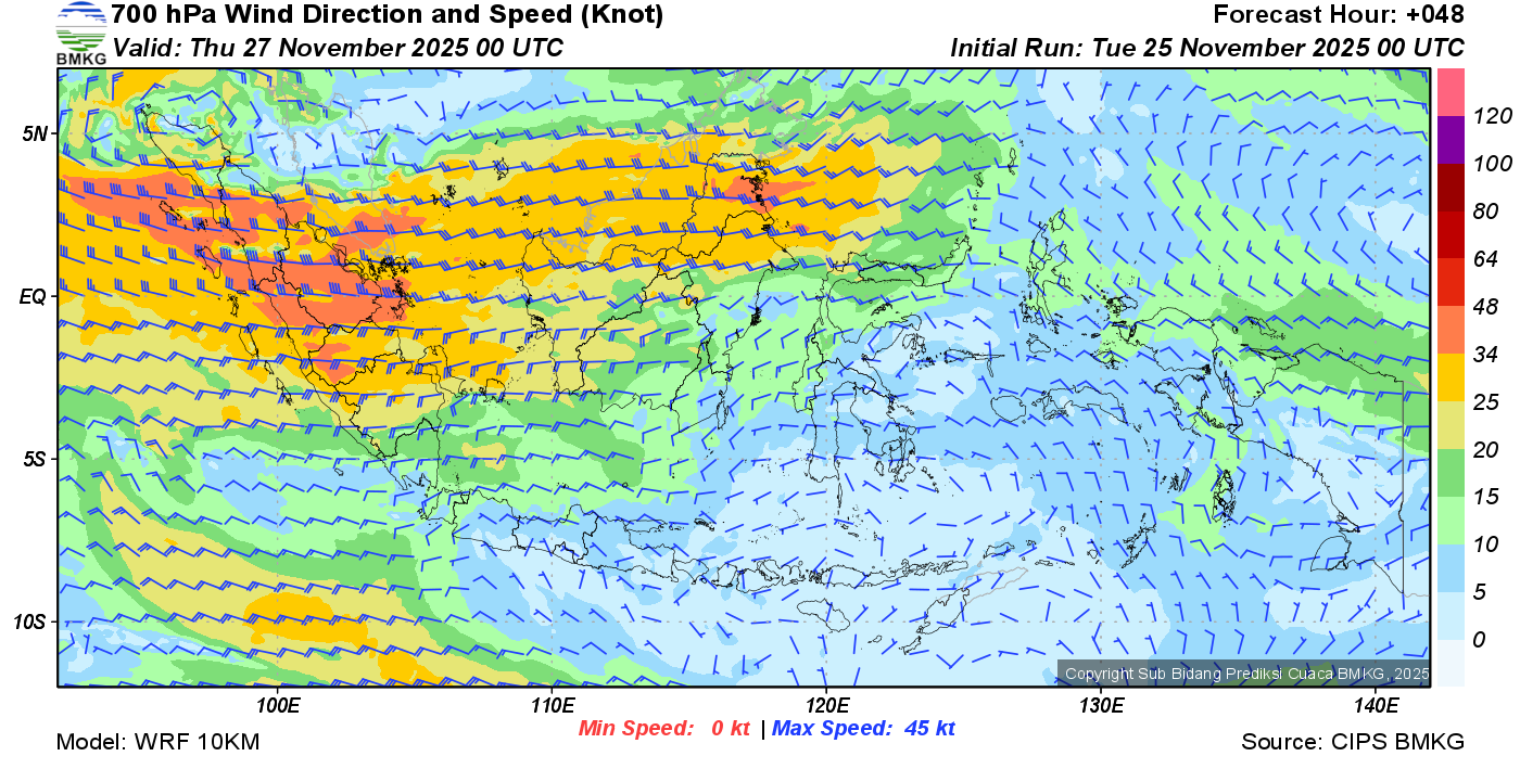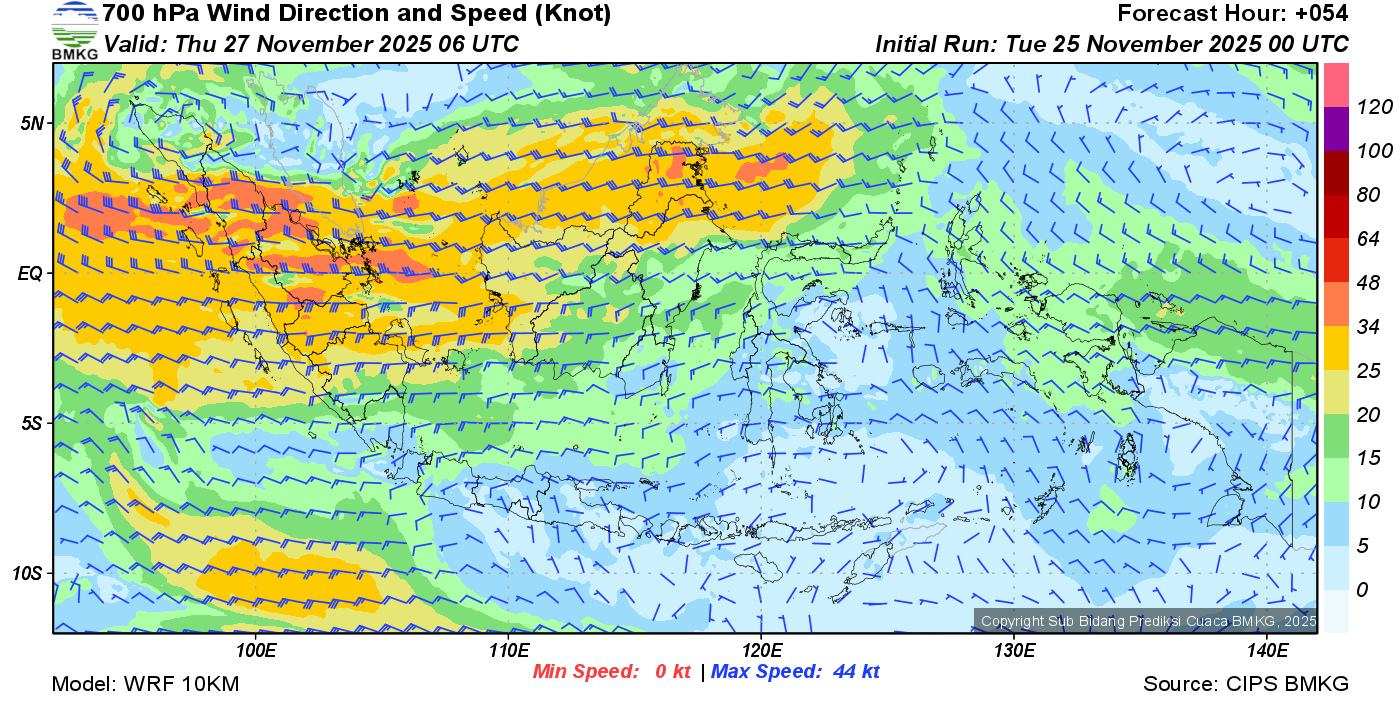 Prakiraan Angin Lapisan 700 Gunung Awu