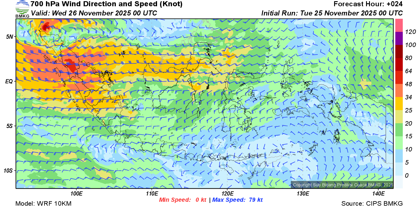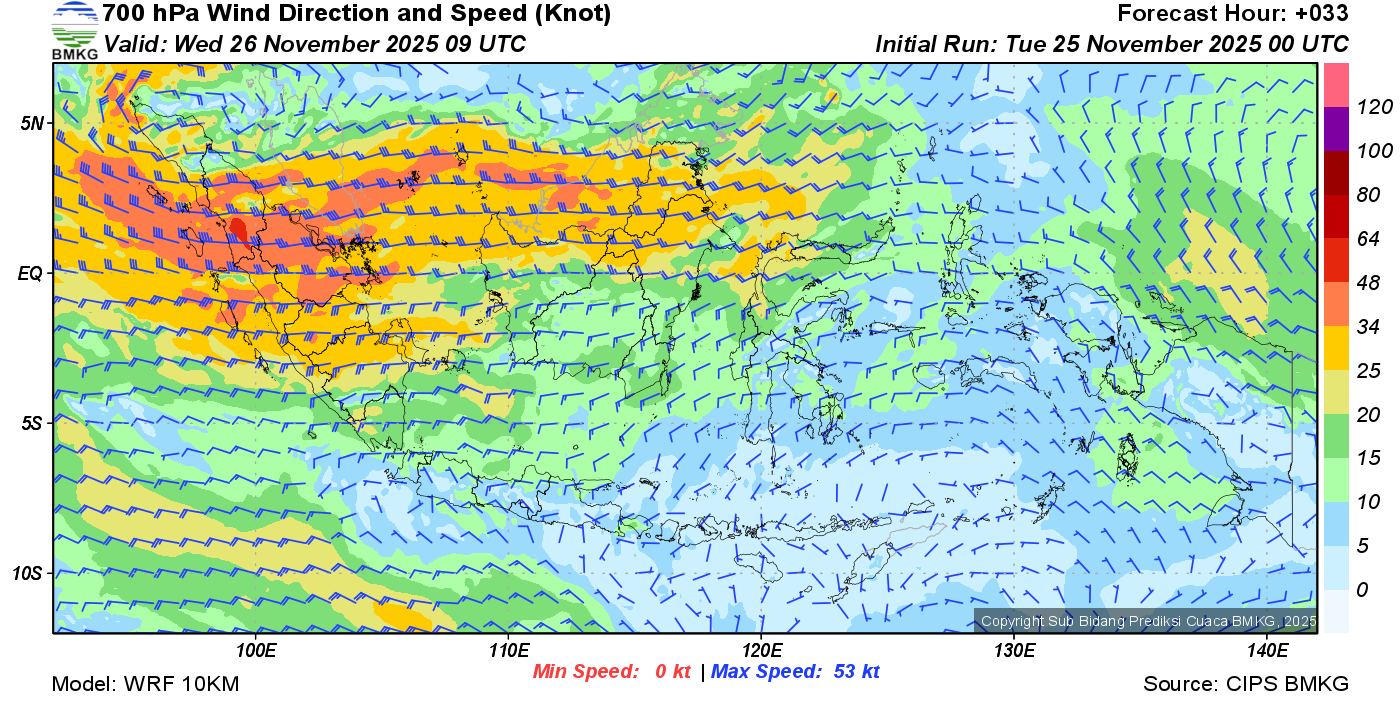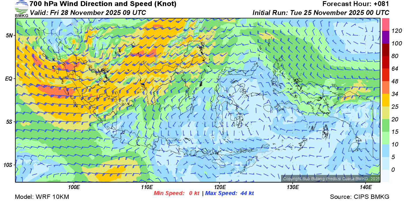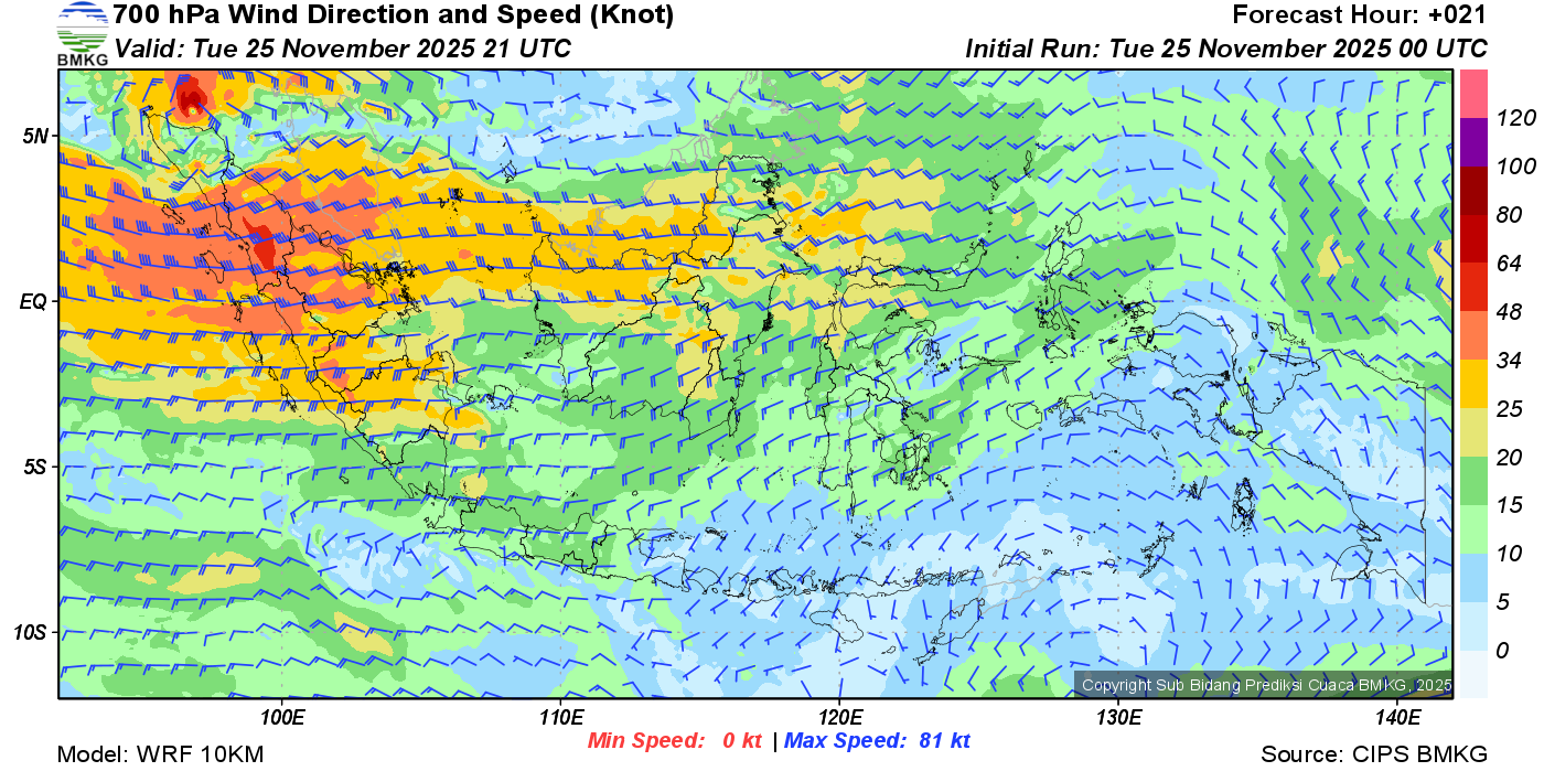 Prakiraan Angin Lapisan 700 Gunung Awu