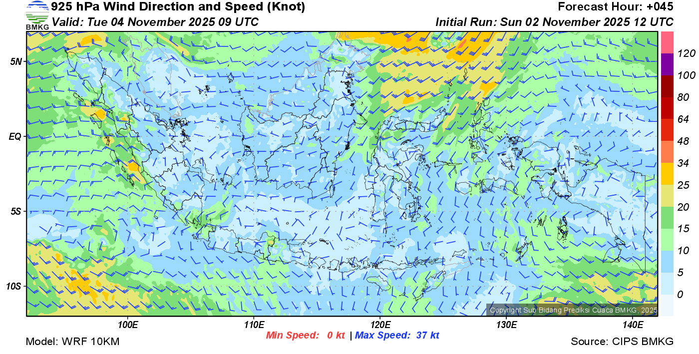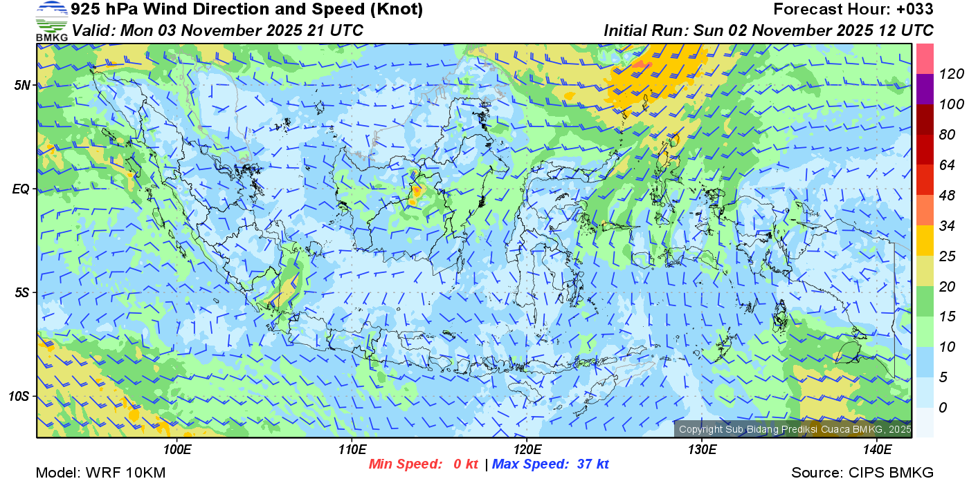 Prakiraan Angin Lapisan 925 Gunung Awu