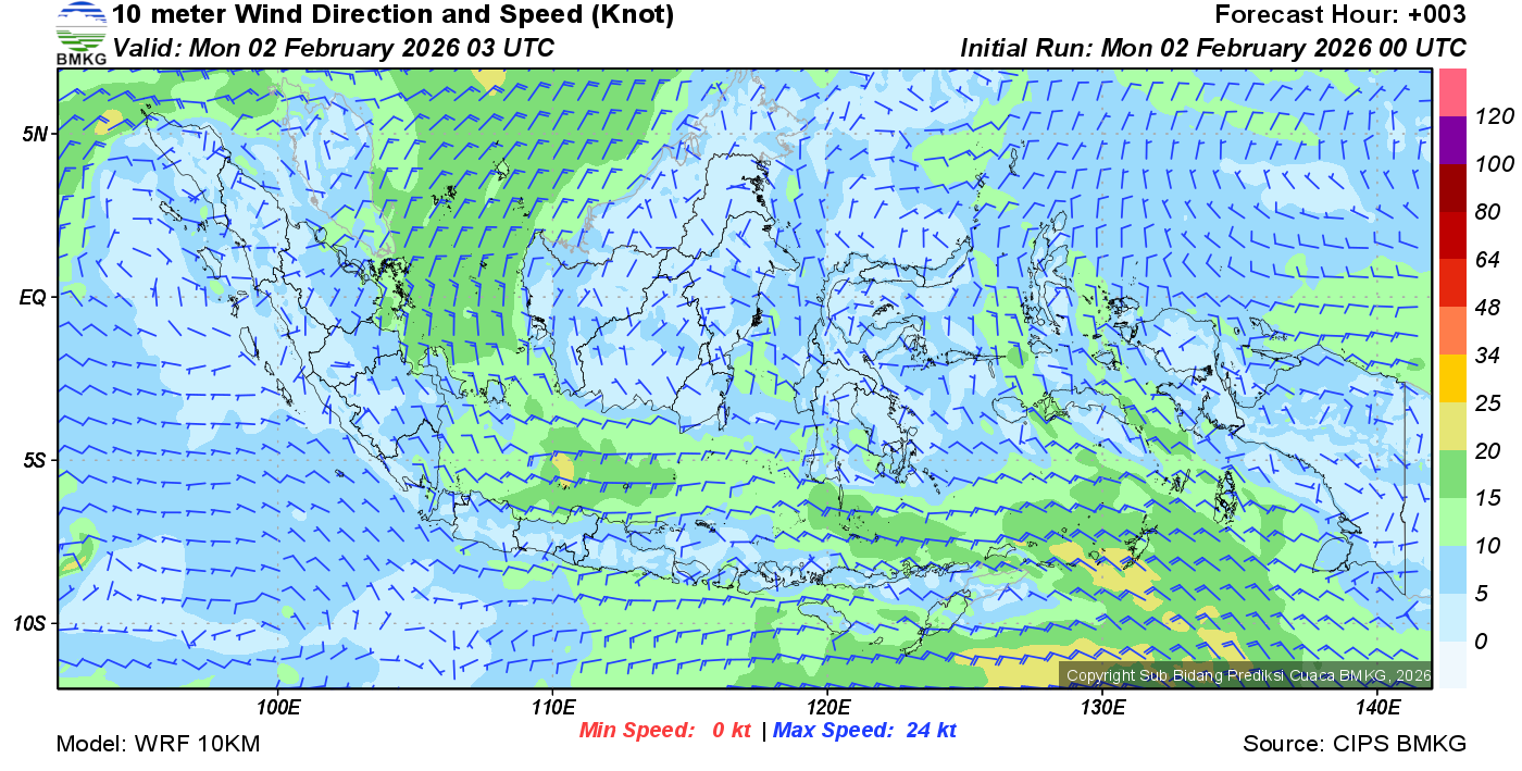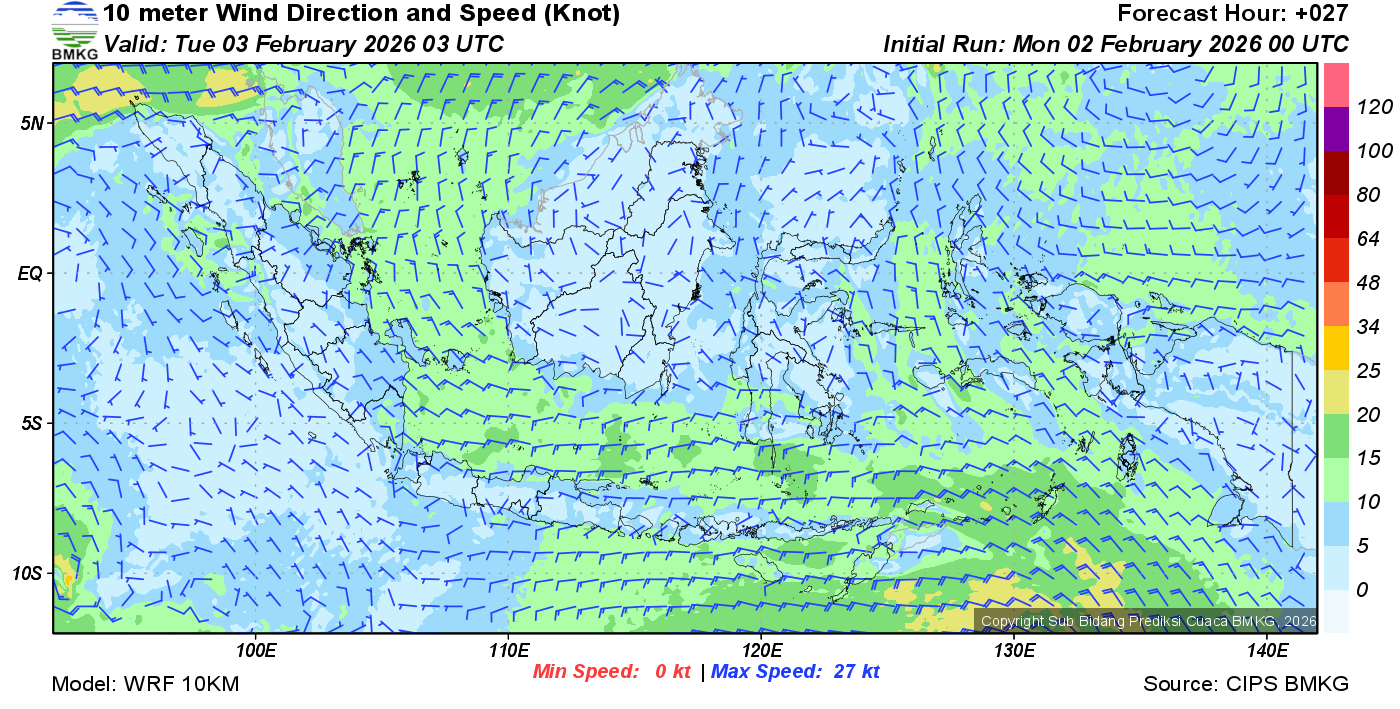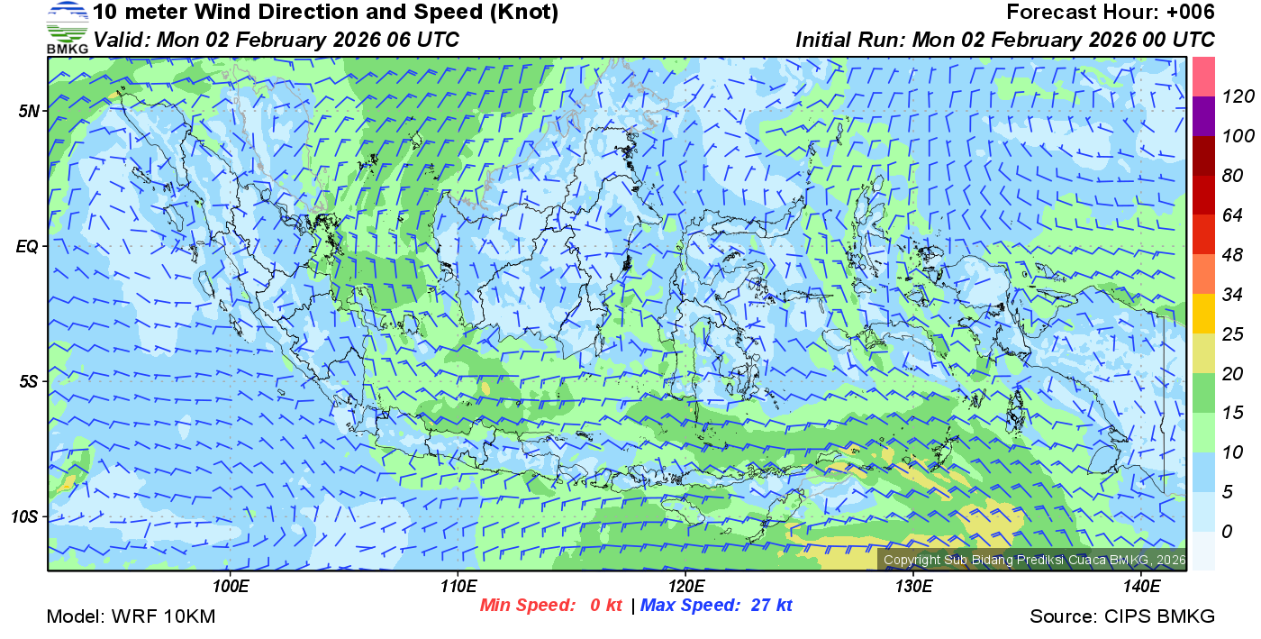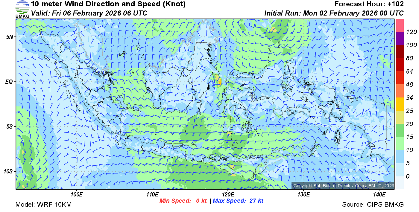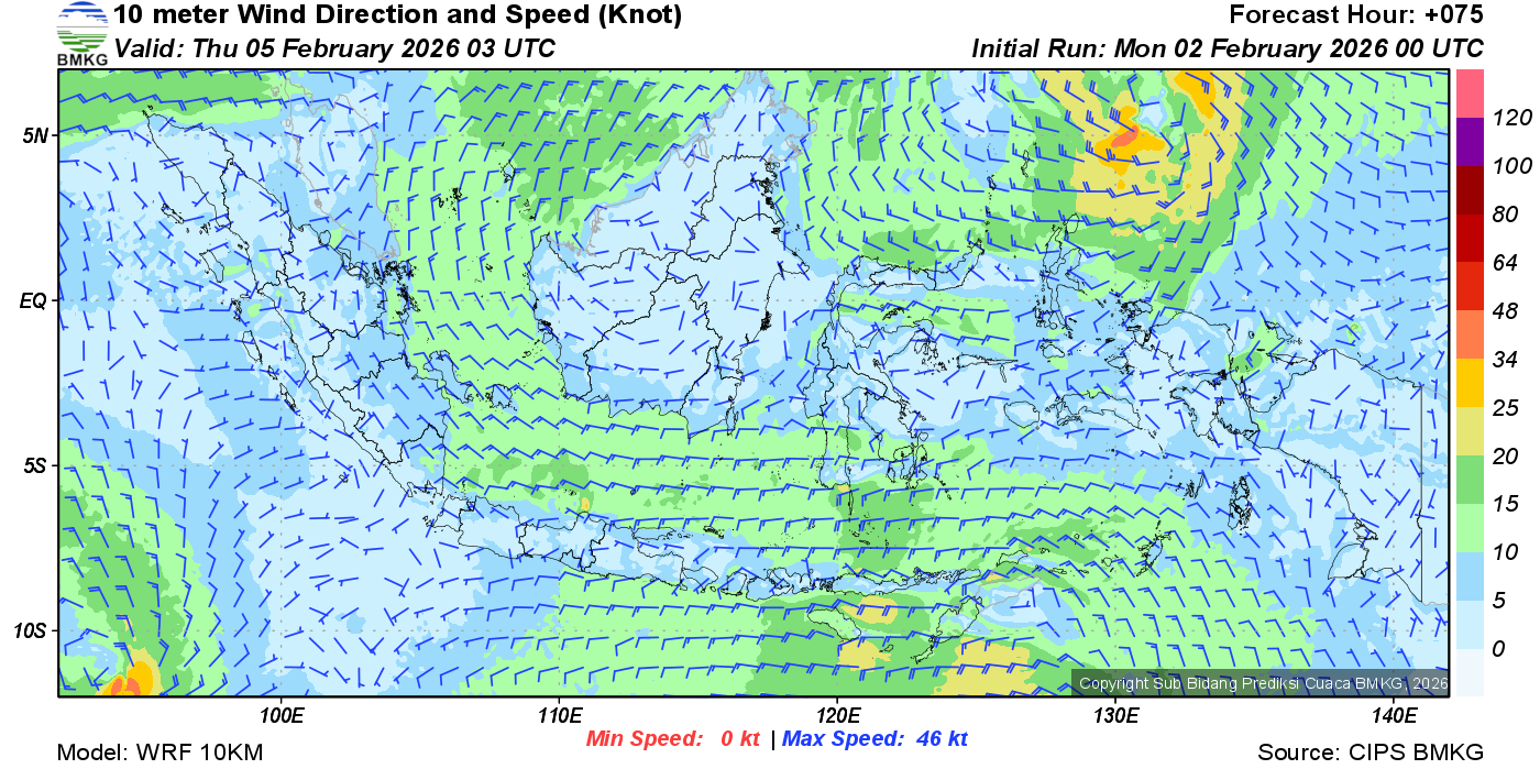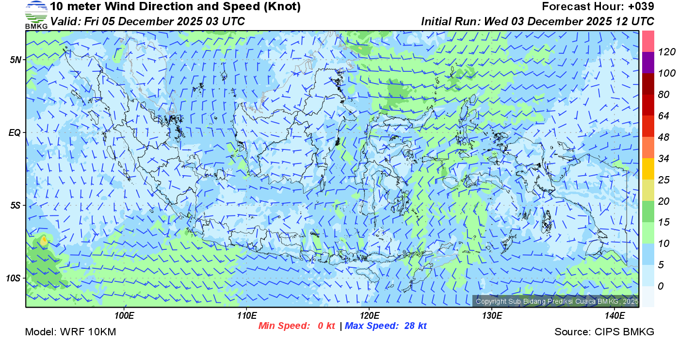 Prakiraan Angin Lapisan 10m Gunung Awu