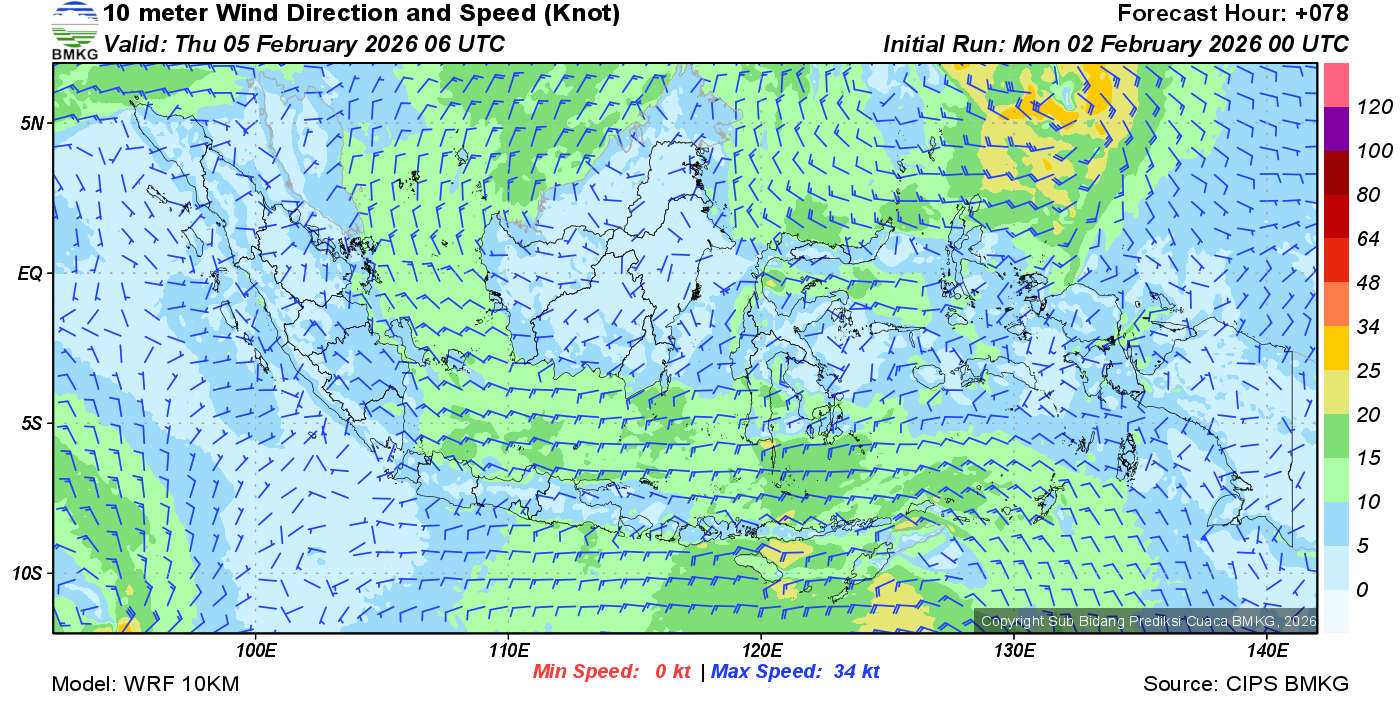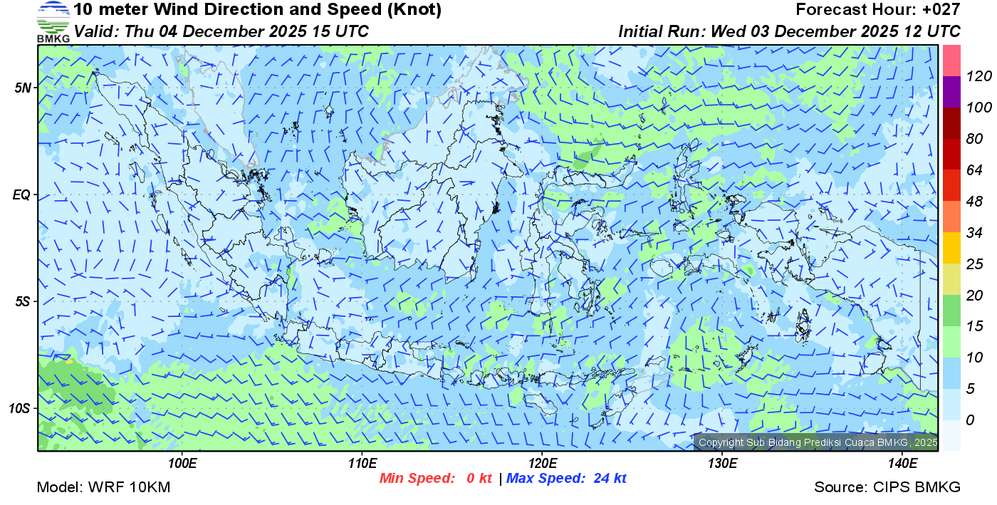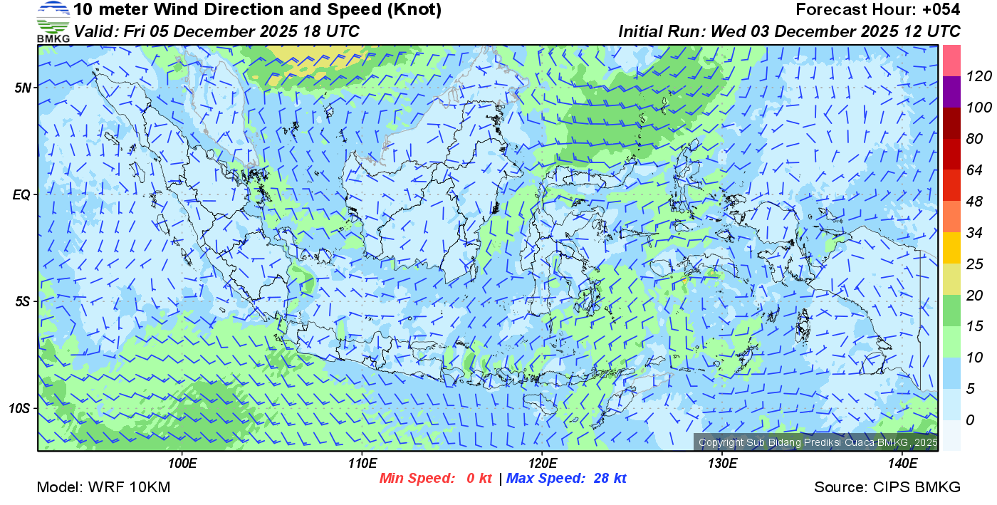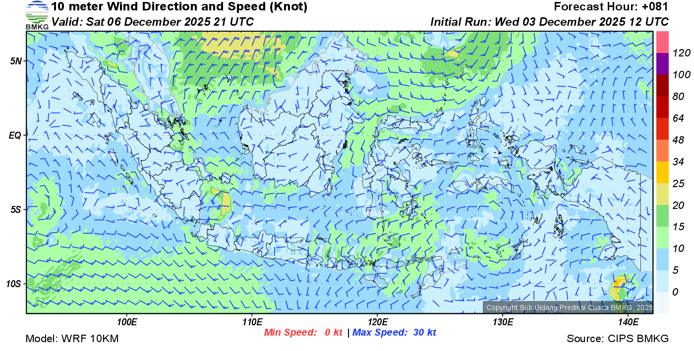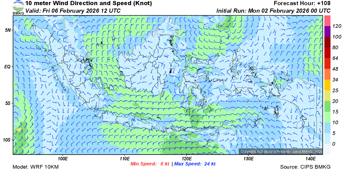 Prakiraan Angin Lapisan 10m Gunung Awu