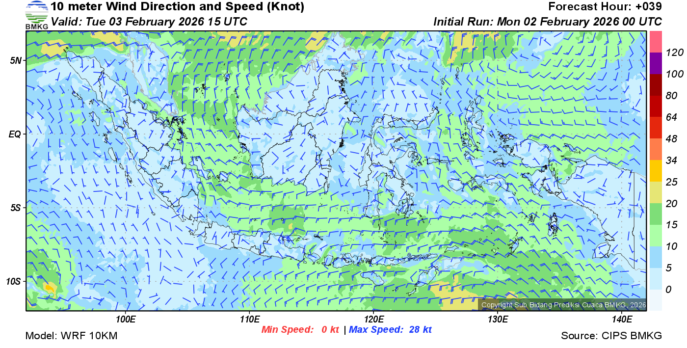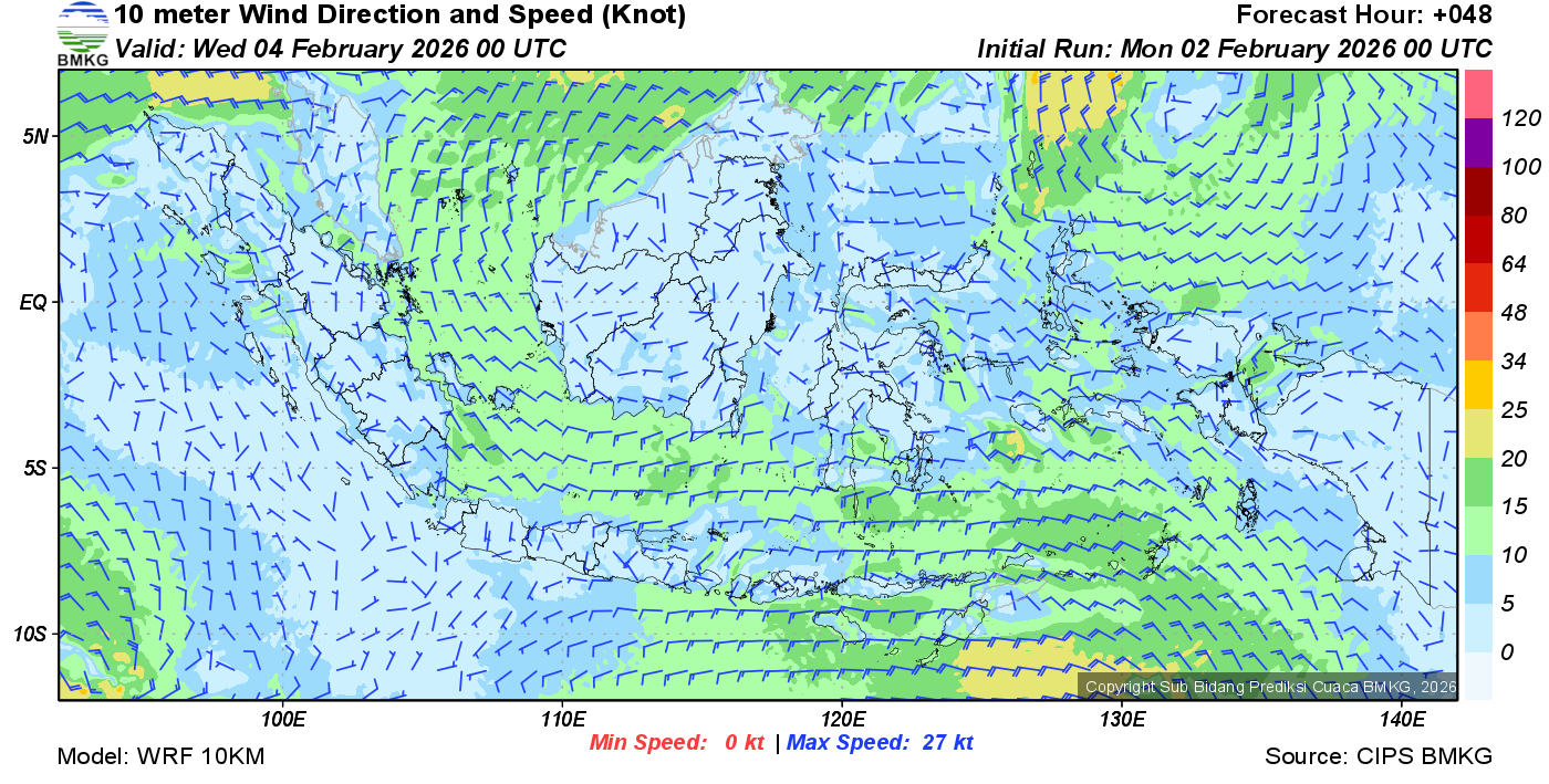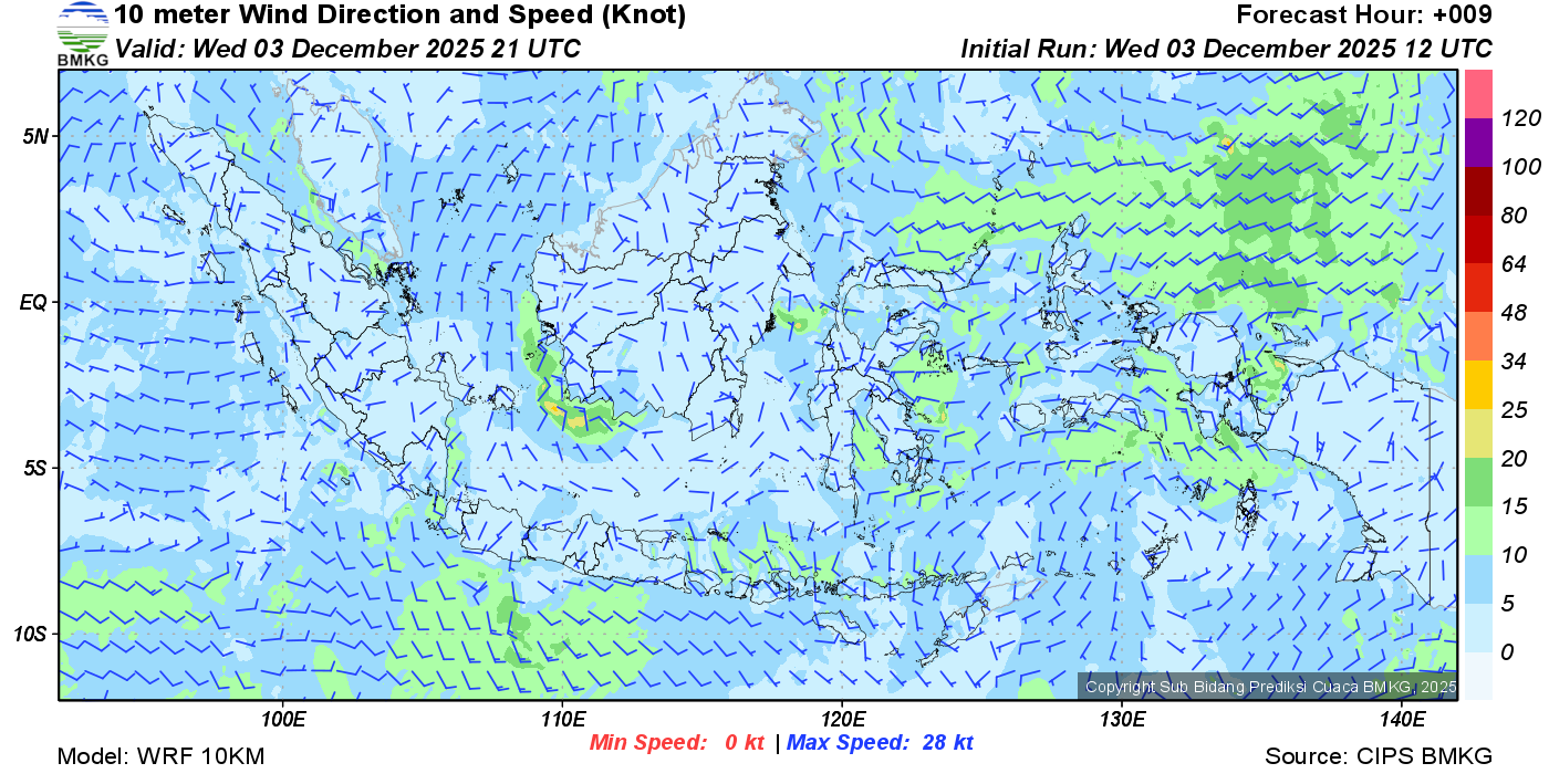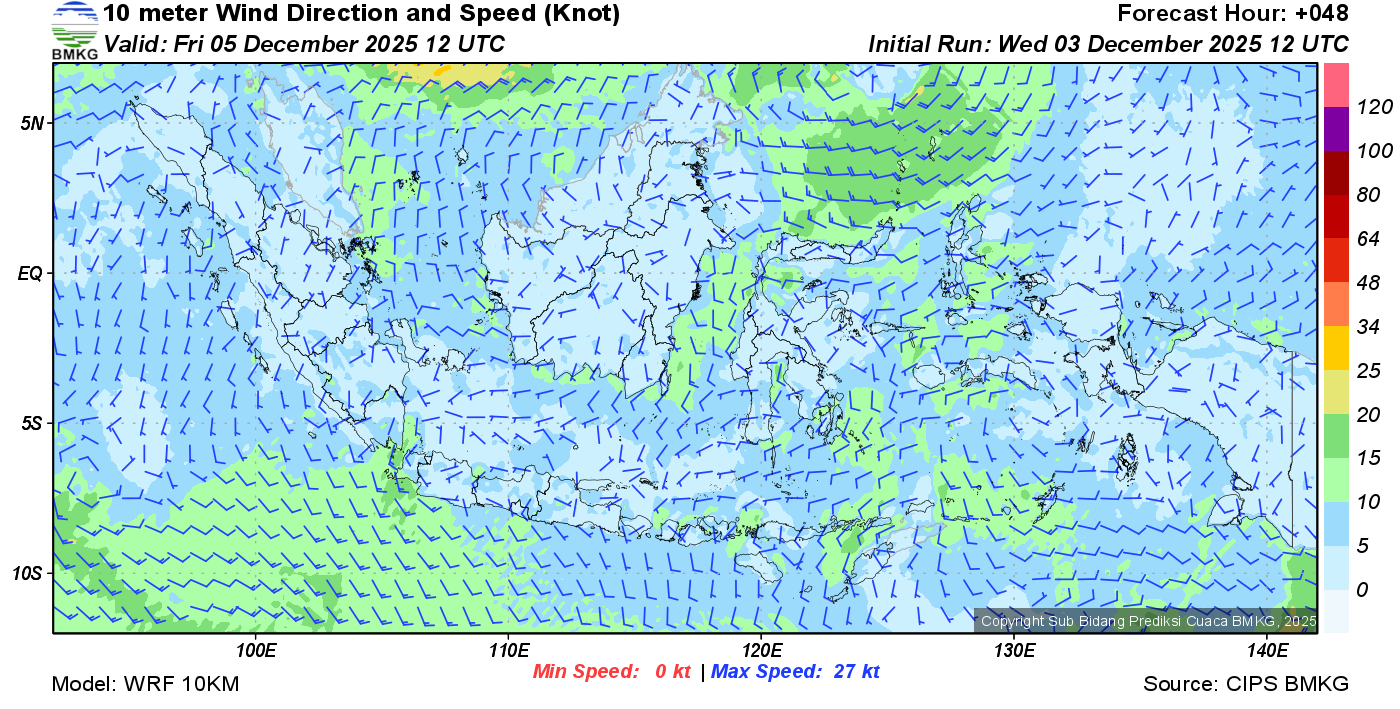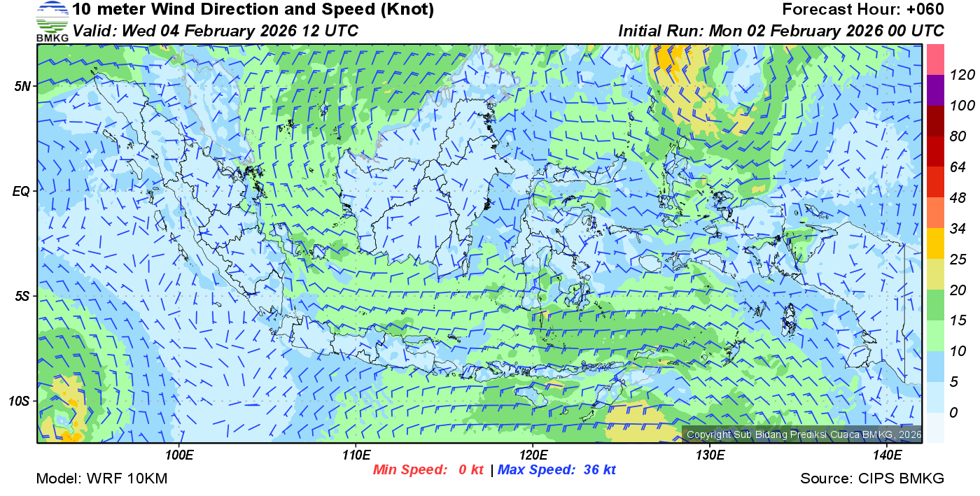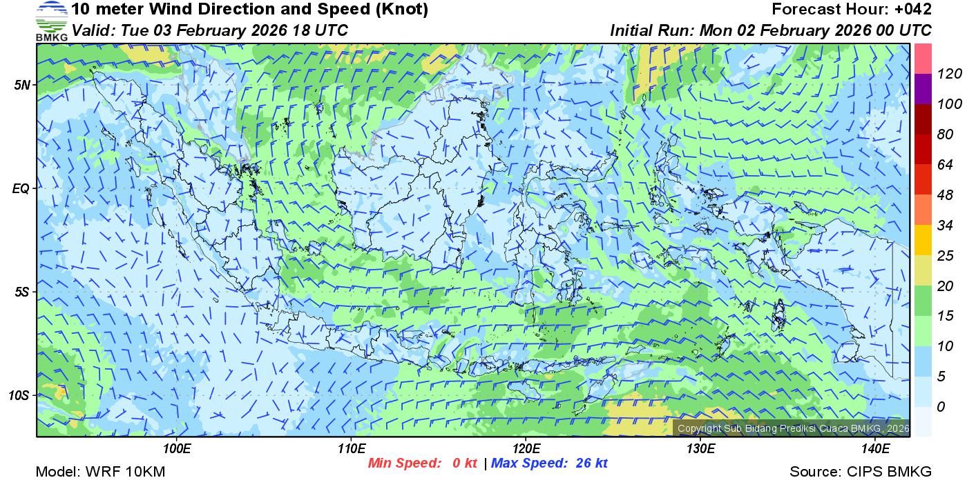 Prakiraan Angin Lapisan 10m Gunung Awu