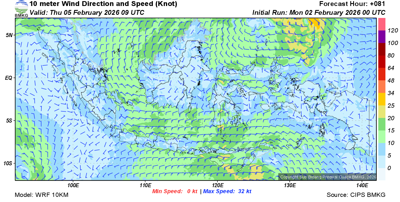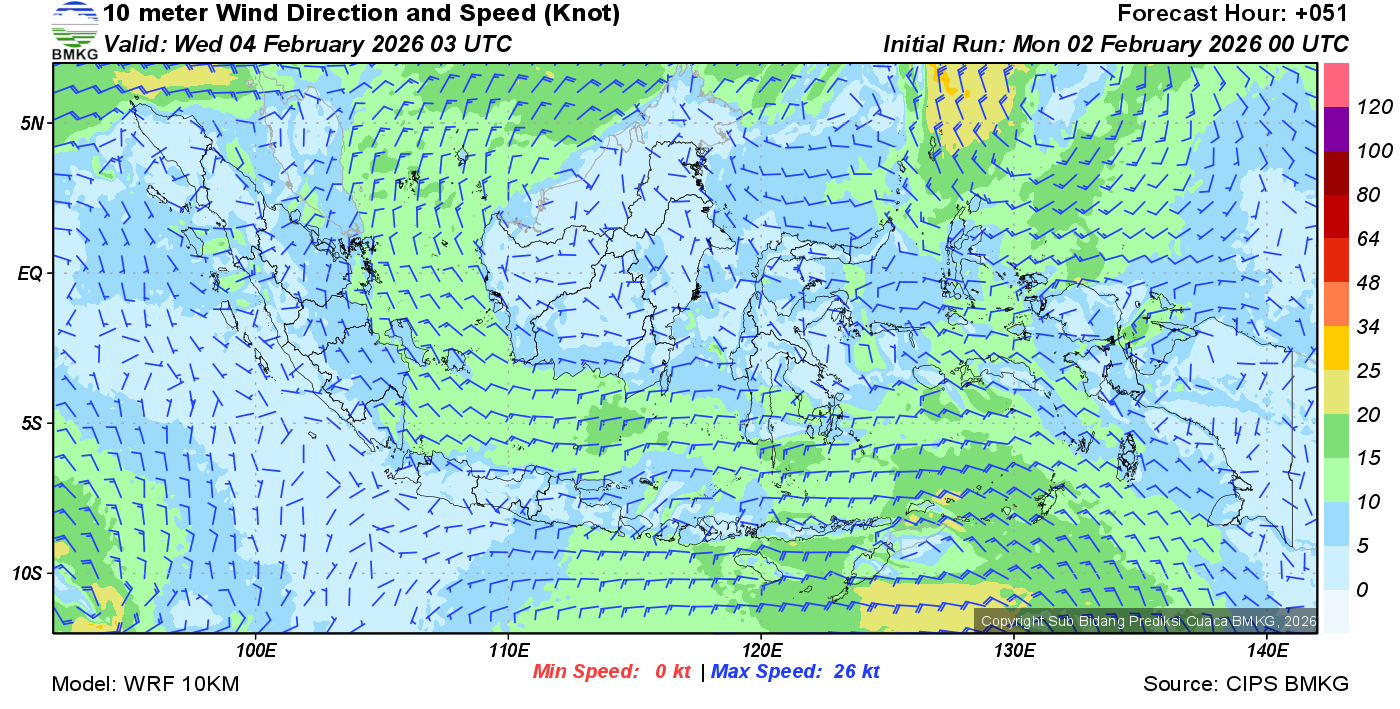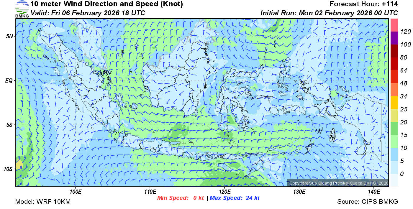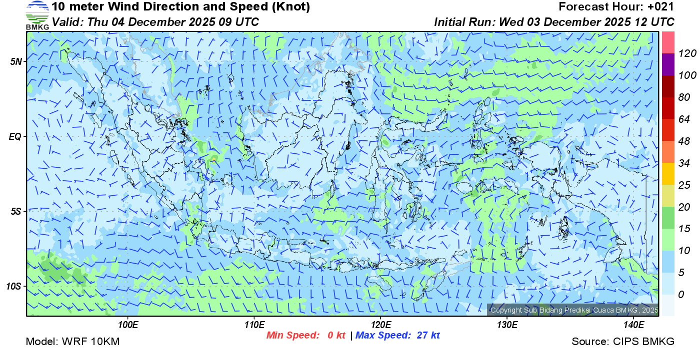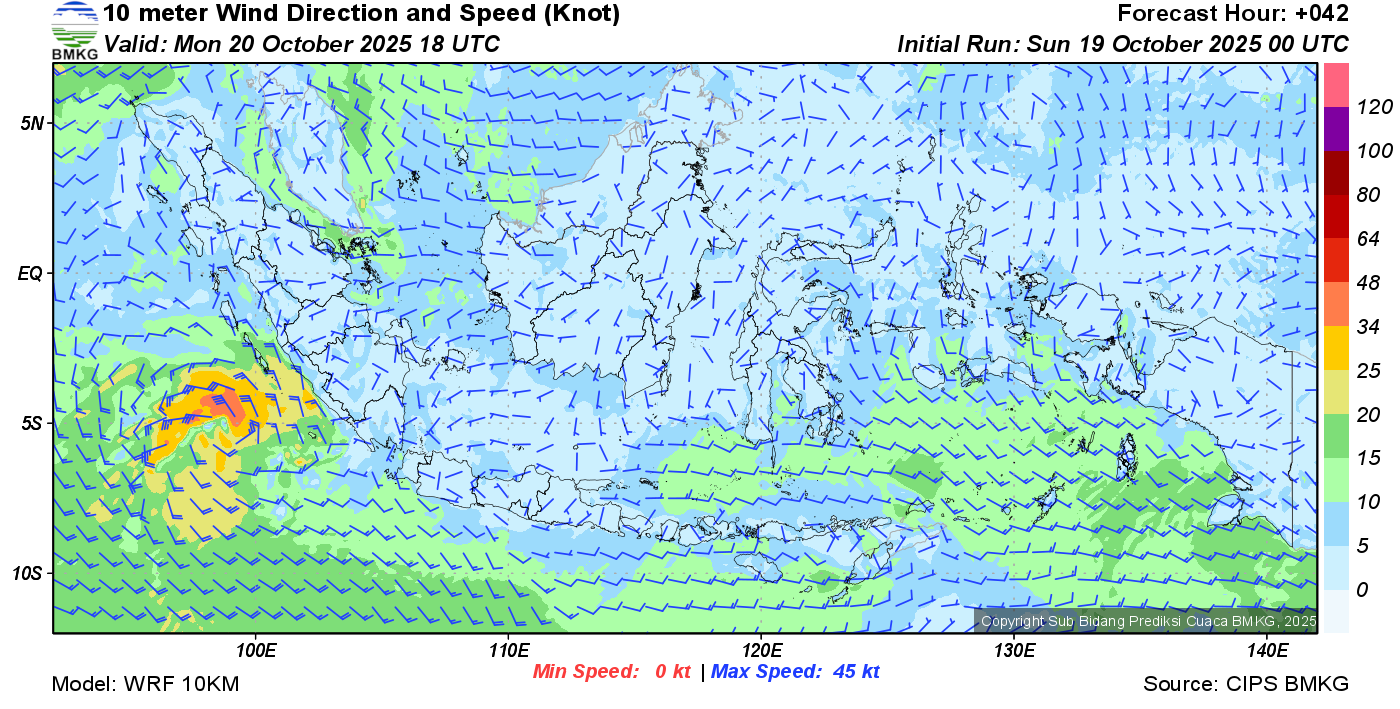 Prakiraan Angin Lapisan 10m Gunung Awu