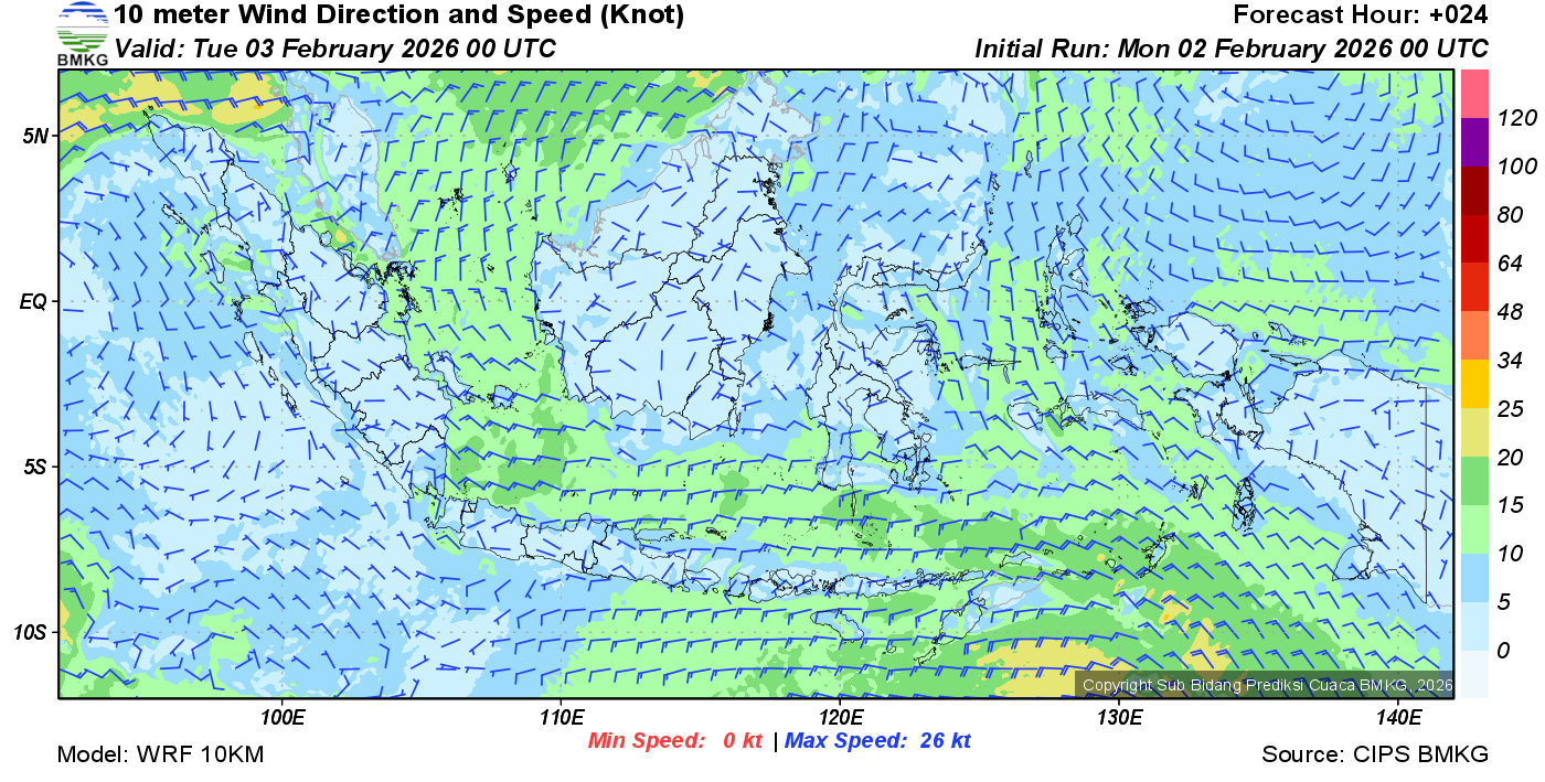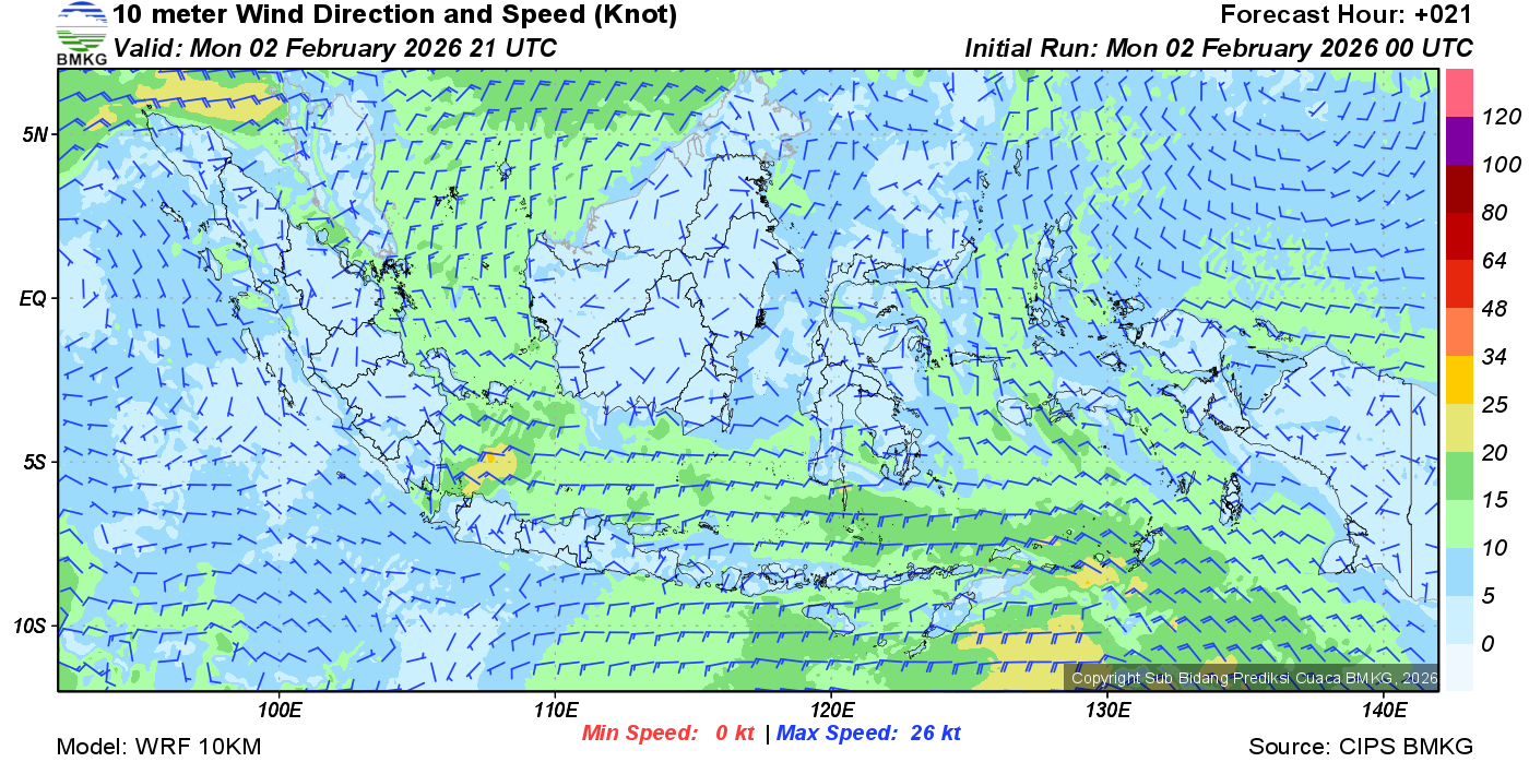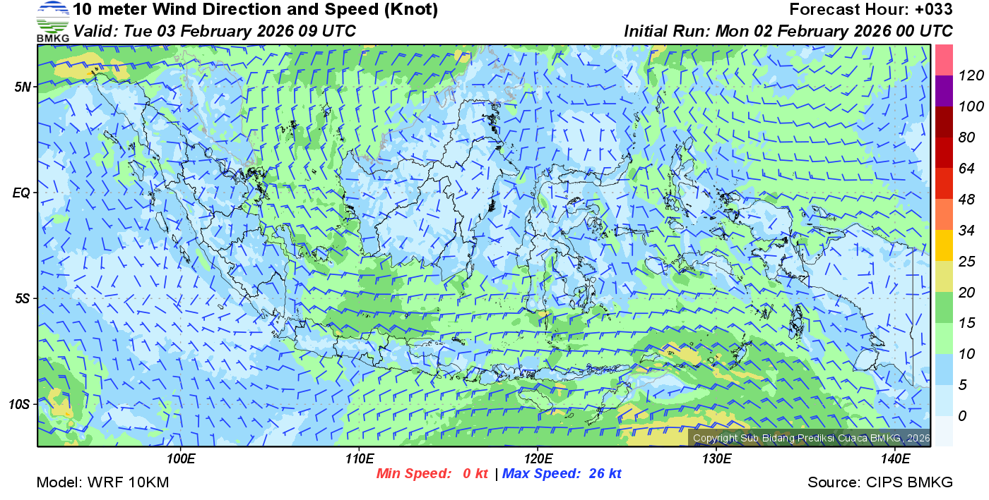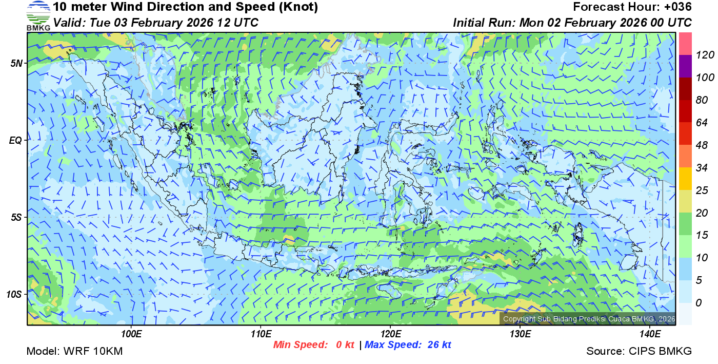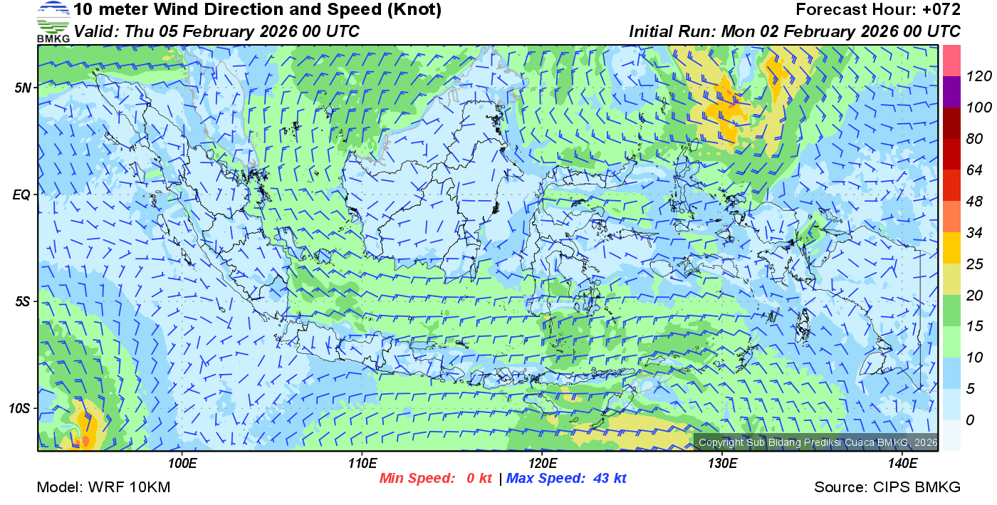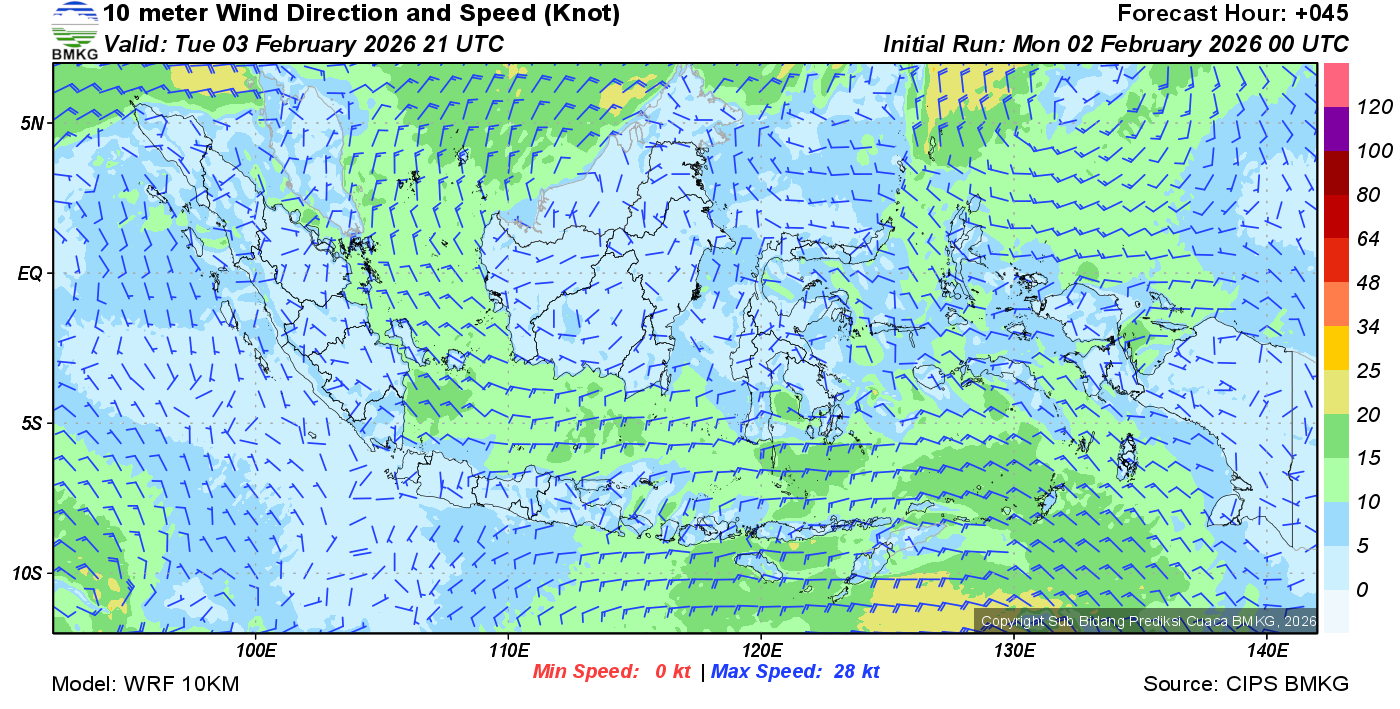 Prakiraan Angin Lapisan 10m Gunung Awu