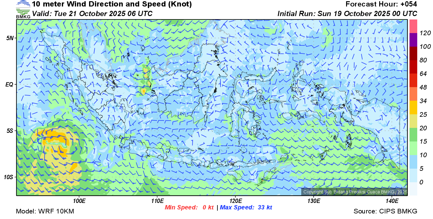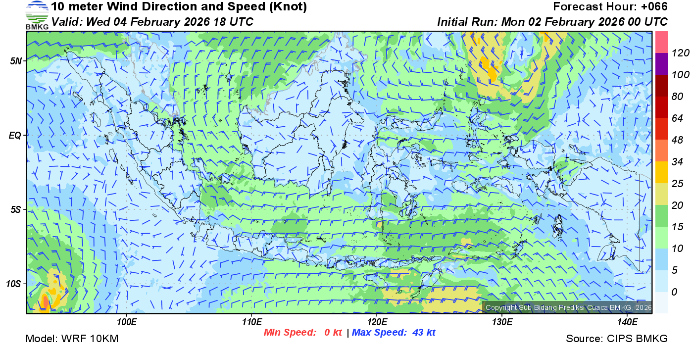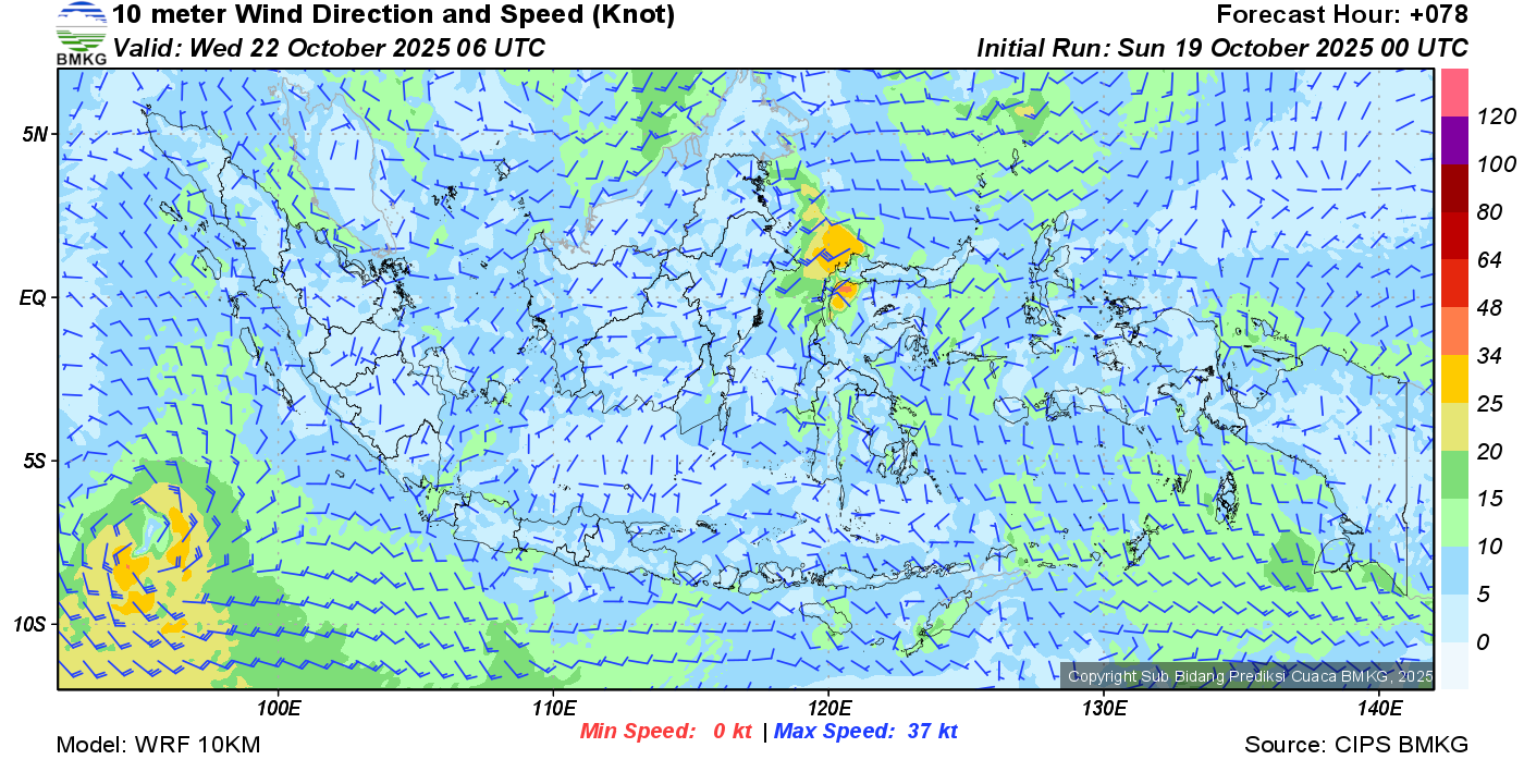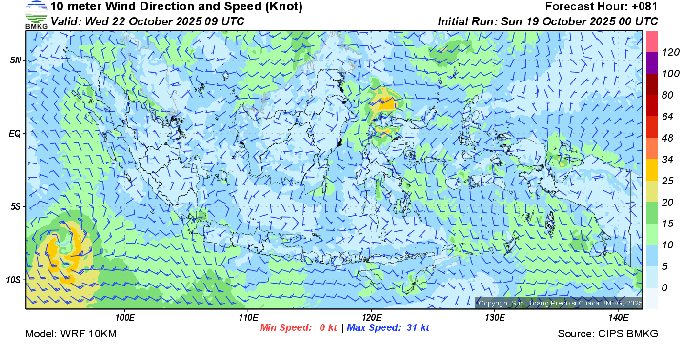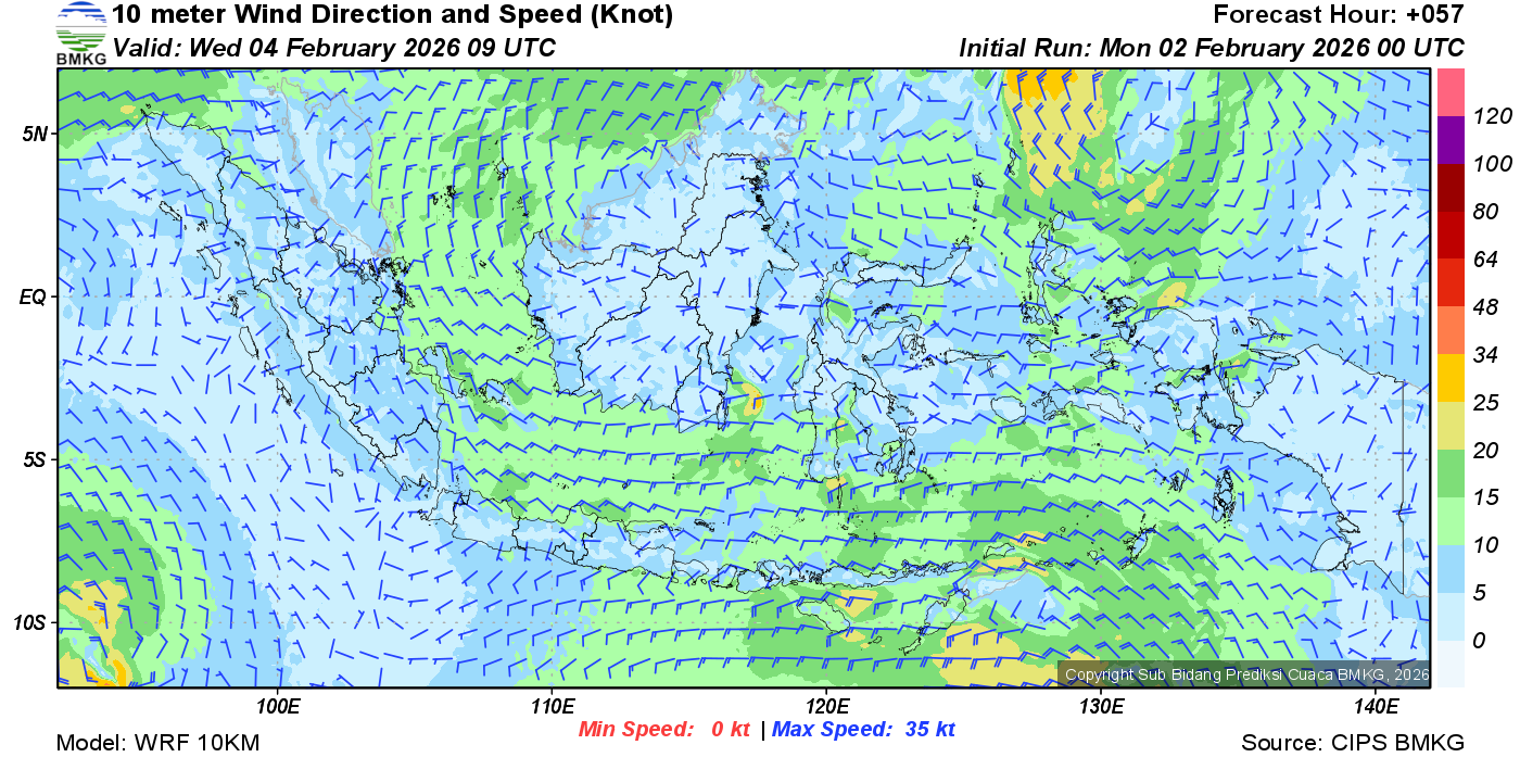 Prakiraan Angin Lapisan 10m Gunung Awu