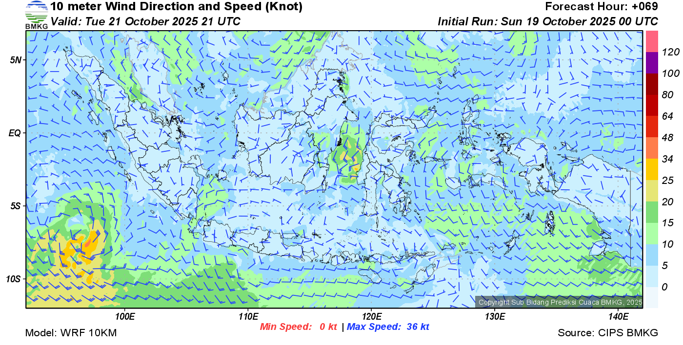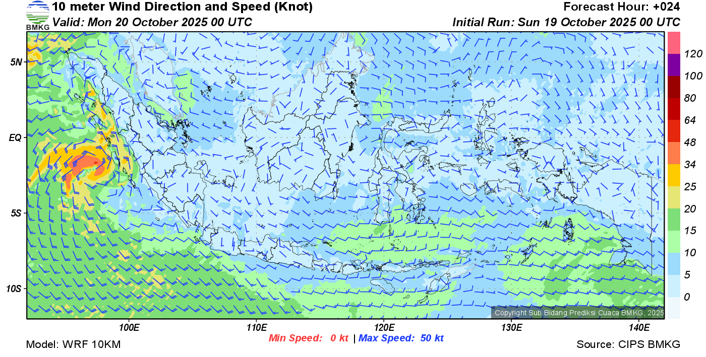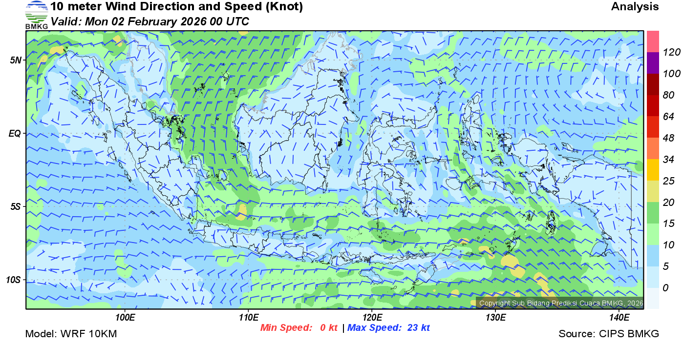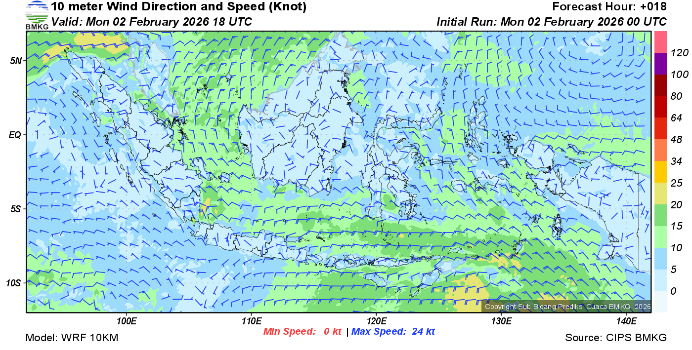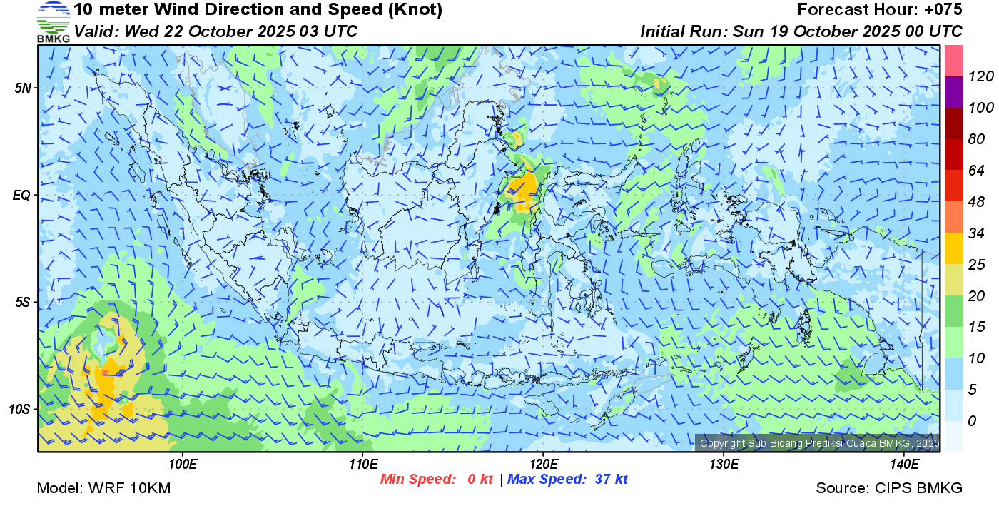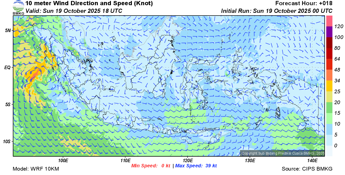 Prakiraan Angin Lapisan 10m Gunung Awu