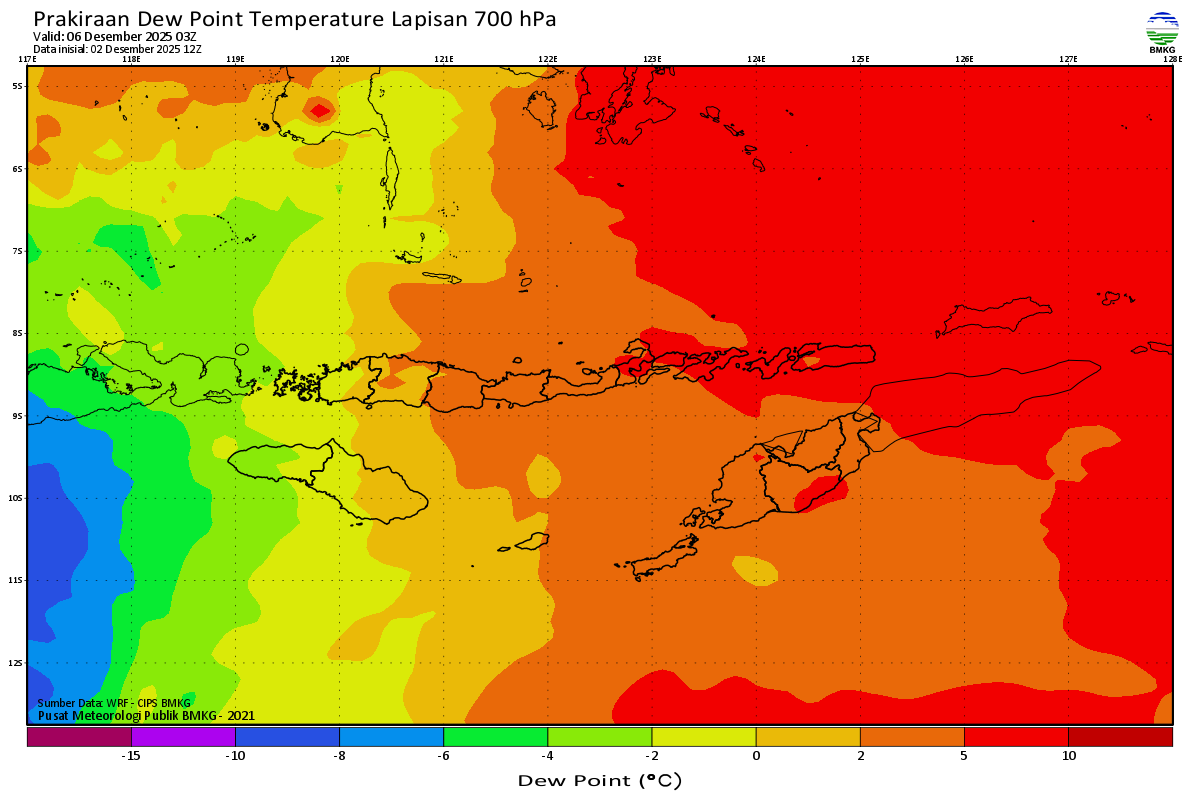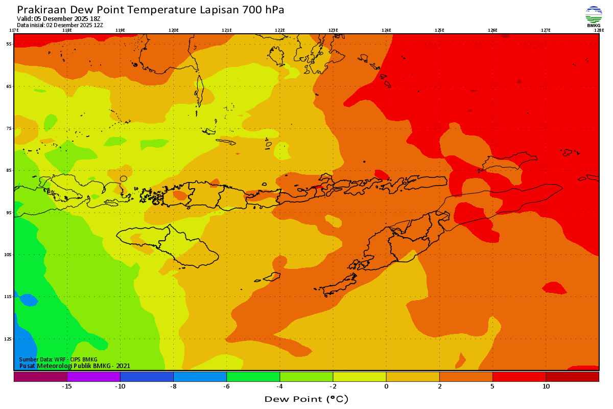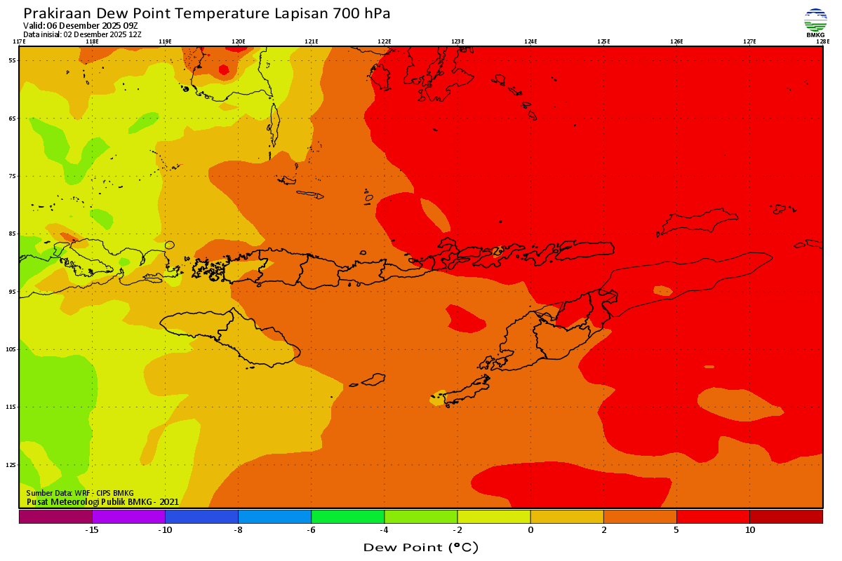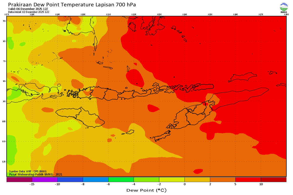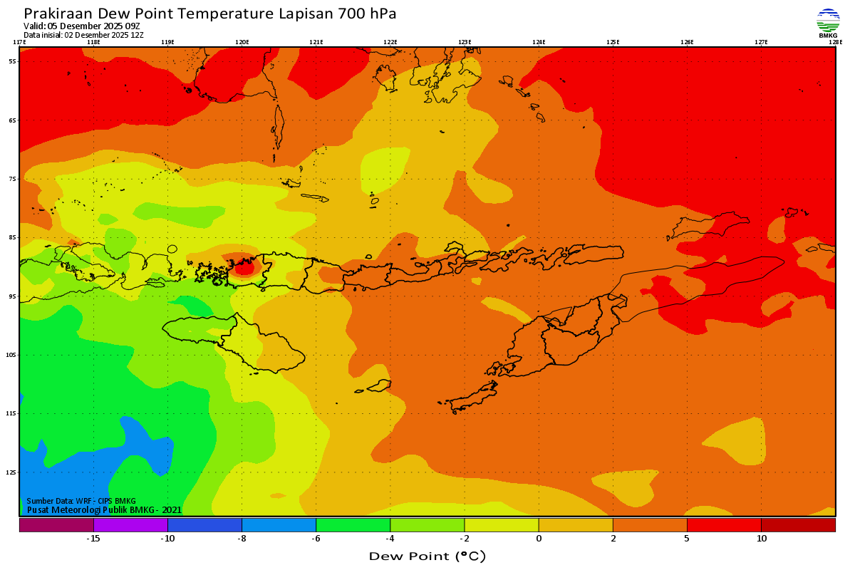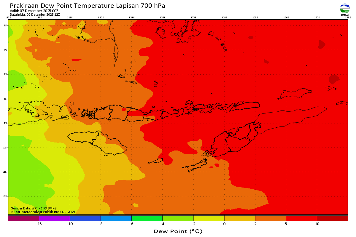 Prediksi Suhu Titik Embun 700 hPa NTT