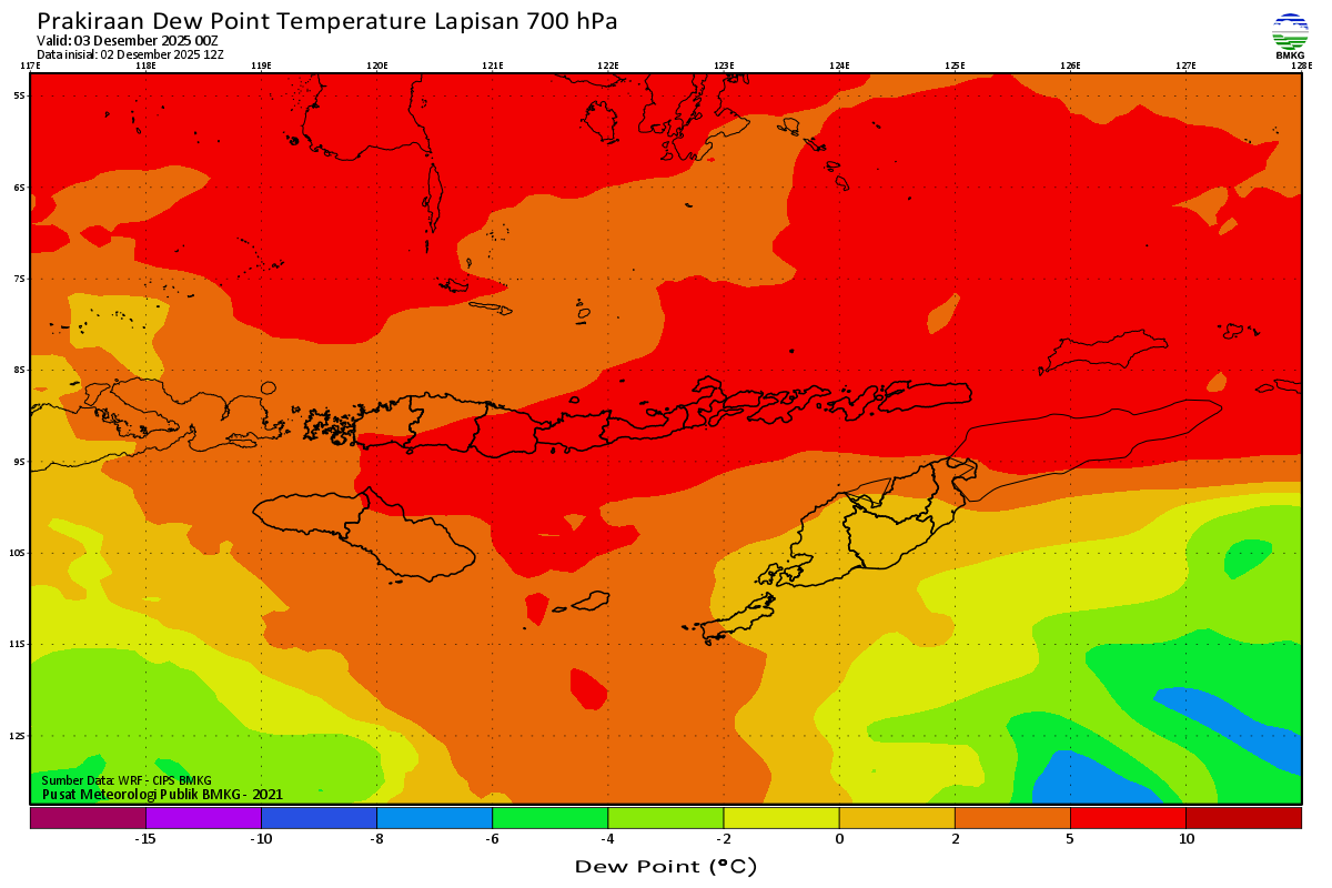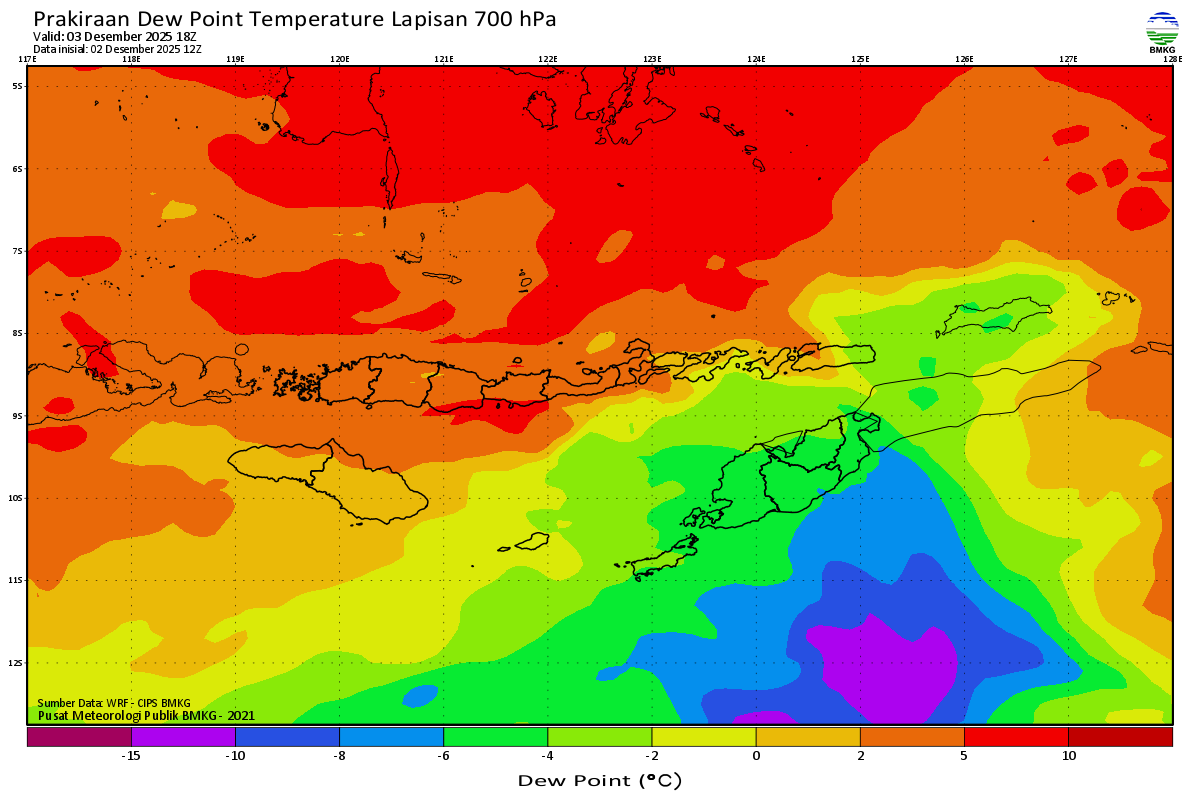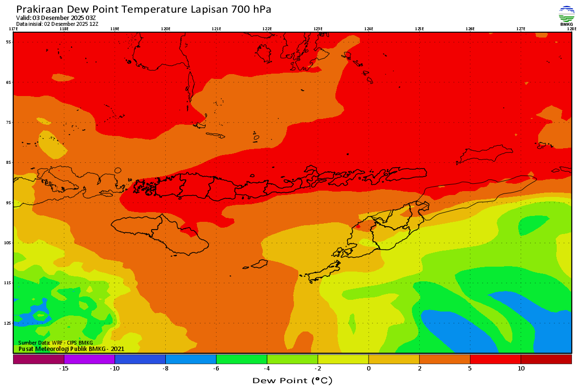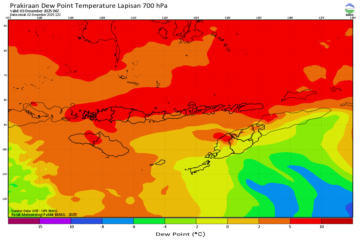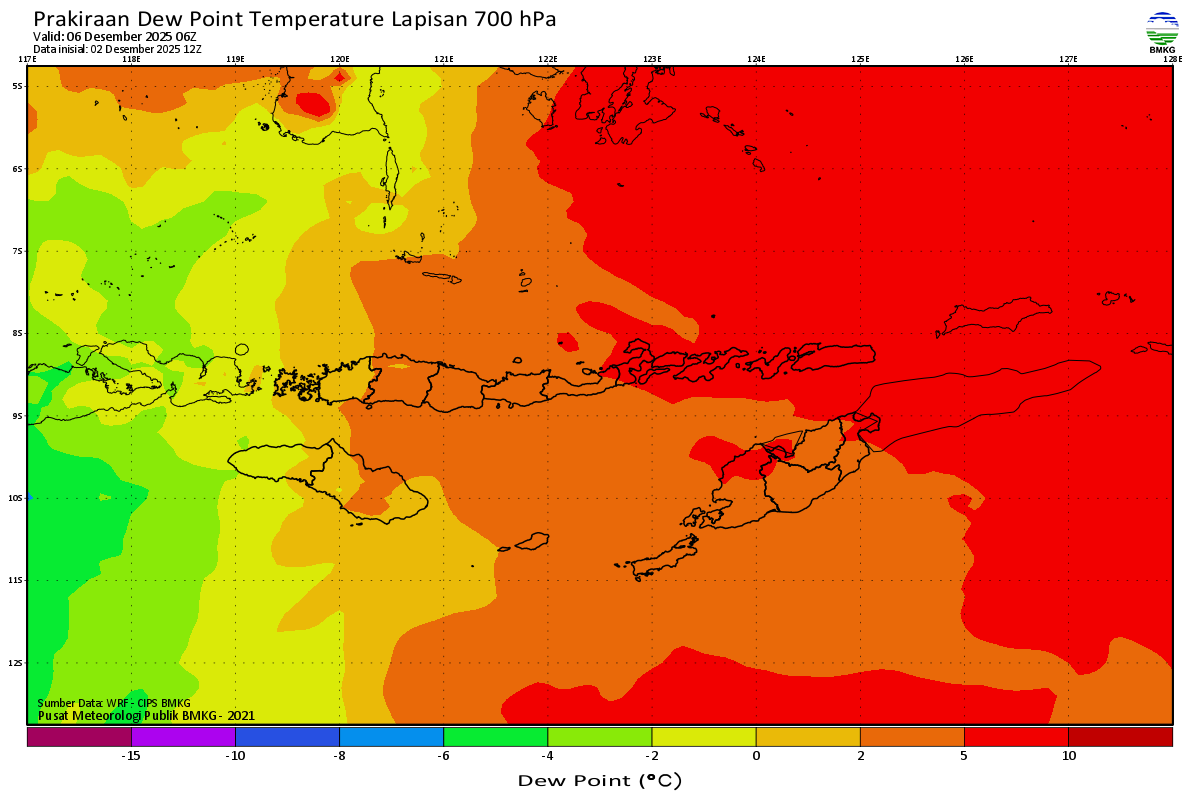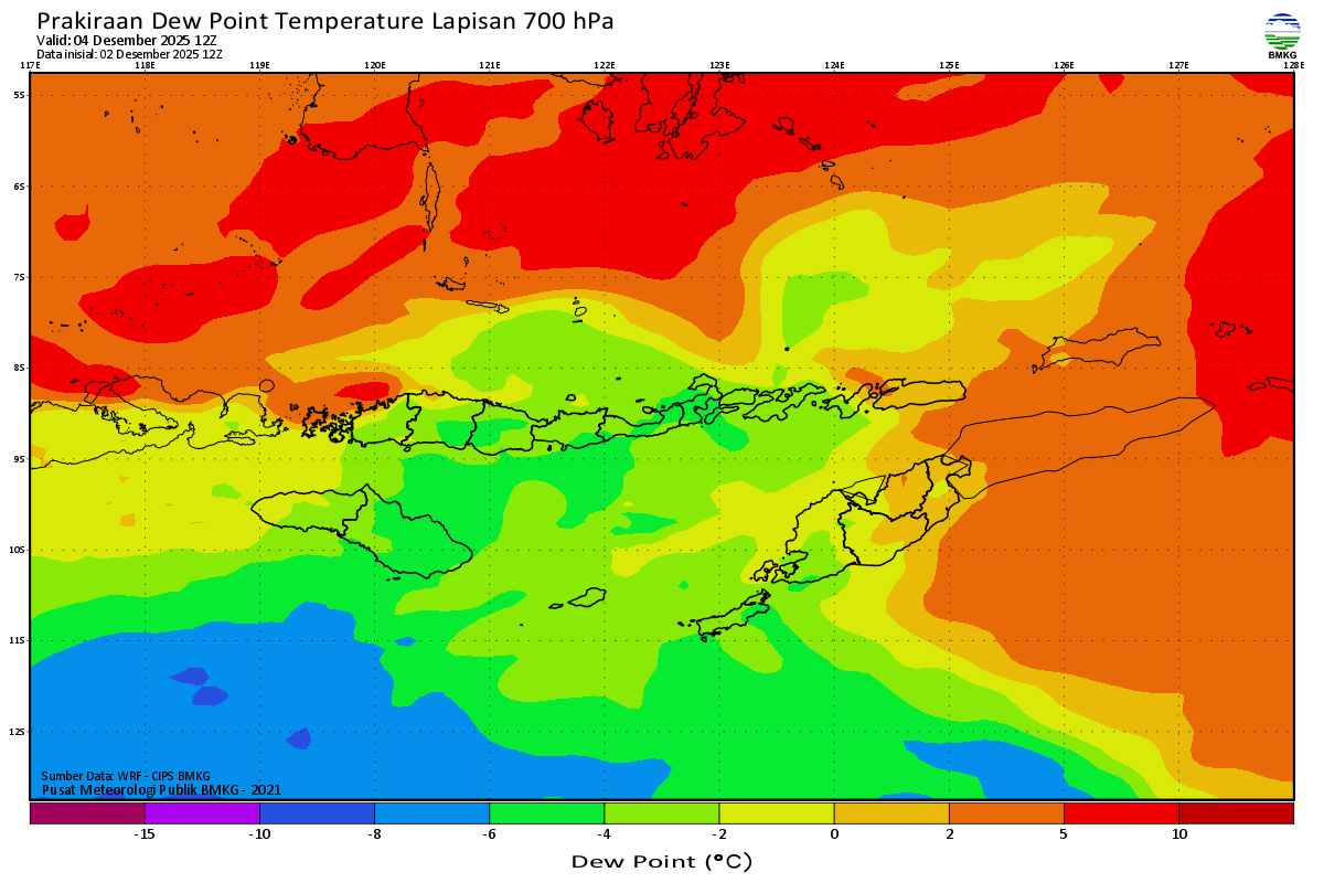Prediksi Suhu Titik Embun 700 hPa NTT
