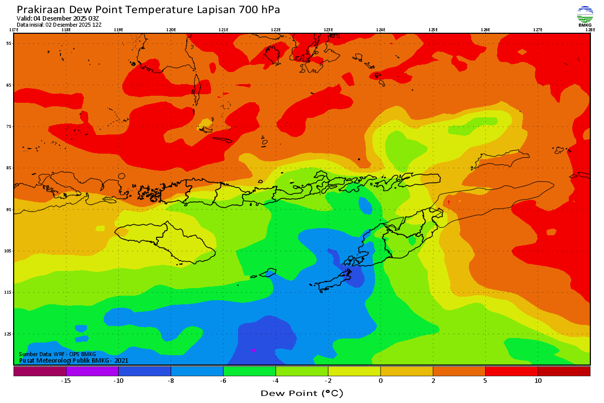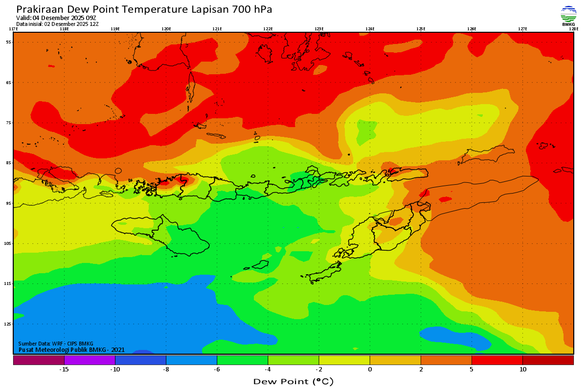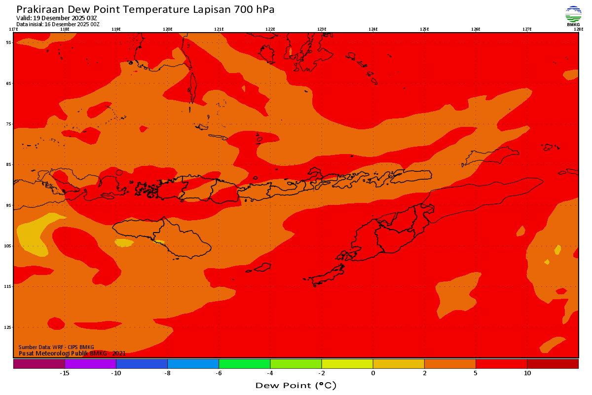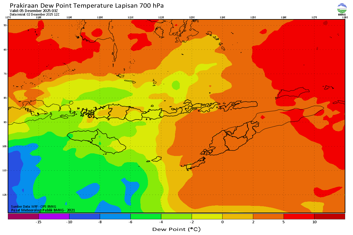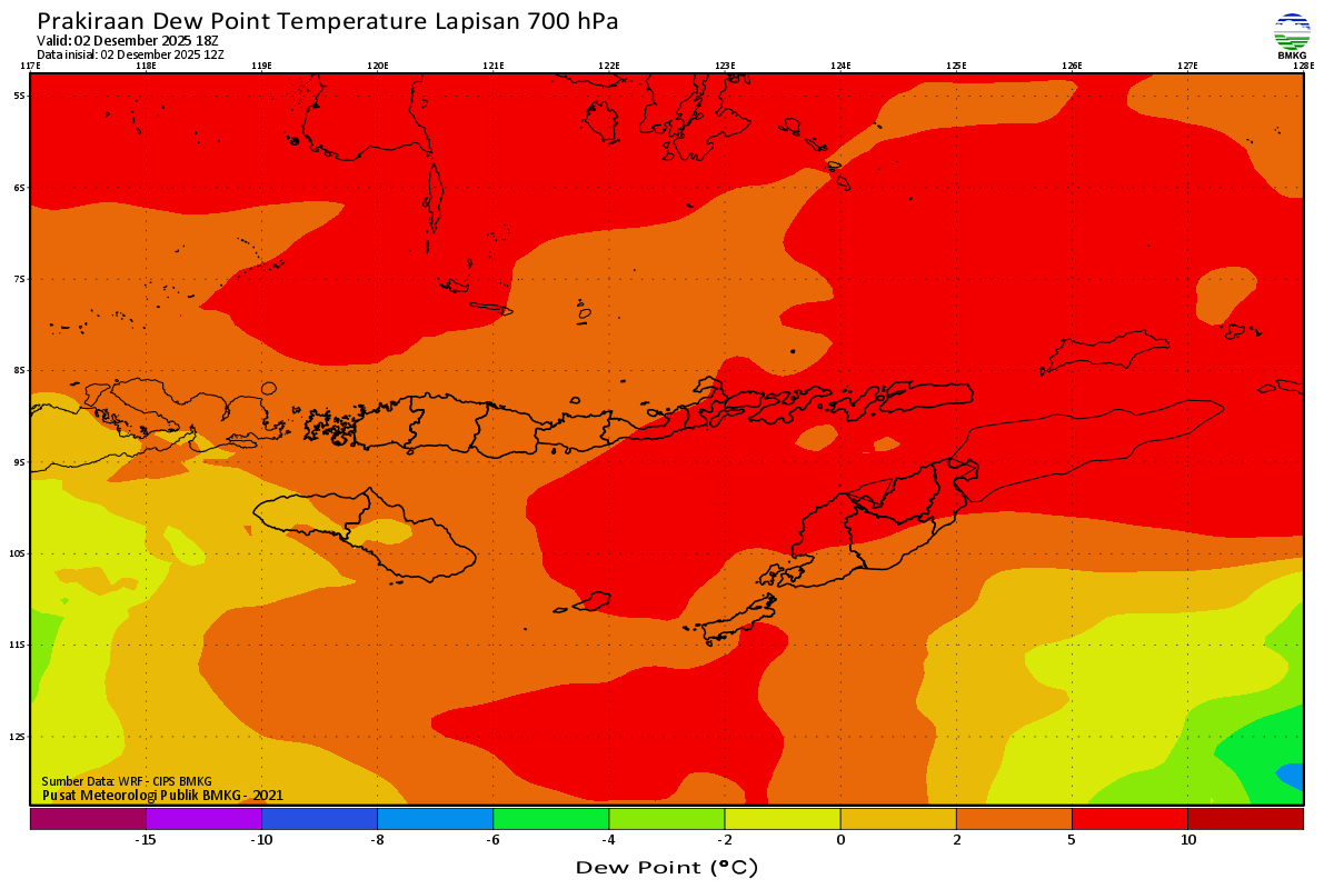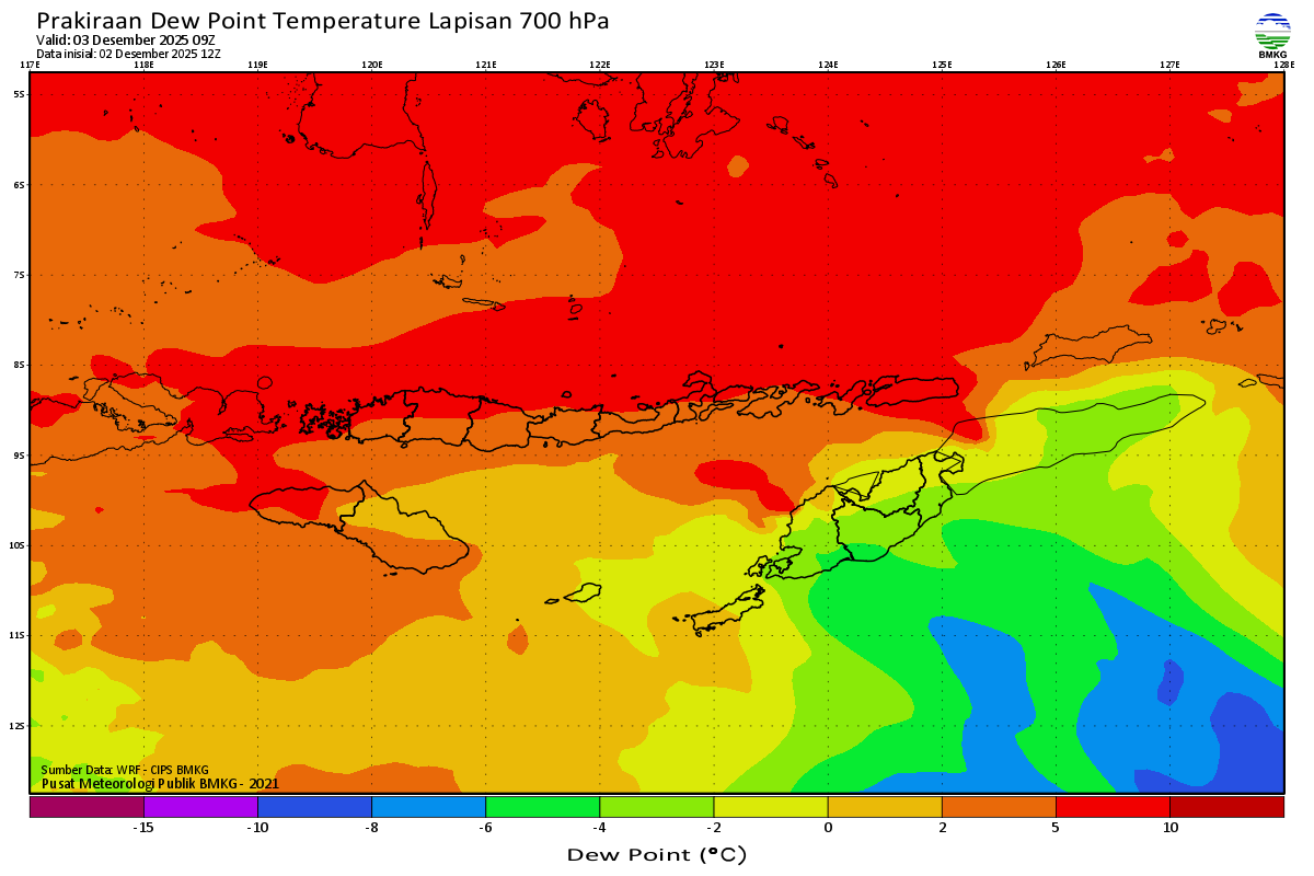 Prediksi Suhu Titik Embun 700 hPa NTT