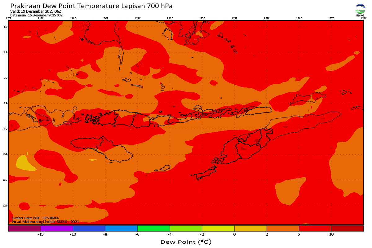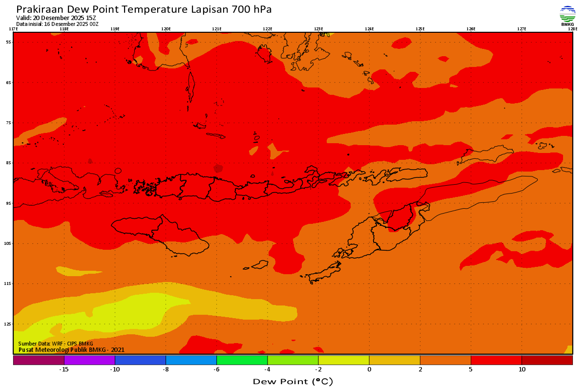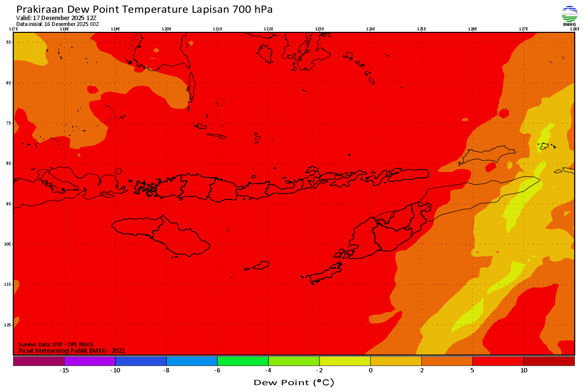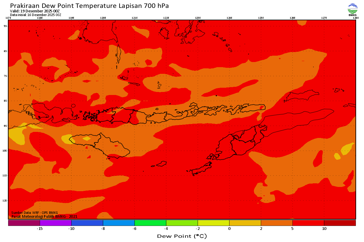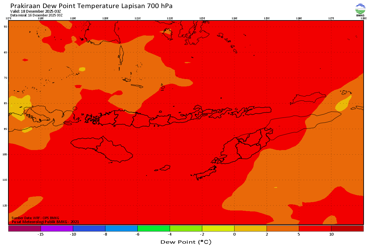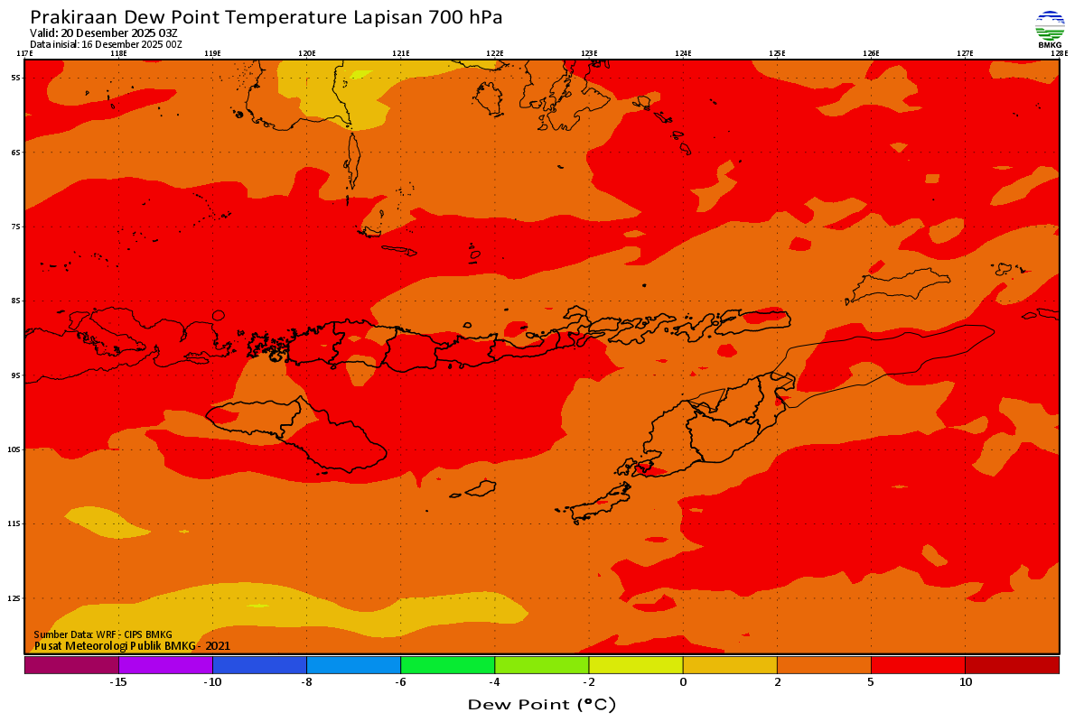 Prediksi Suhu Titik Embun 700 hPa NTT