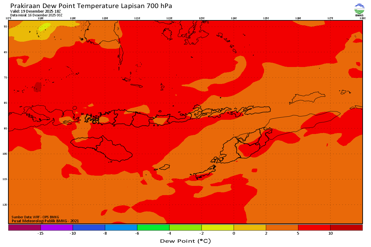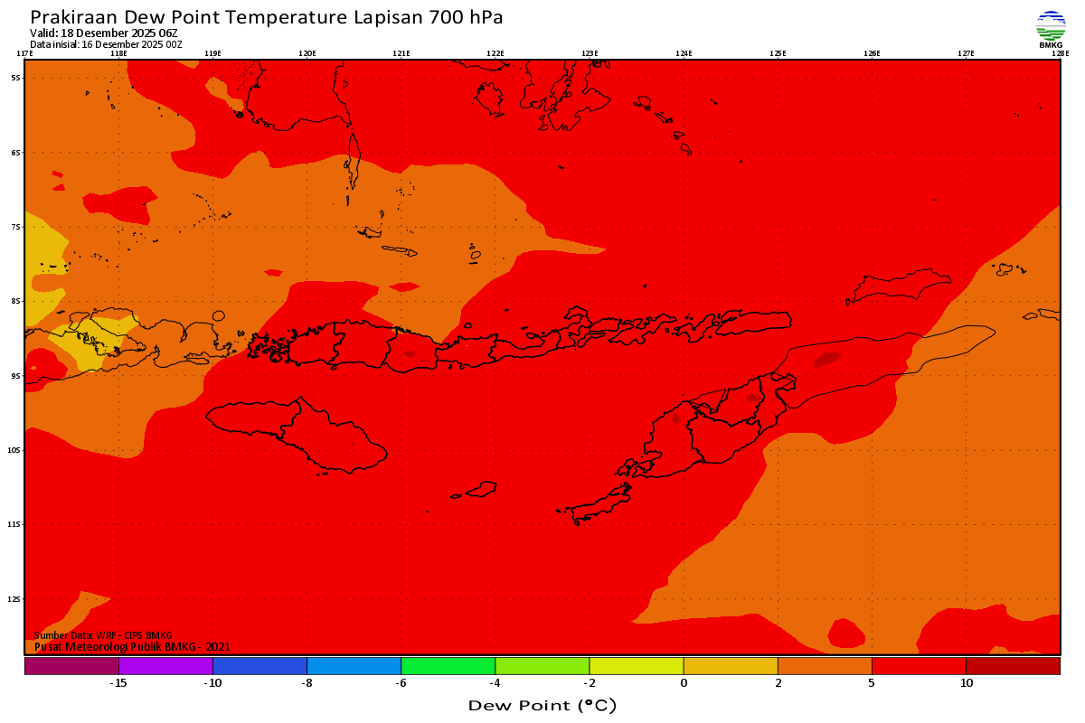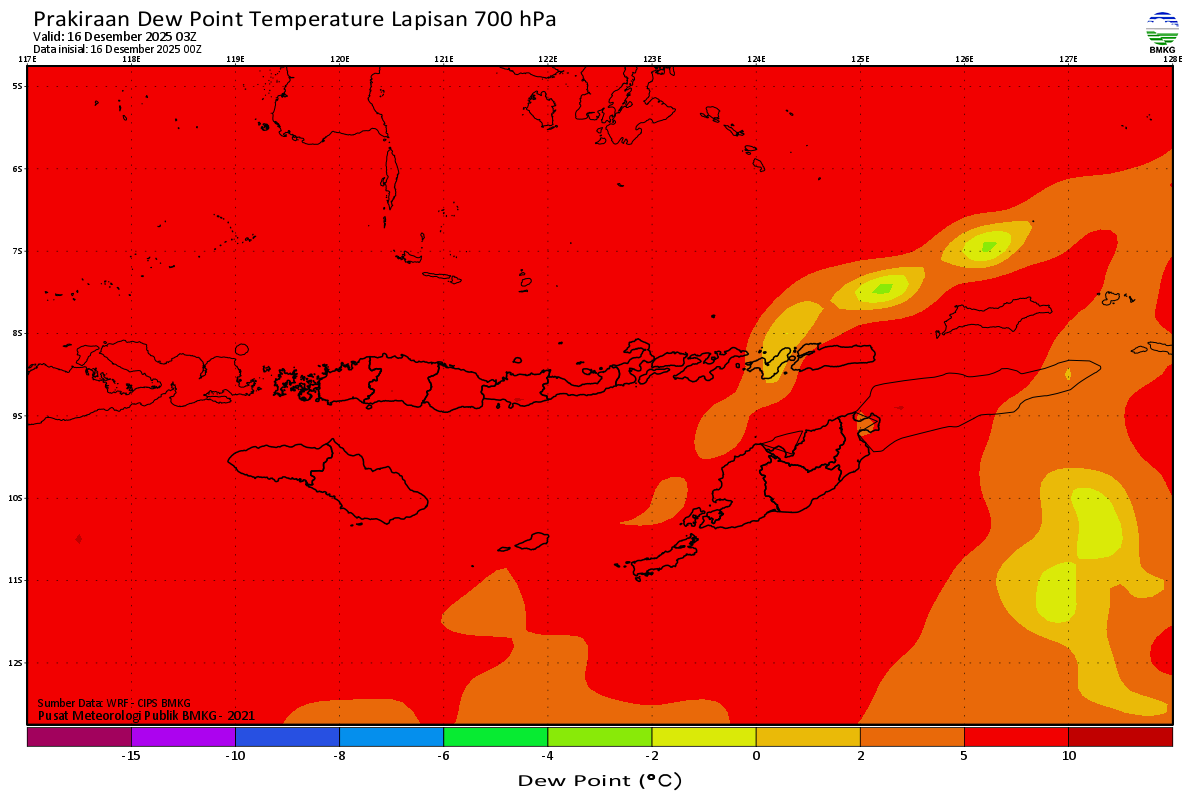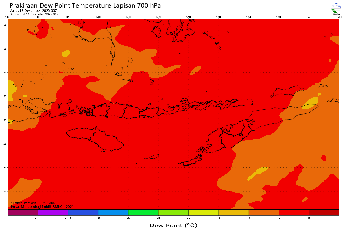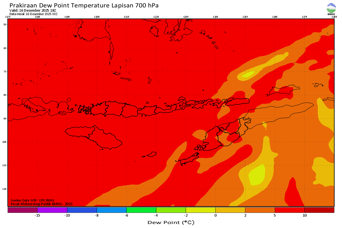 Prediksi Suhu Titik Embun 700 hPa NTT