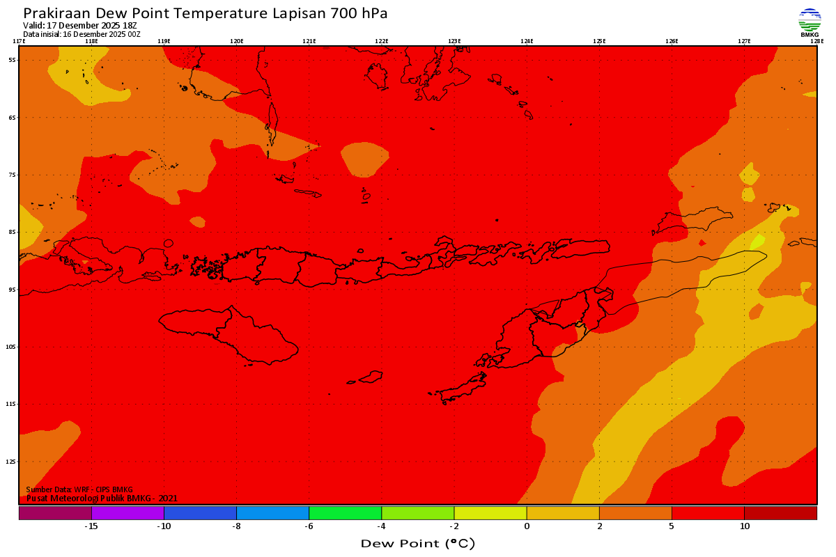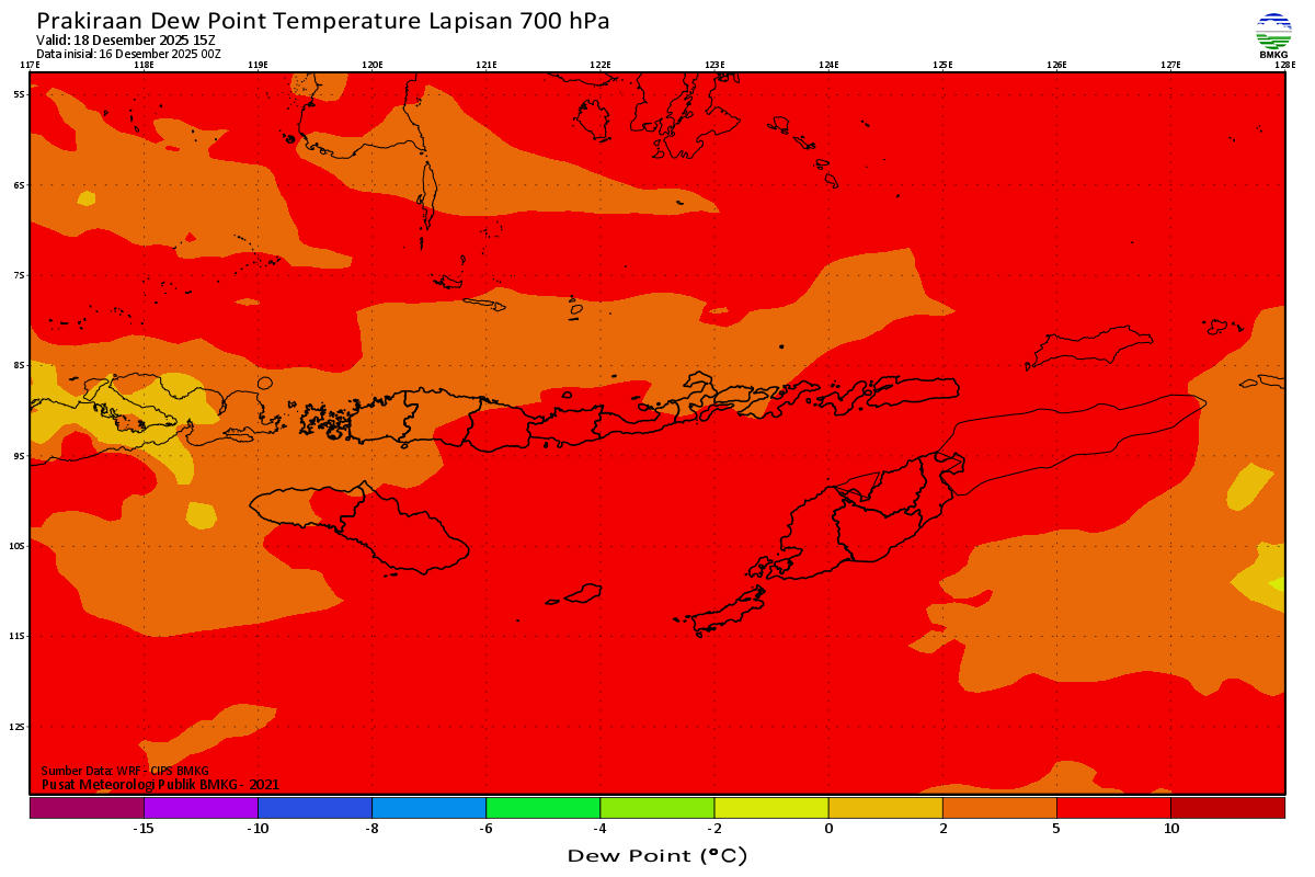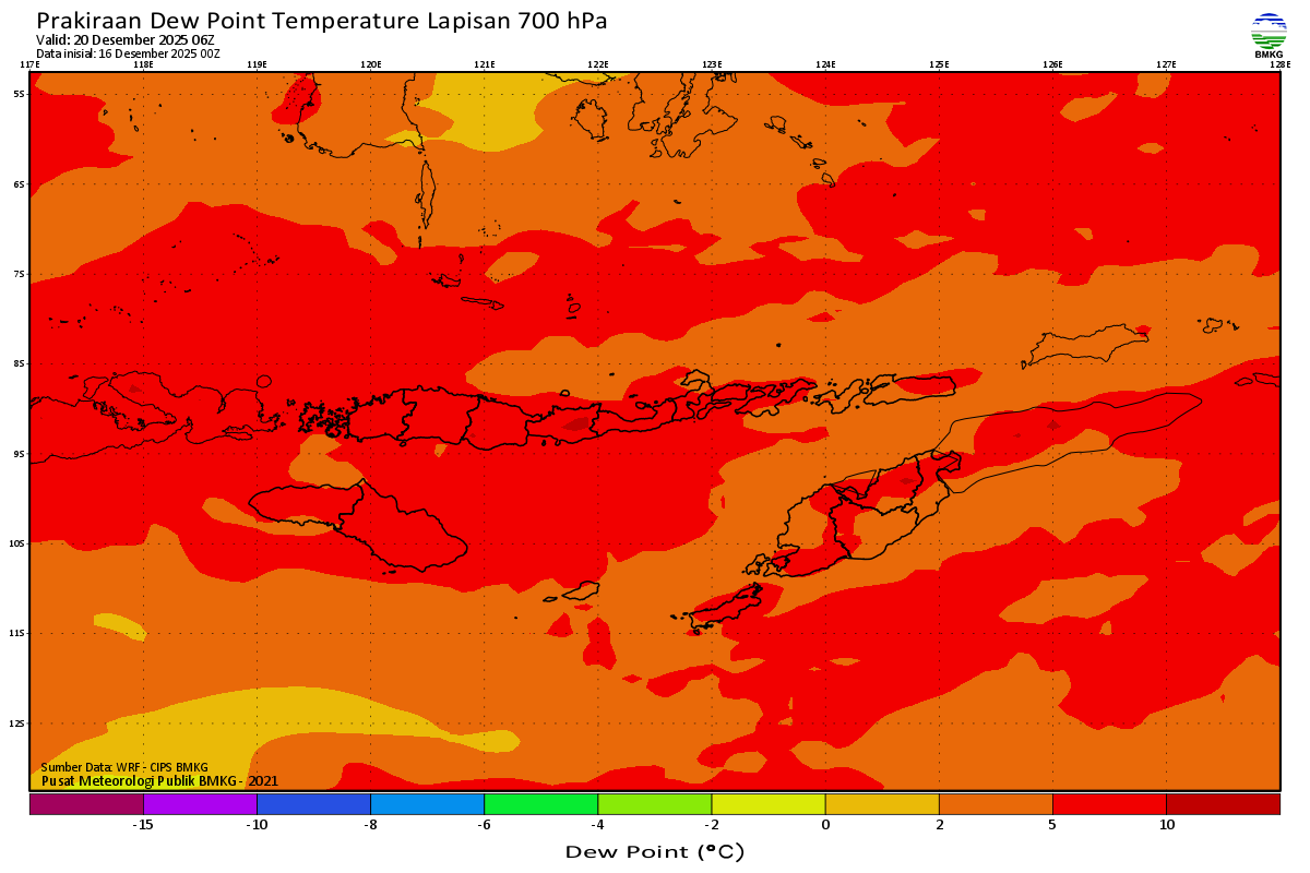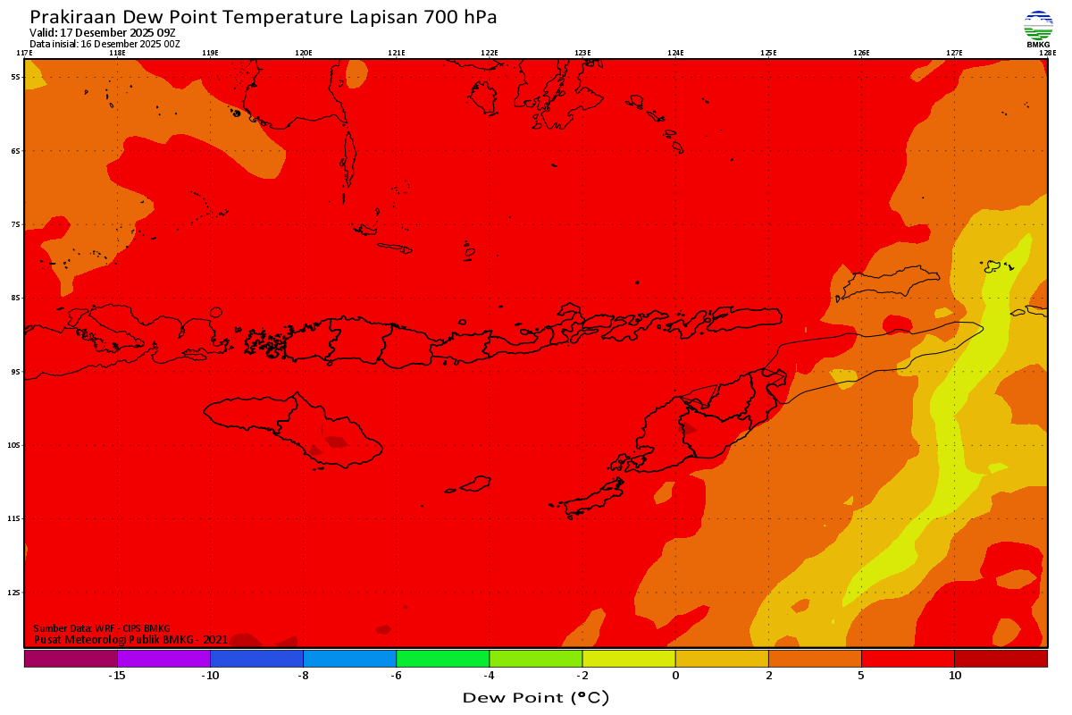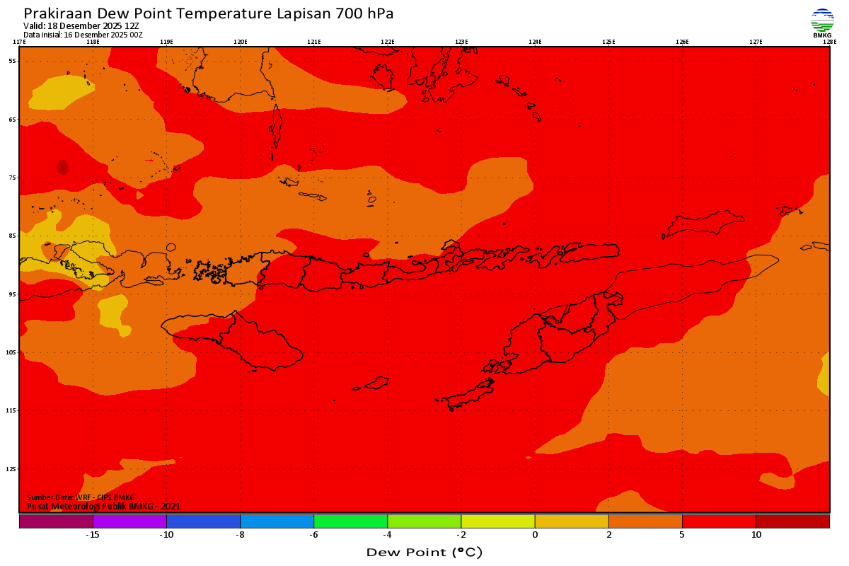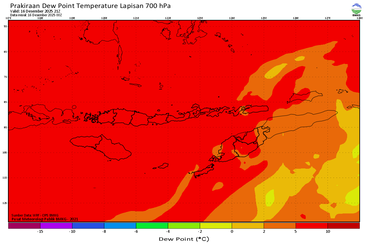 Prediksi Suhu Titik Embun 700 hPa NTT