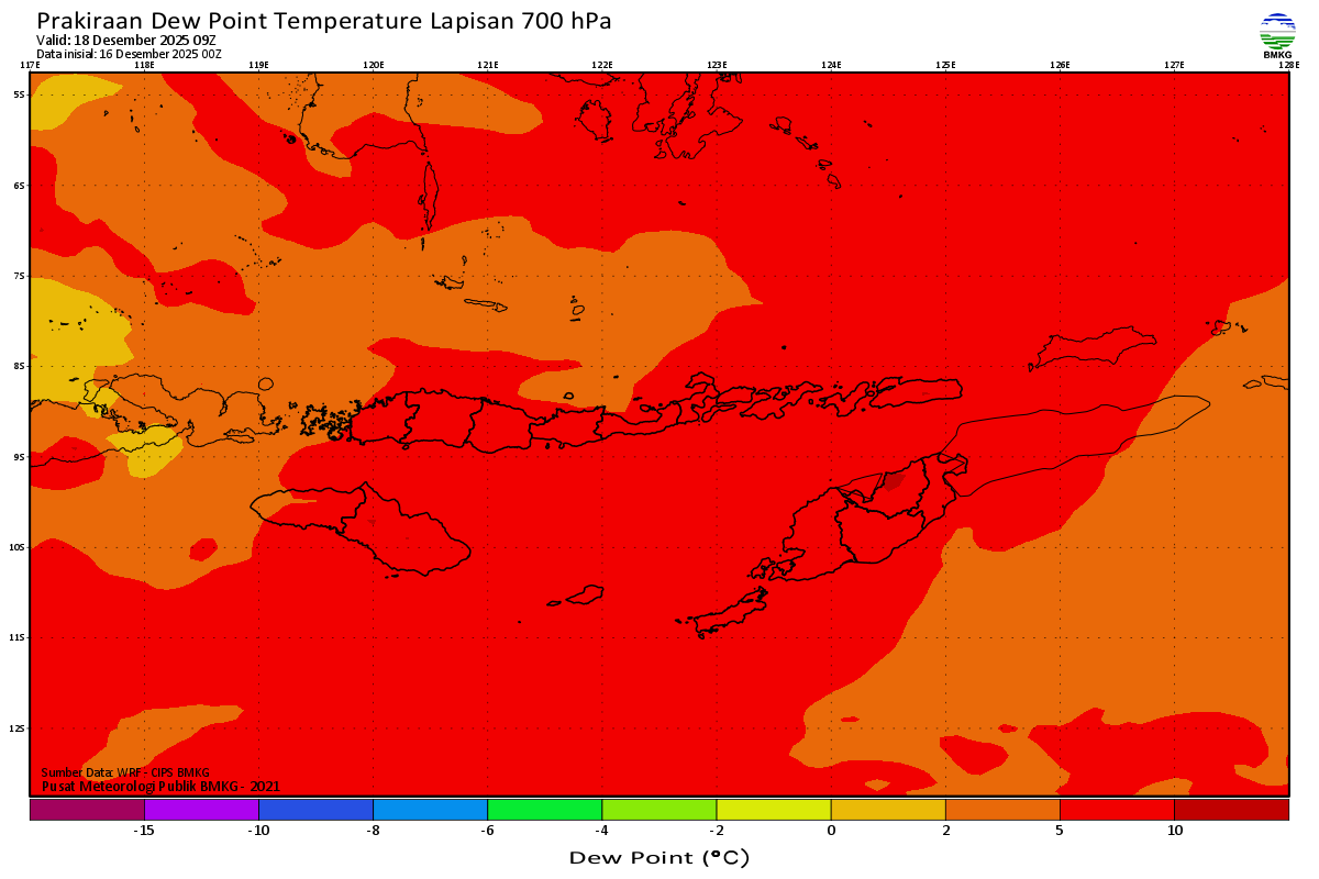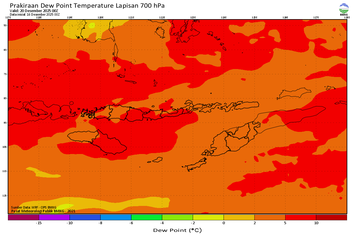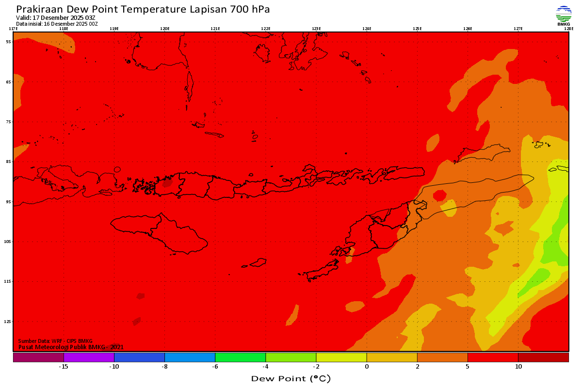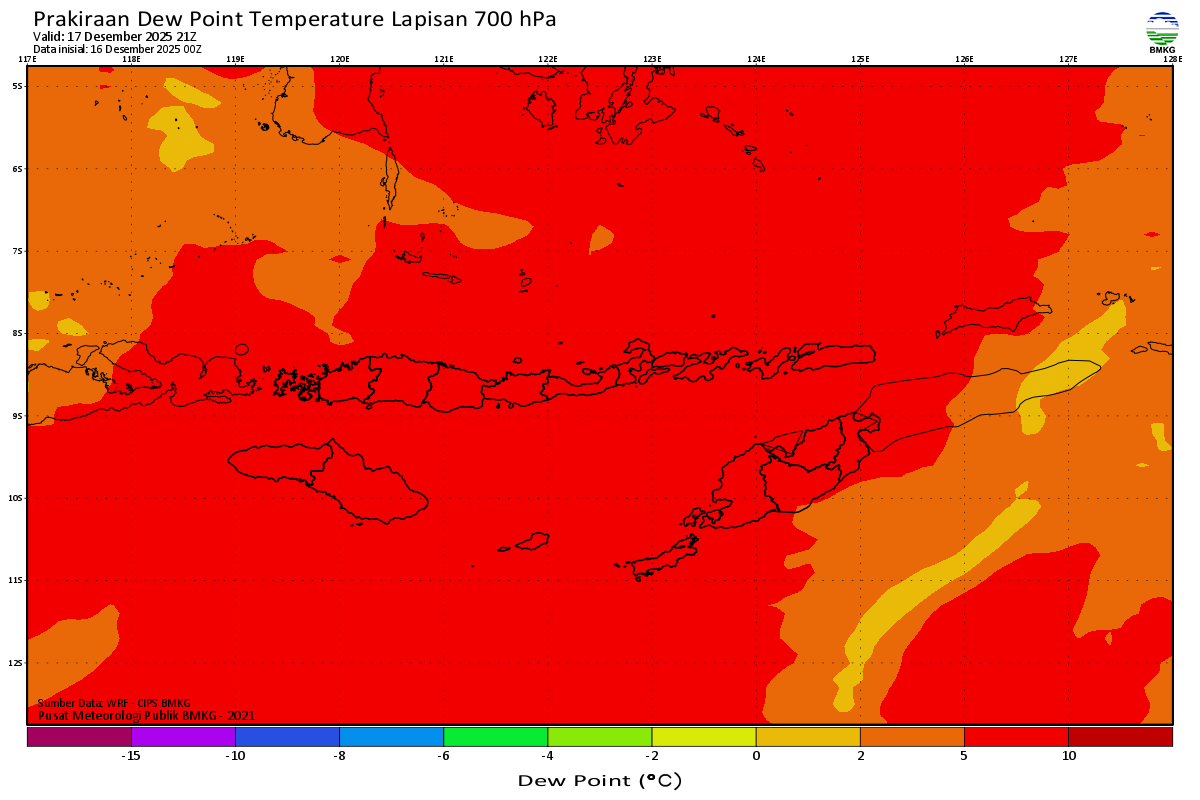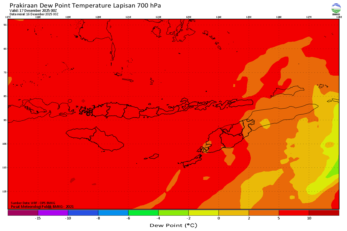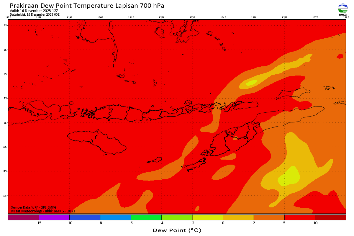Prediksi Suhu Titik Embun 700 hPa NTT