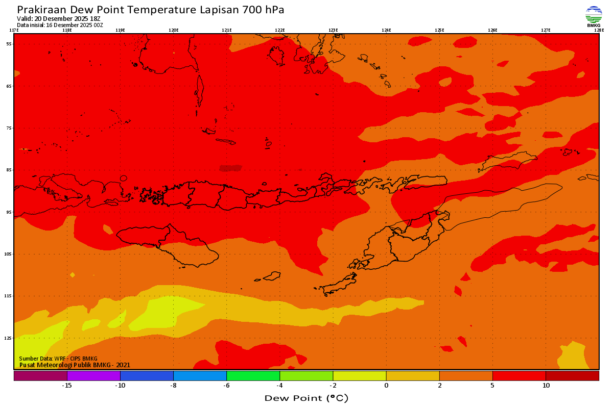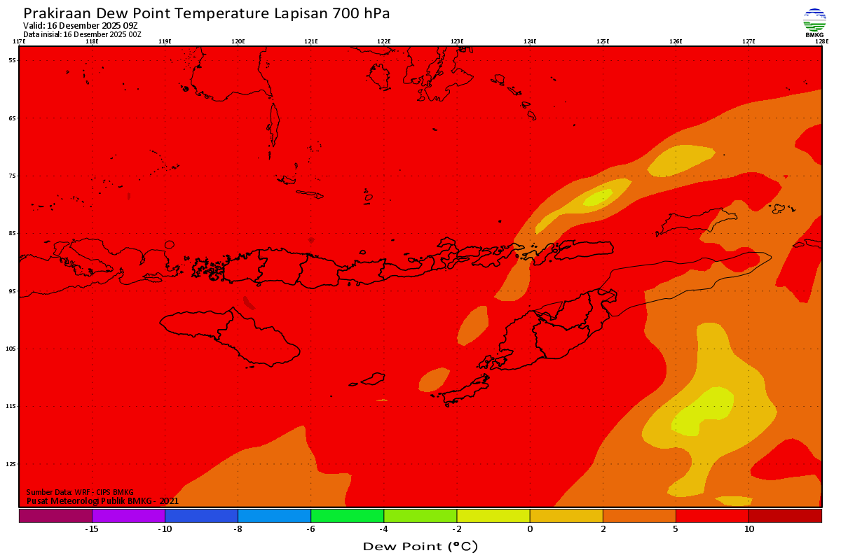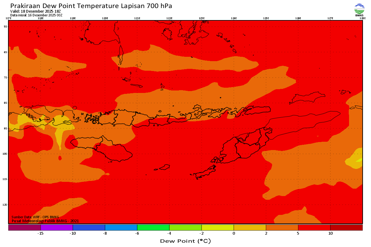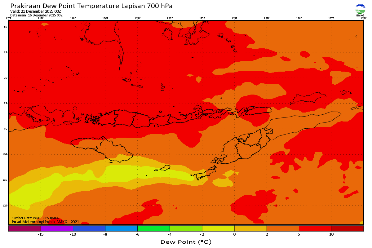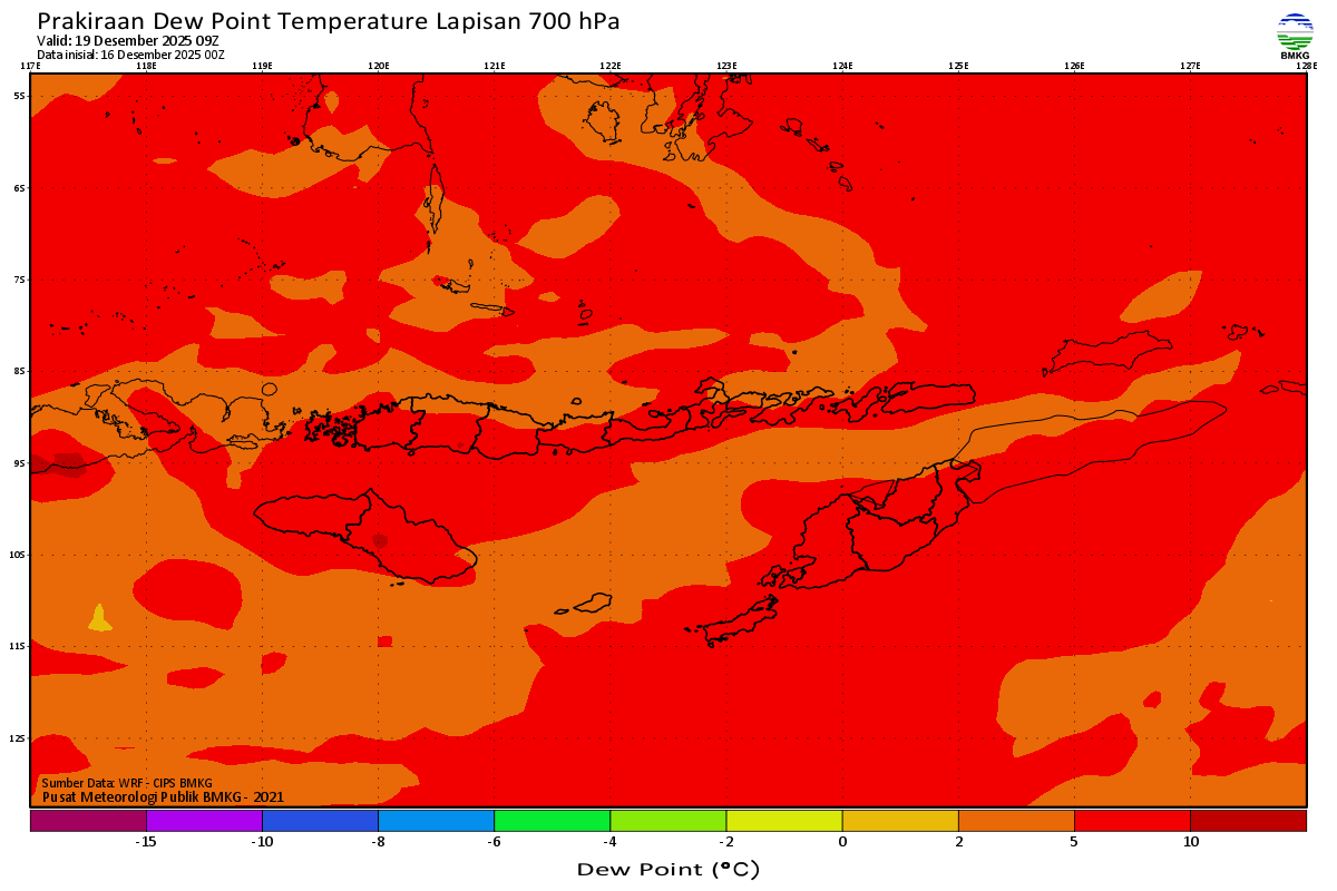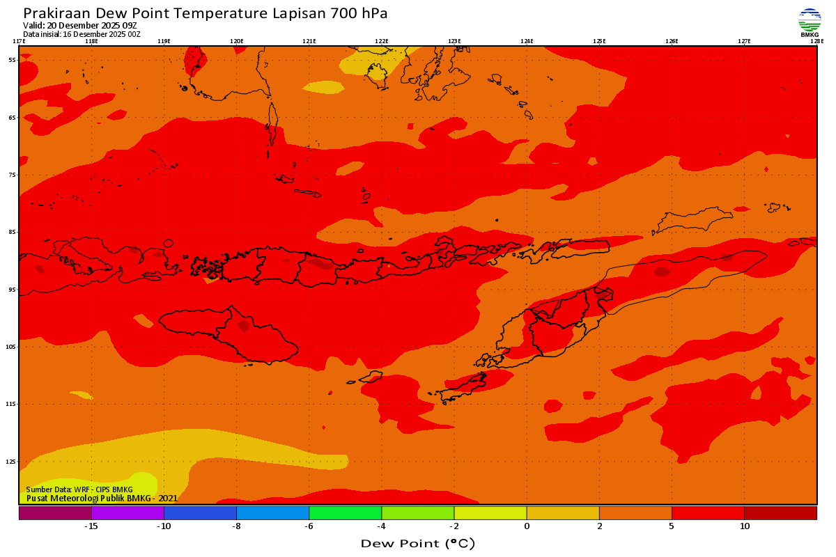Prediksi Suhu Titik Embun 700 hPa NTT