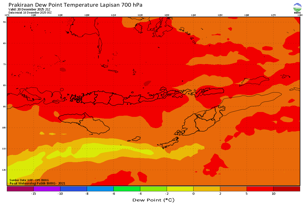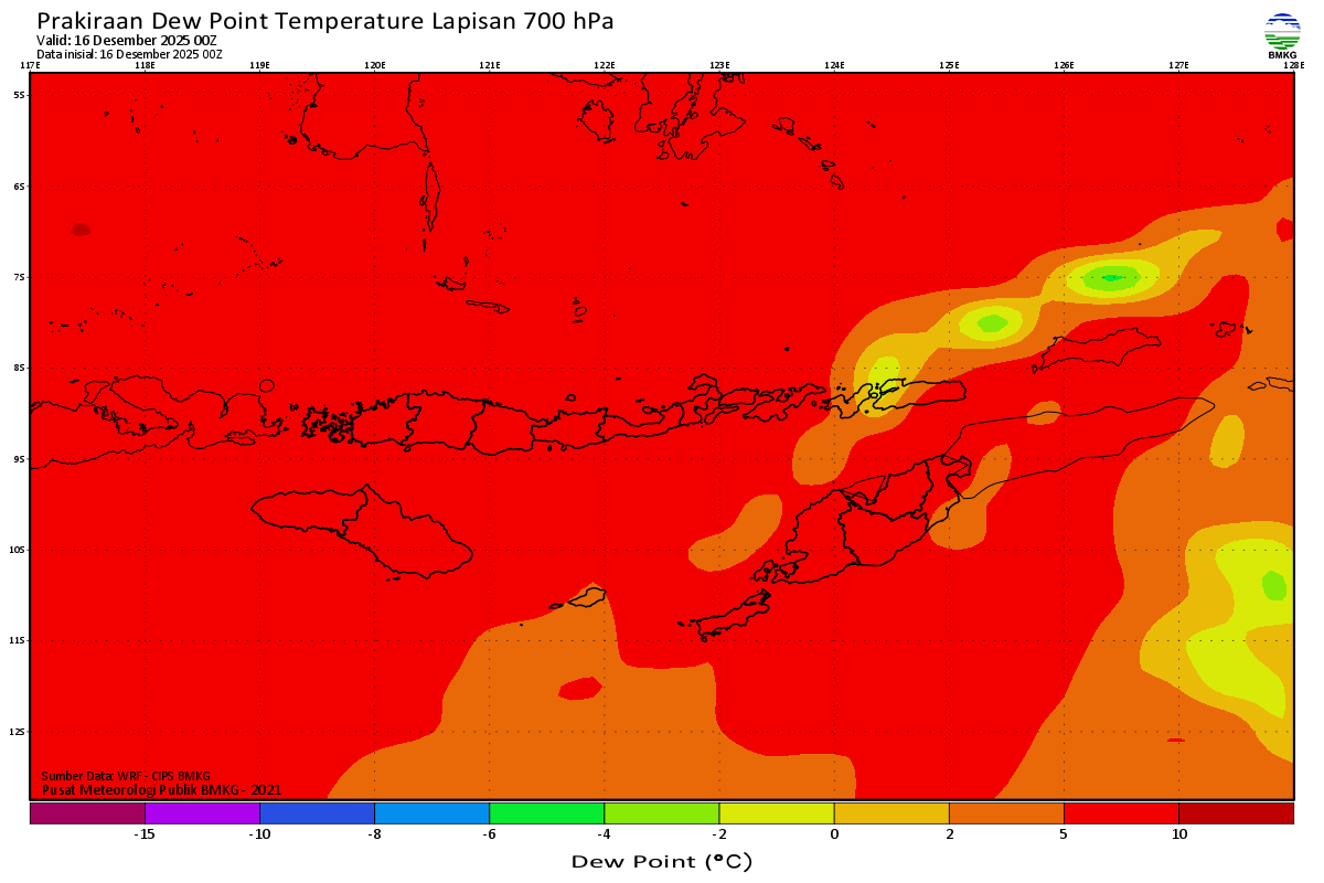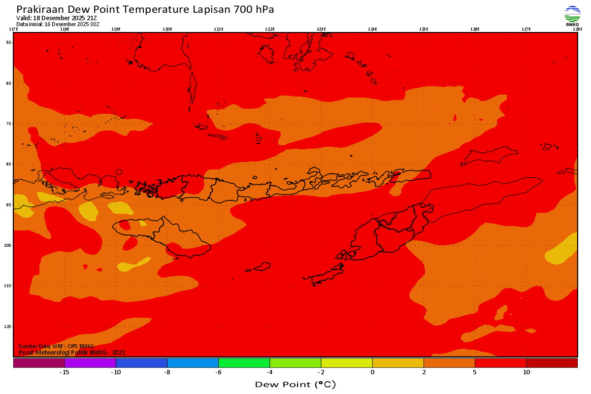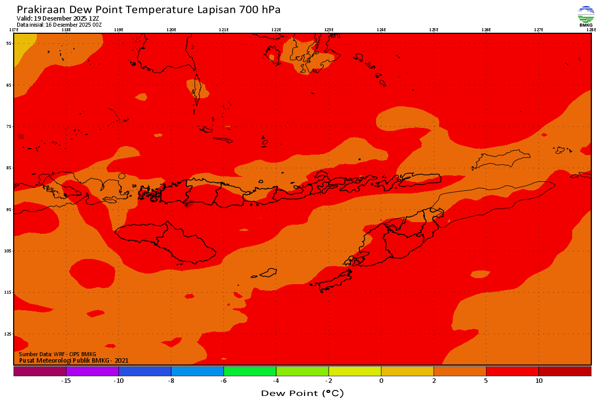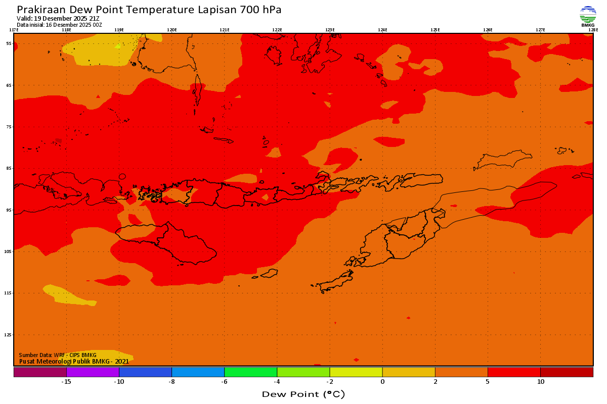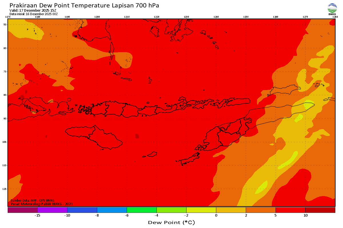 Prediksi Suhu Titik Embun 700 hPa NTT