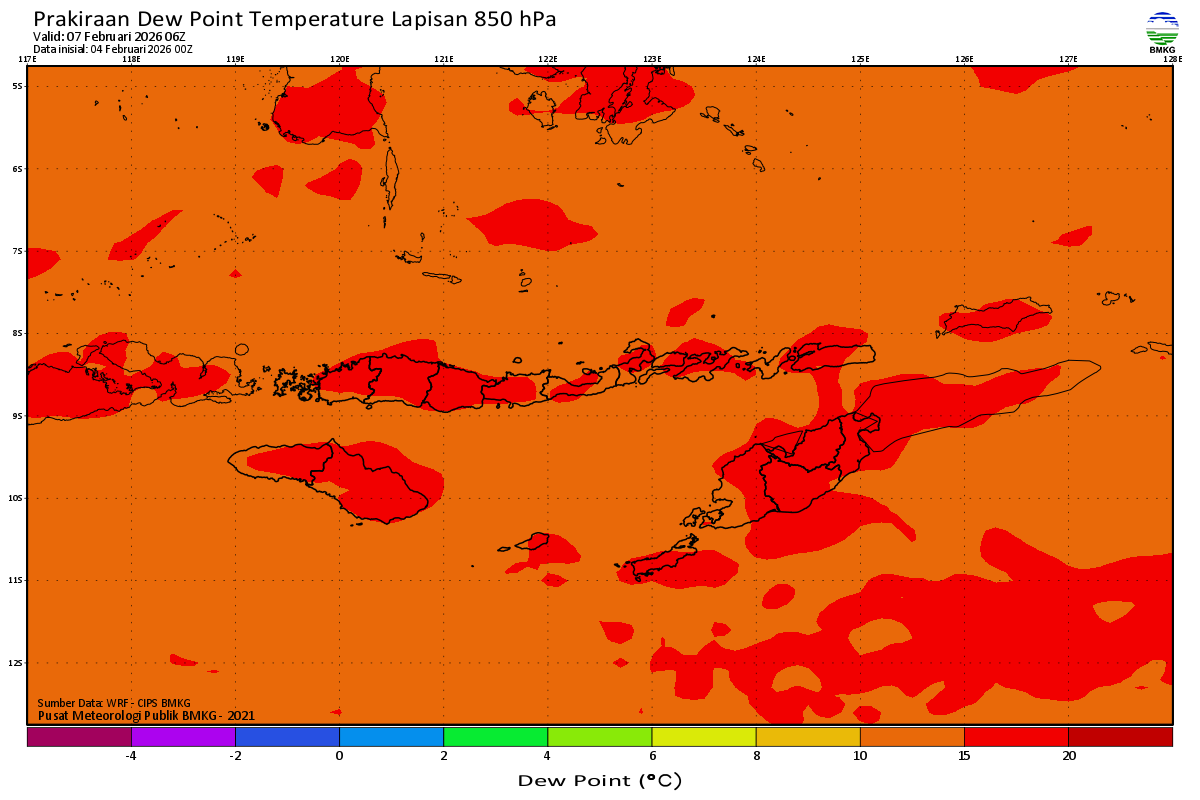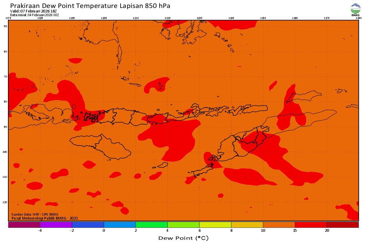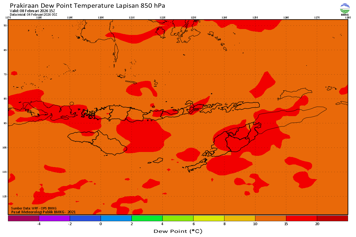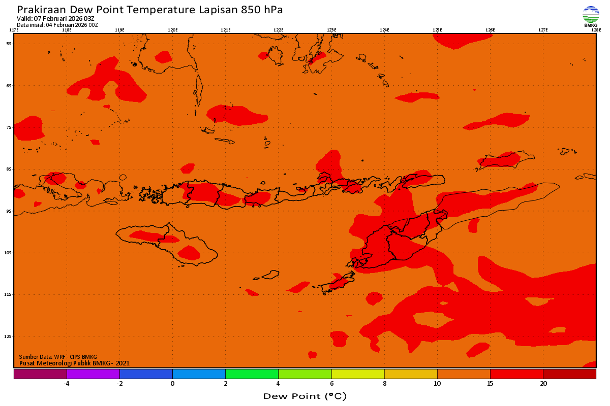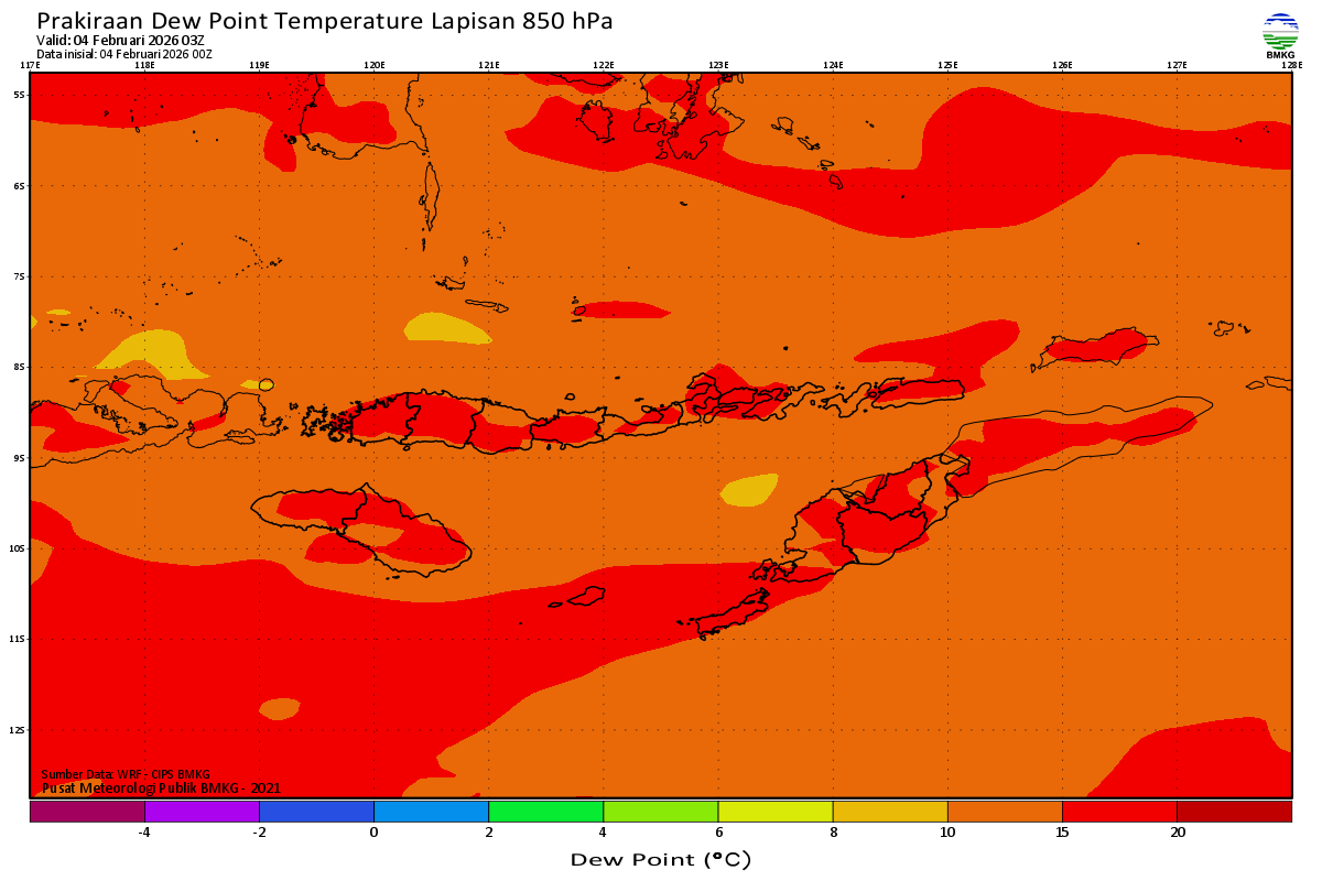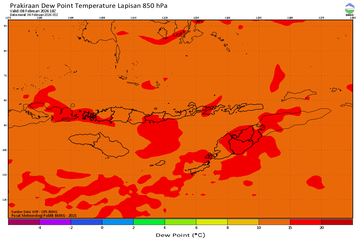 Prediksi Suhu Titik Embun 850 hPa NTT
