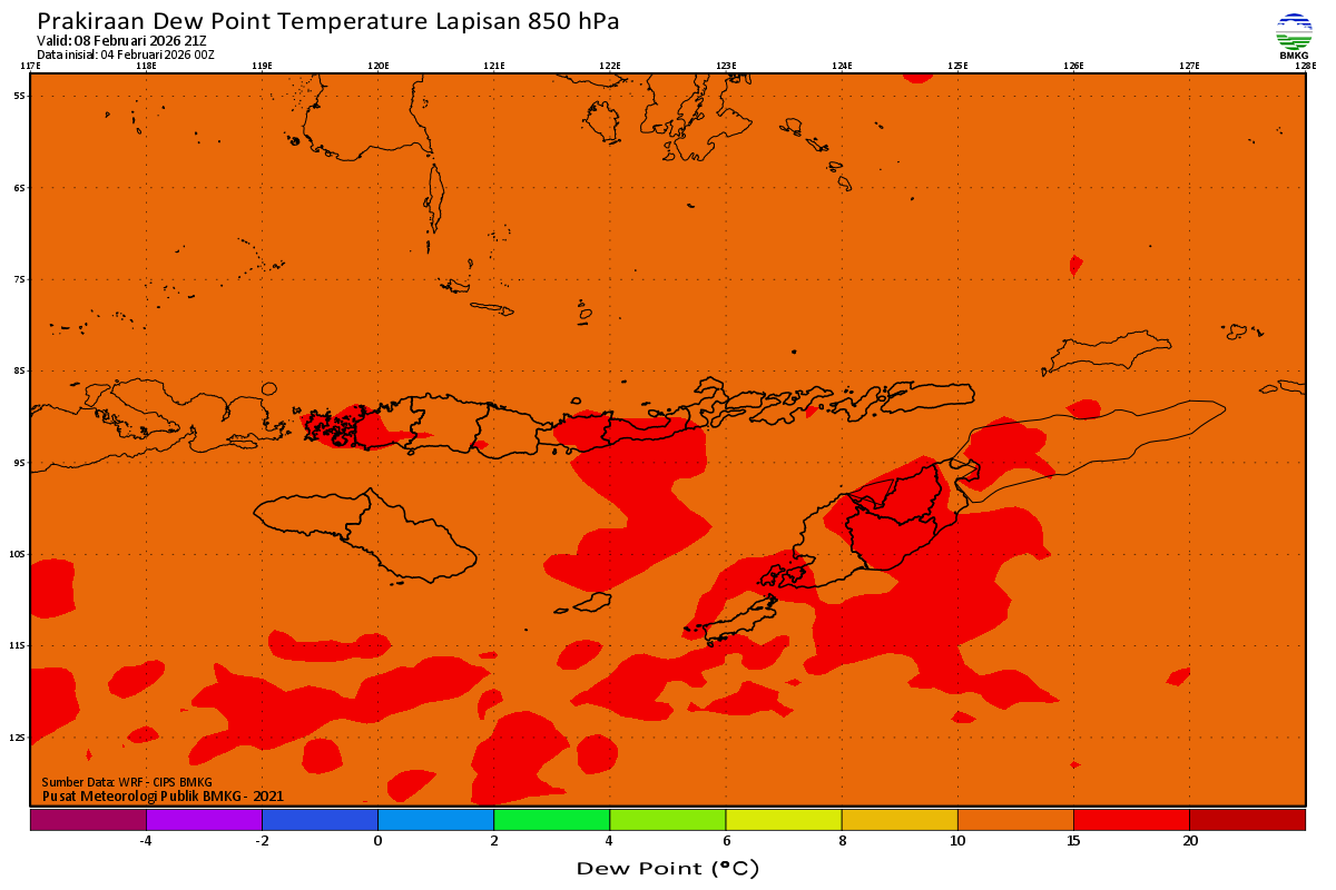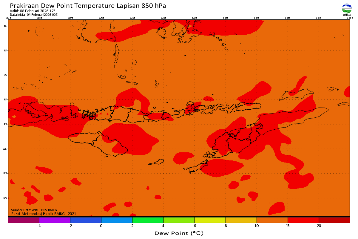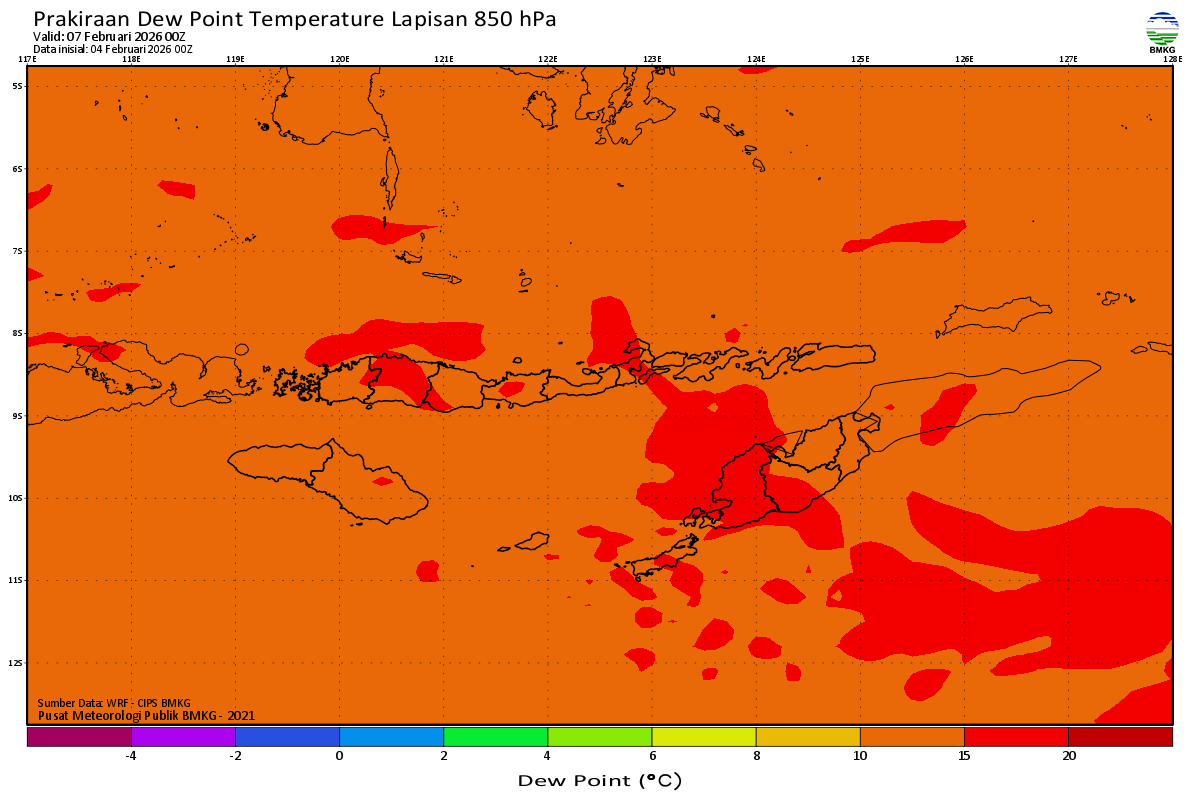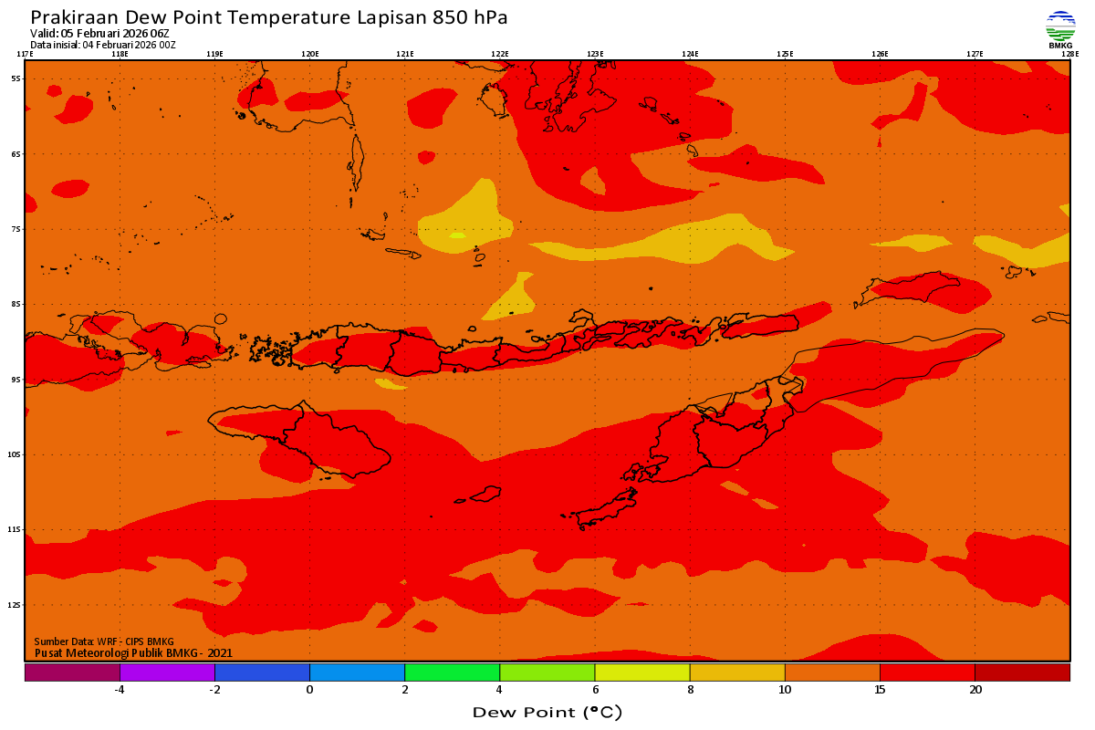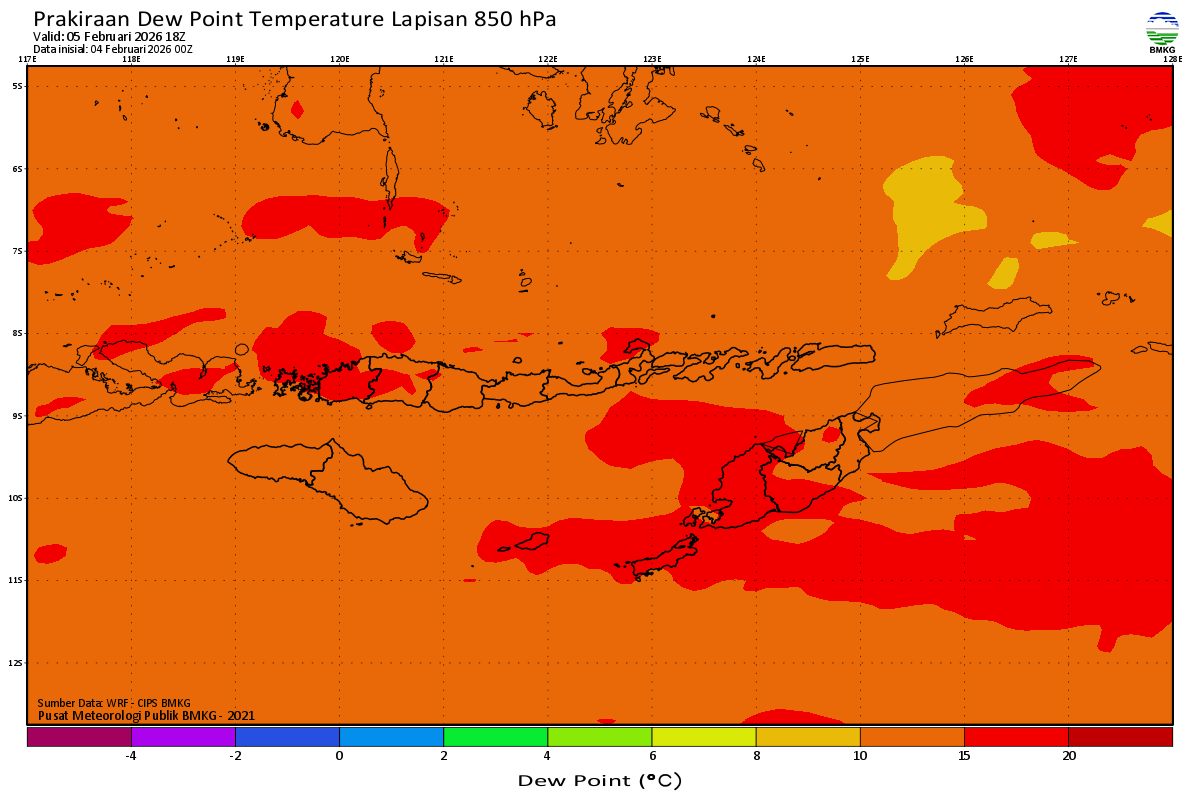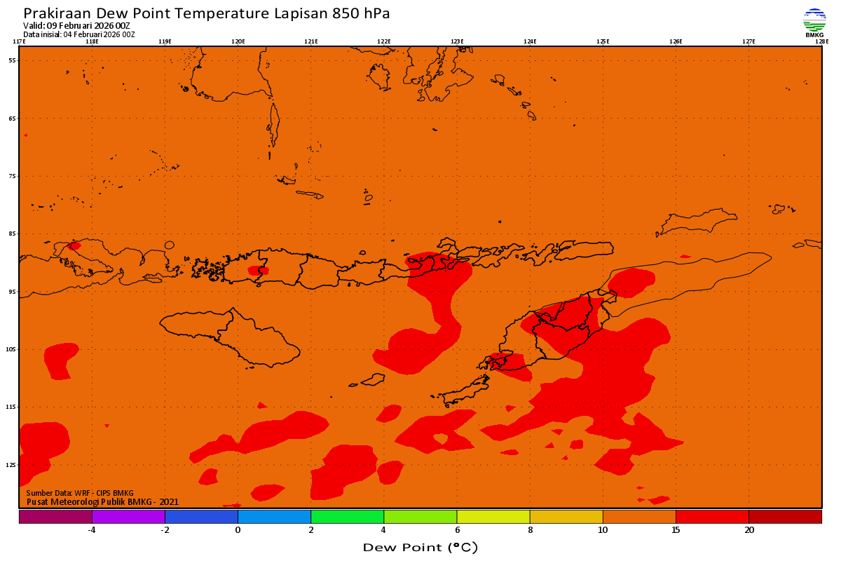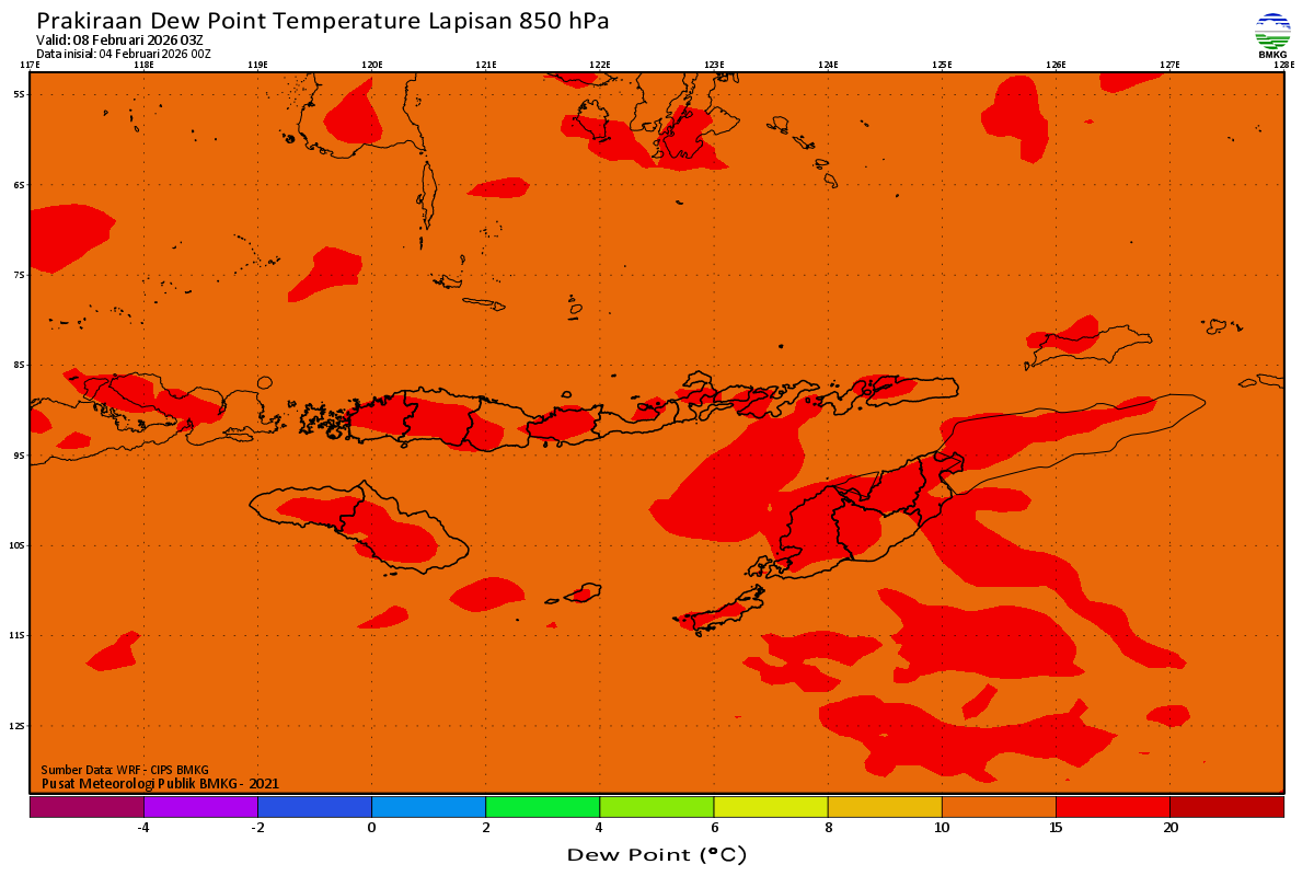 Prediksi Suhu Titik Embun 850 hPa NTT