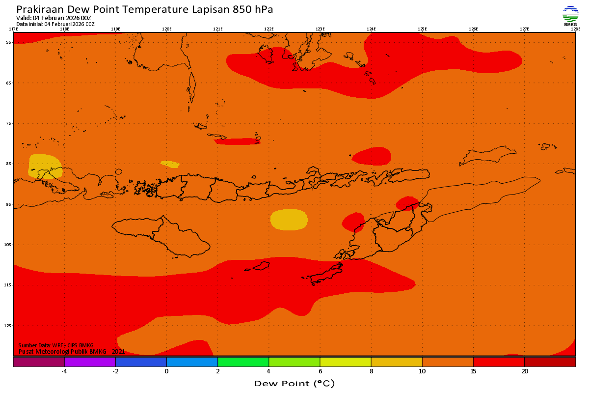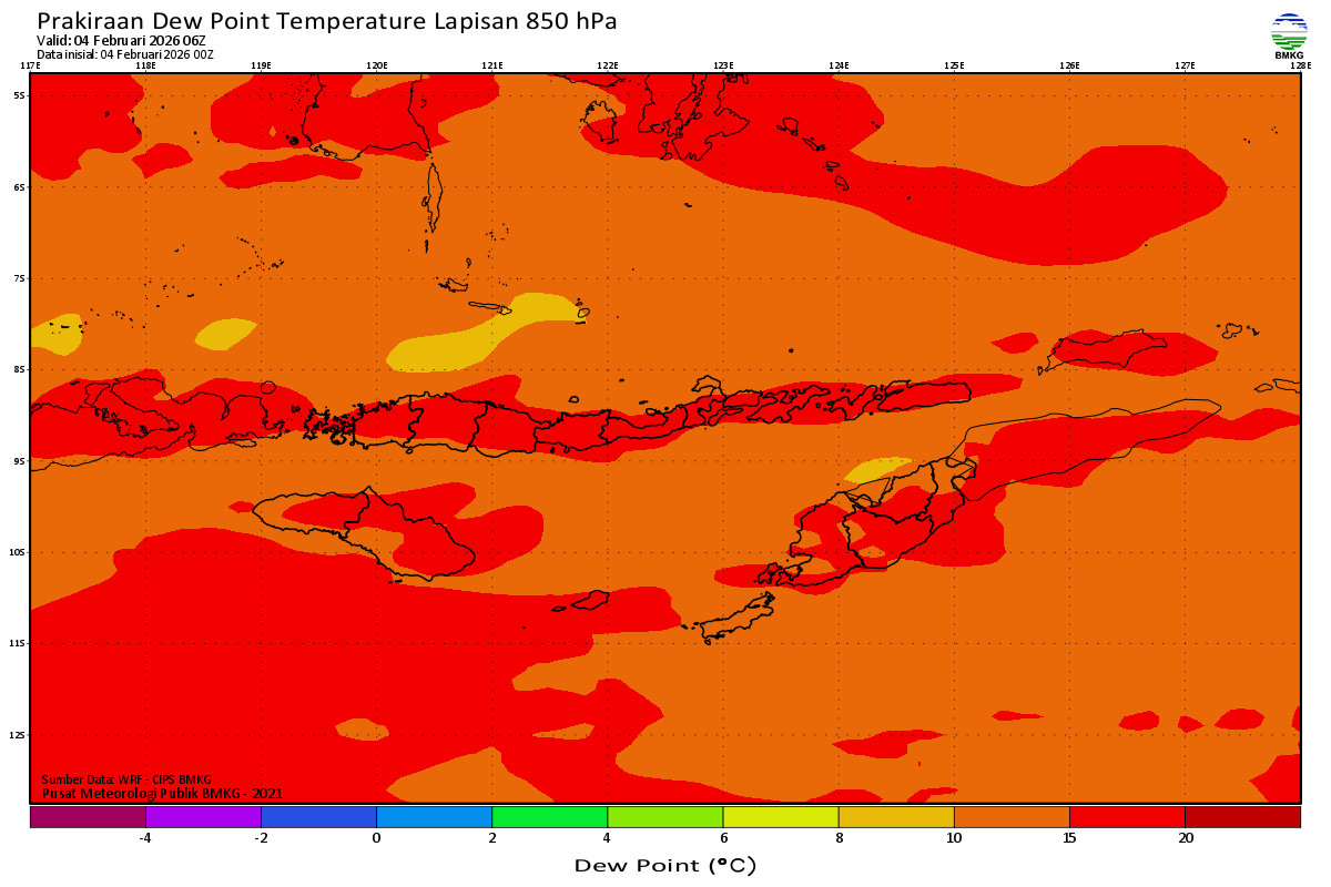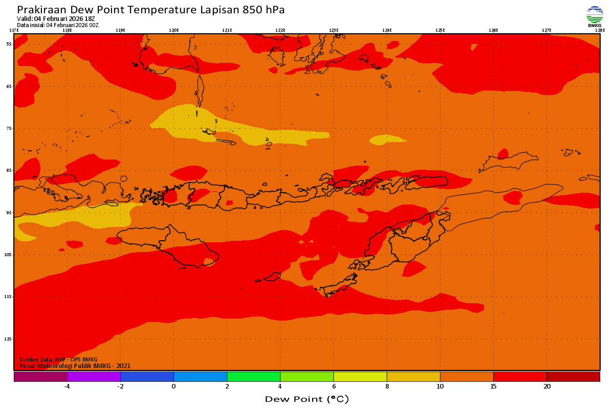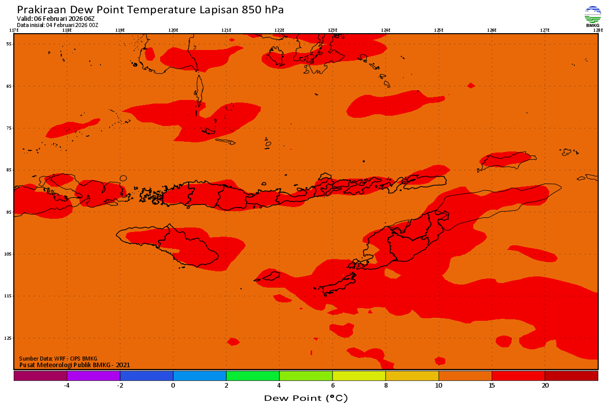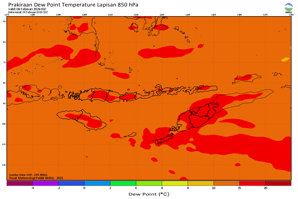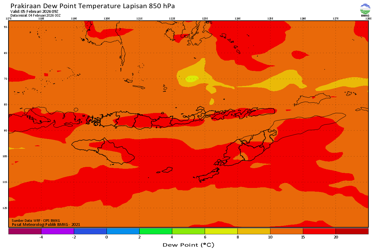 Prediksi Suhu Titik Embun 850 hPa NTT