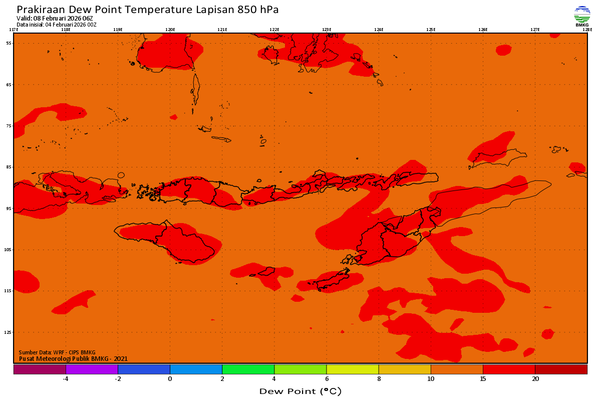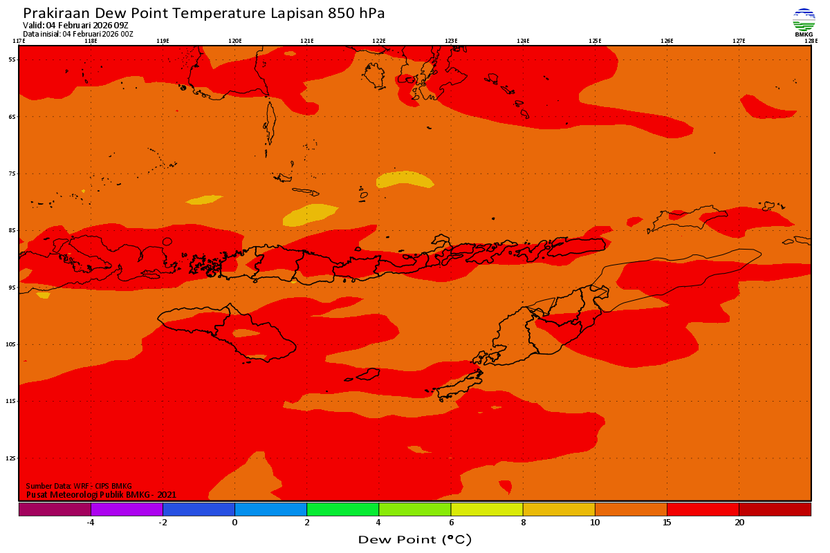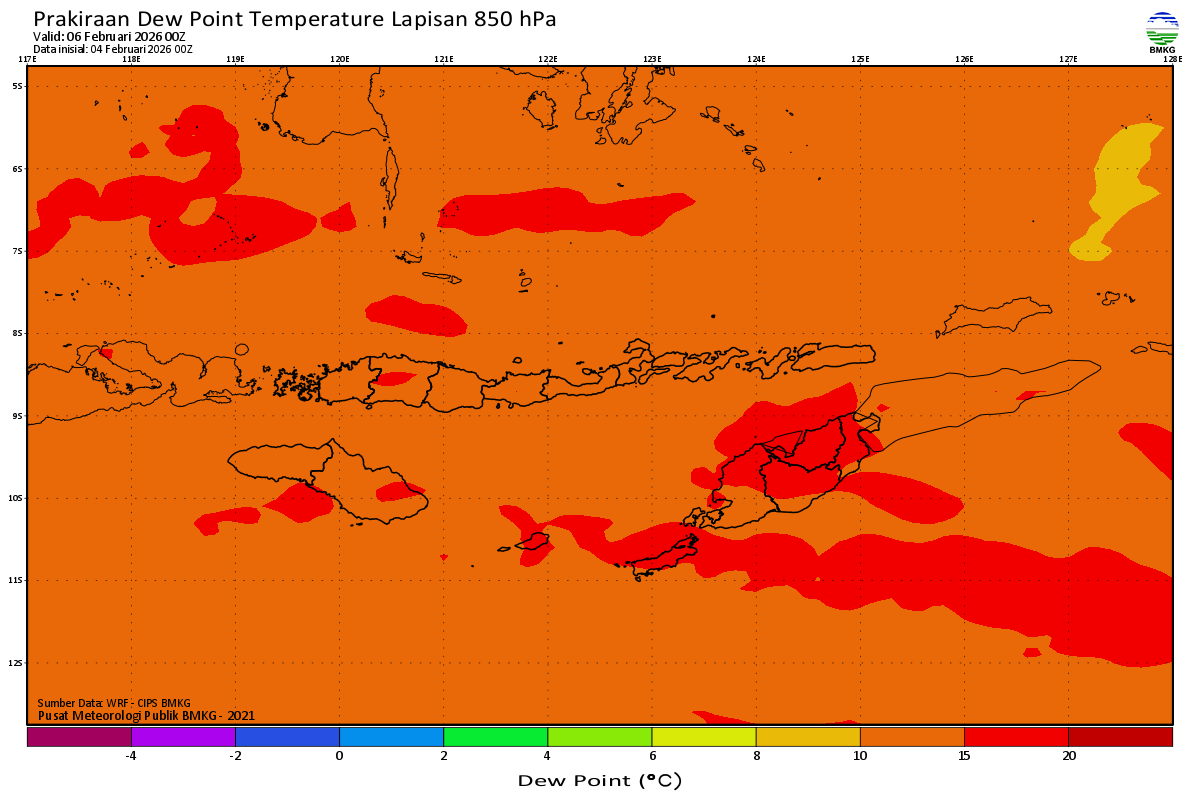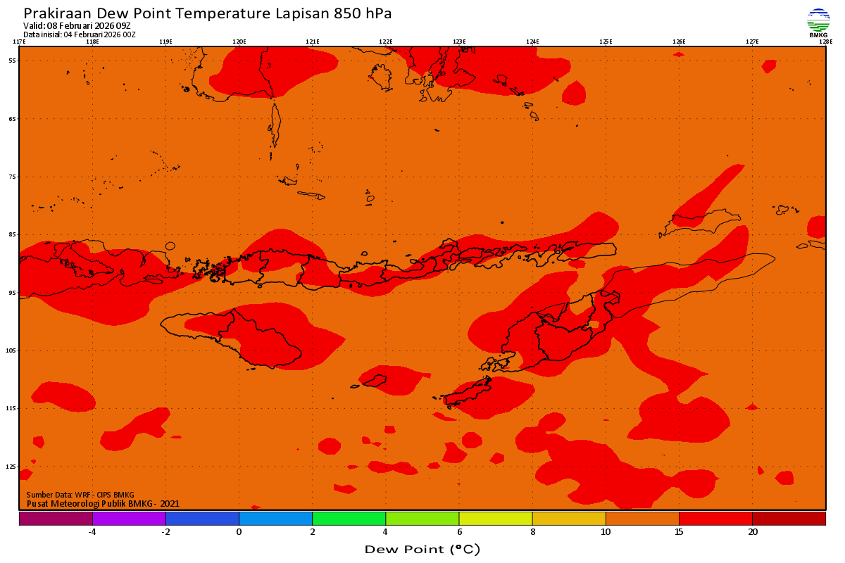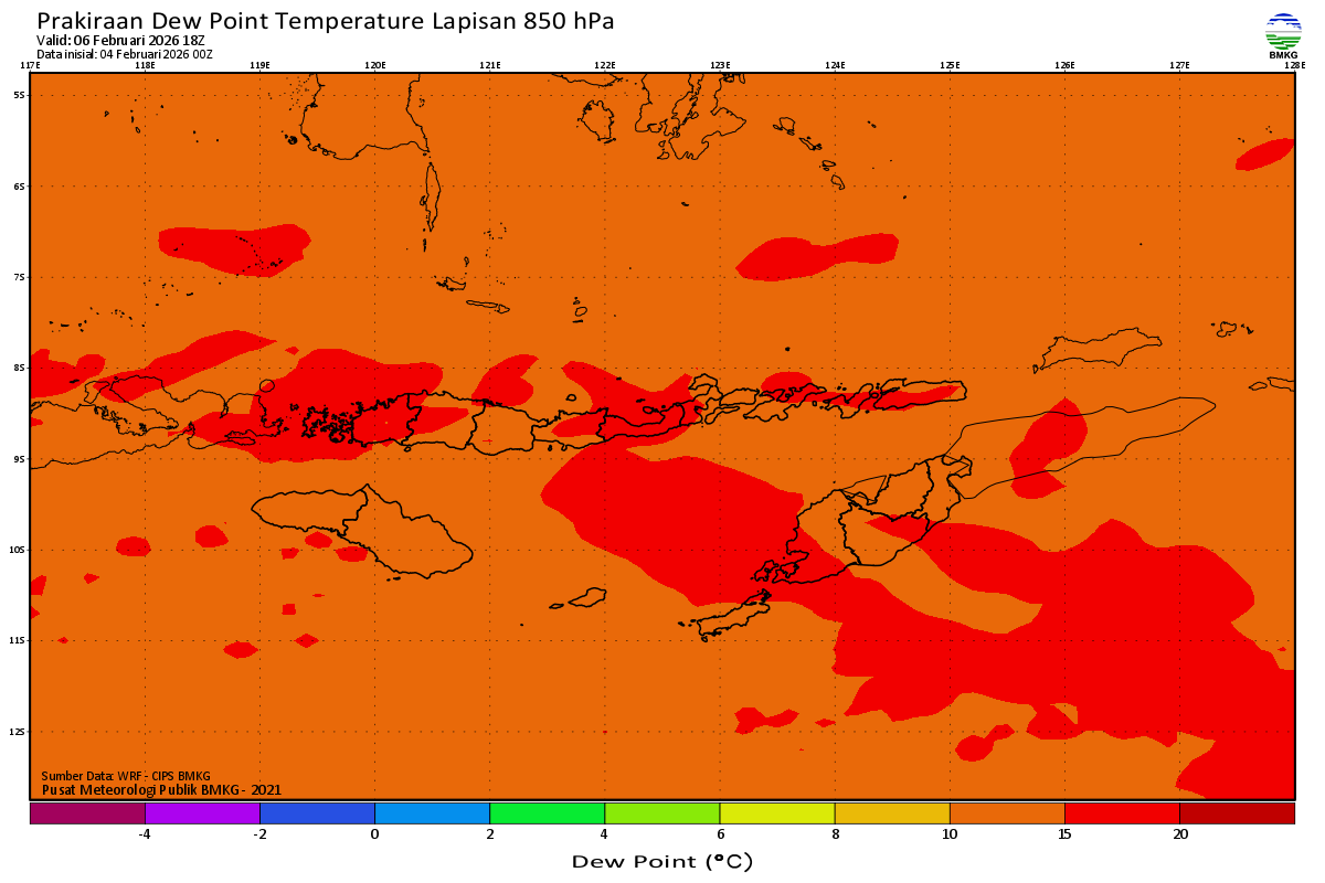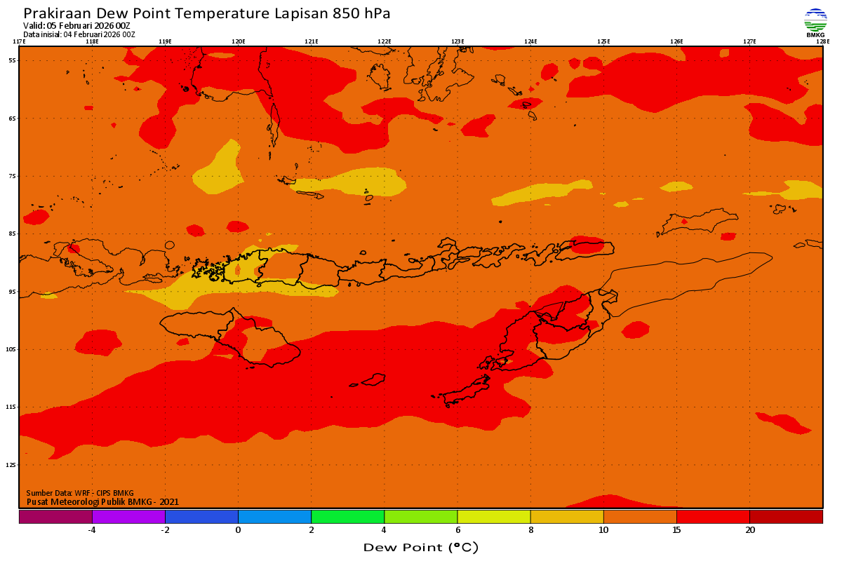 Prediksi Suhu Titik Embun 850 hPa NTT