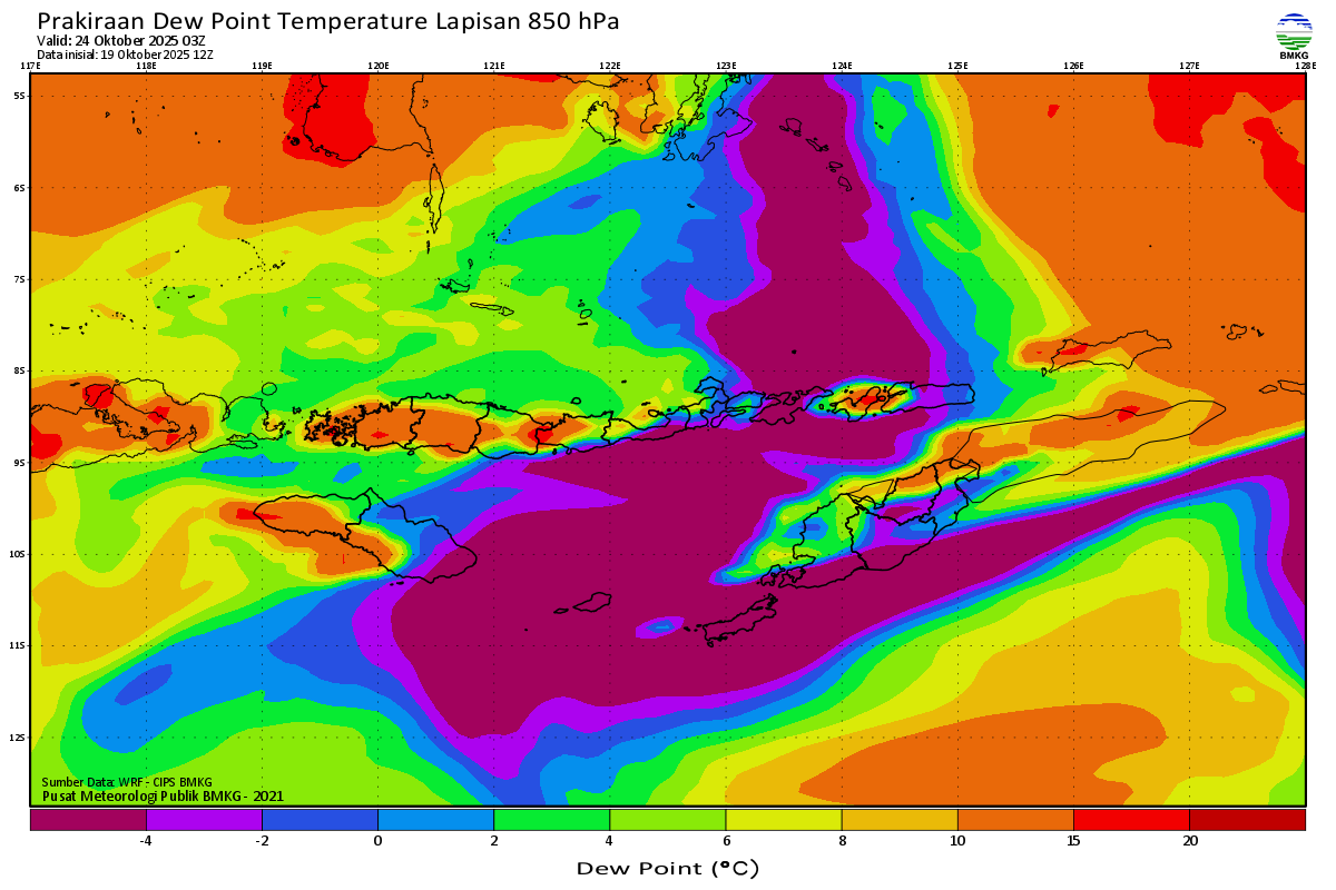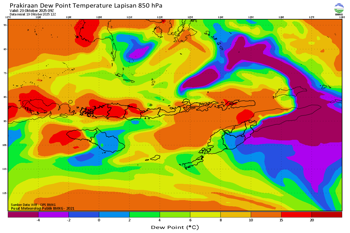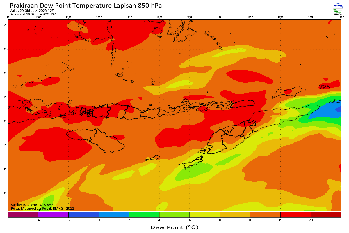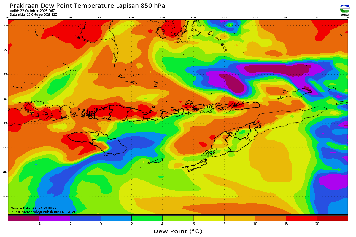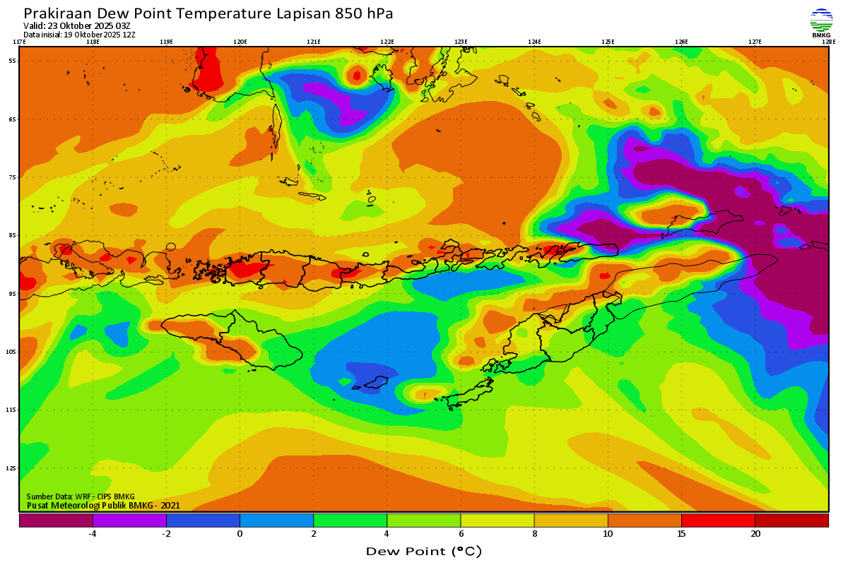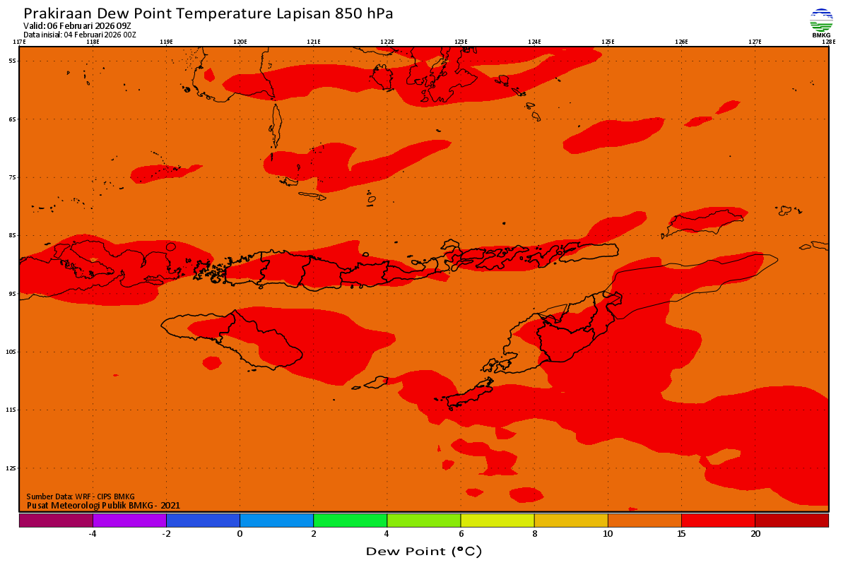 Prediksi Suhu Titik Embun 850 hPa NTT