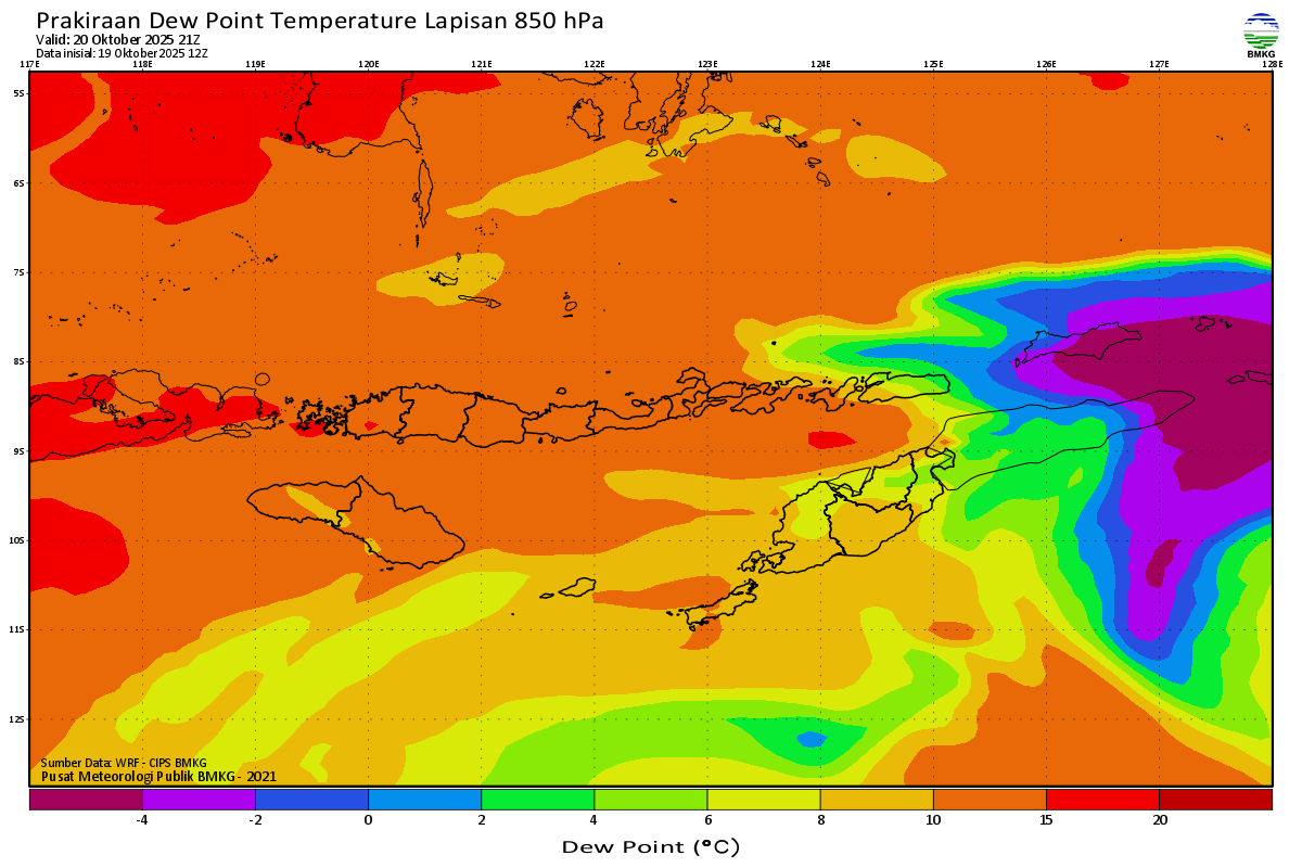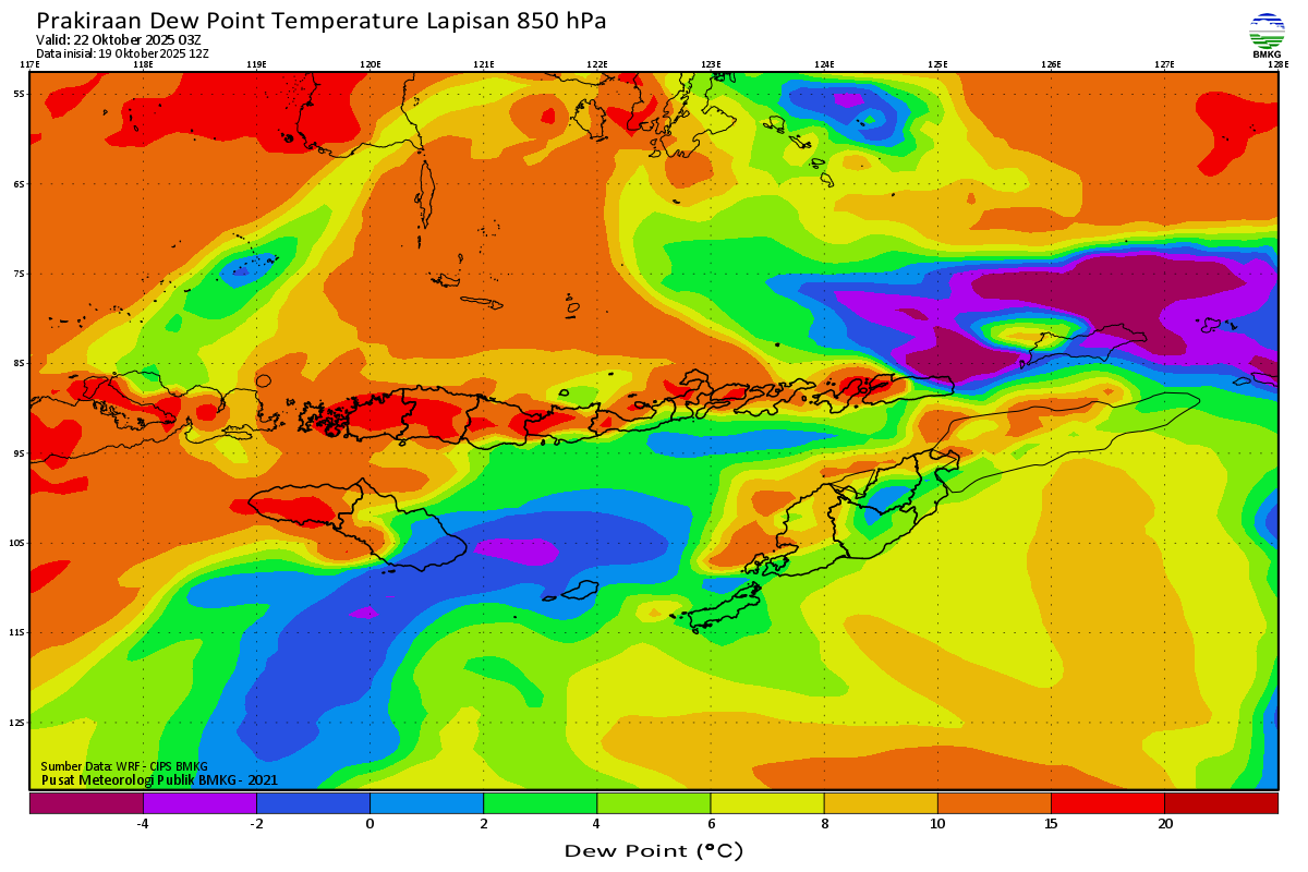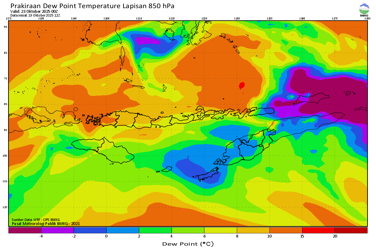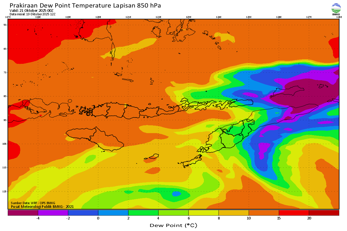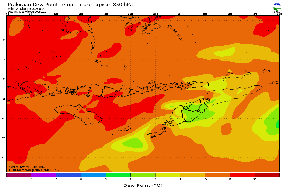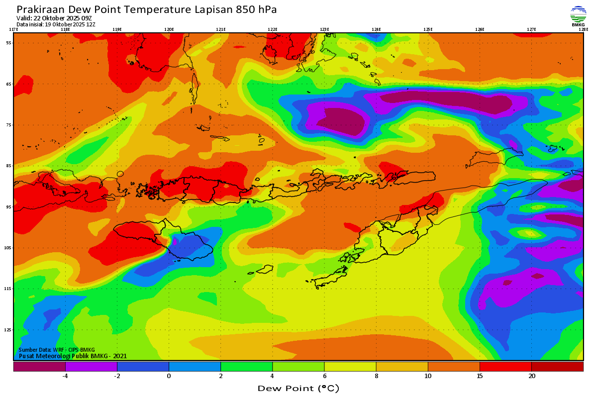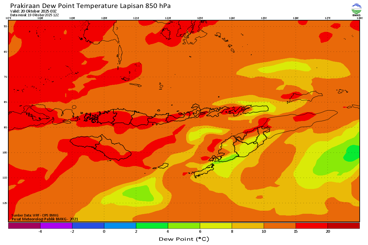 Prediksi Suhu Titik Embun 850 hPa NTT