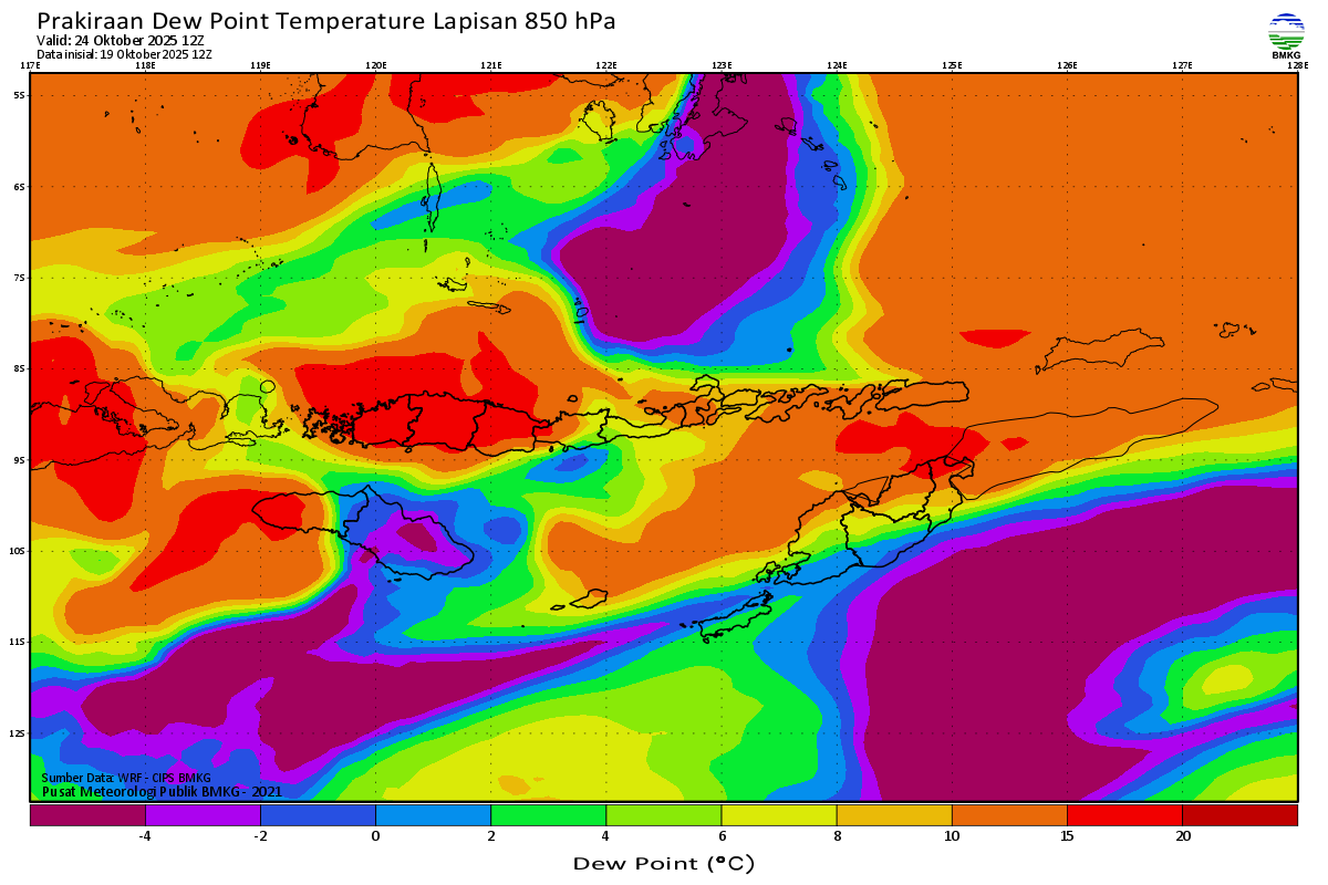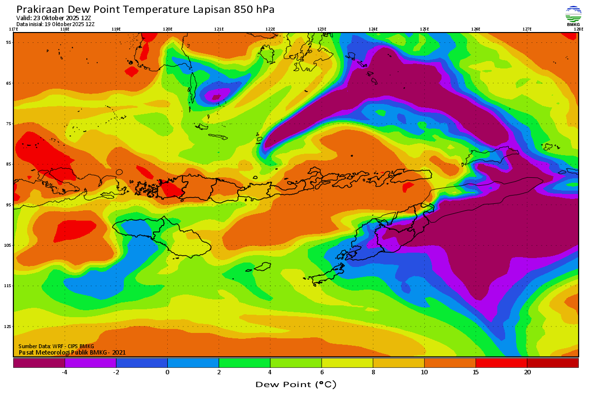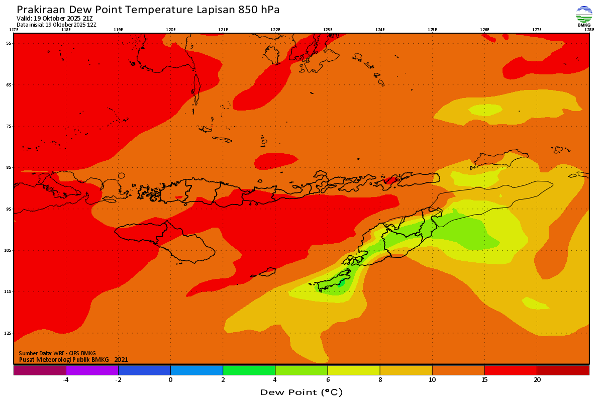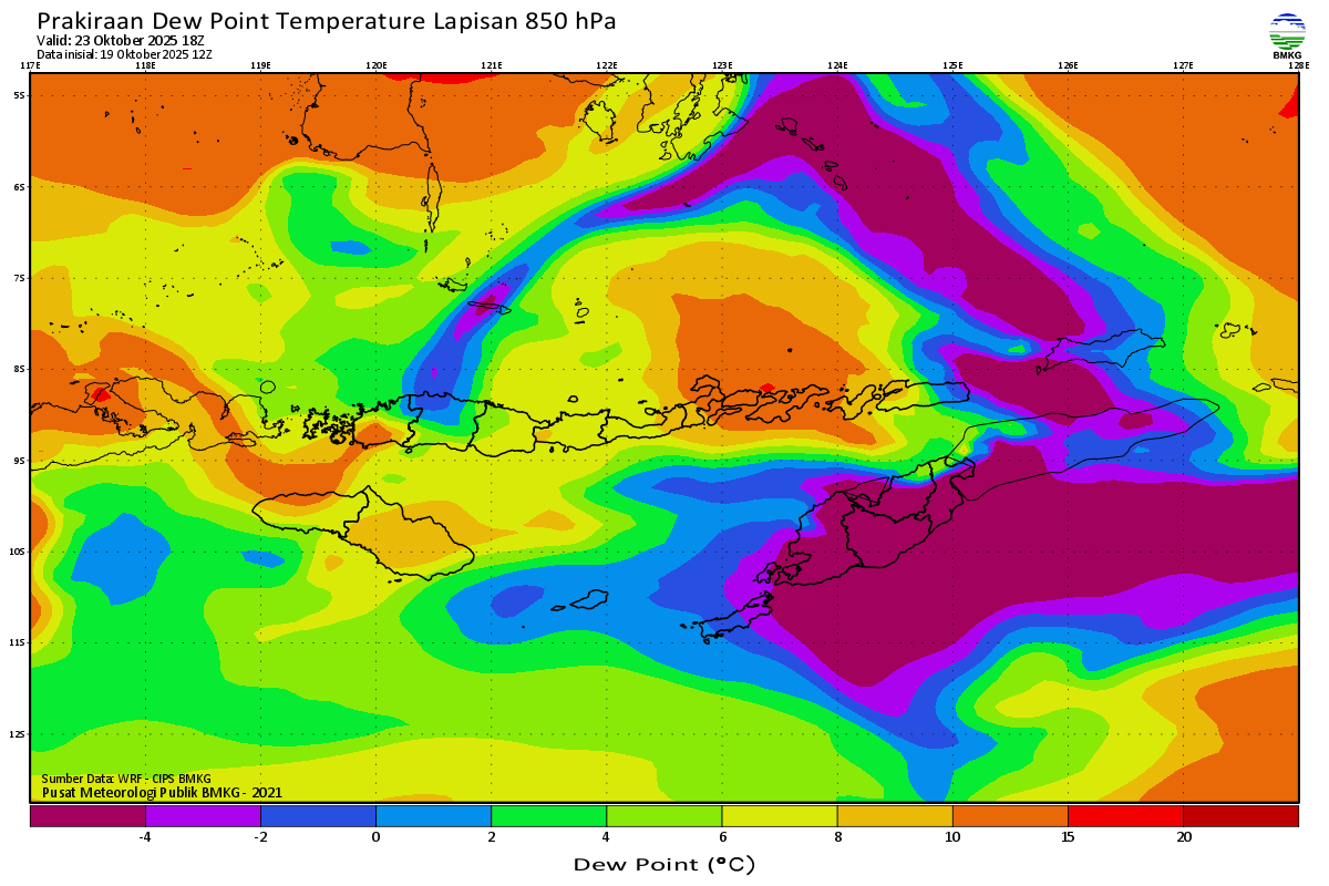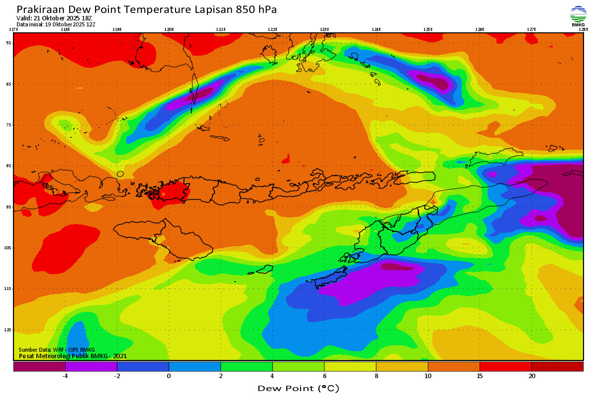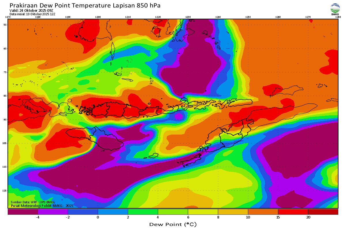 Prediksi Suhu Titik Embun 850 hPa NTT