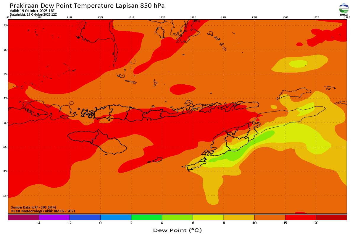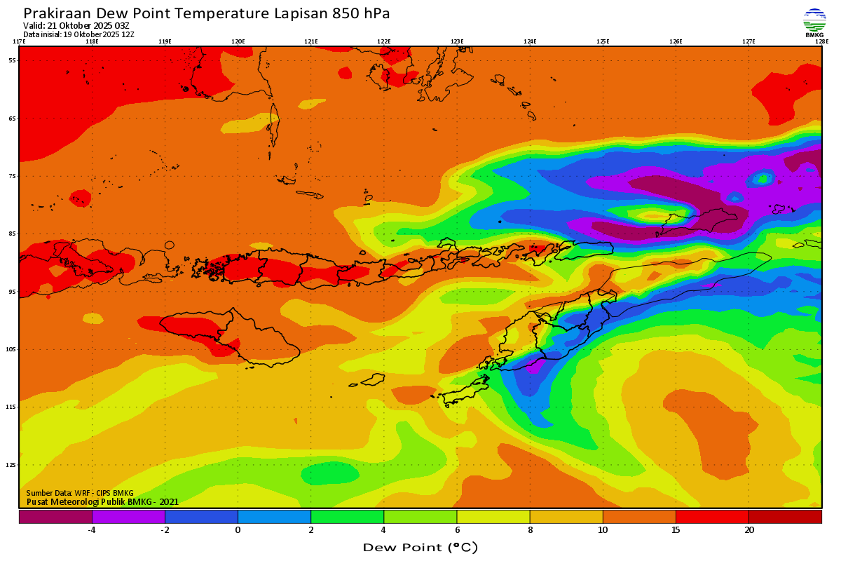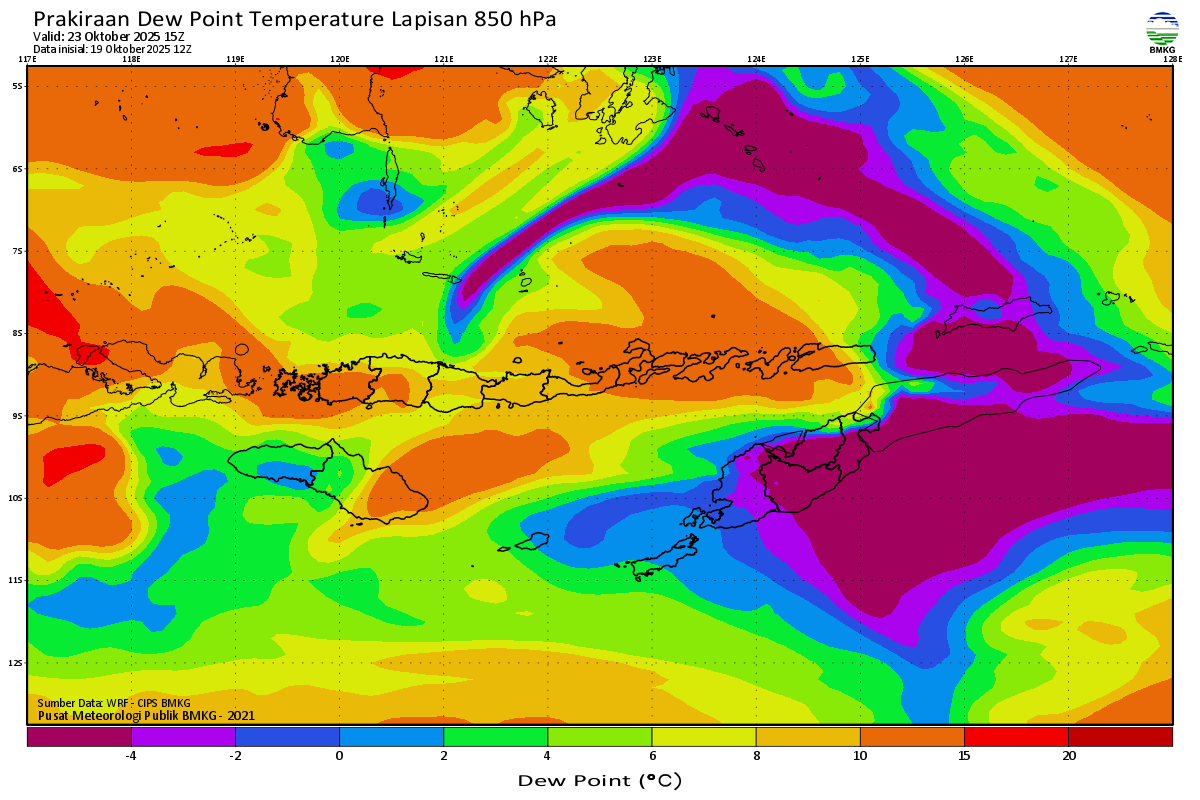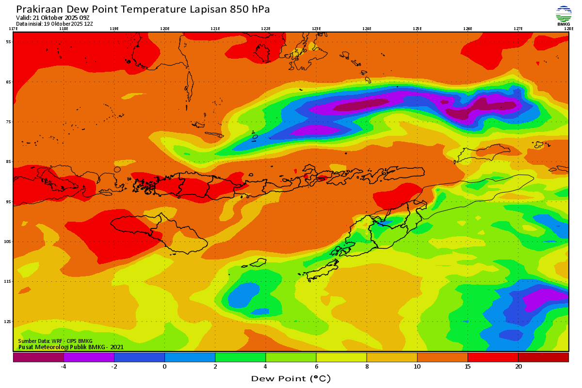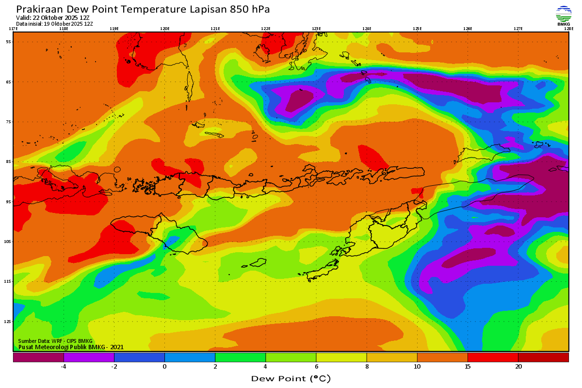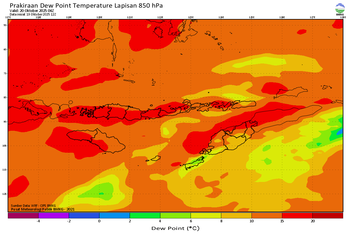 Prediksi Suhu Titik Embun 850 hPa NTT