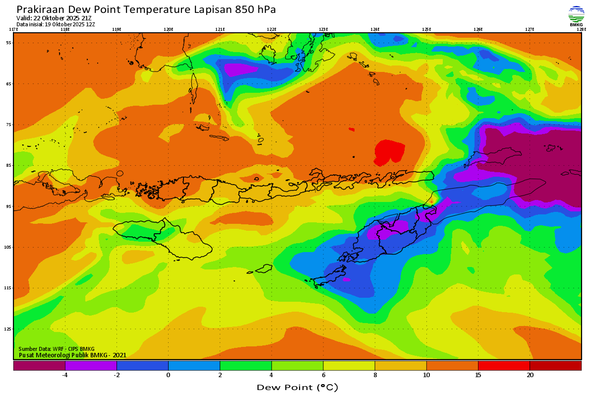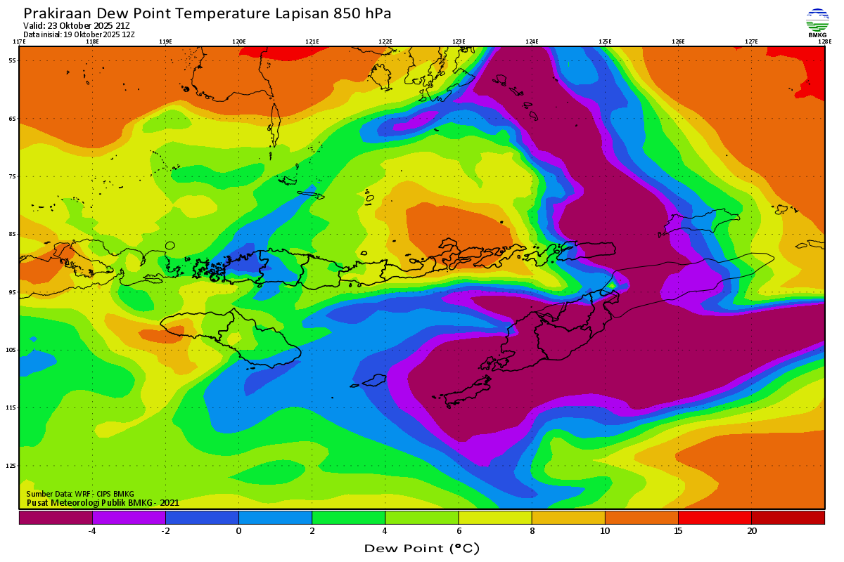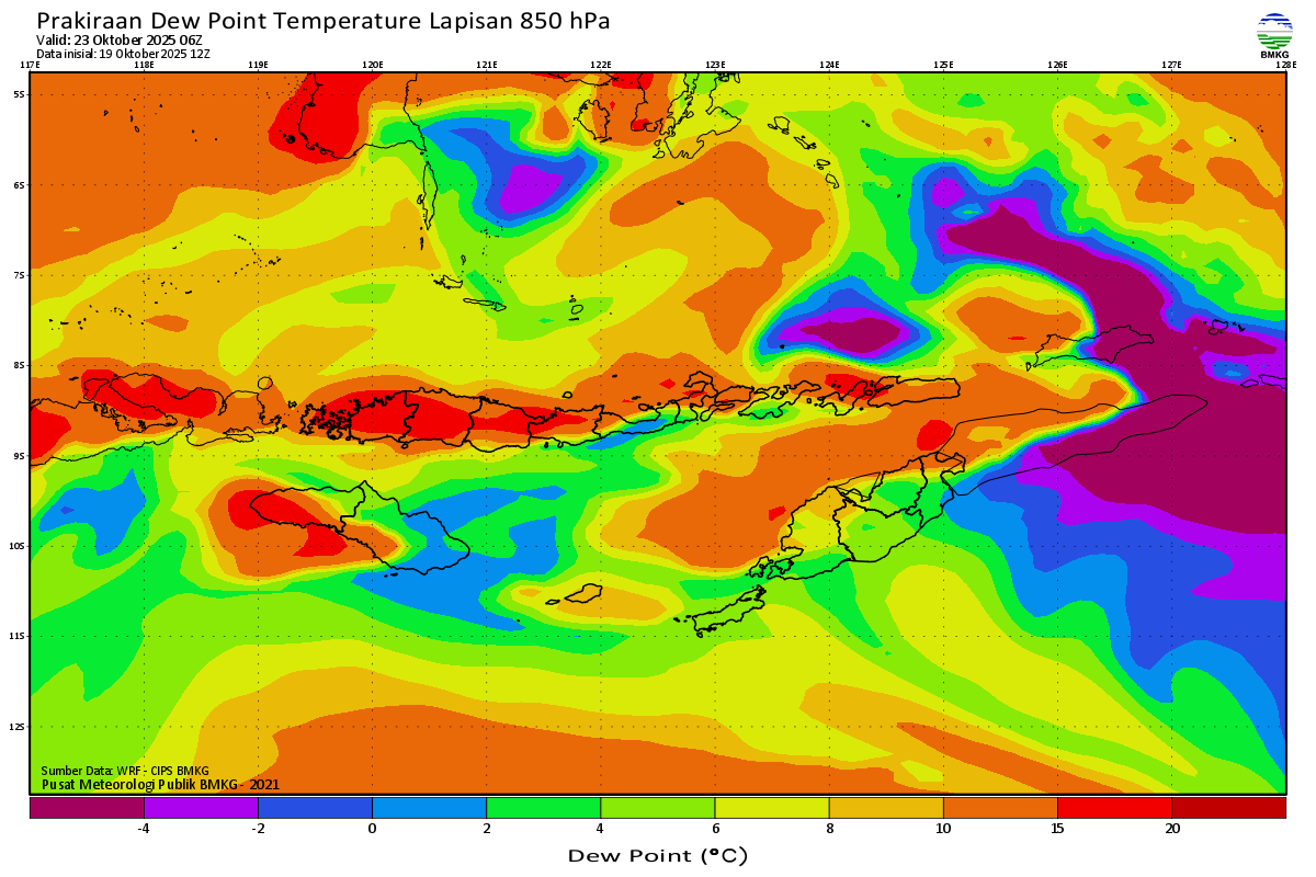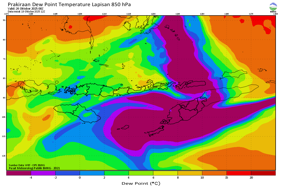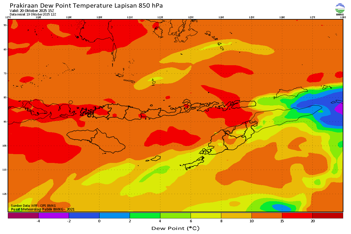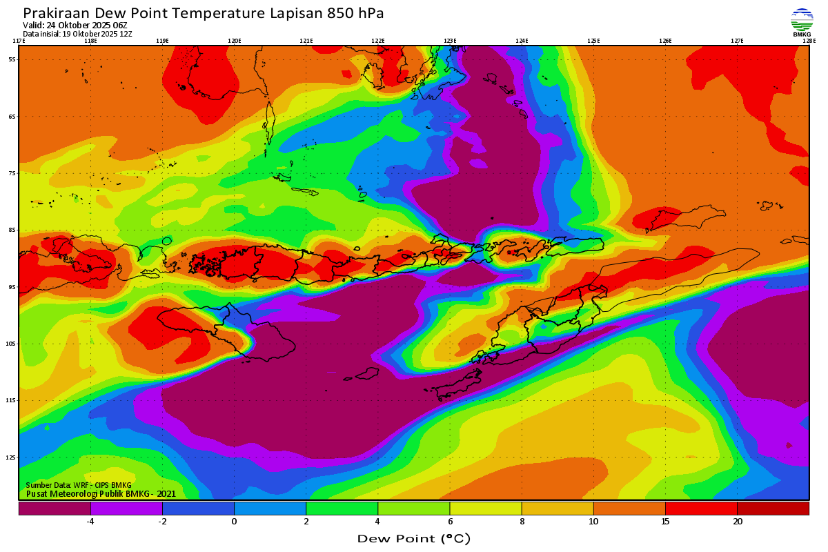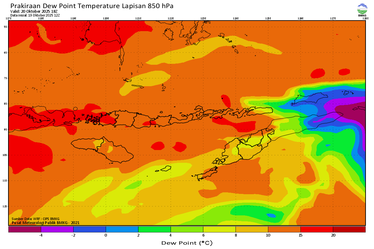 Prediksi Suhu Titik Embun 850 hPa NTT