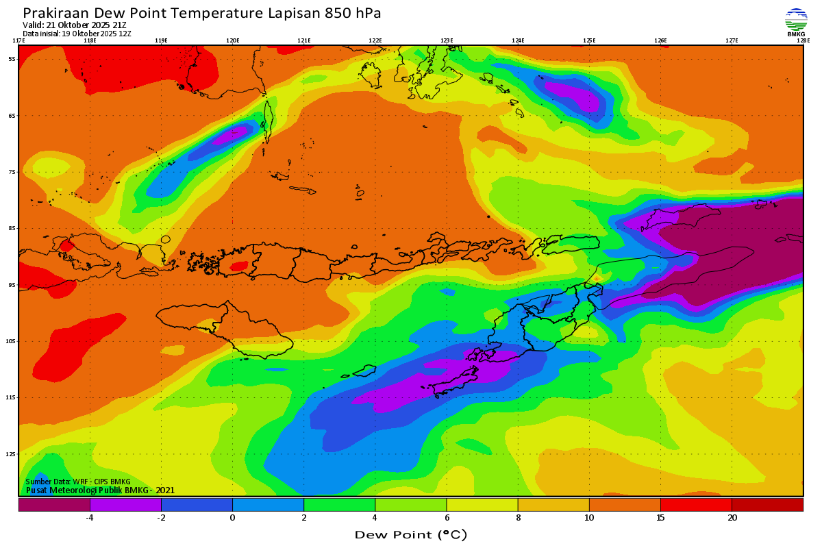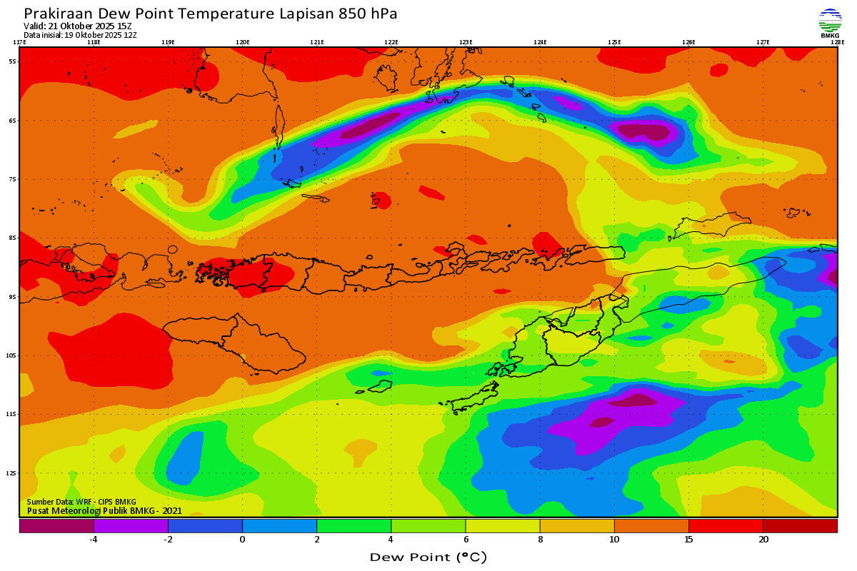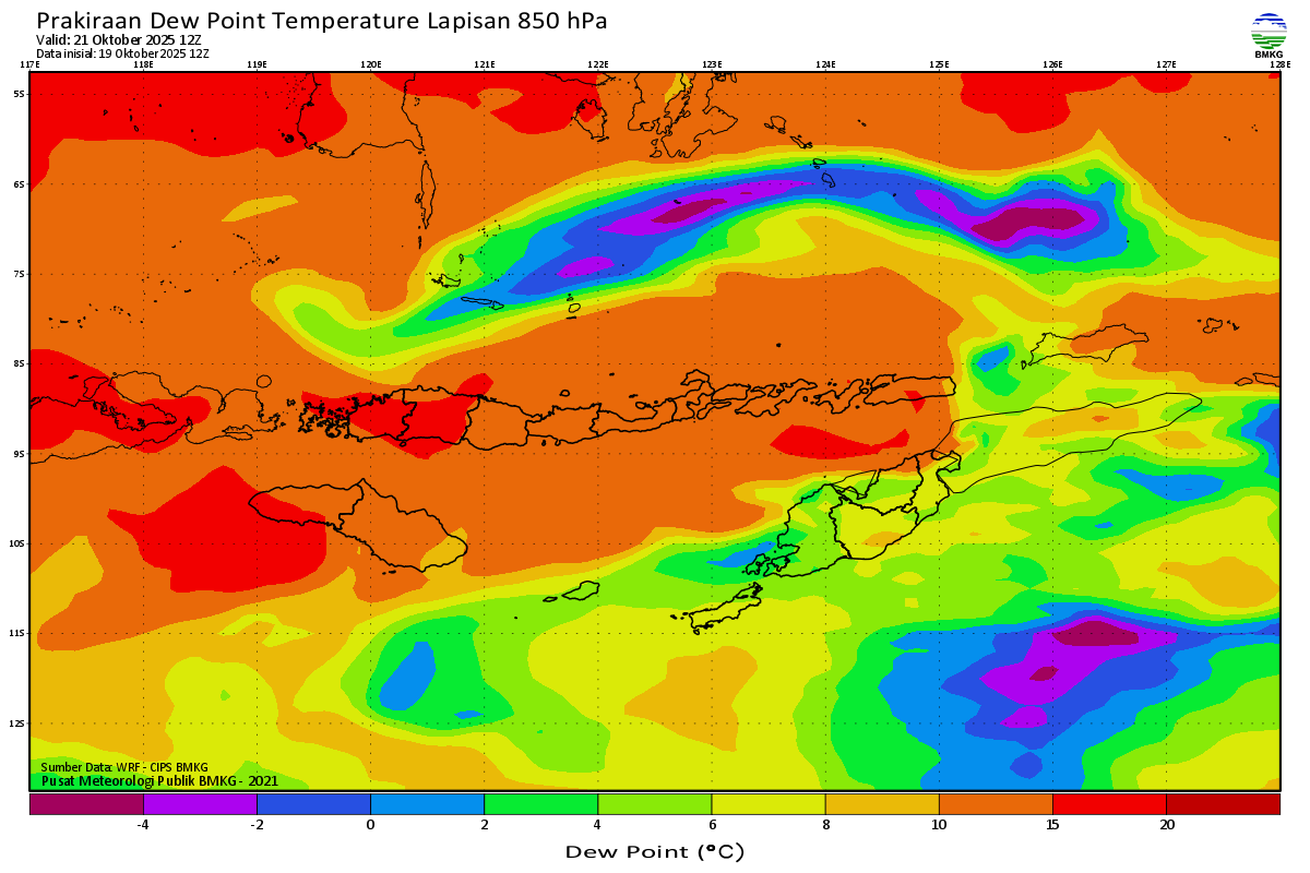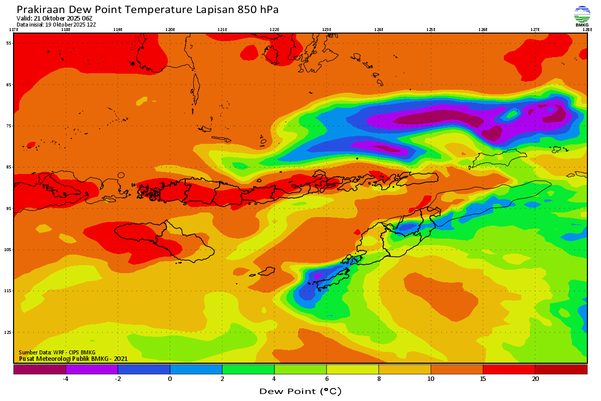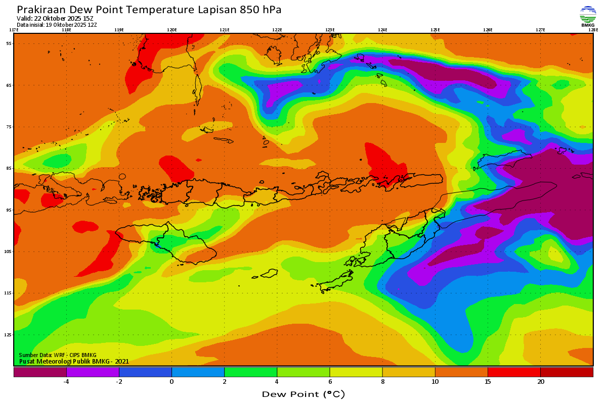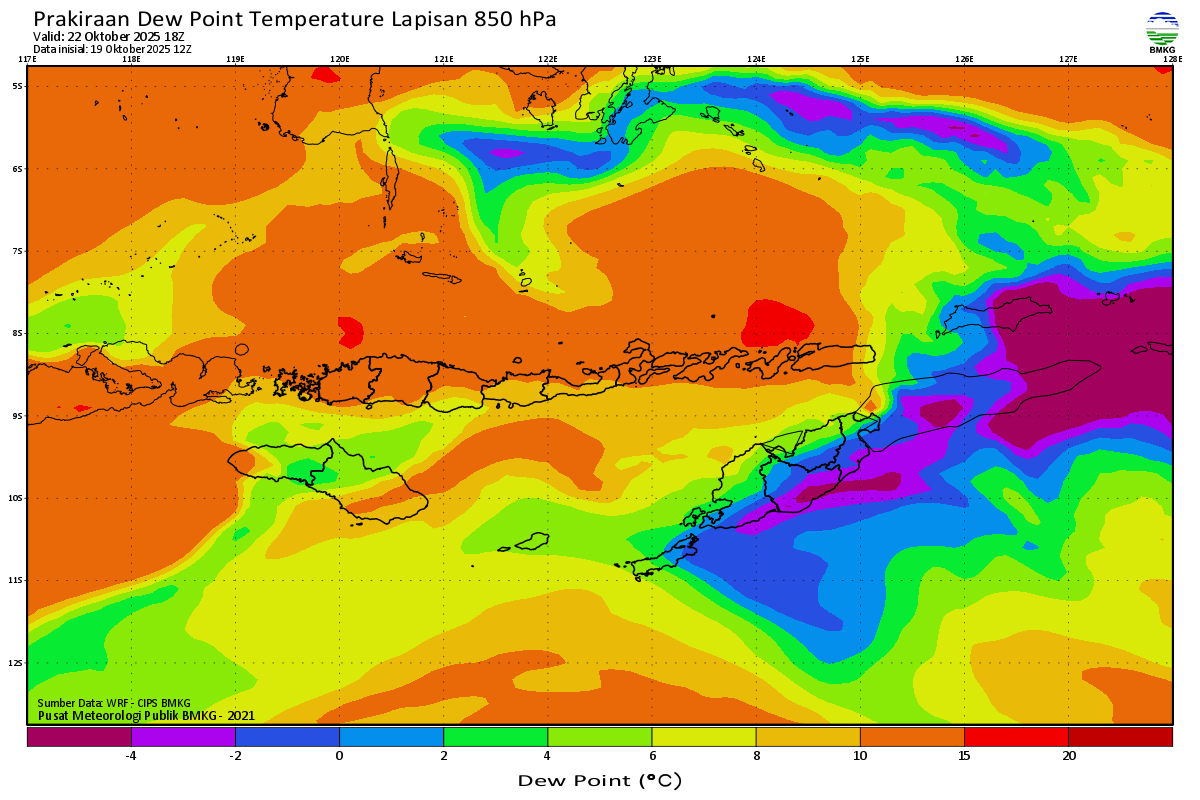 Prediksi Suhu Titik Embun 850 hPa NTT