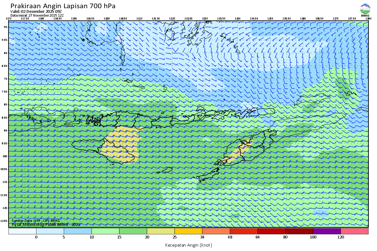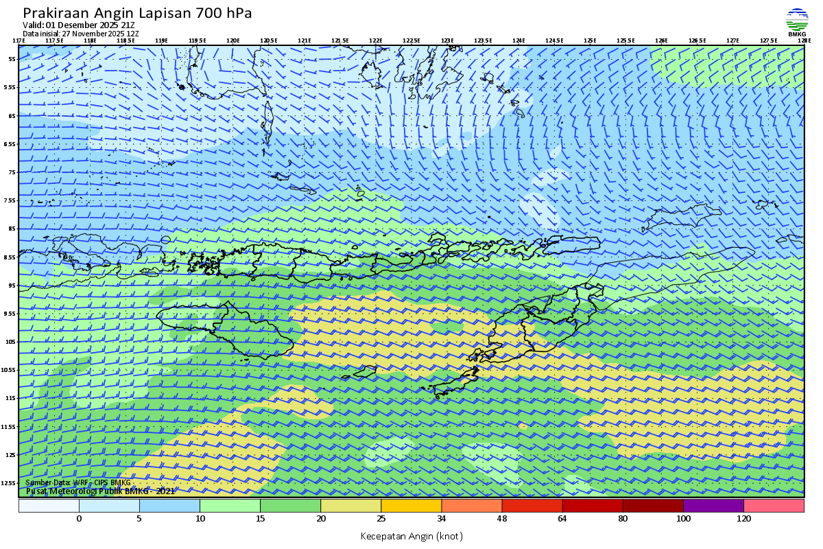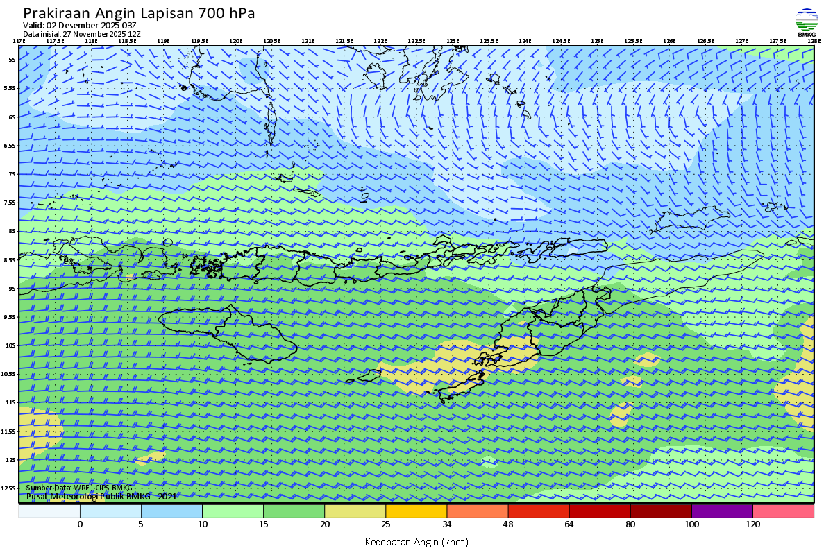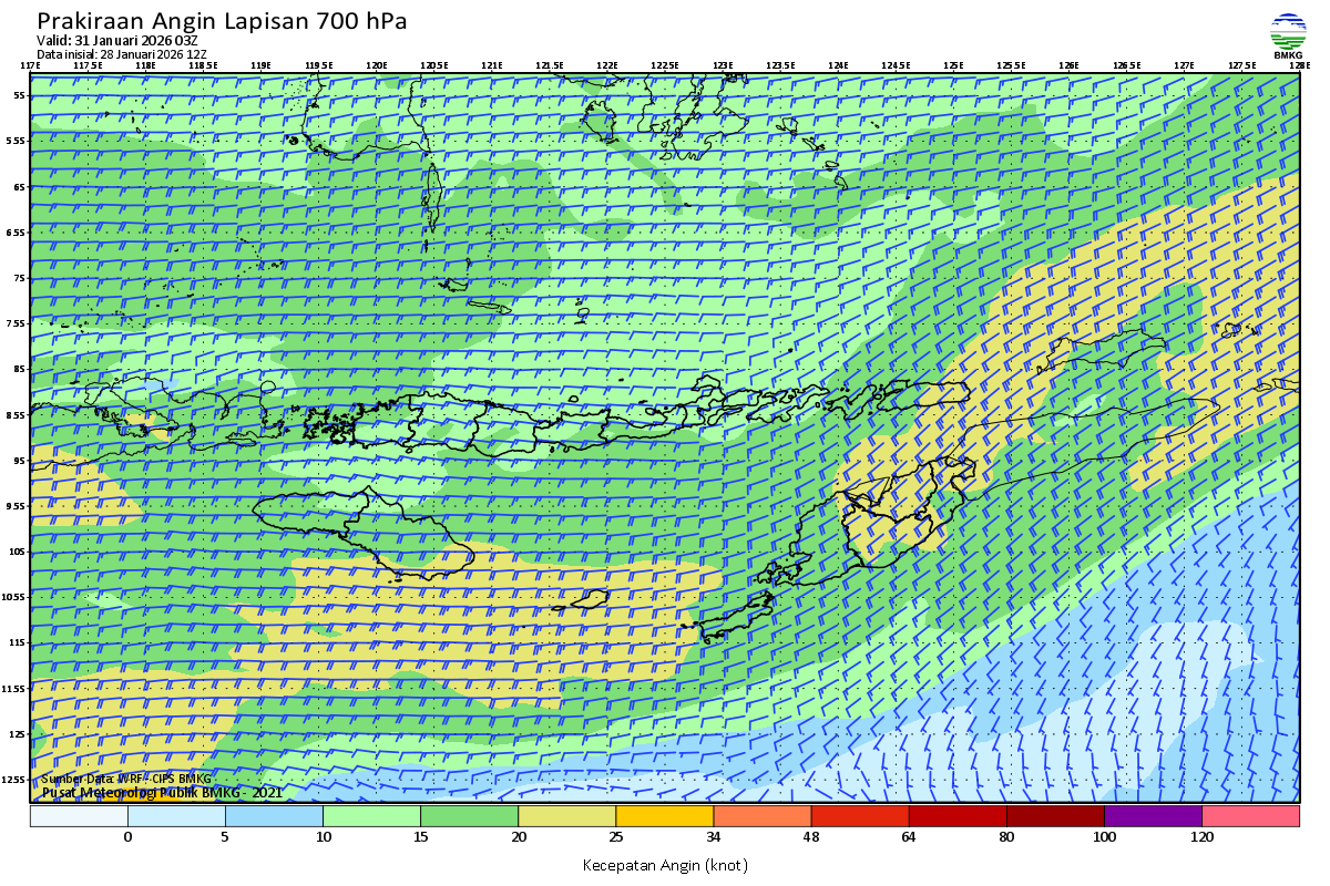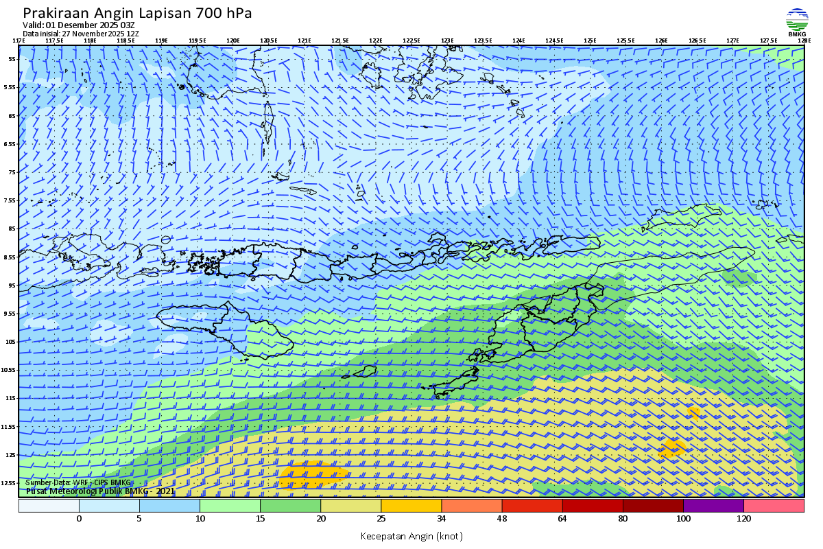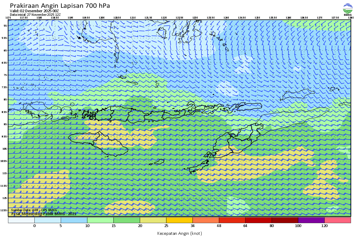 Prakiraan Angin Lapisan 700 Gunung Awu