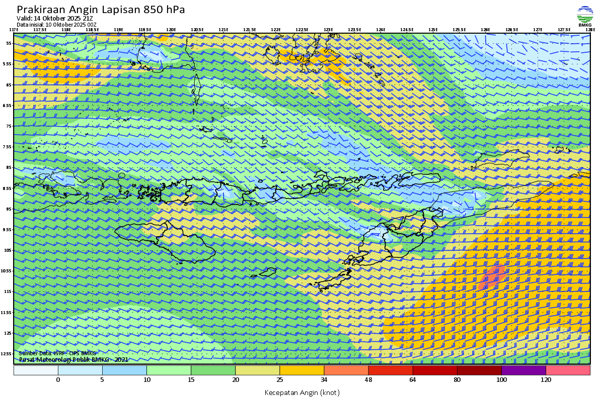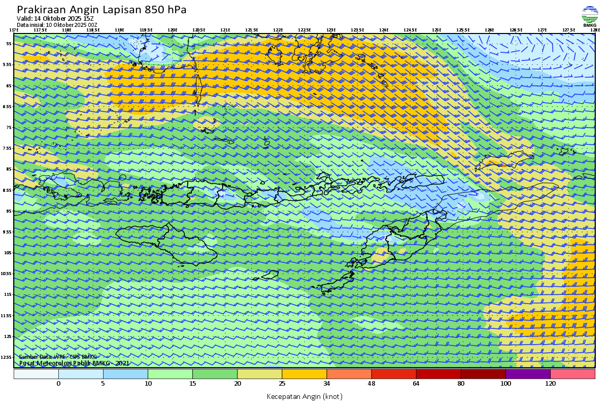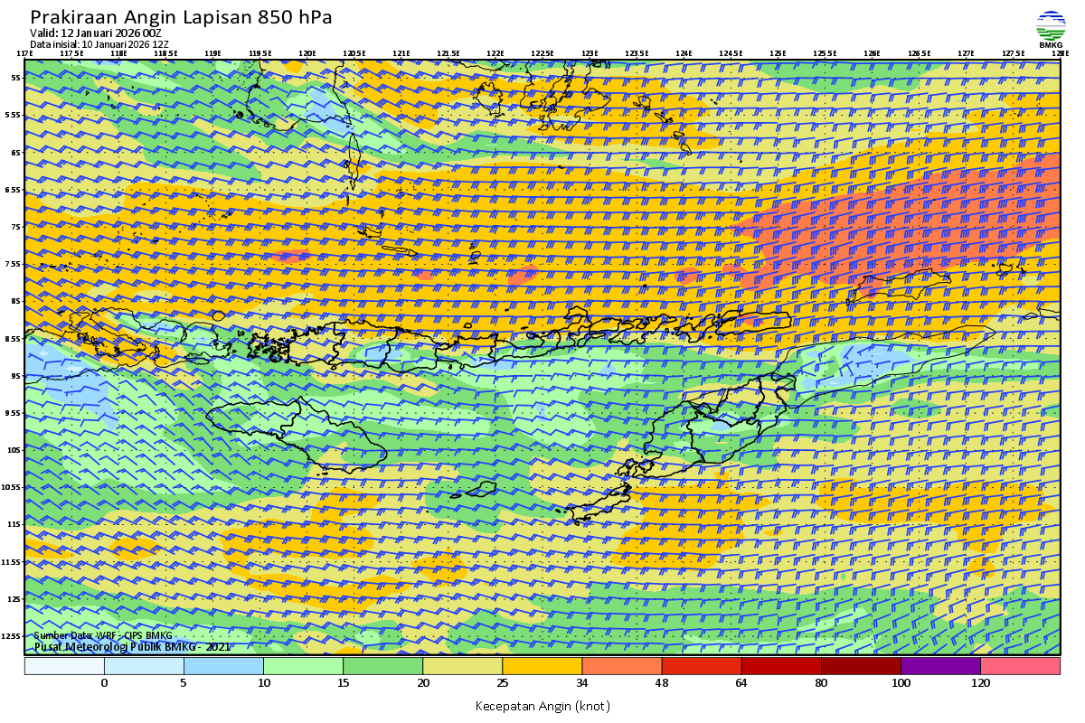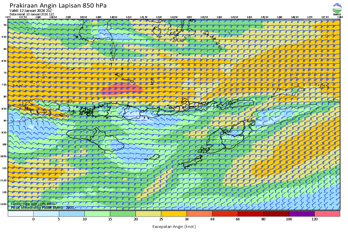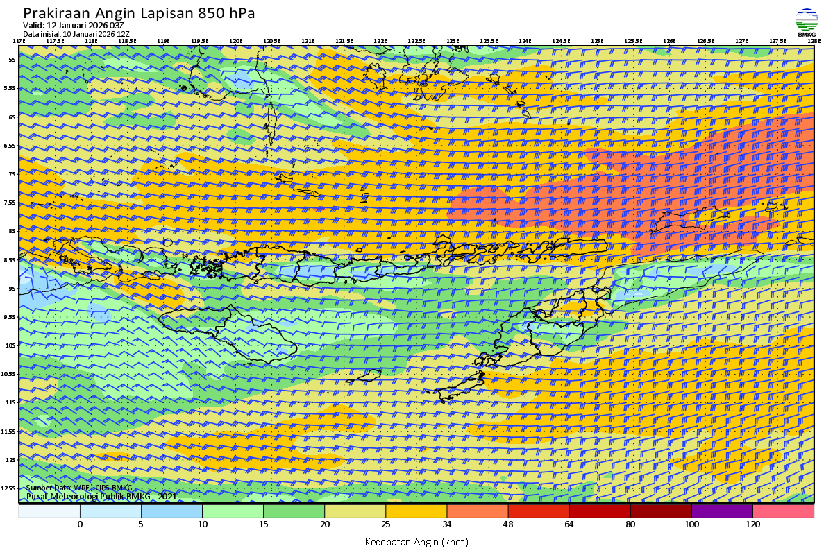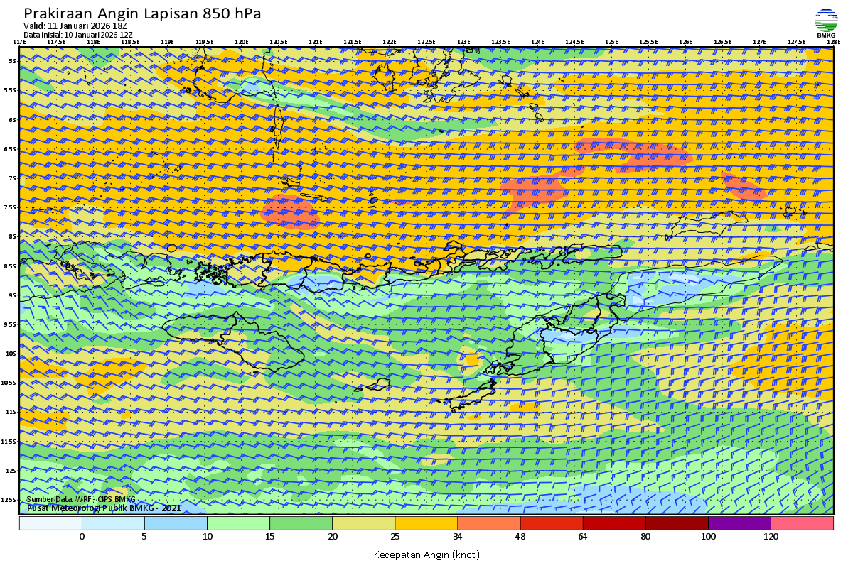 Prakiraan Angin Lapisan 850 Gunung Awu