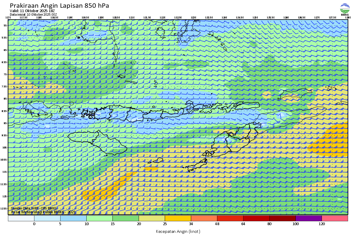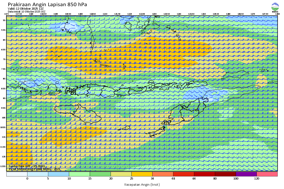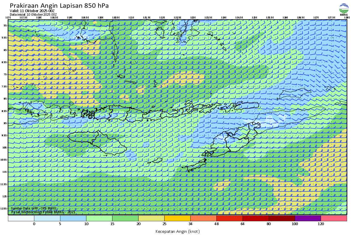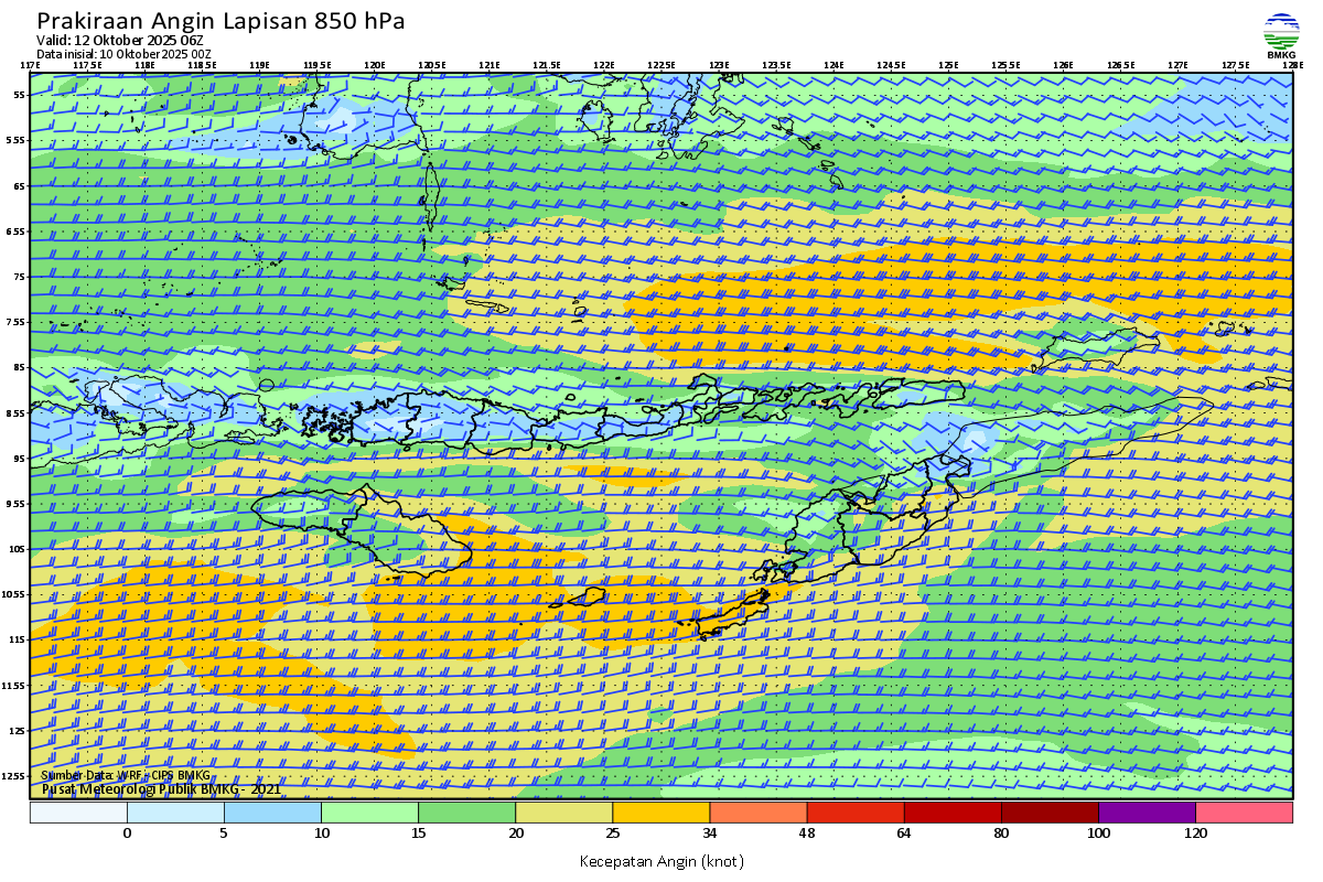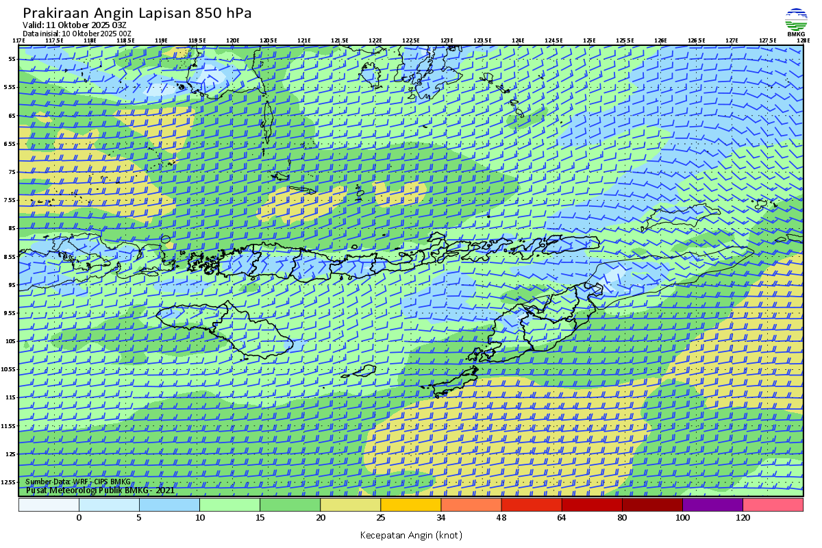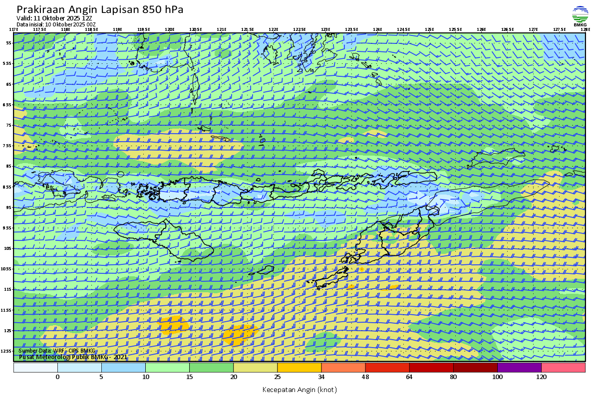 Prakiraan Angin Lapisan 850 Gunung Awu