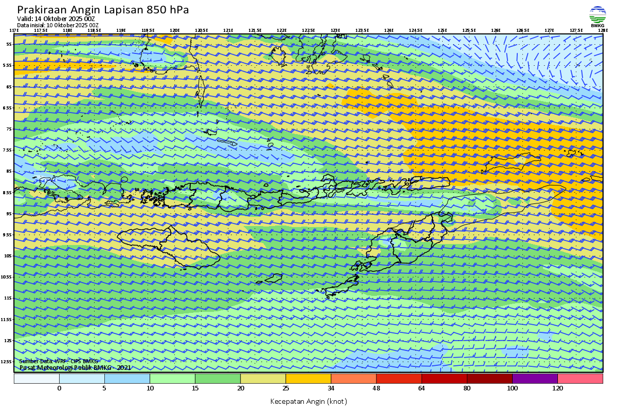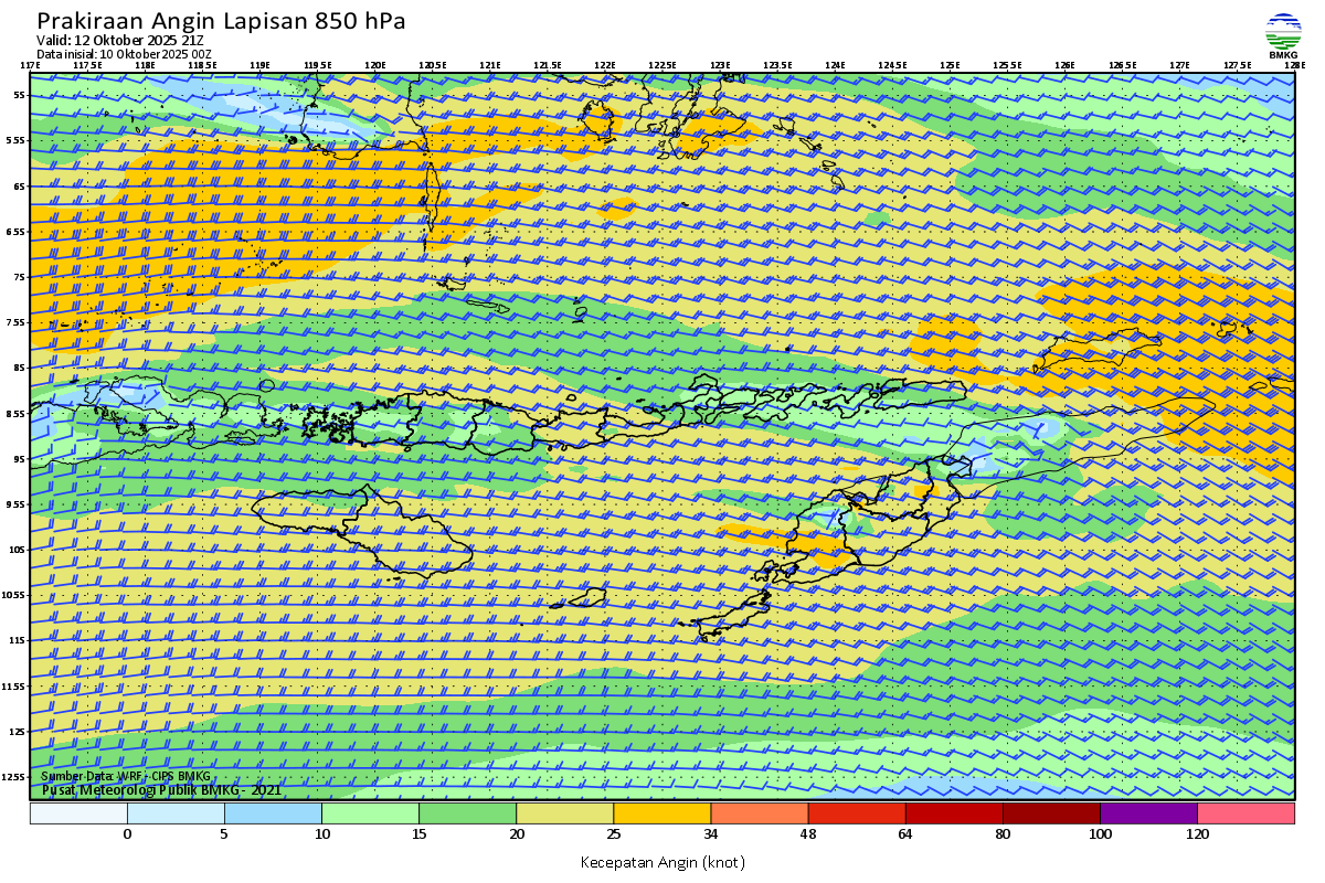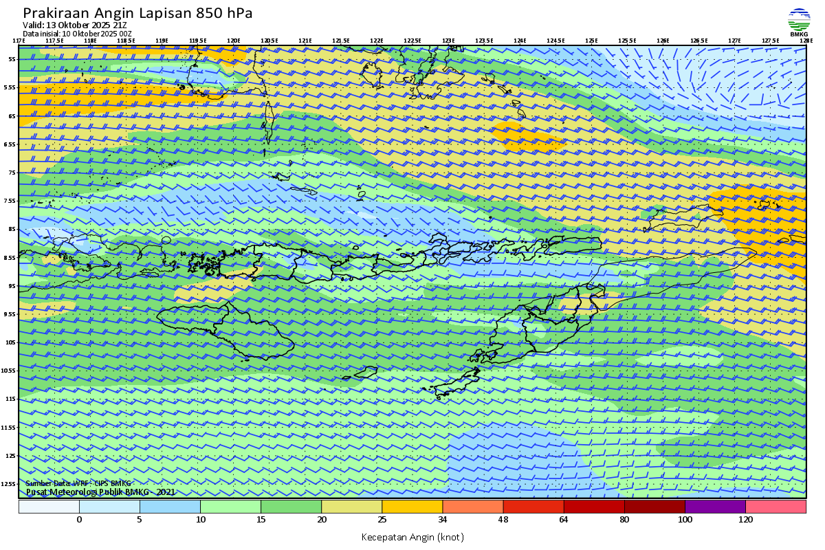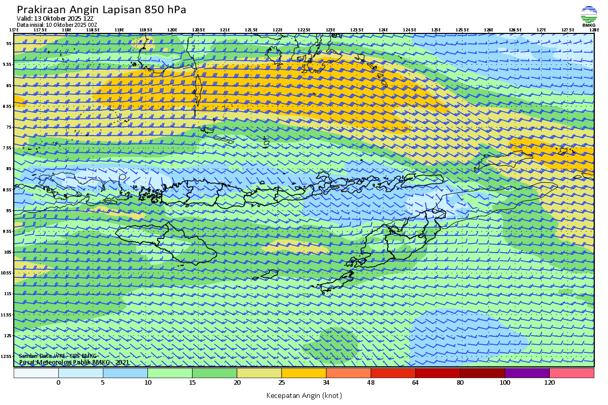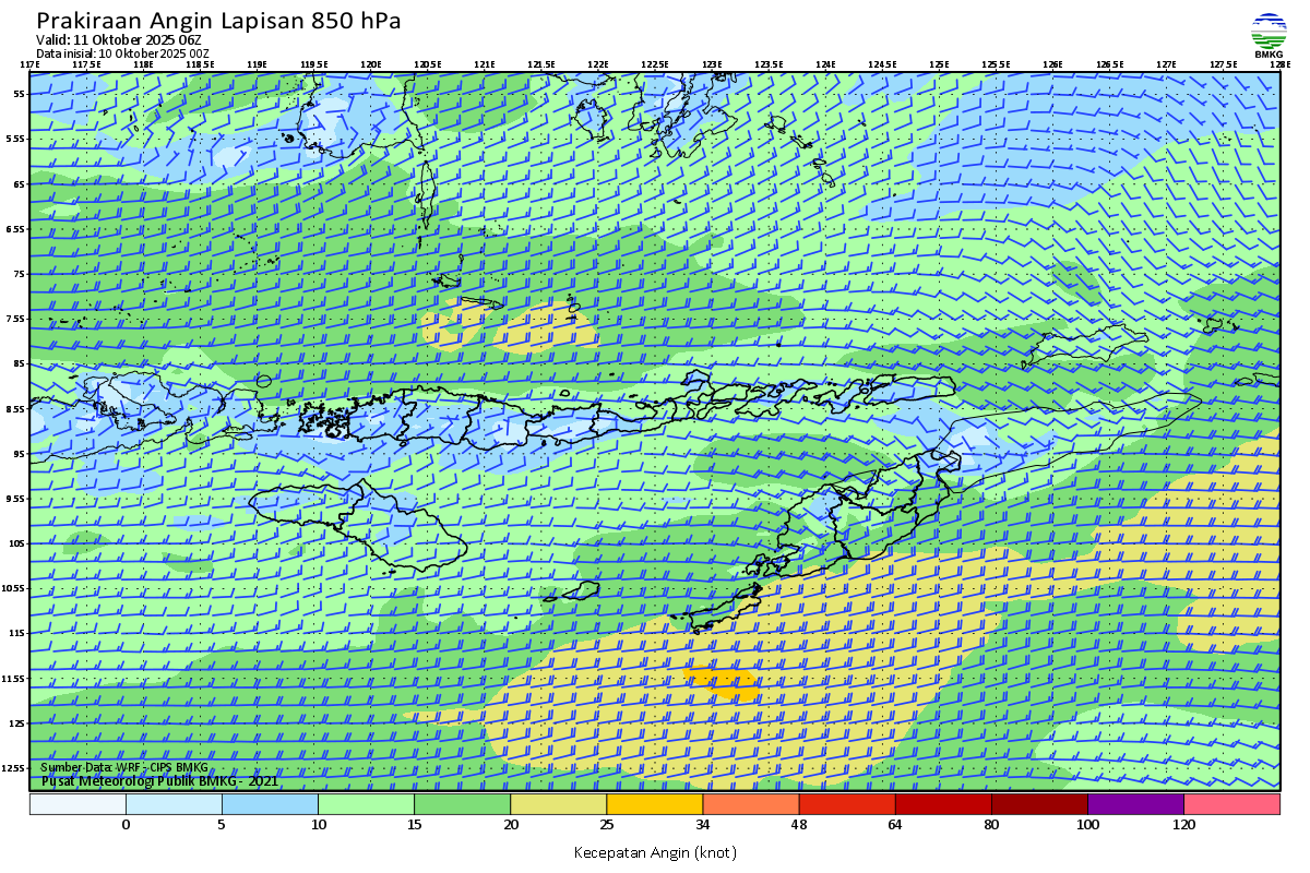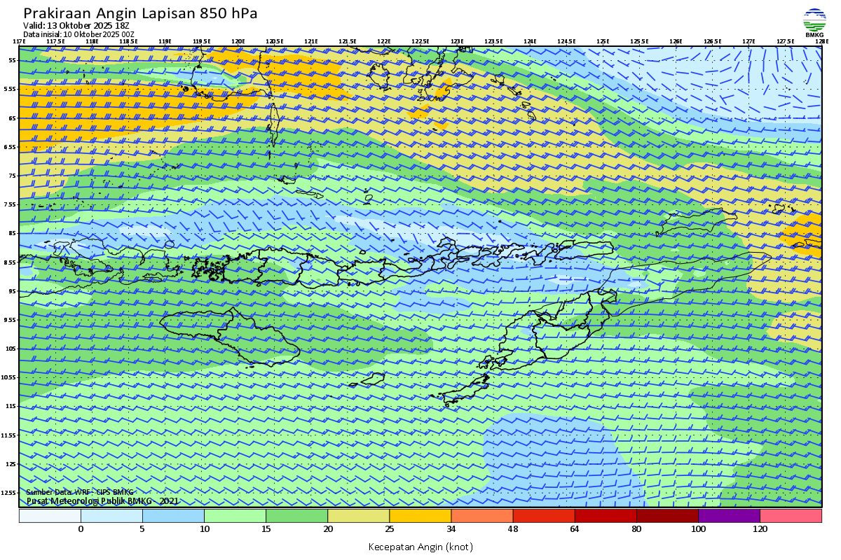 Prakiraan Angin Lapisan 850 Gunung Awu