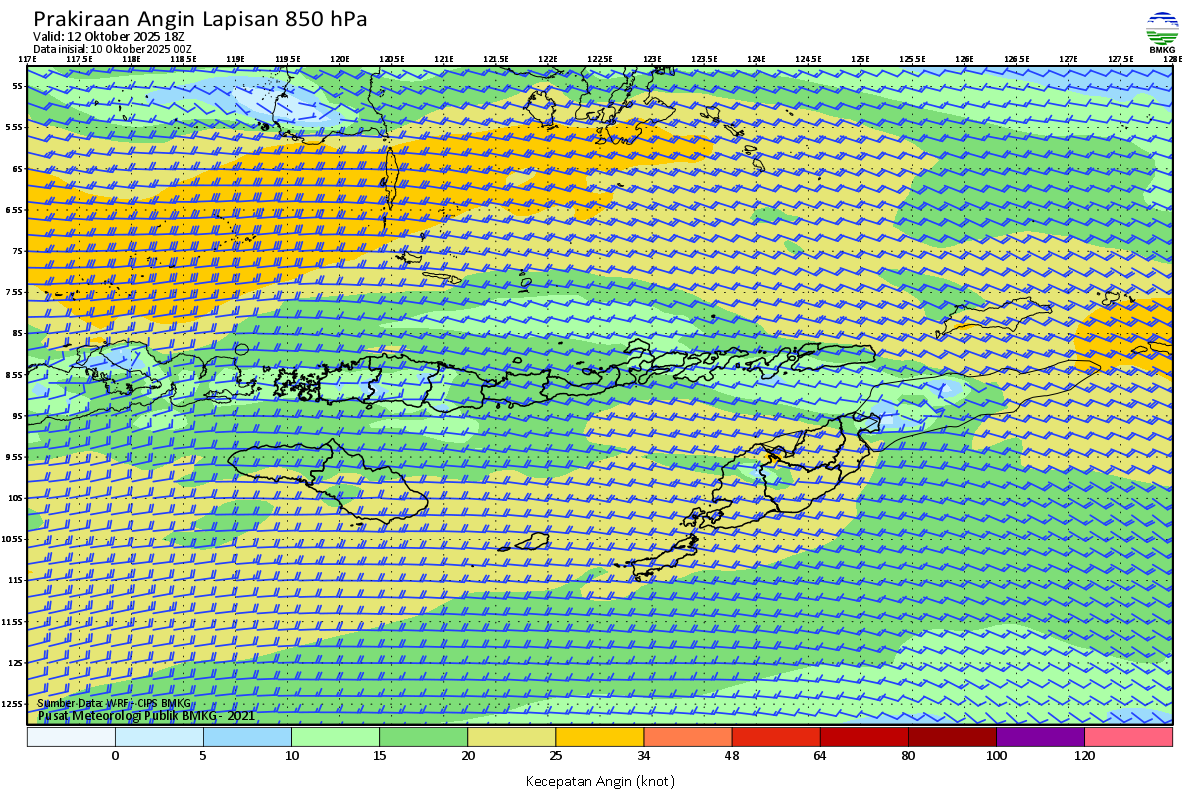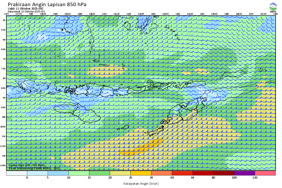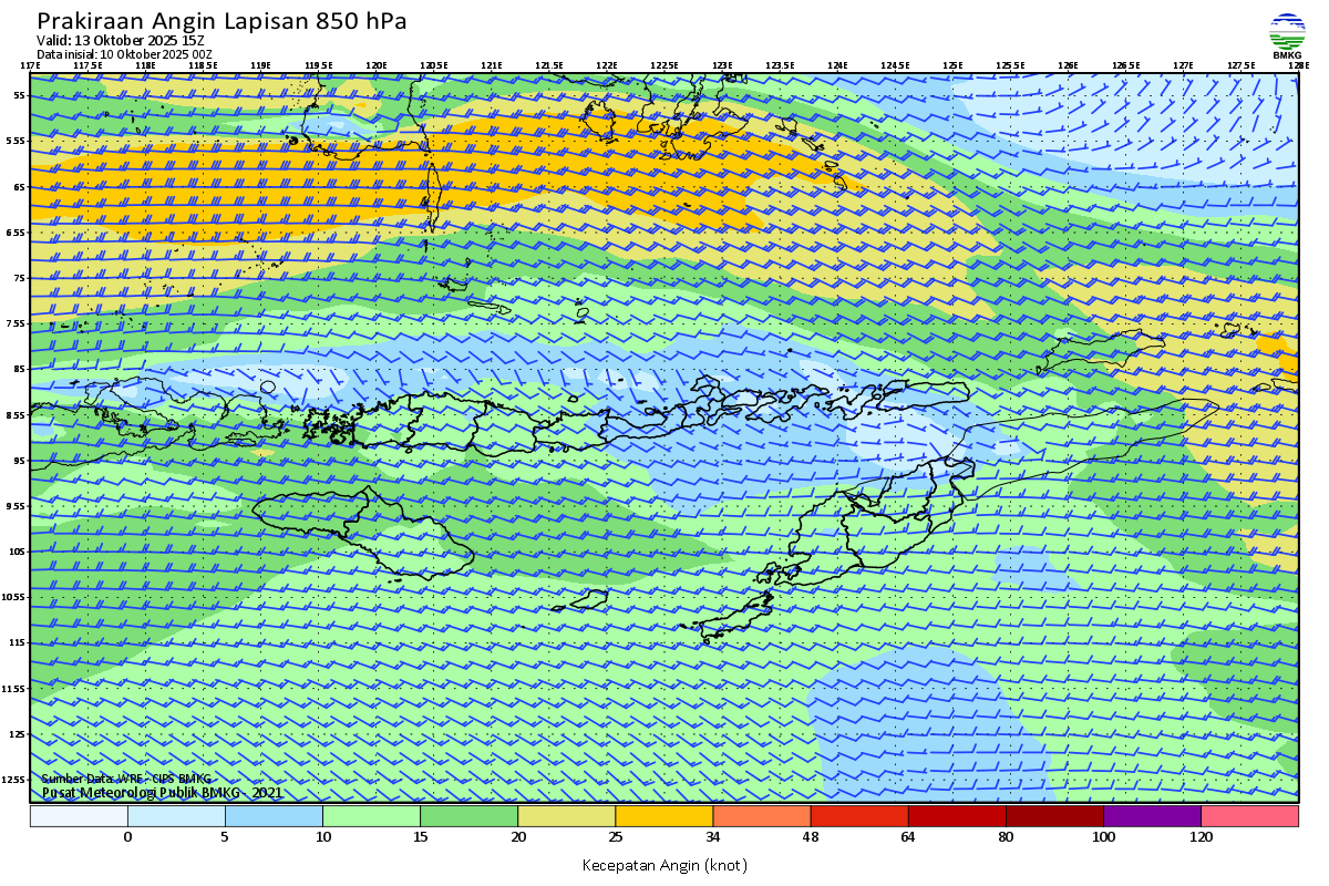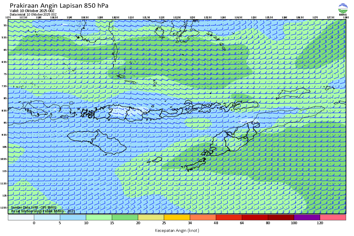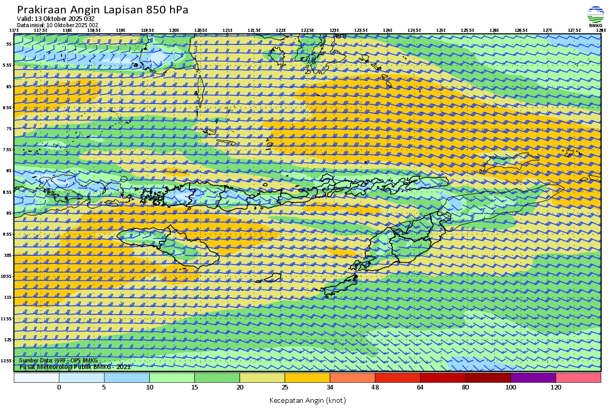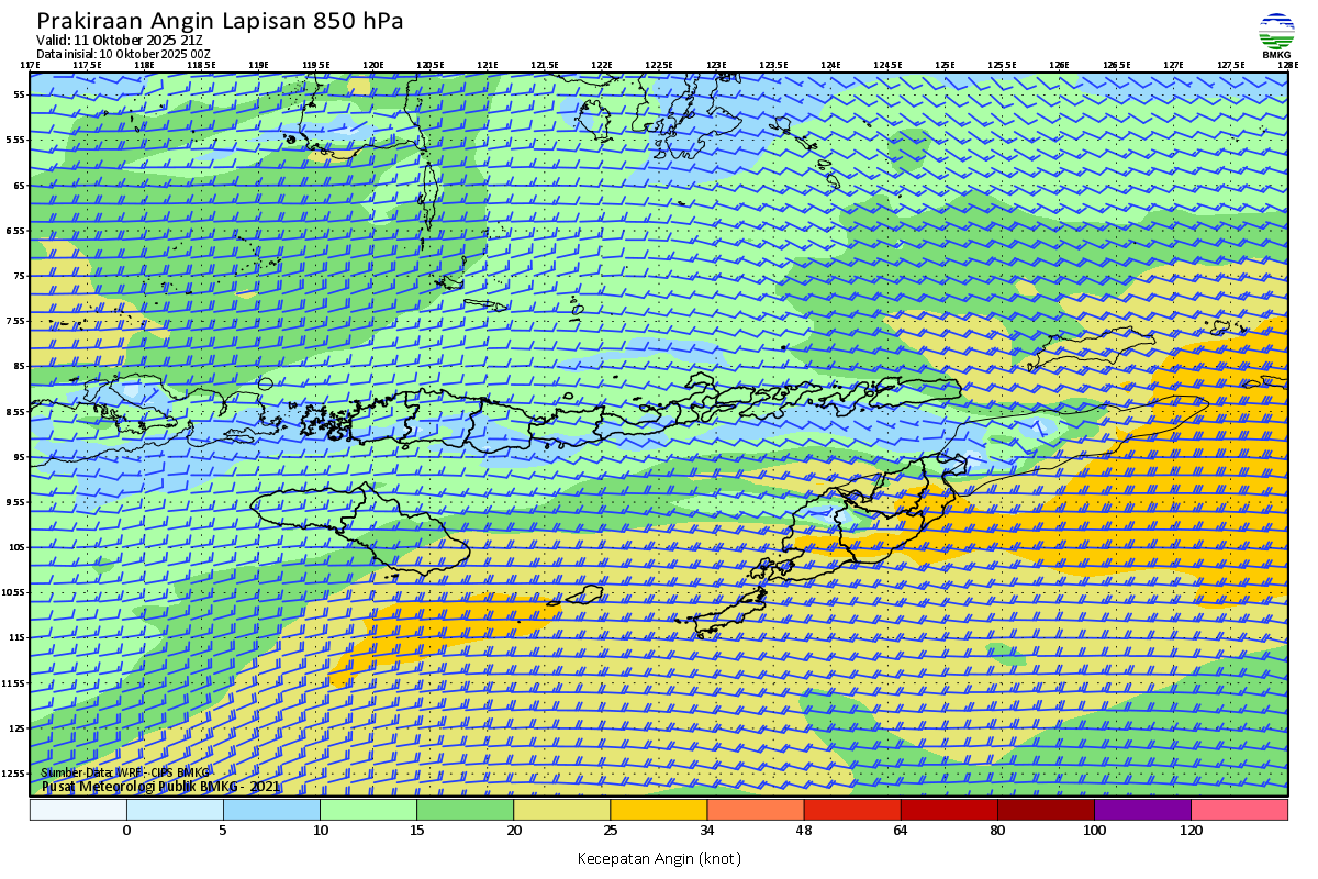 Prakiraan Angin Lapisan 850 Gunung Awu