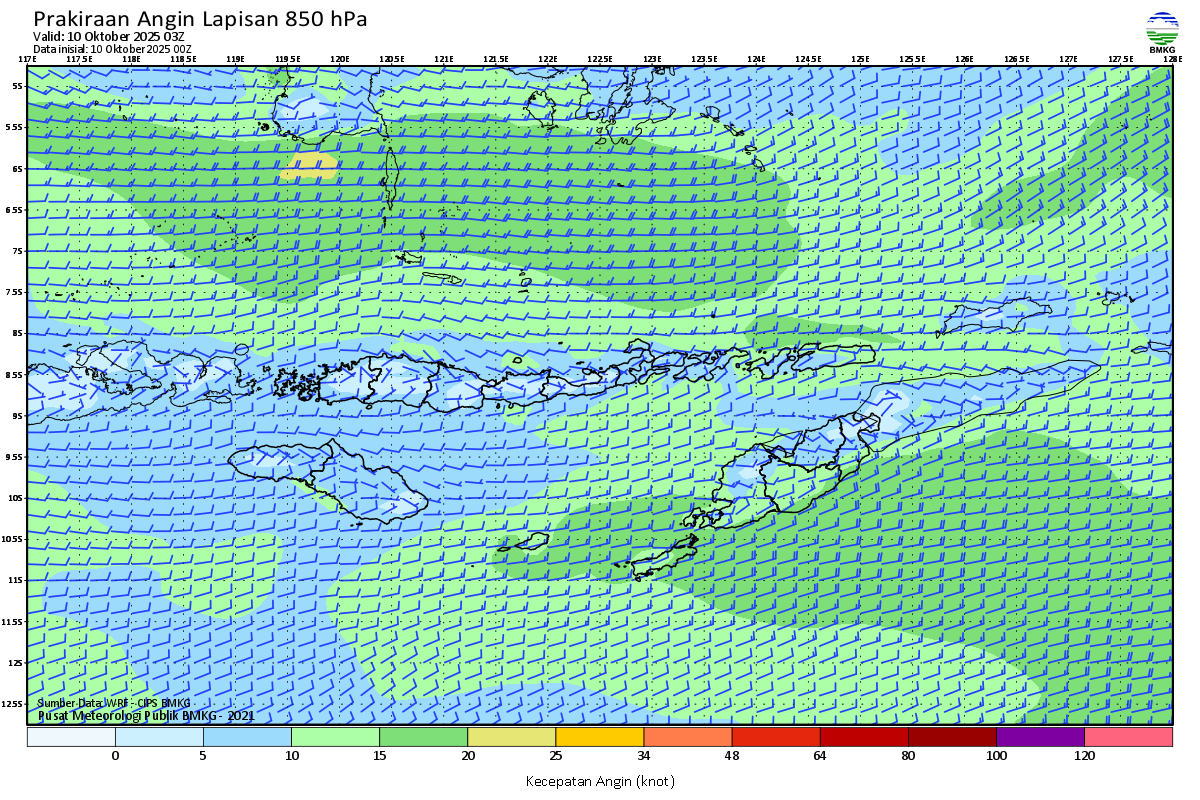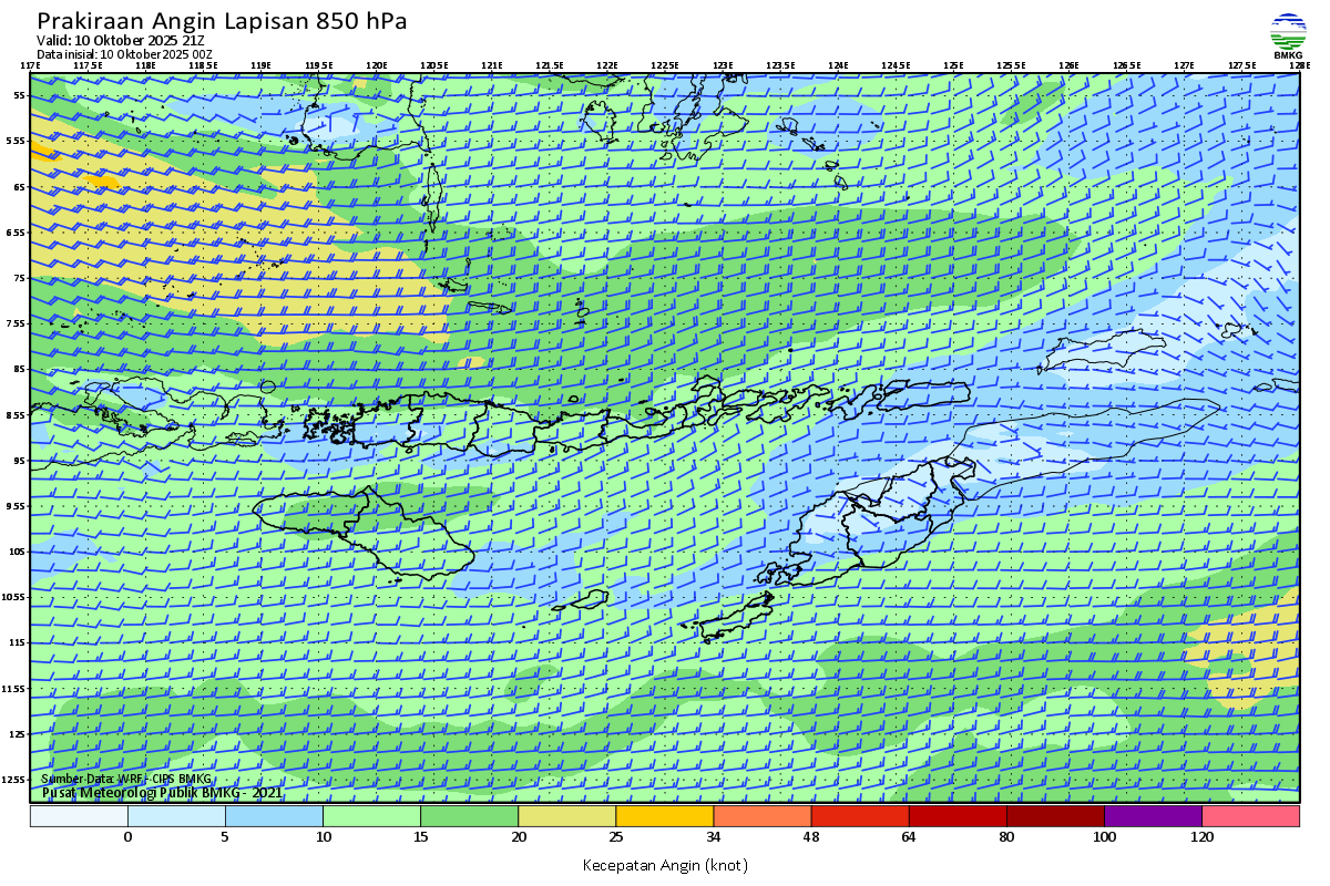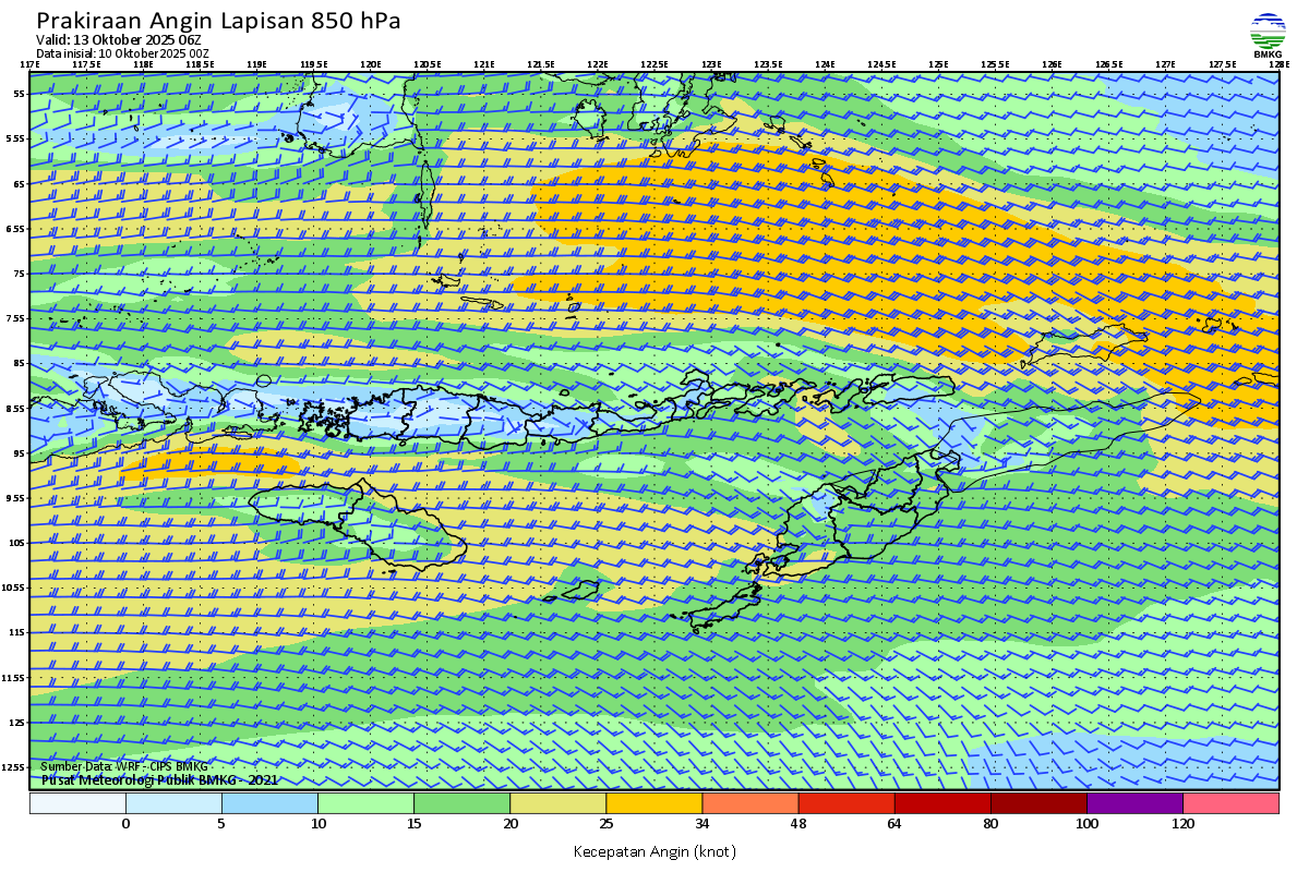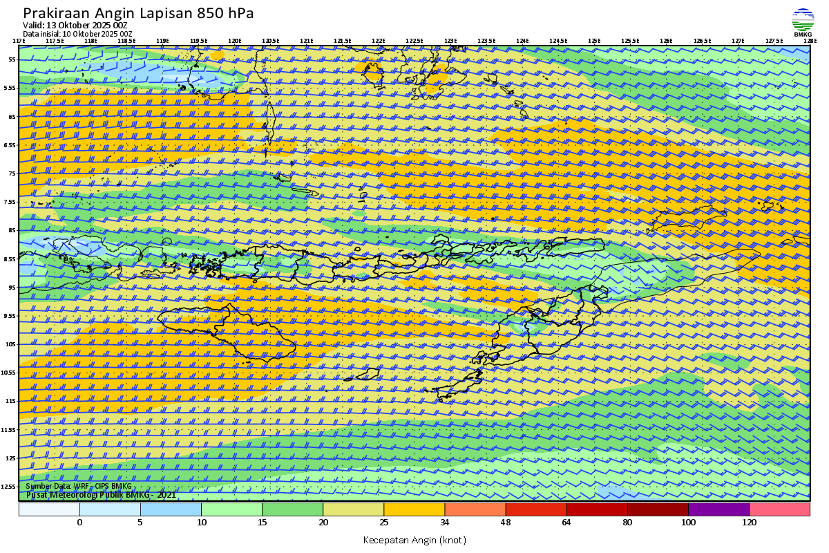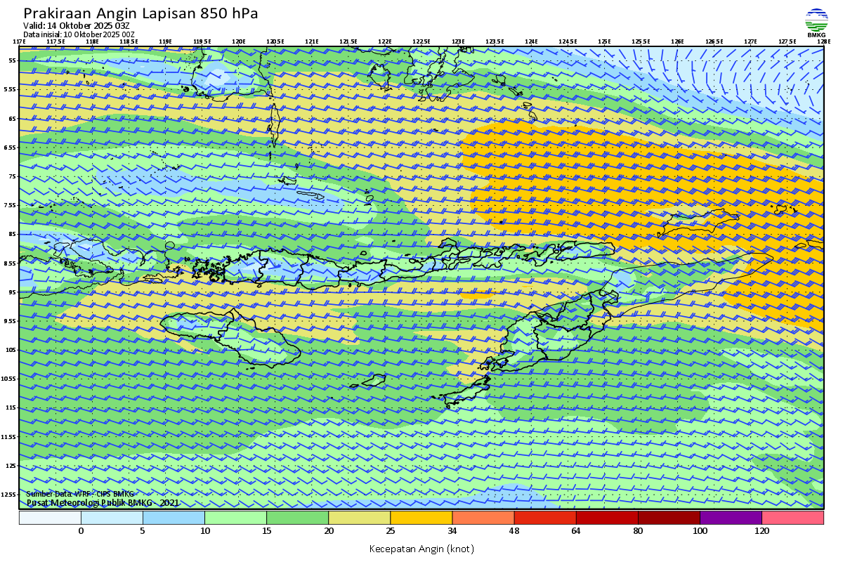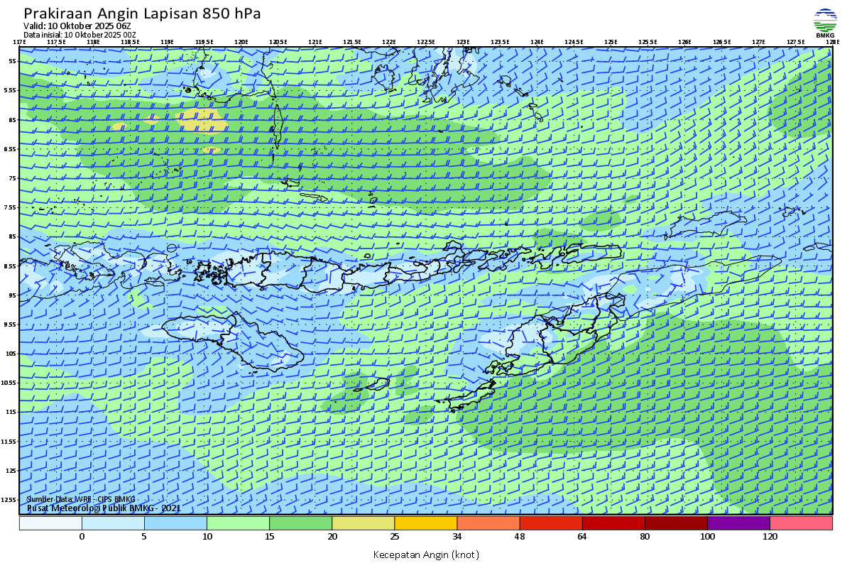 Prakiraan Angin Lapisan 850 Gunung Awu
