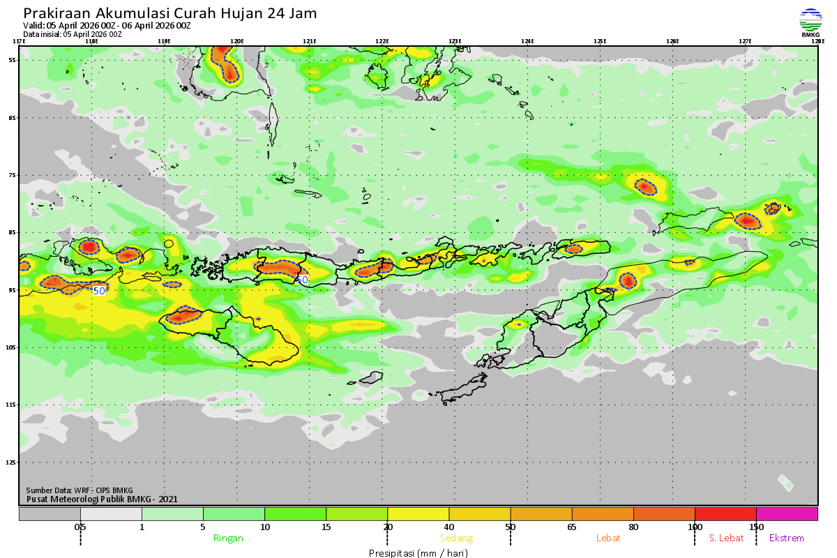 Prediksi Akumulasi Presipitasi 24 Jam NTT