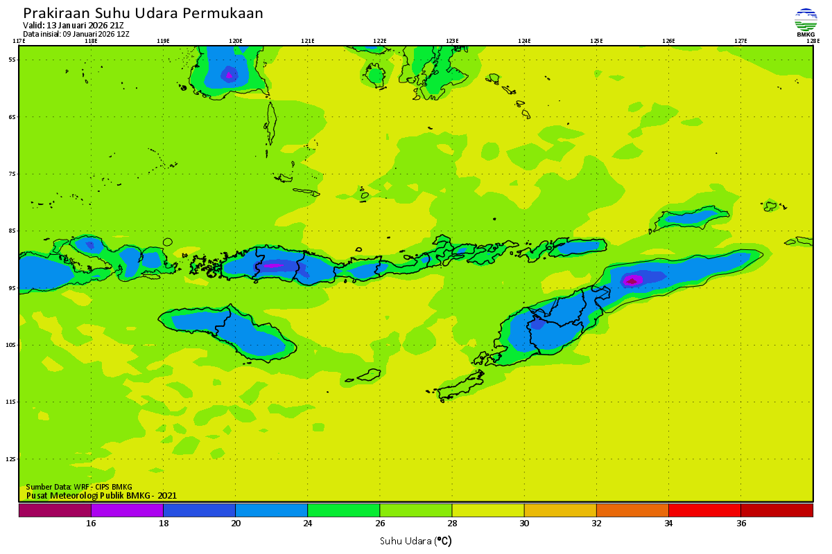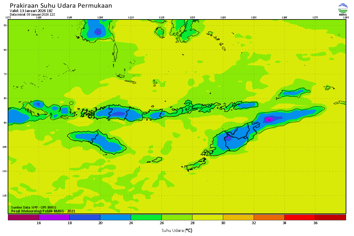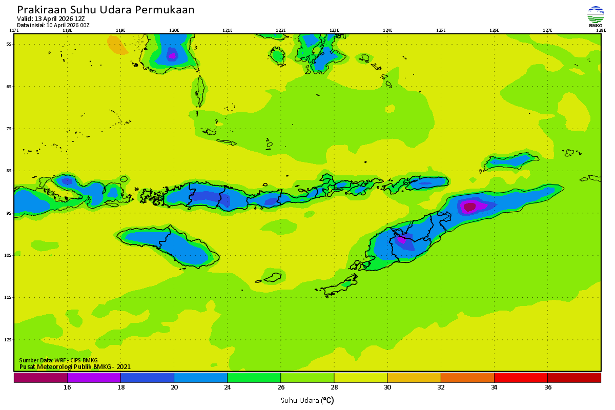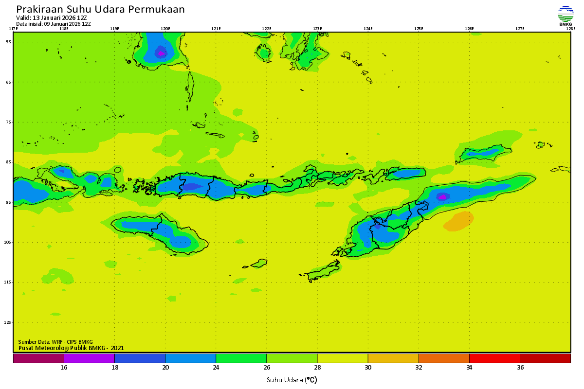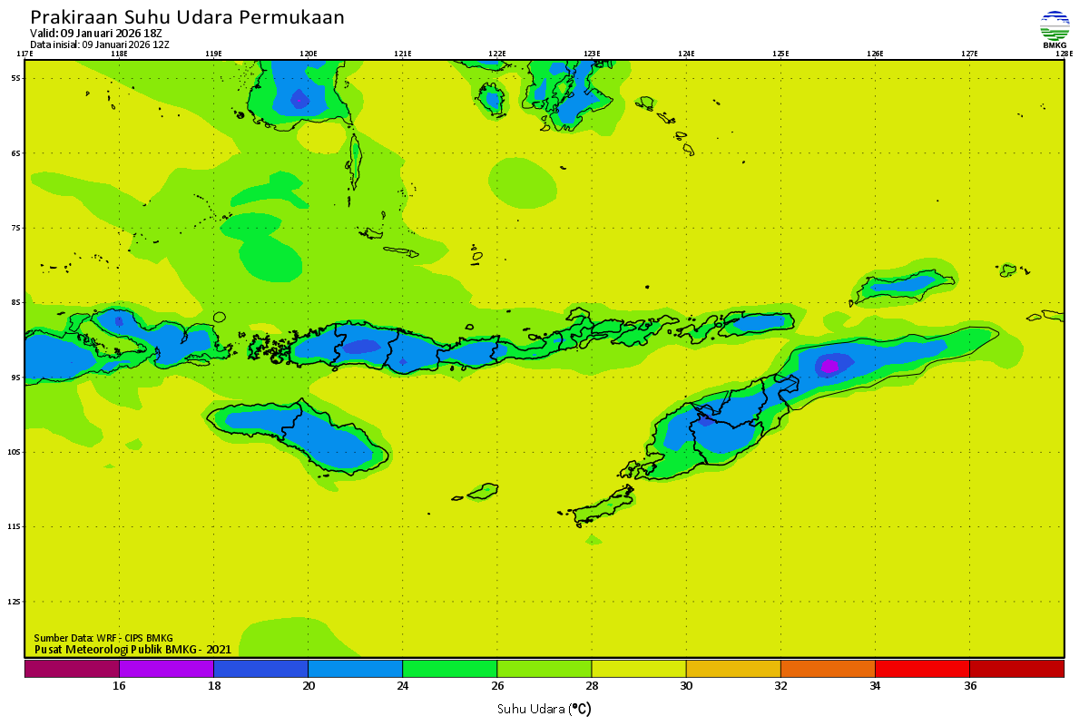Prediksi Suhu Titik Embun 850 hPa NTT