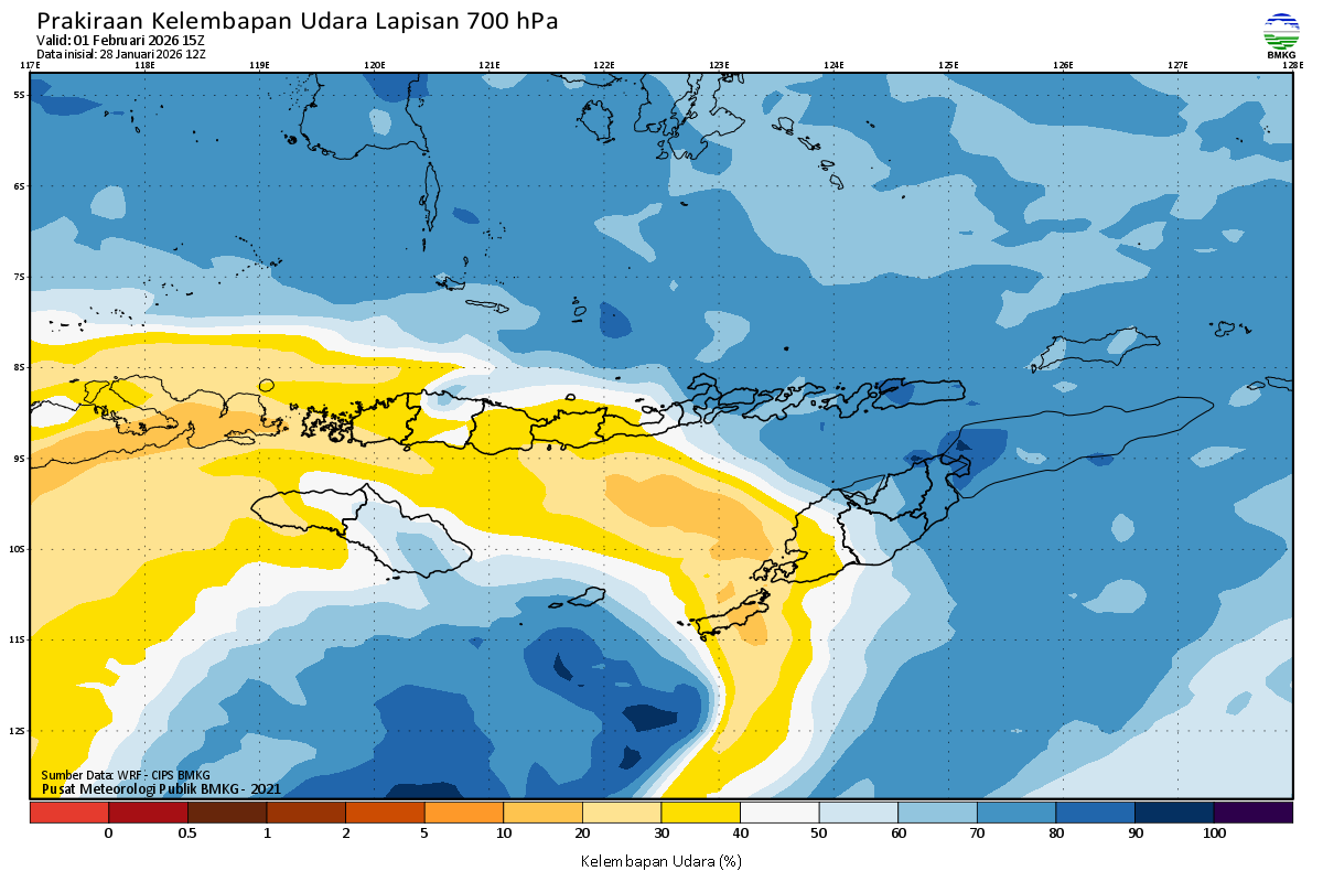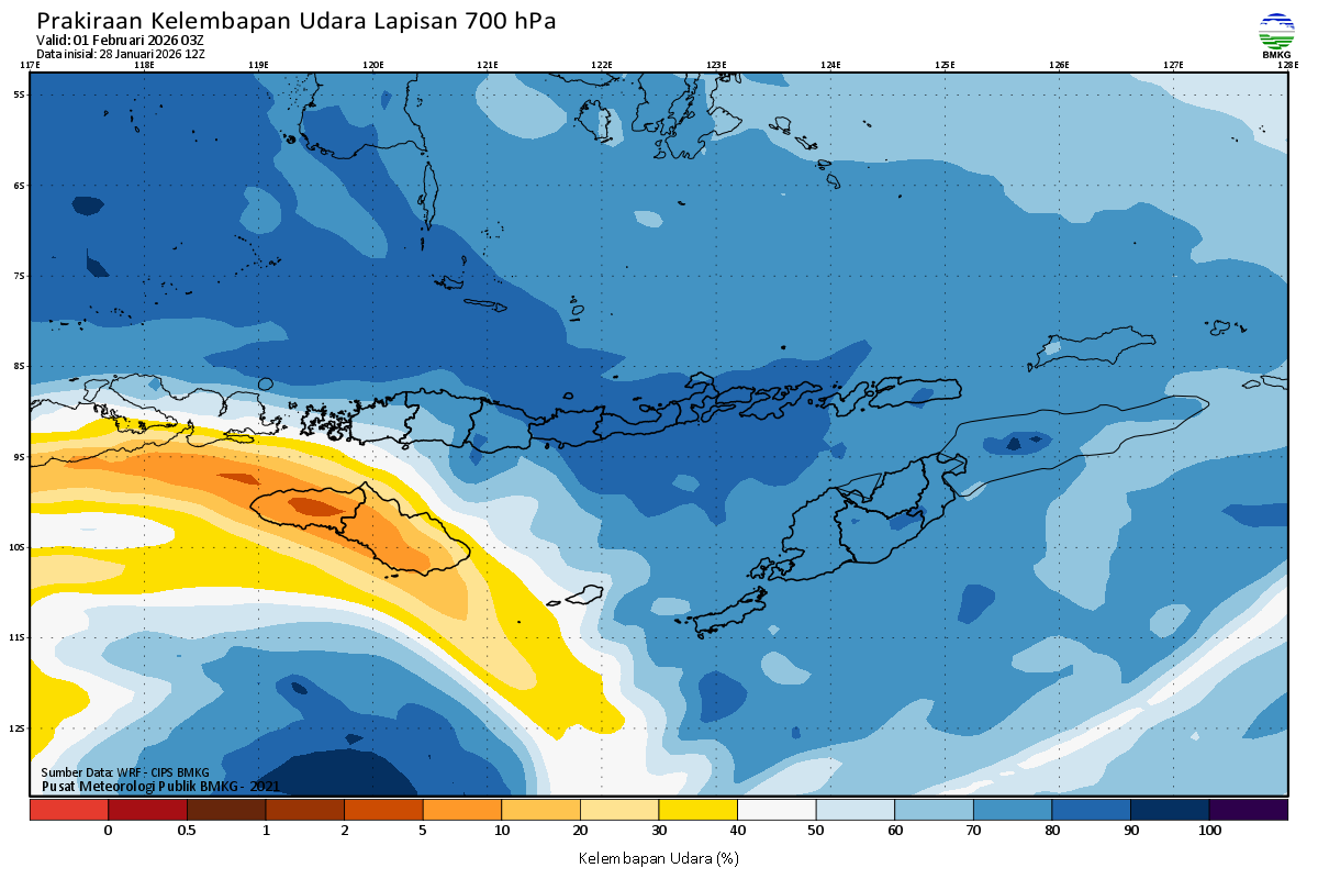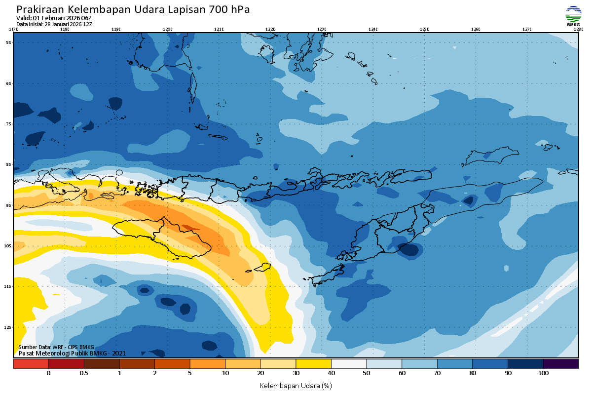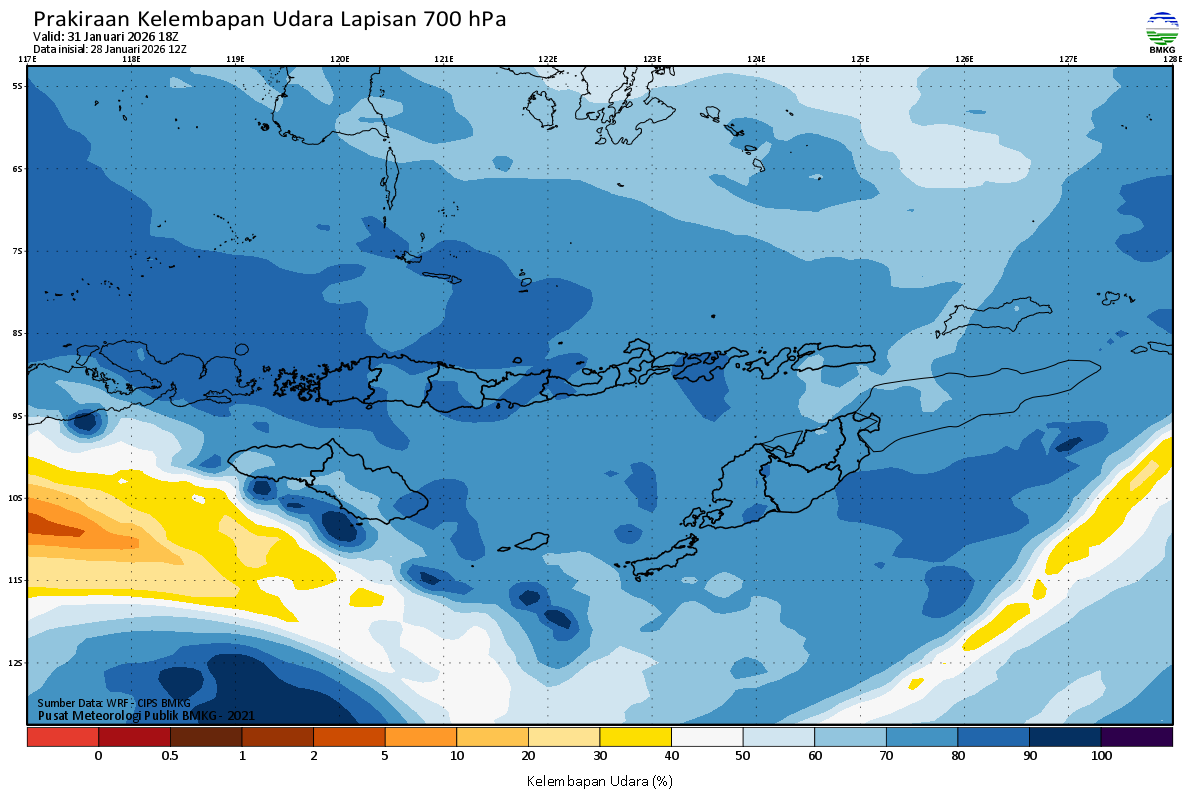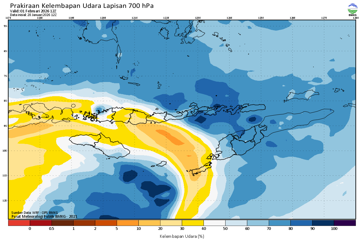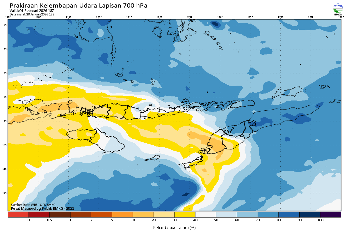 Prediksi Kelembapan 700 hPa NTT