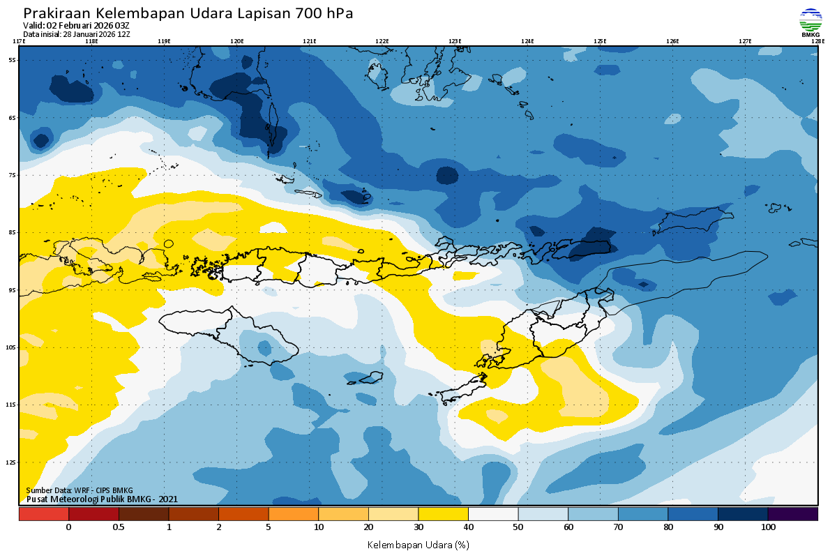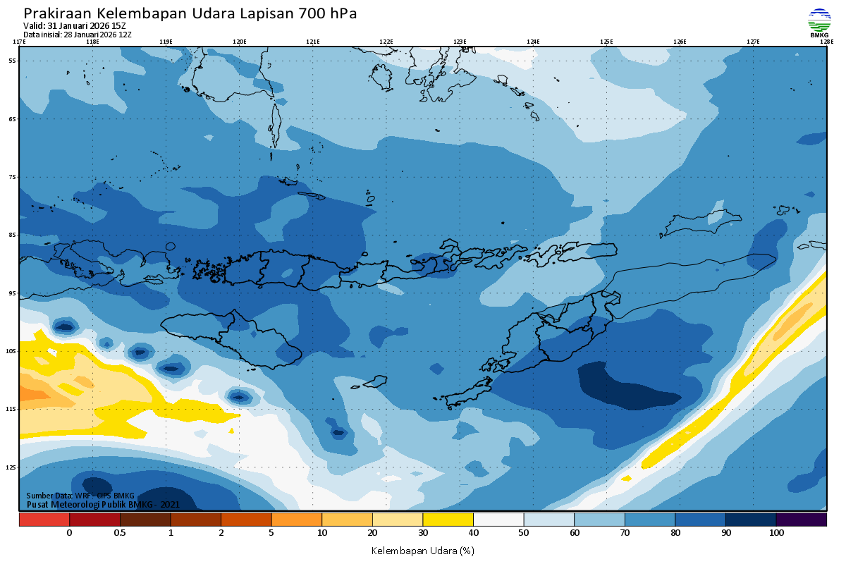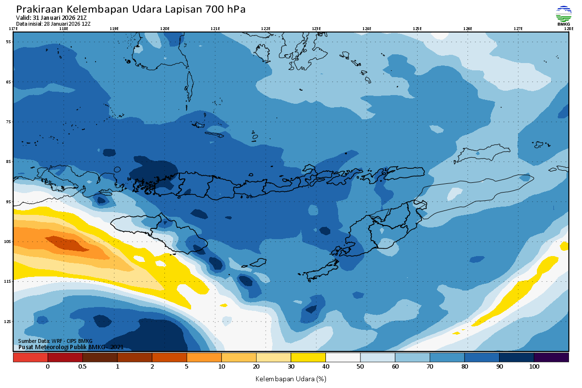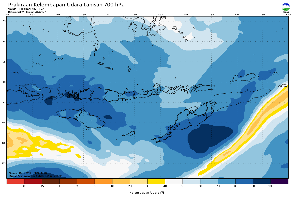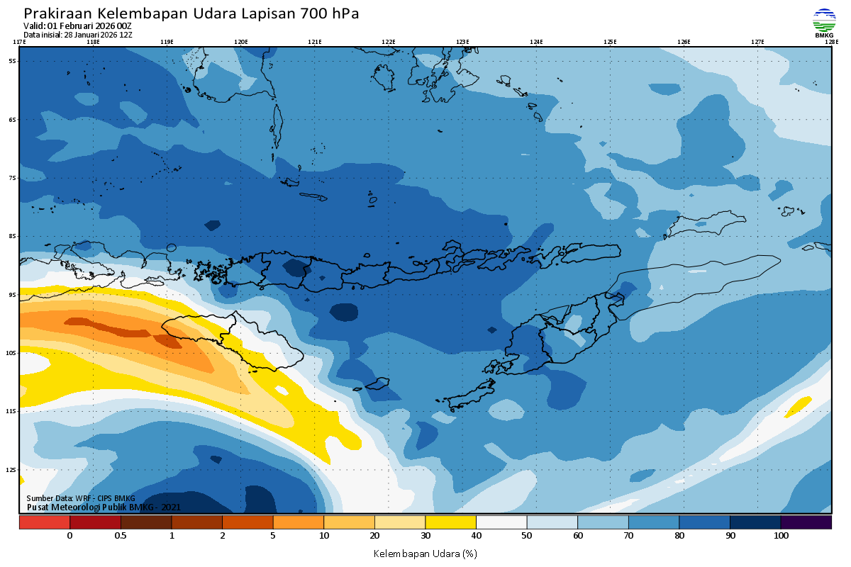Prediksi Kelembapan 700 hPa NTT