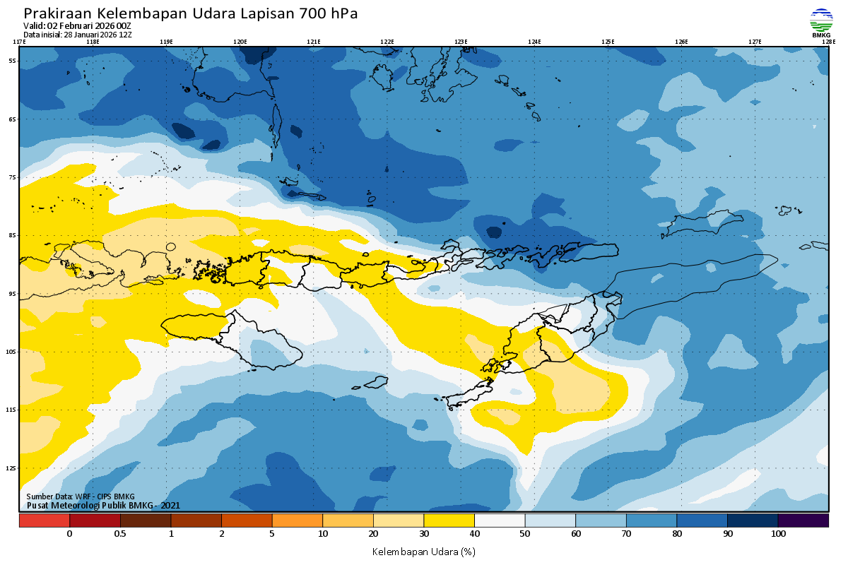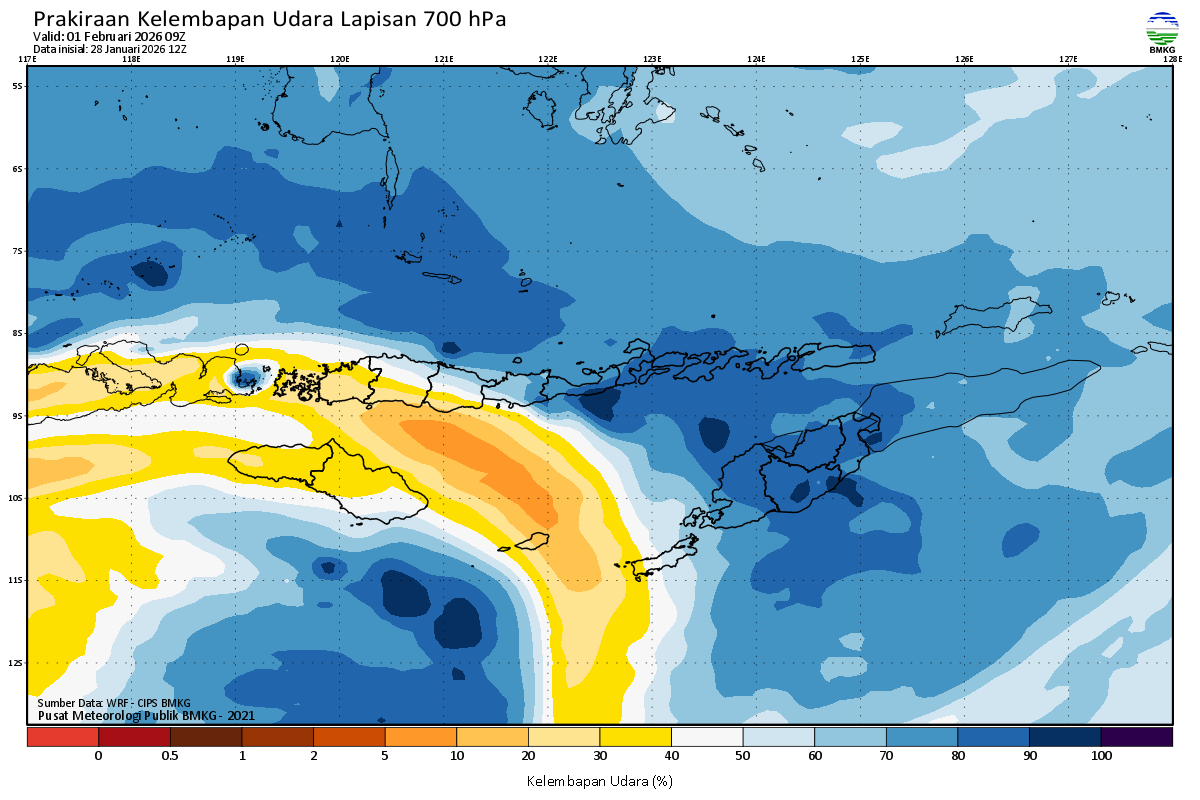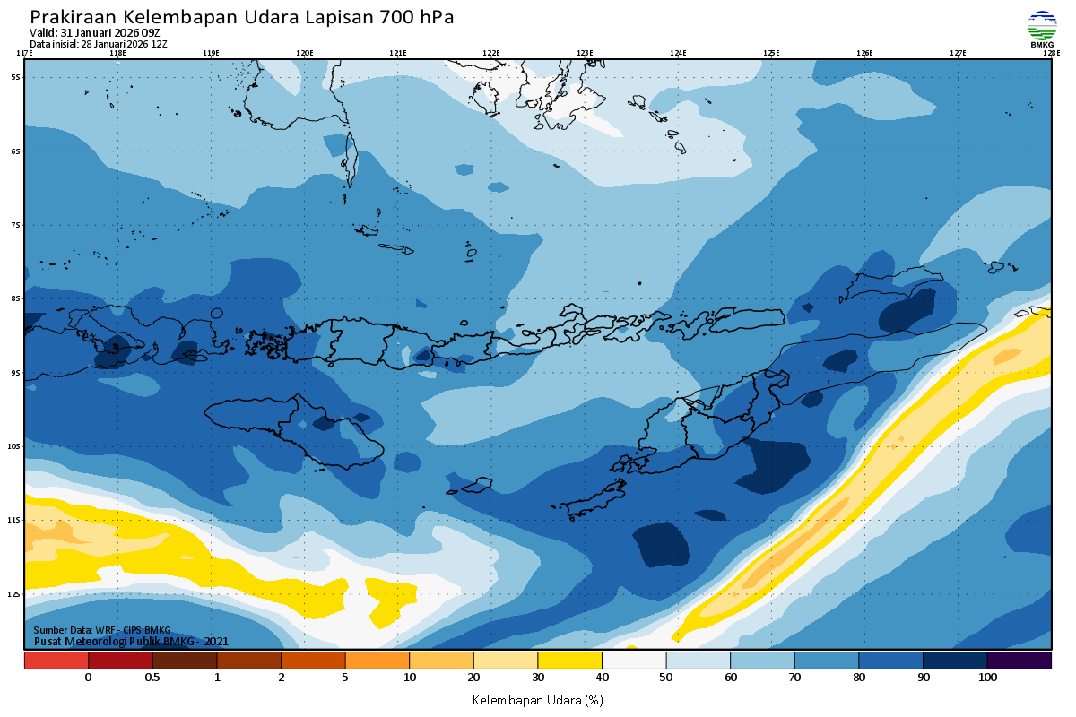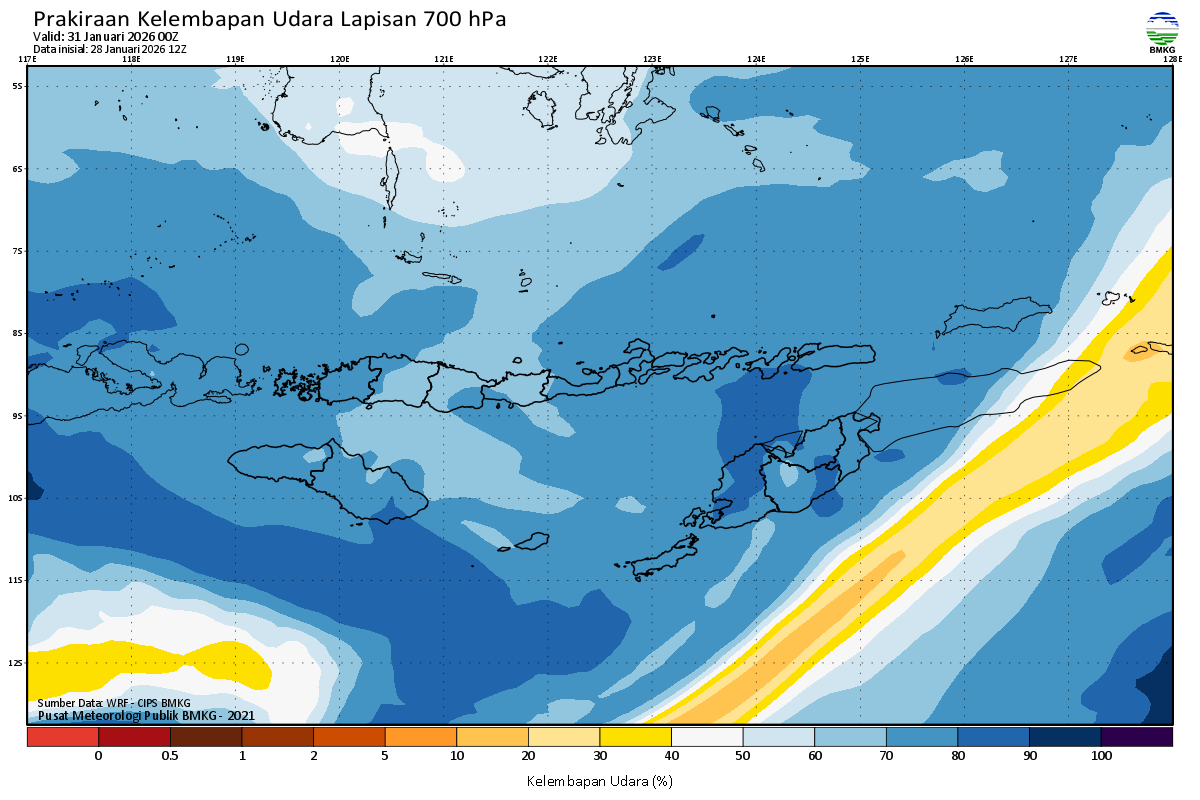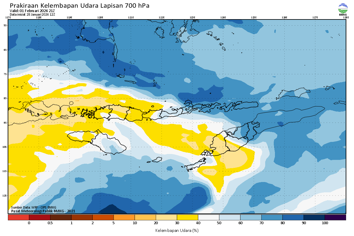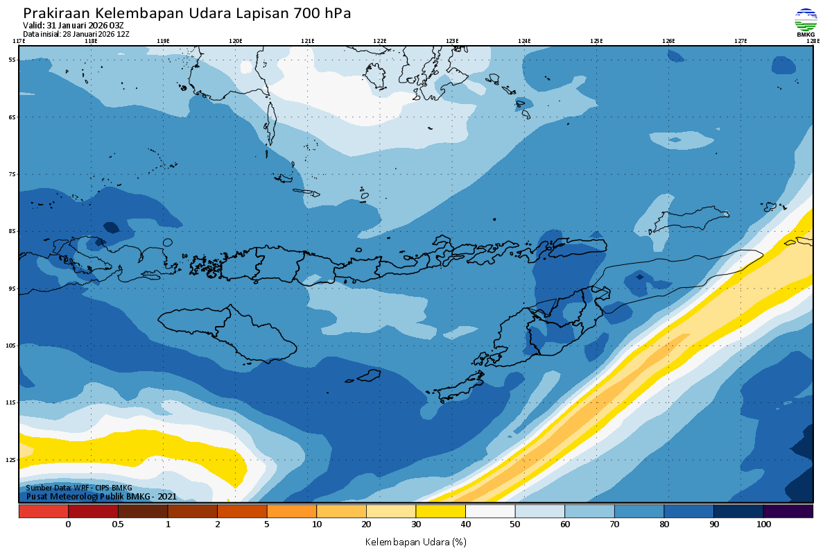 Prediksi Kelembapan 700 hPa NTT