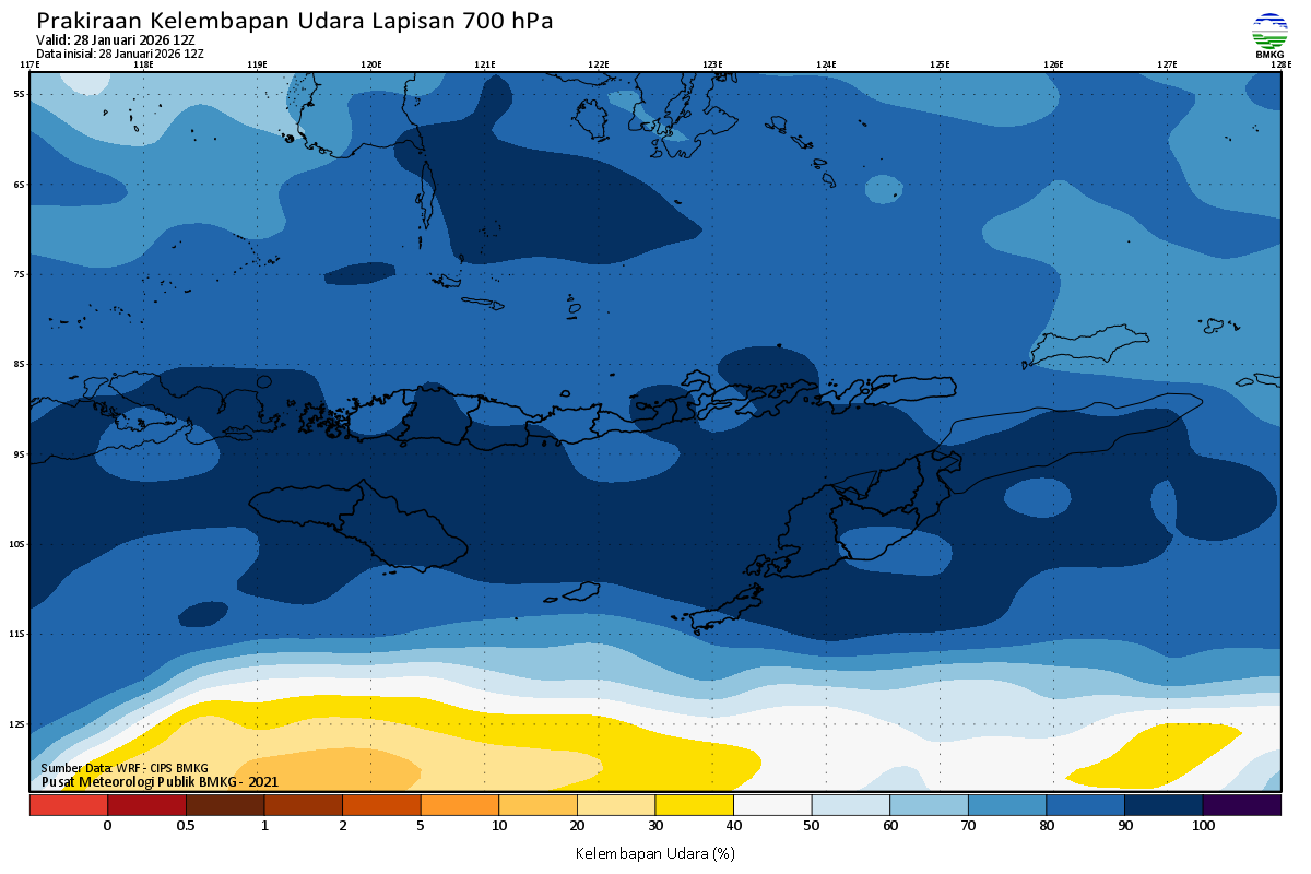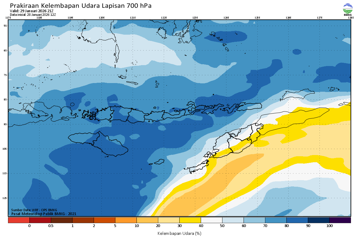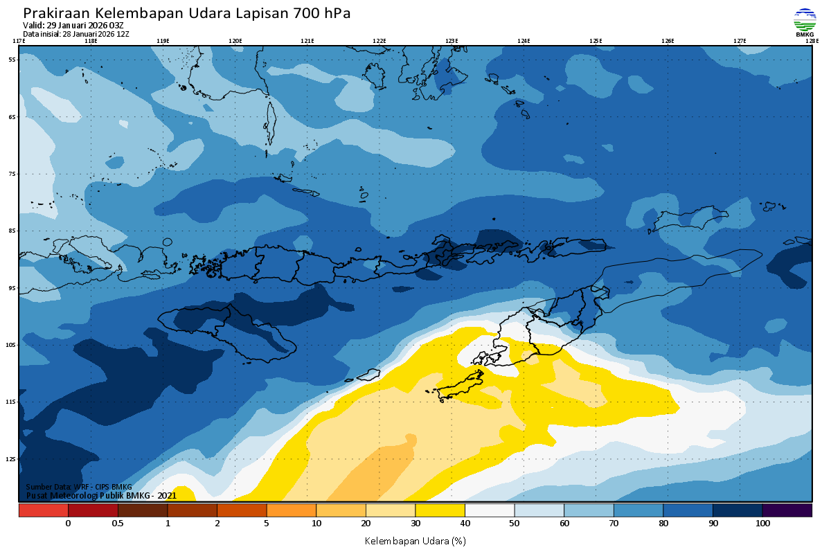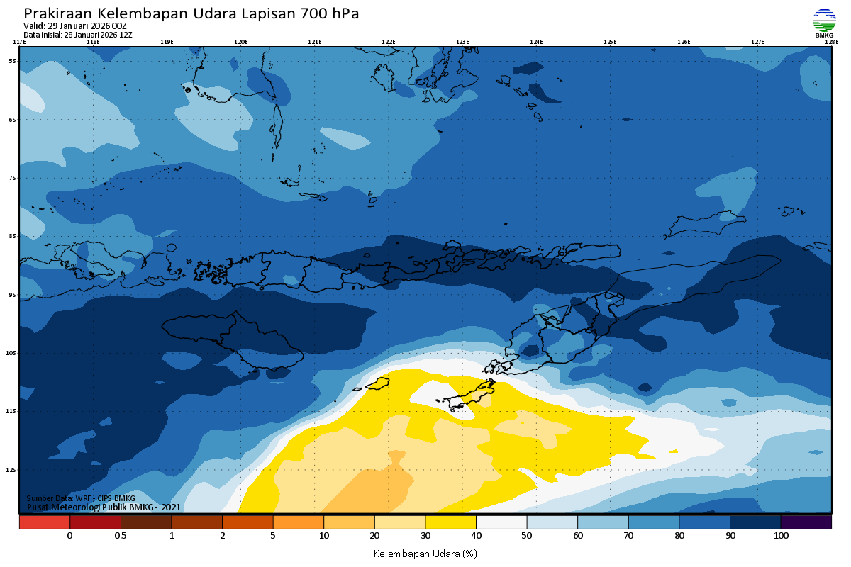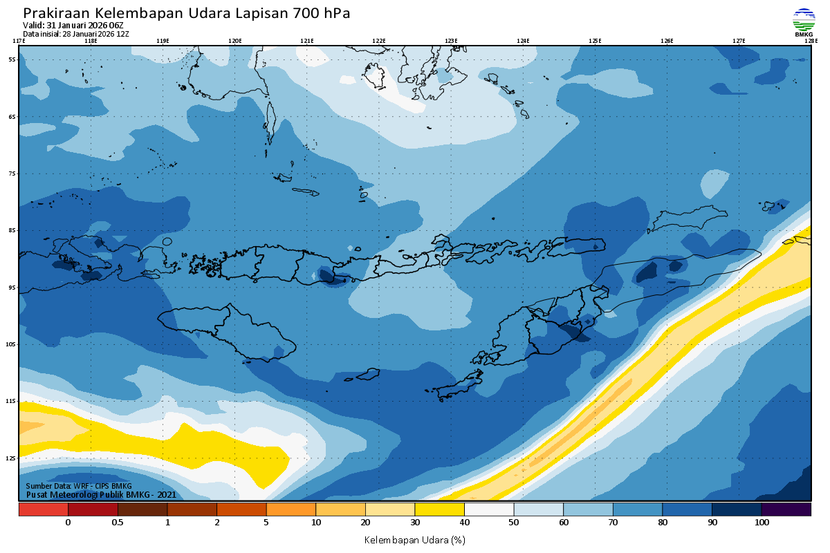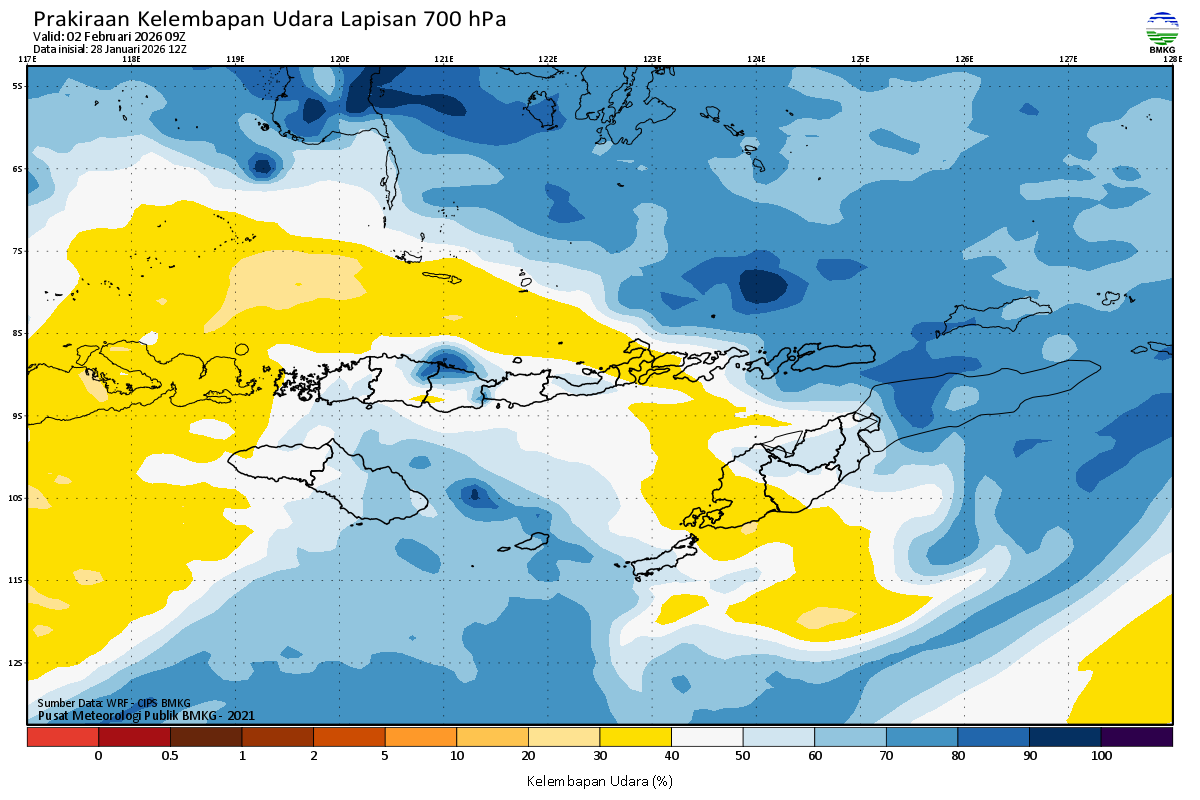Prediksi Kelembapan 700 hPa NTT