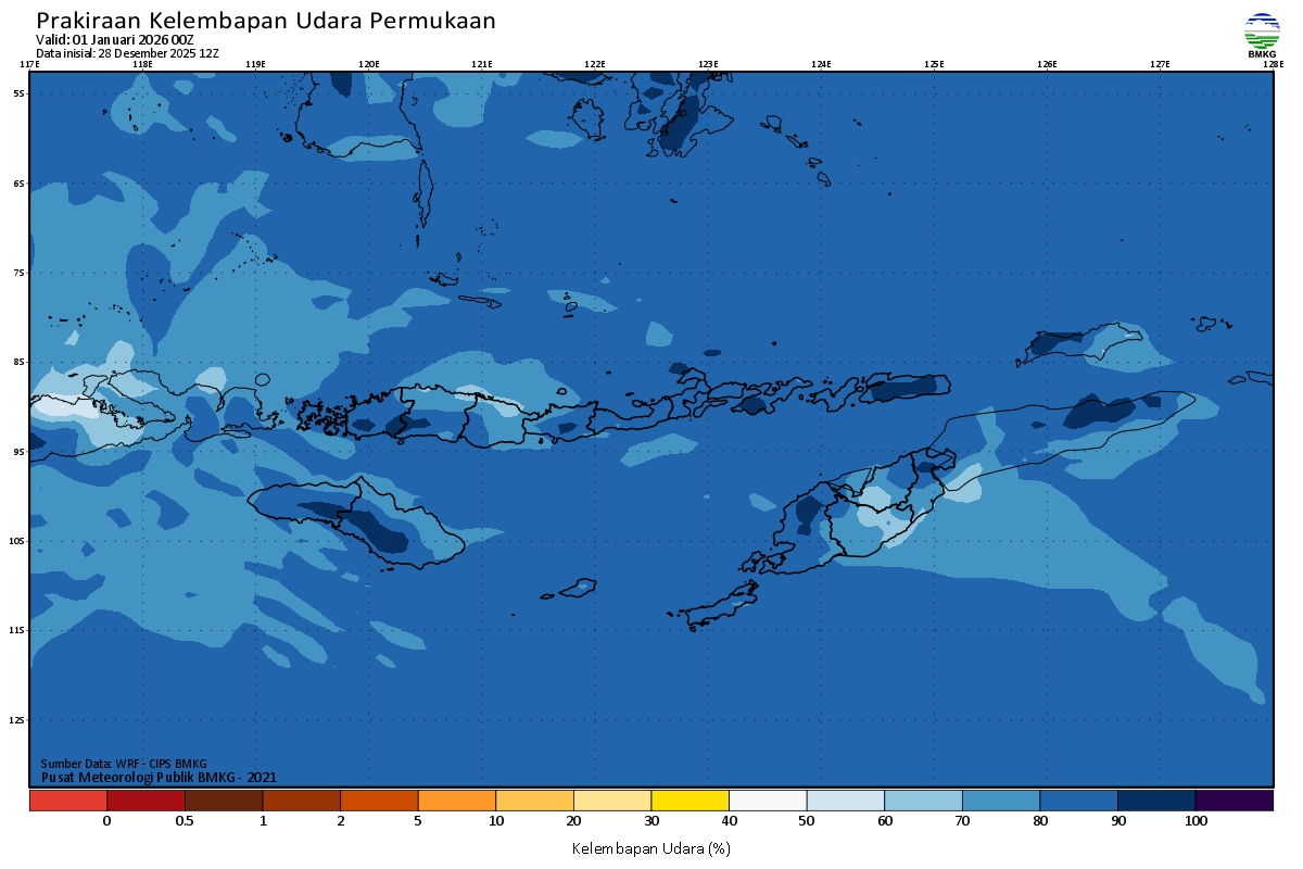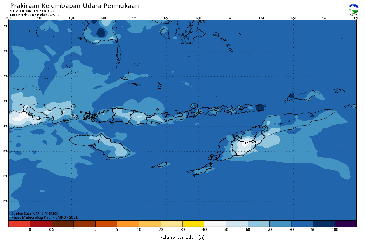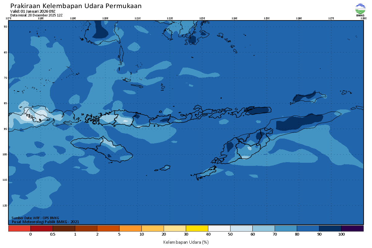 Prediksi Suhu Titik Embun 700 hPa NTT