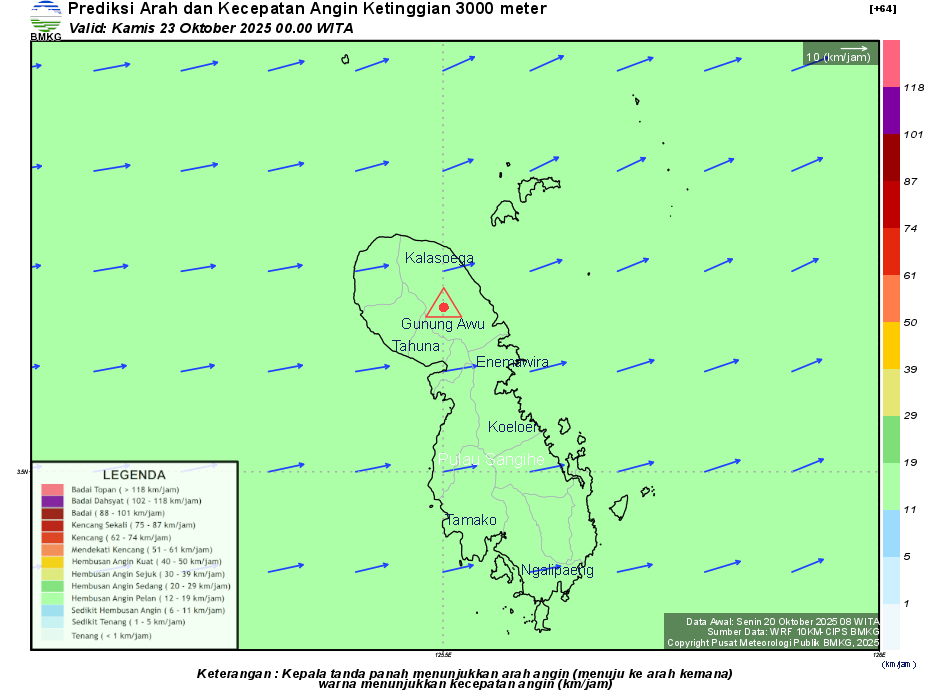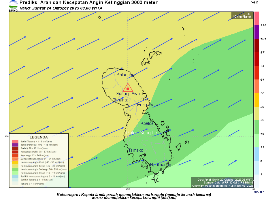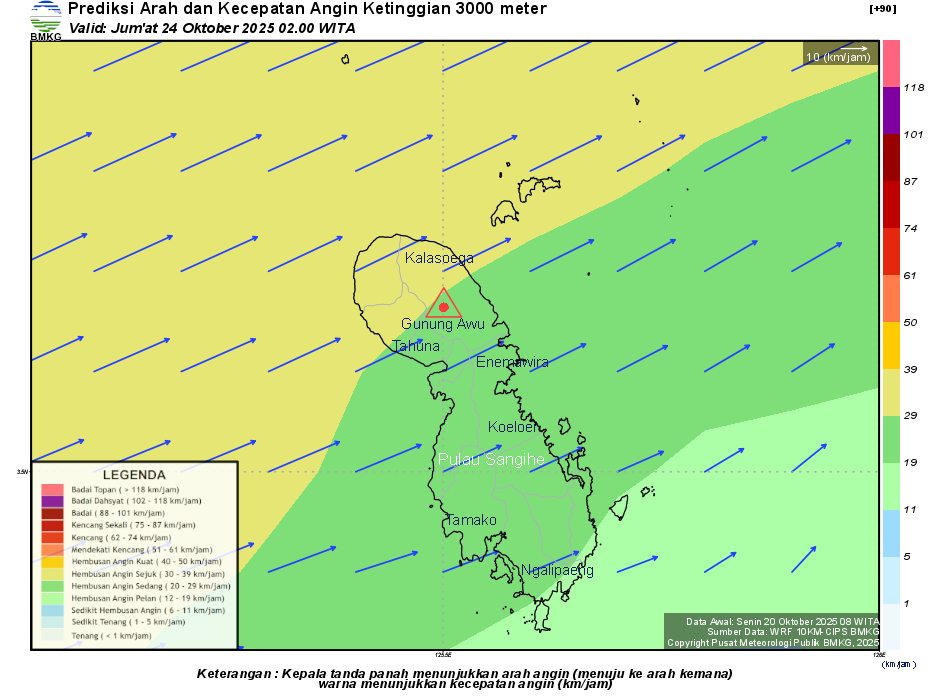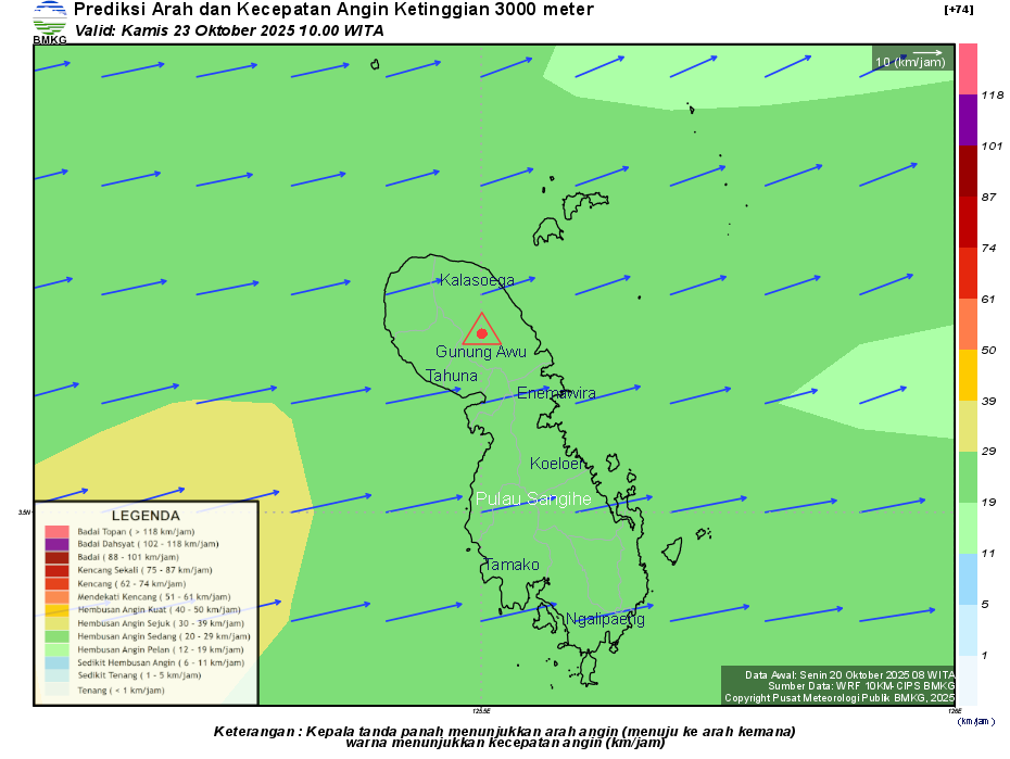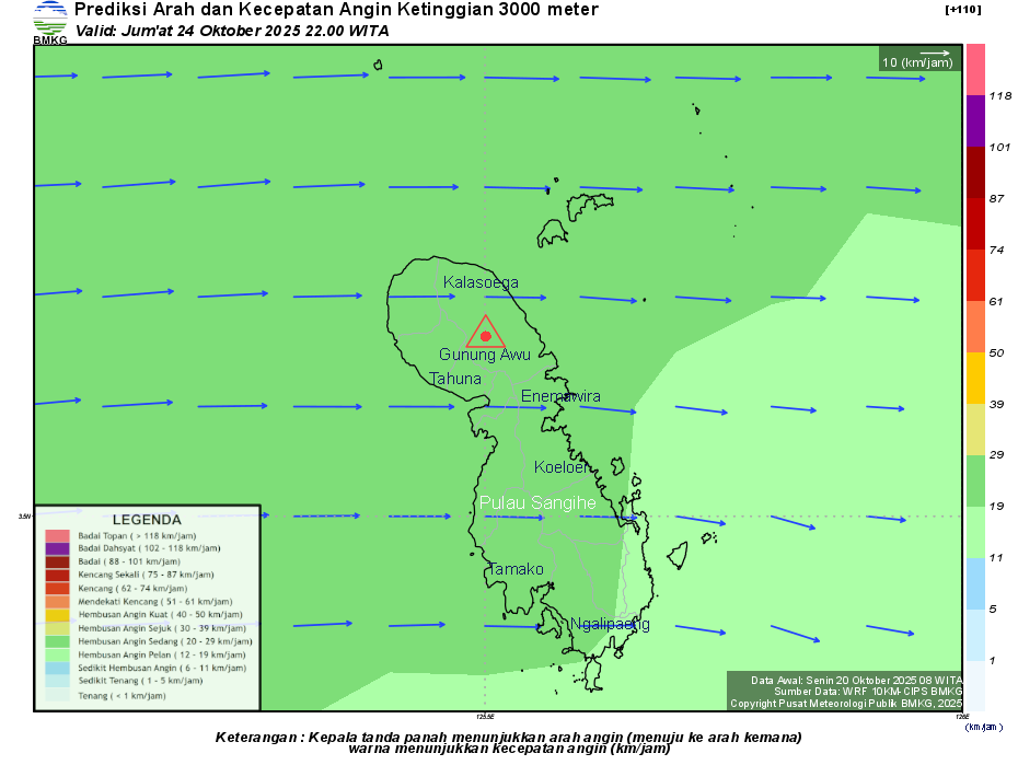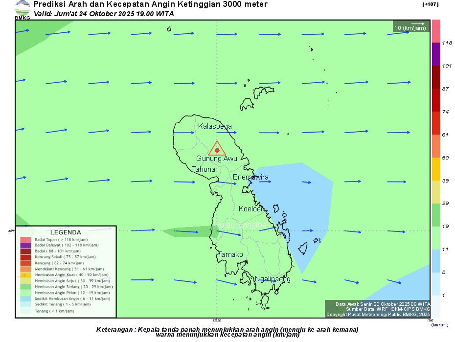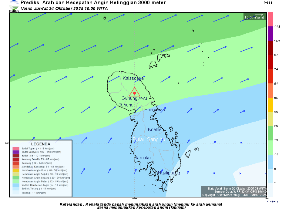 Prakiraan Angin Lapisan 10m Gunung Awu