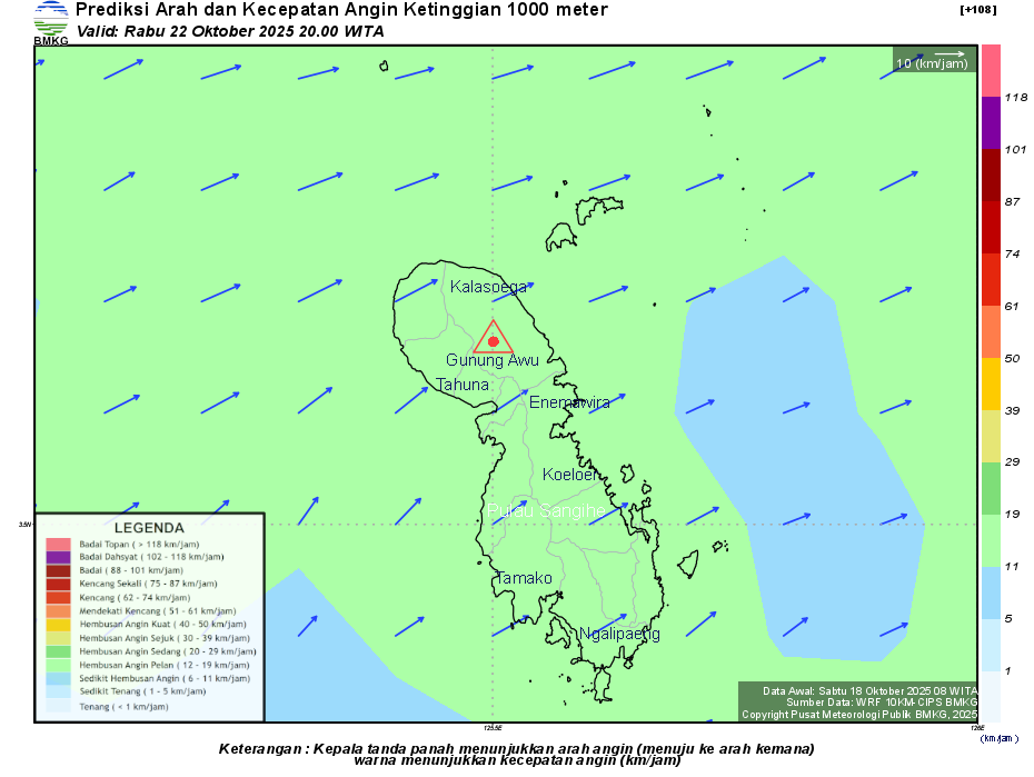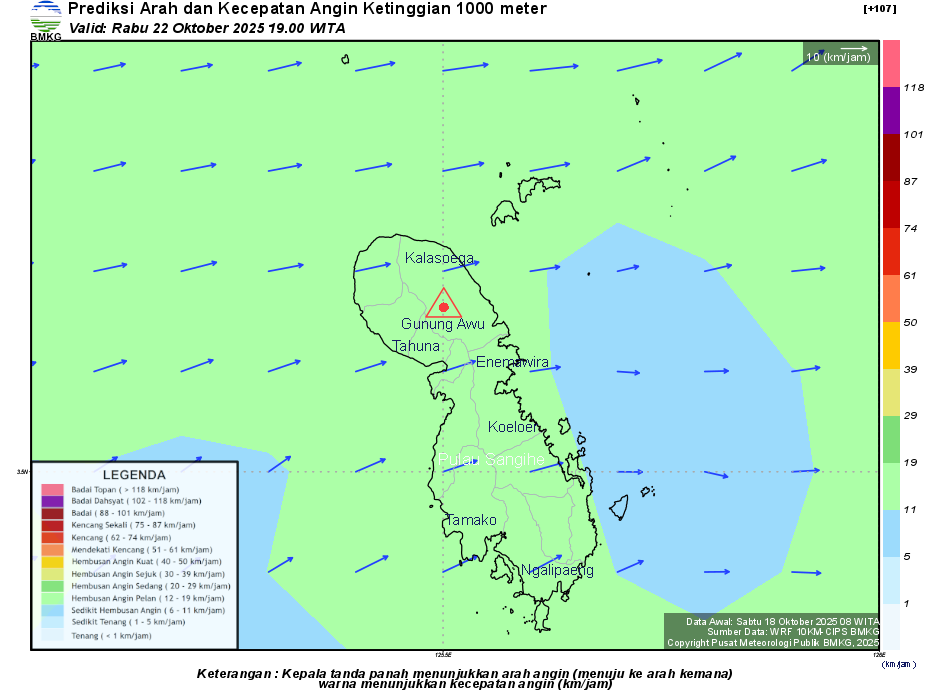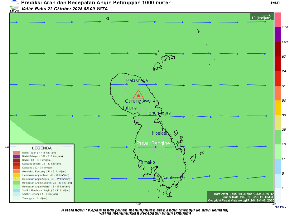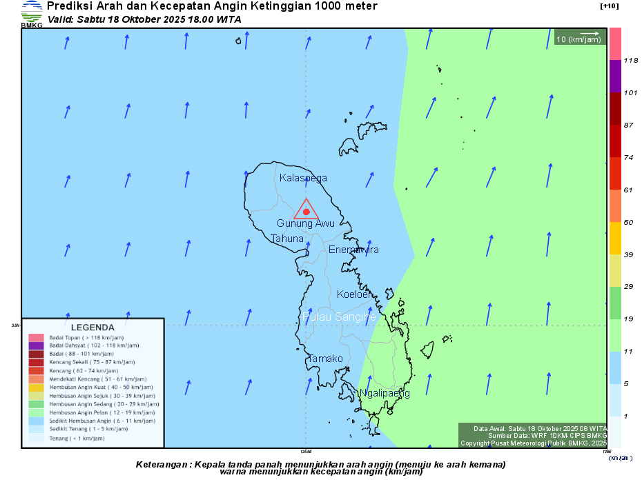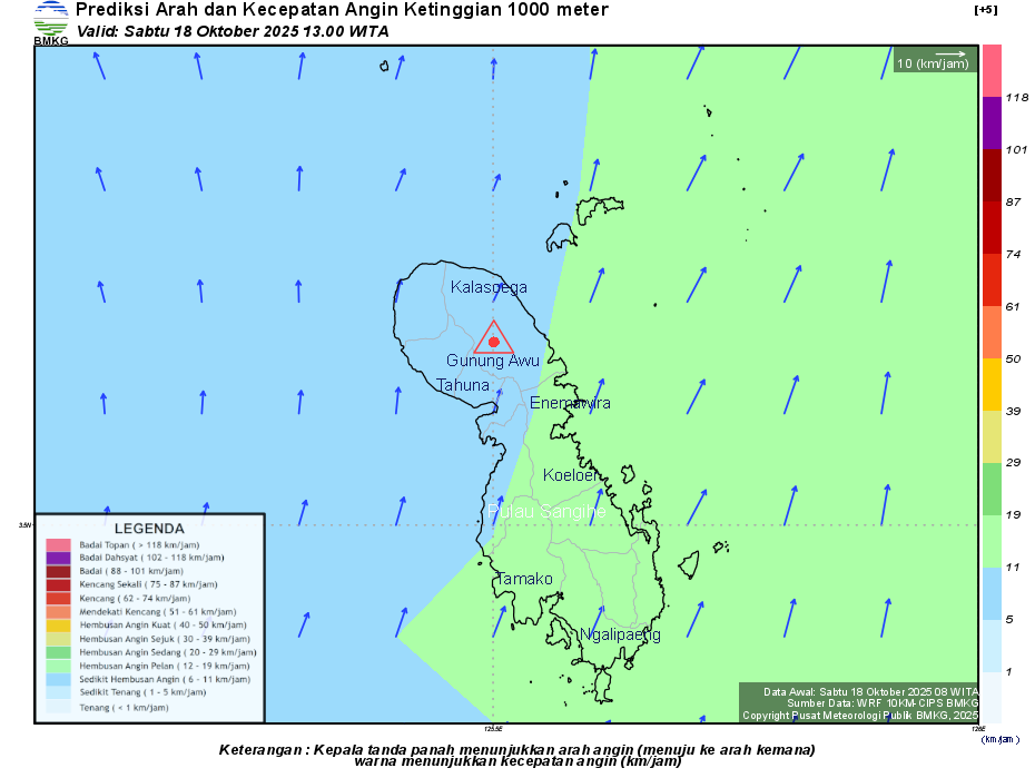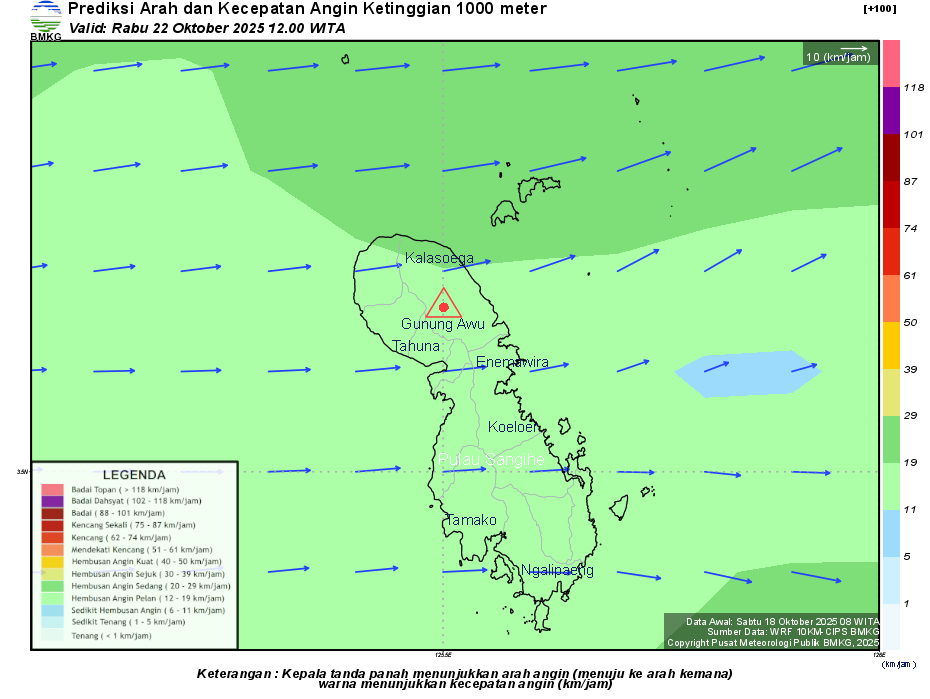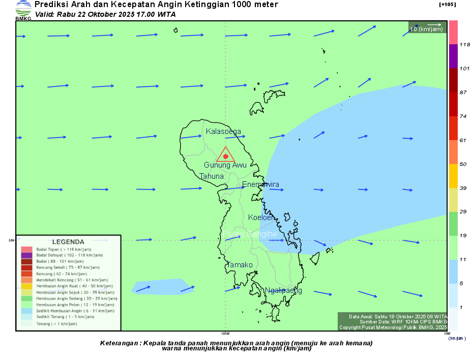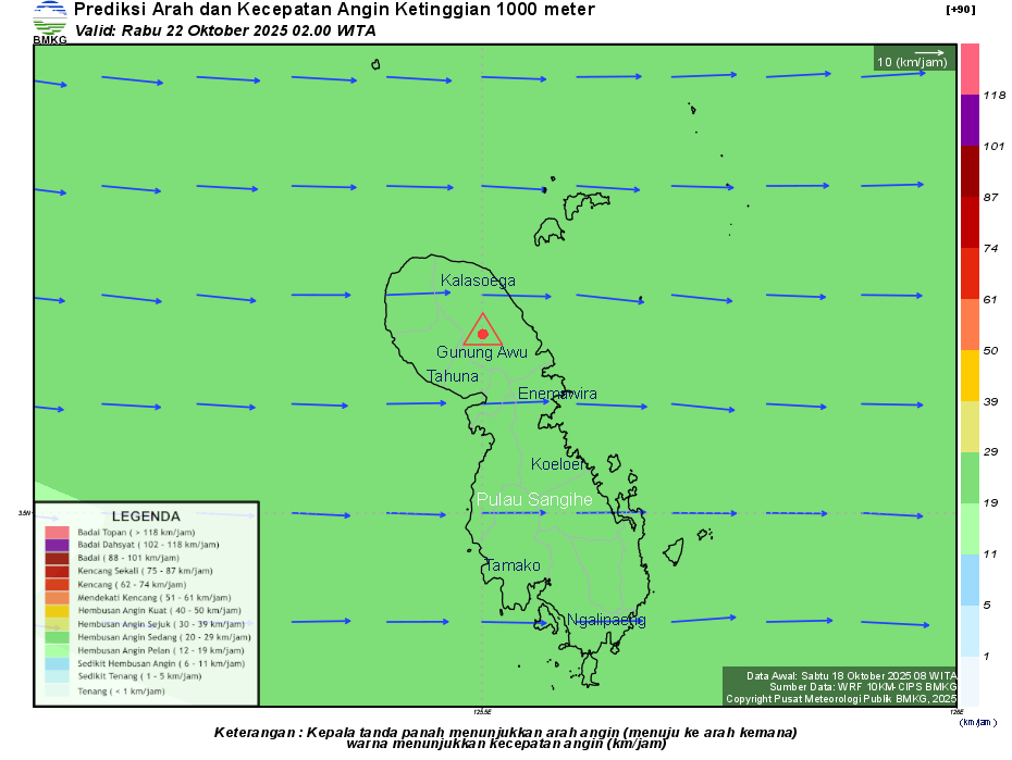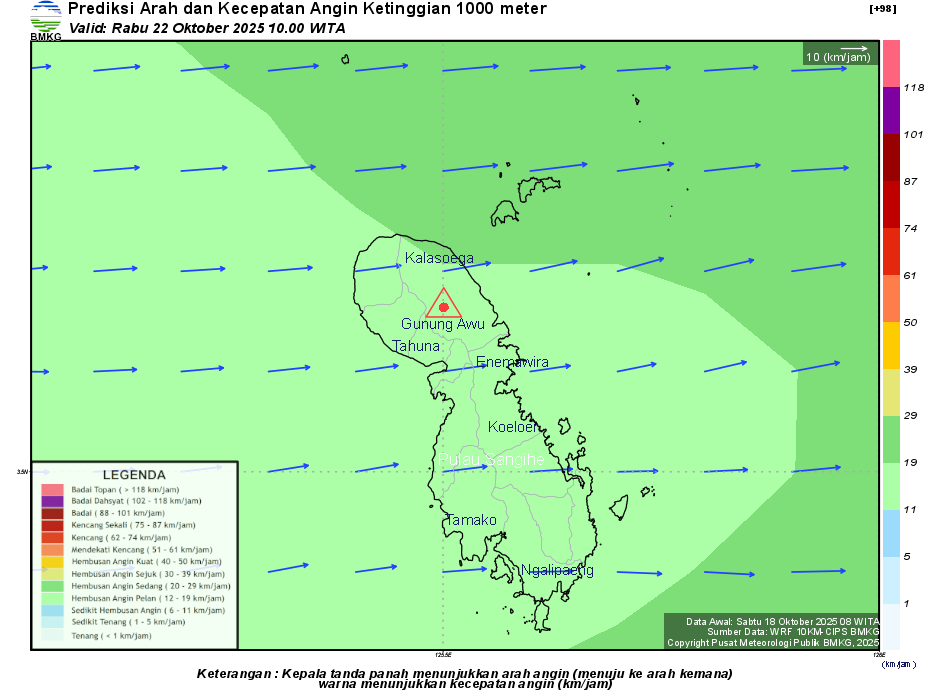 Prakiraan Angin Lapisan 10m Gunung Awu