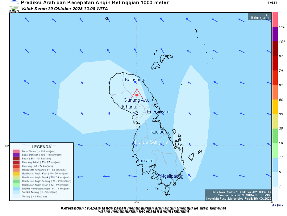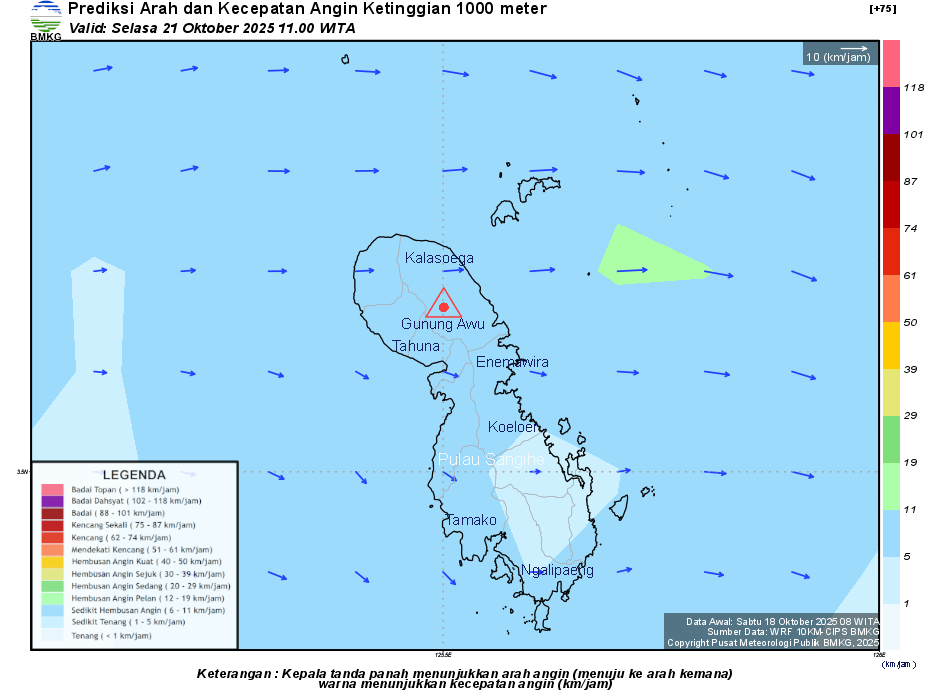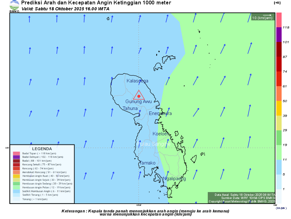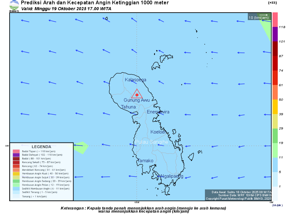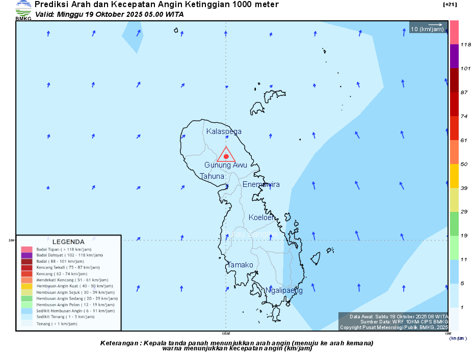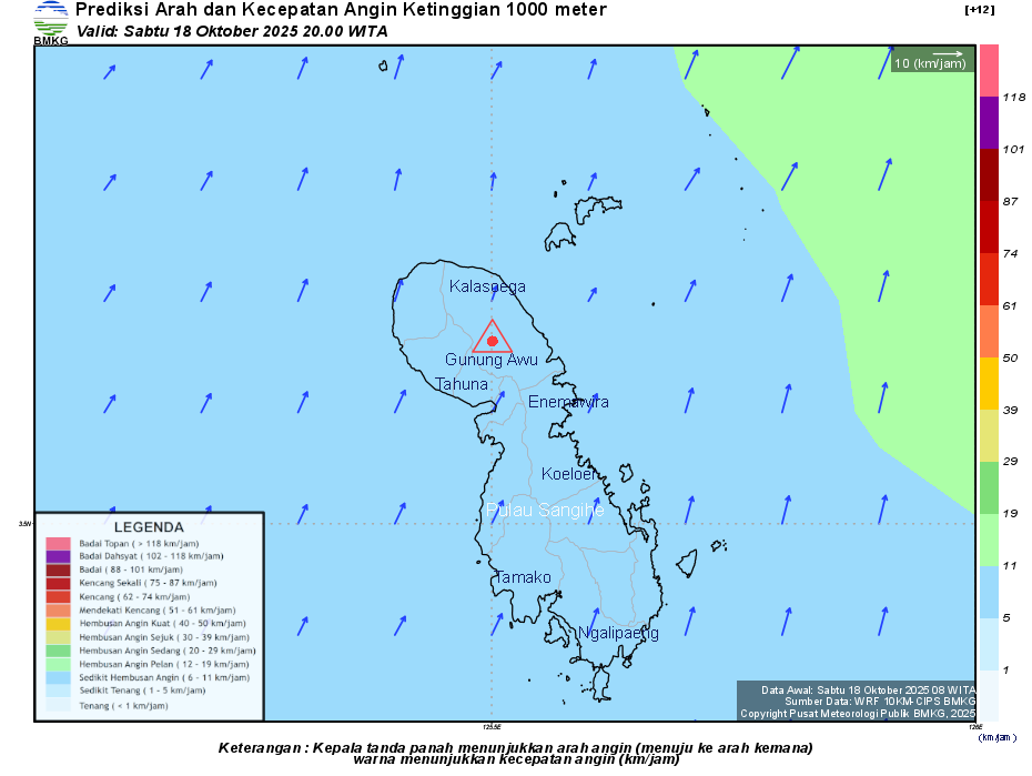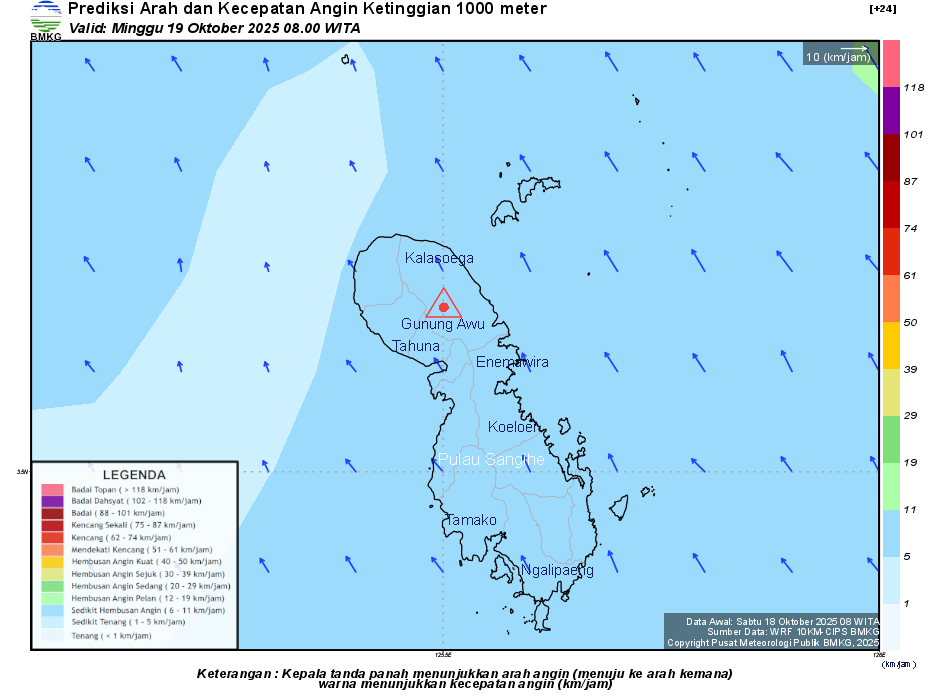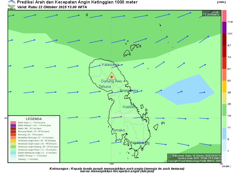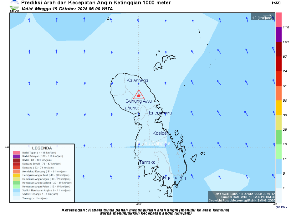 Prakiraan Angin Lapisan 10m Gunung Awu