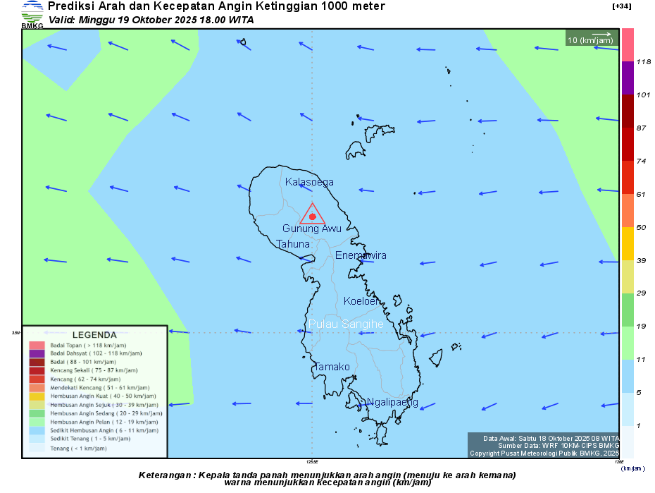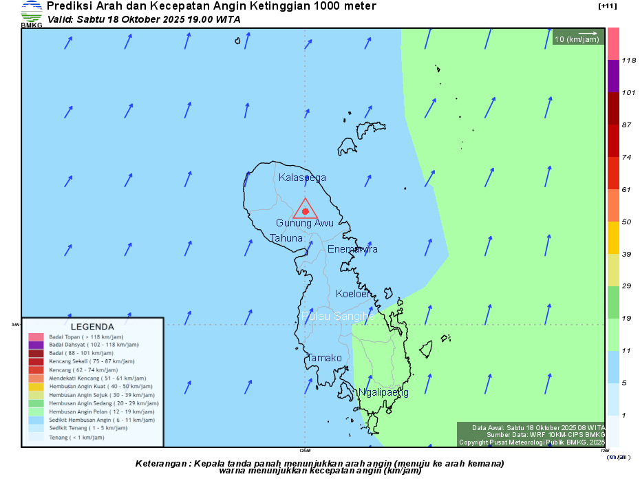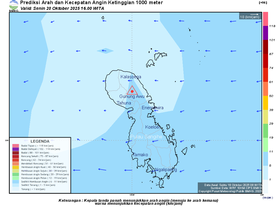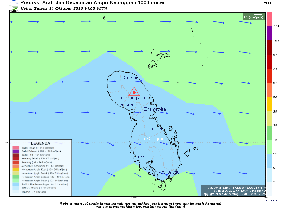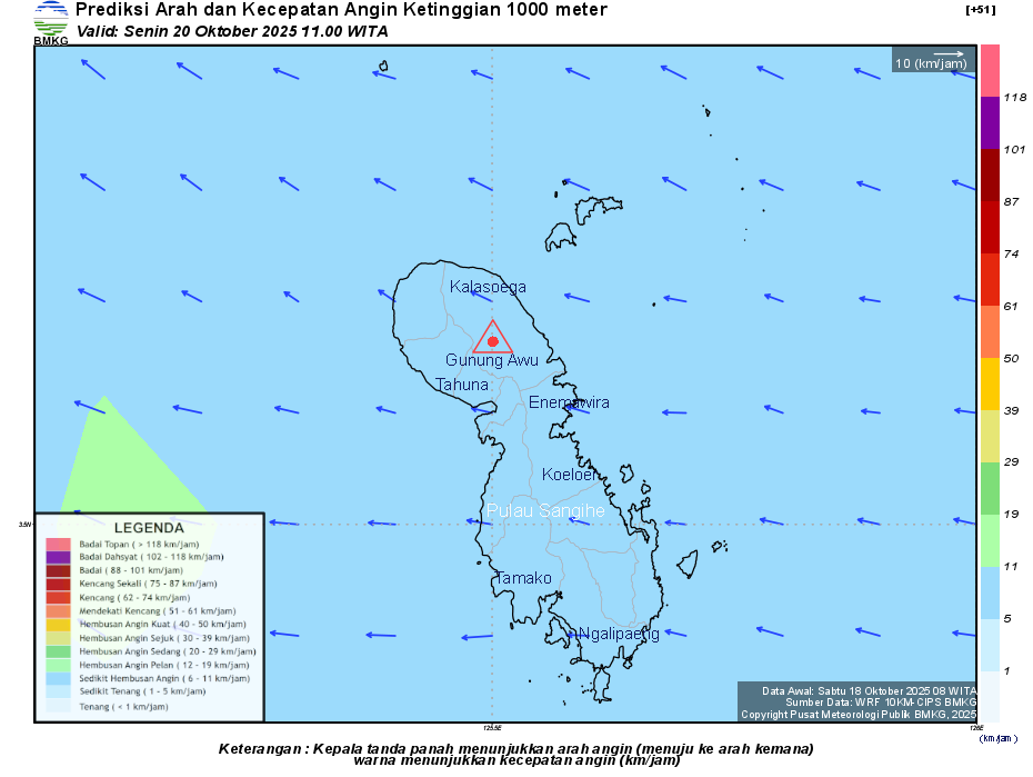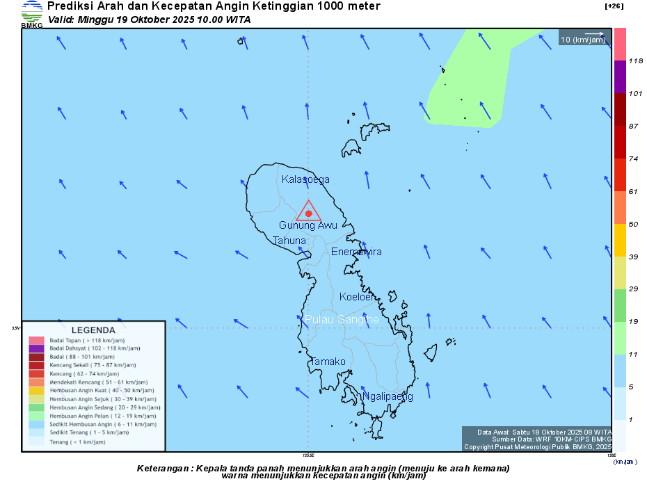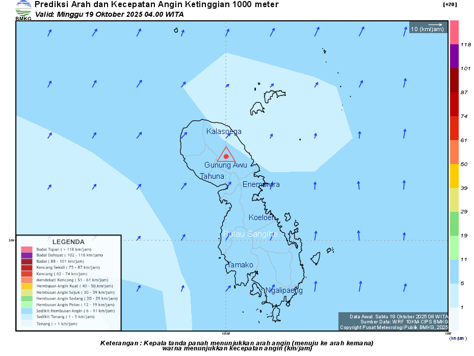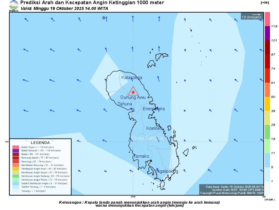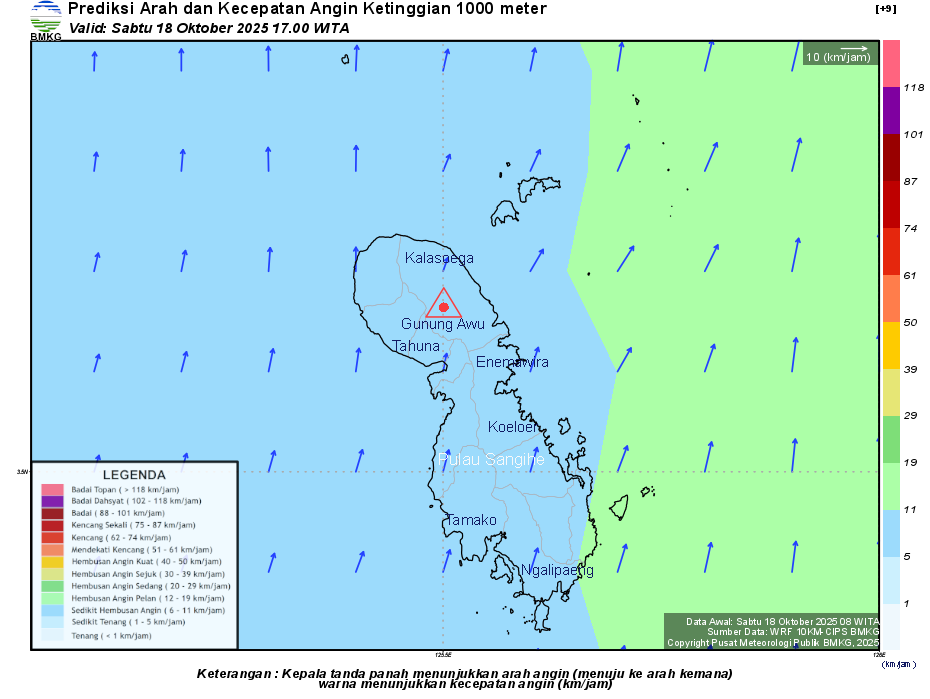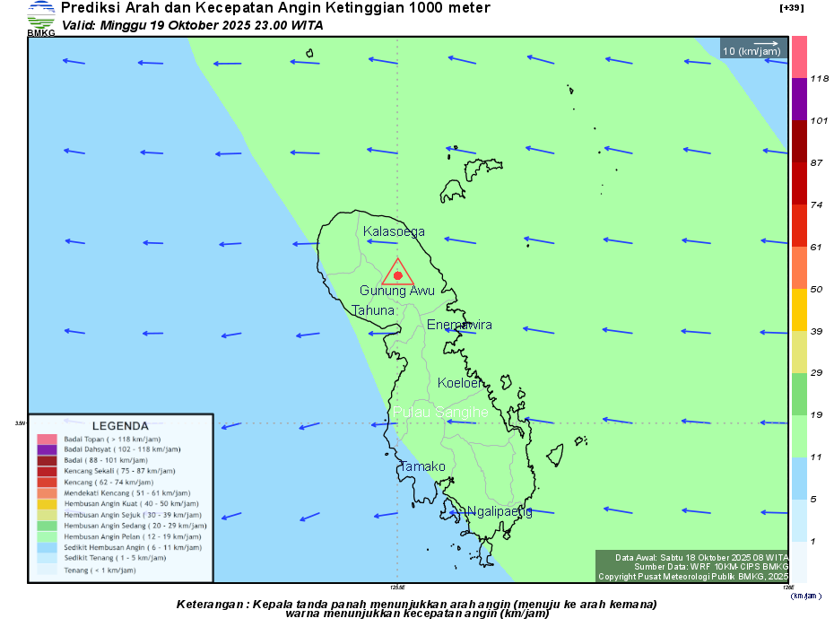Prakiraan Angin Lapisan 10m Gunung Awu